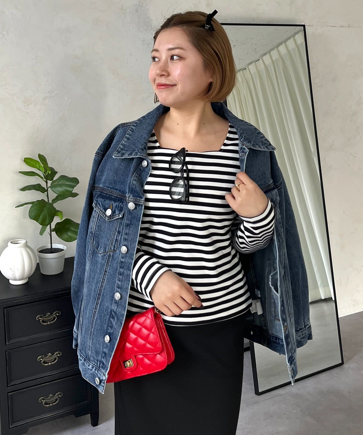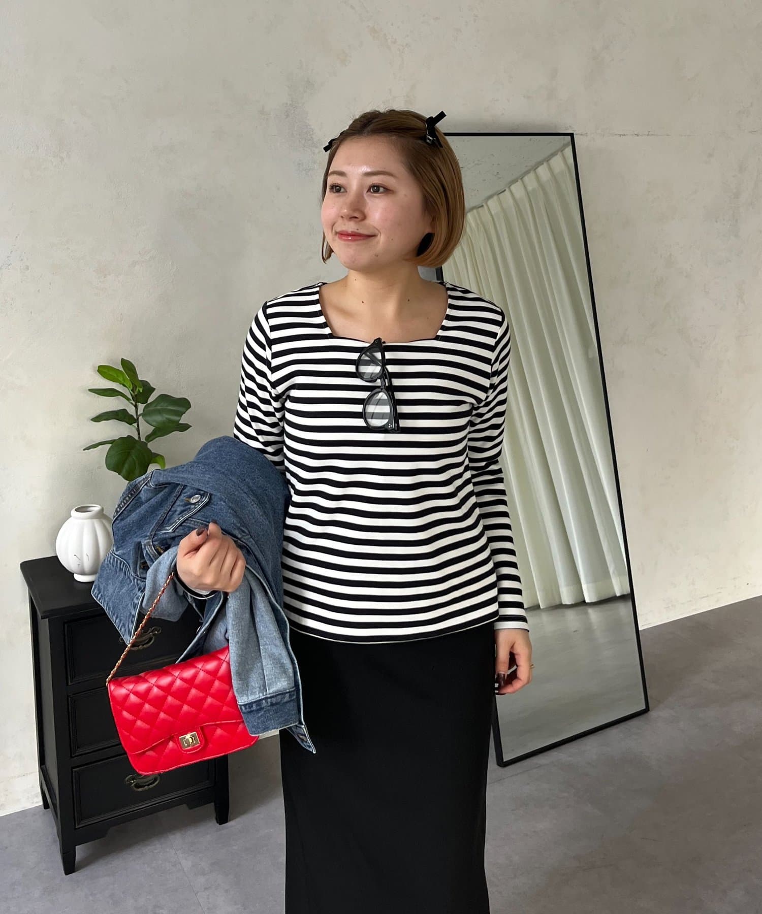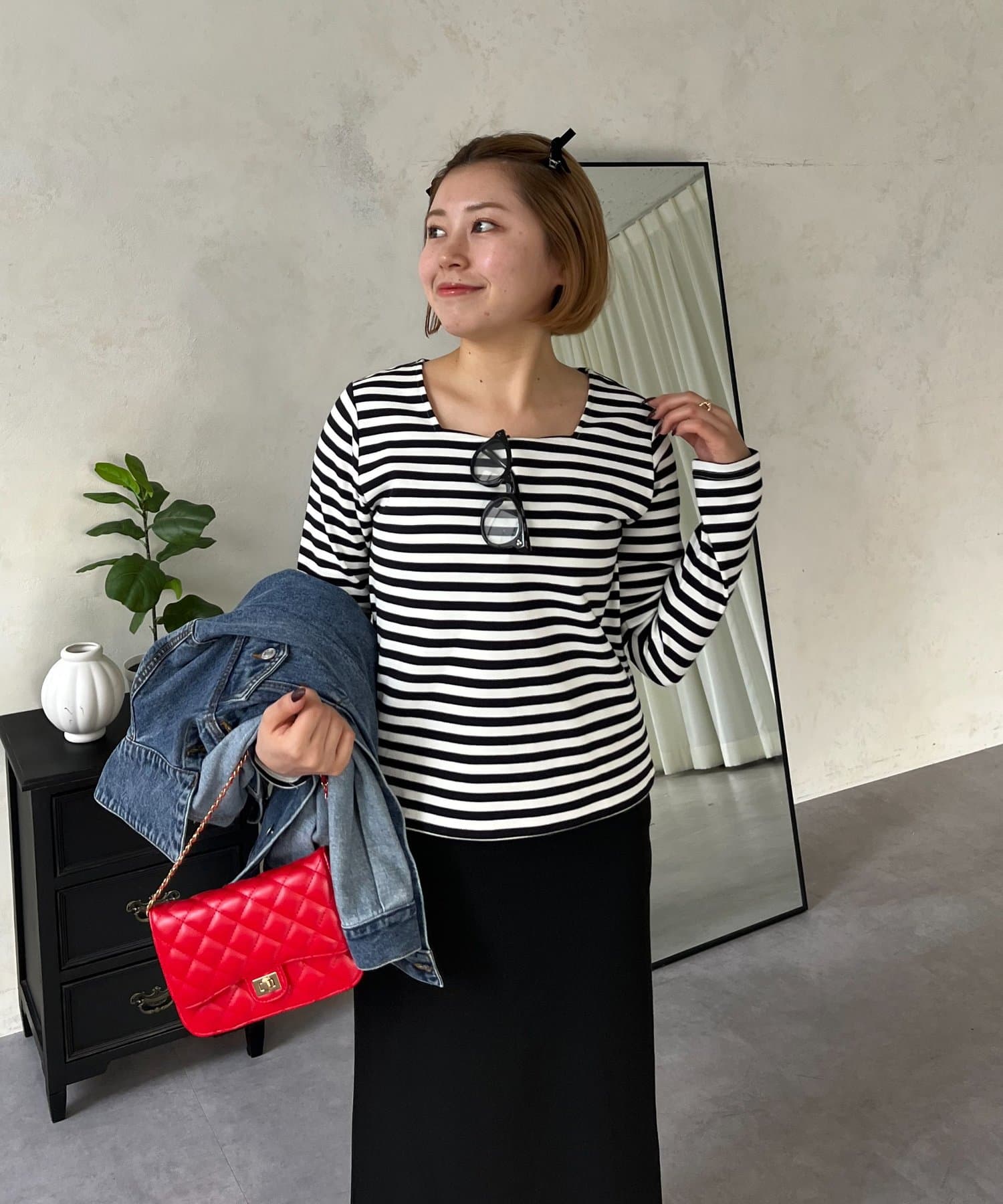 ●スクエアネックでベーシックになりがちなロンTも一気にこなれ感◎