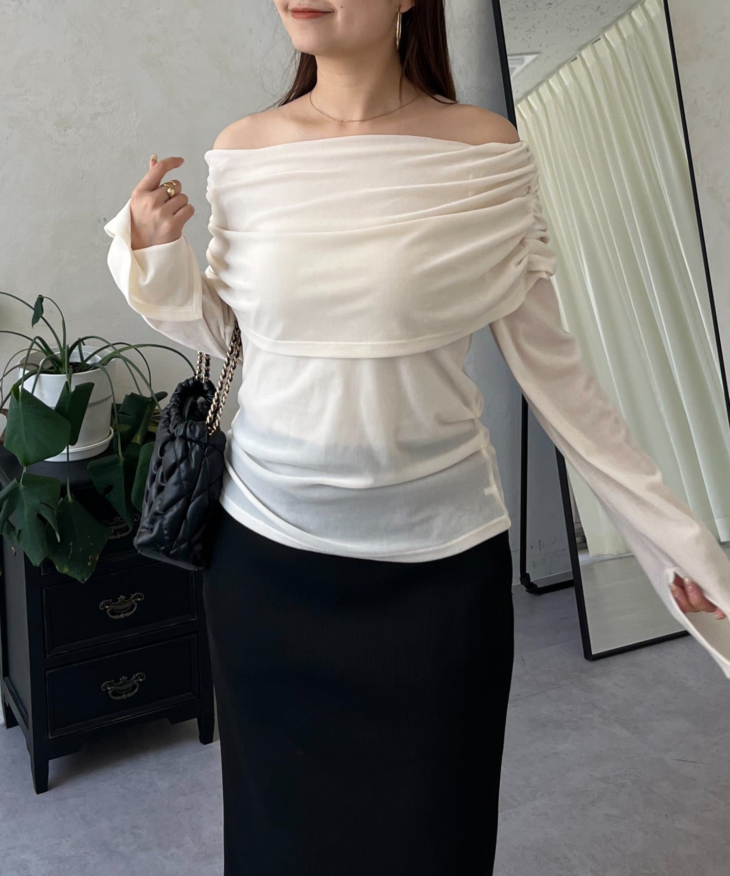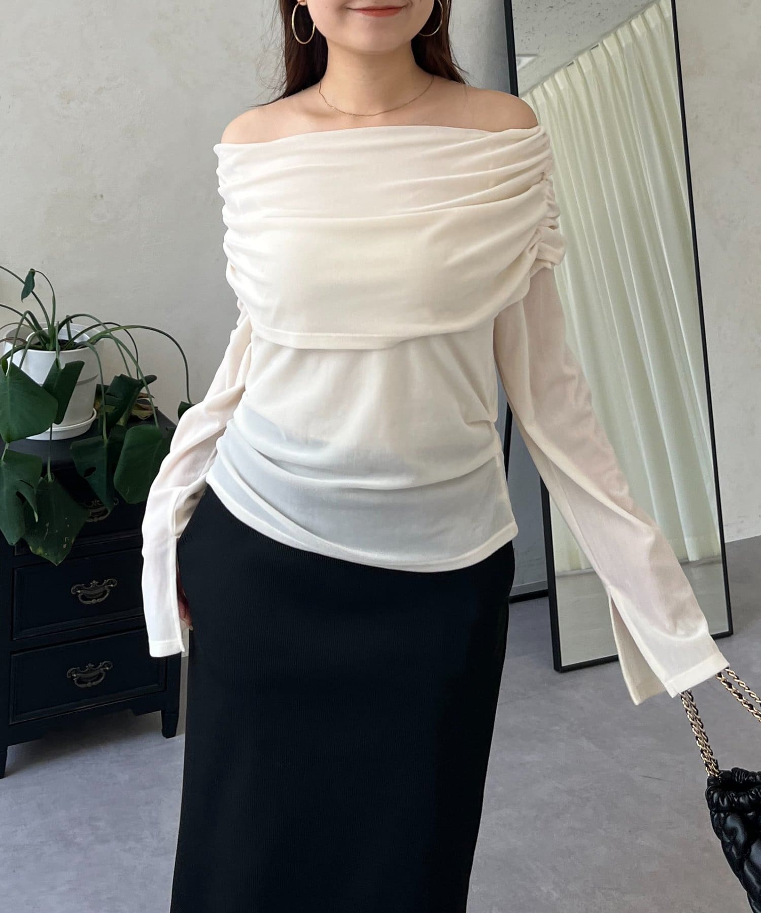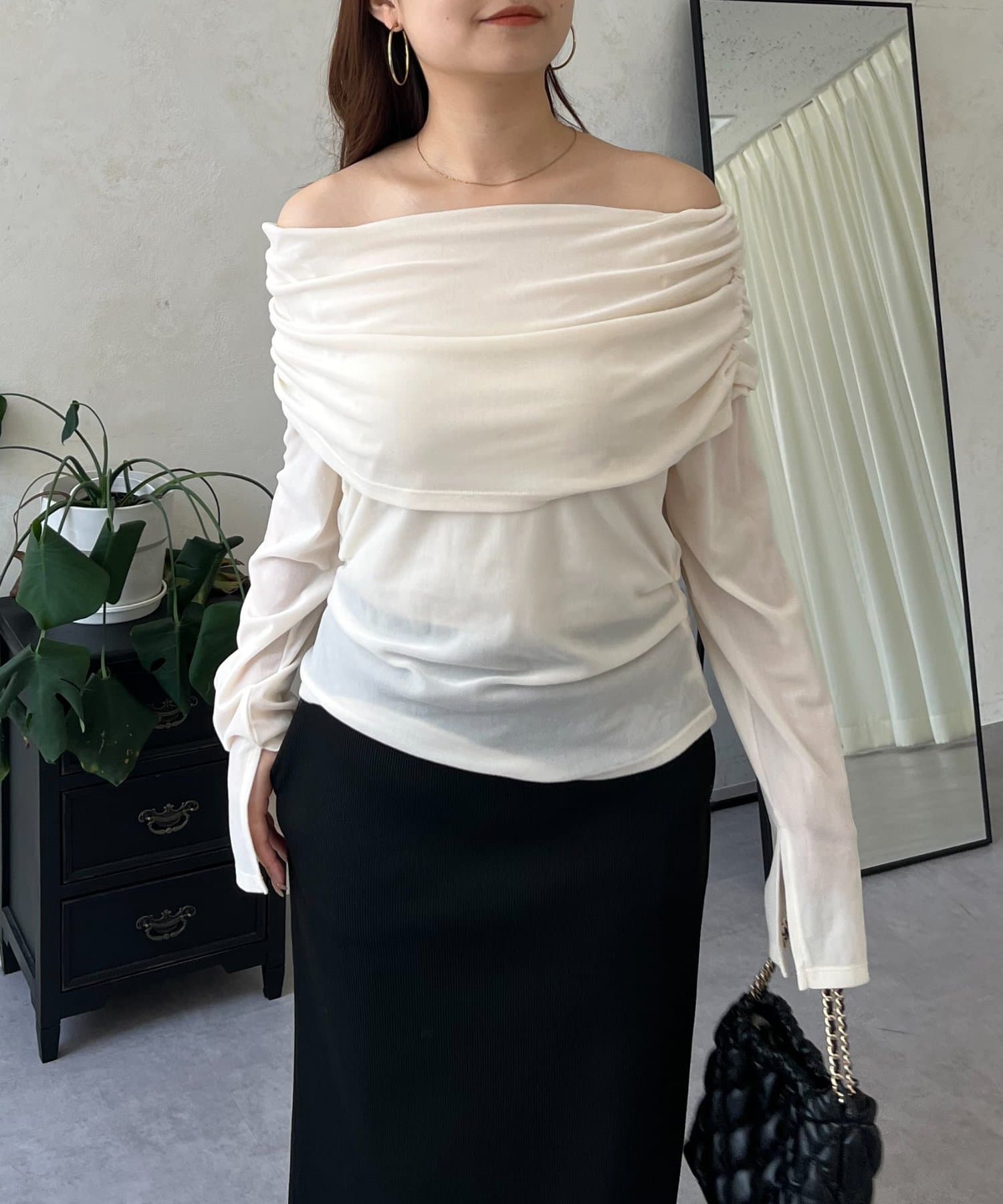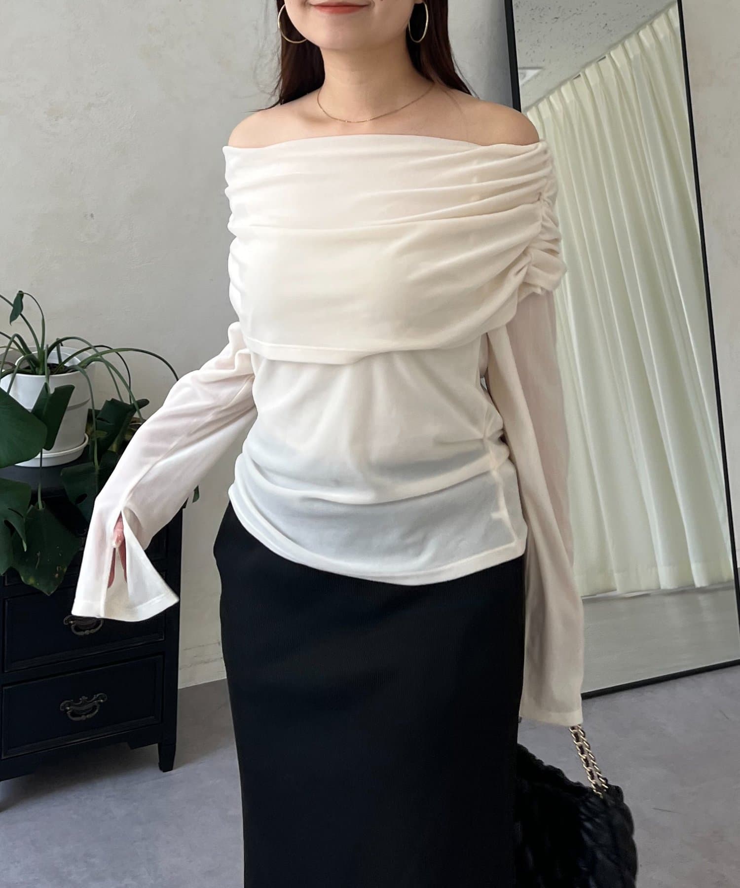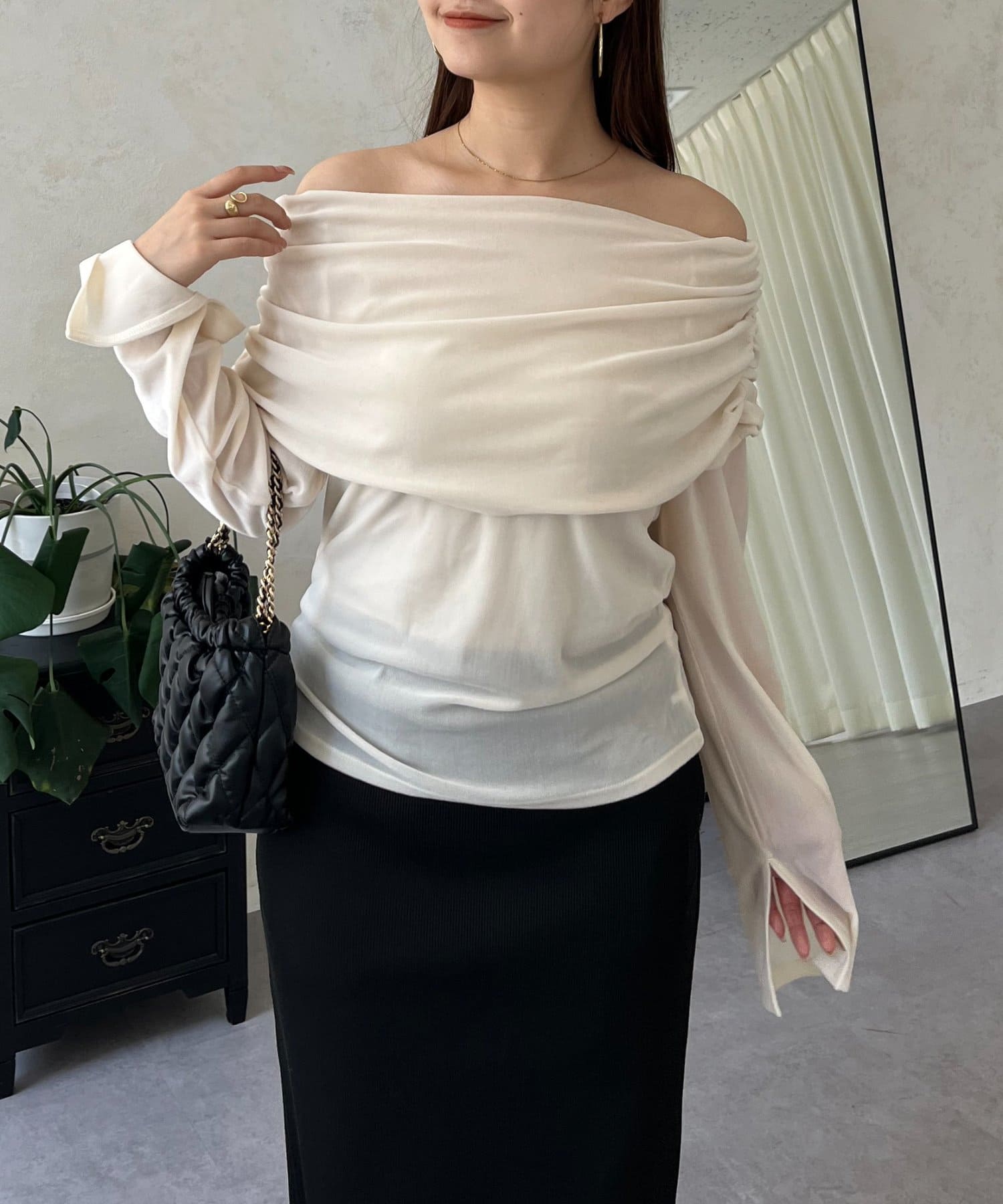 ヘルシーな肌見せでフェミニンムード高まるトップス
