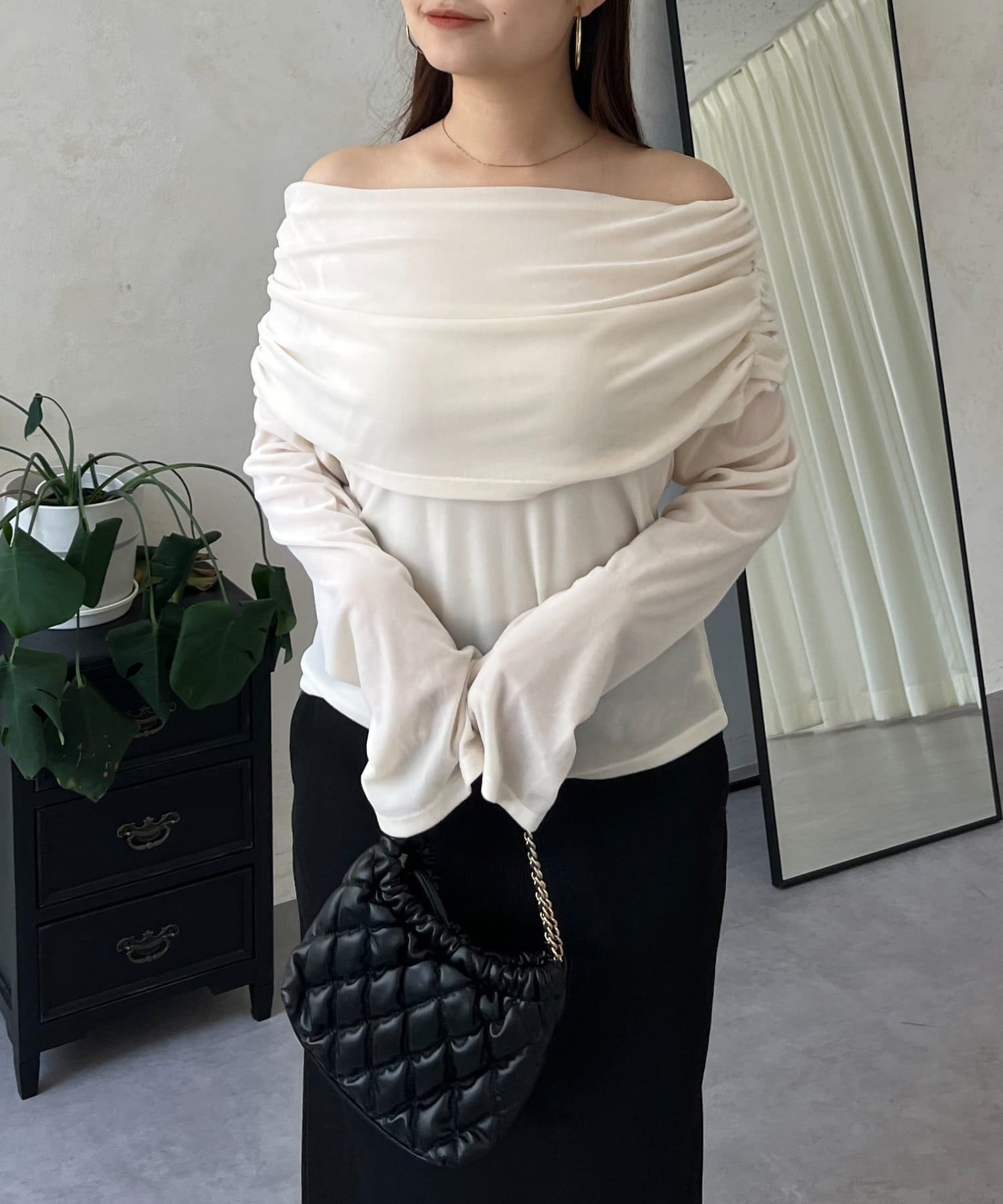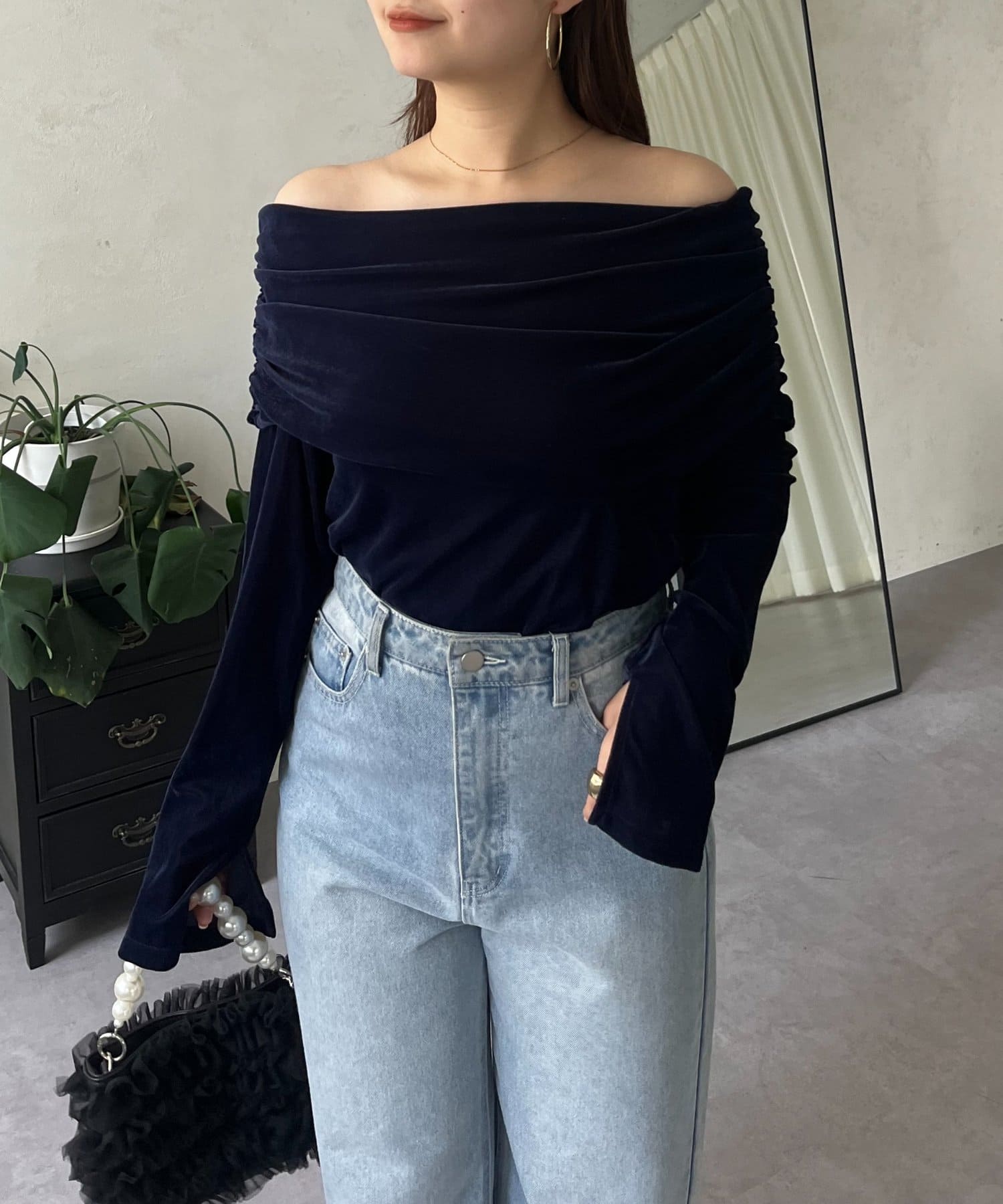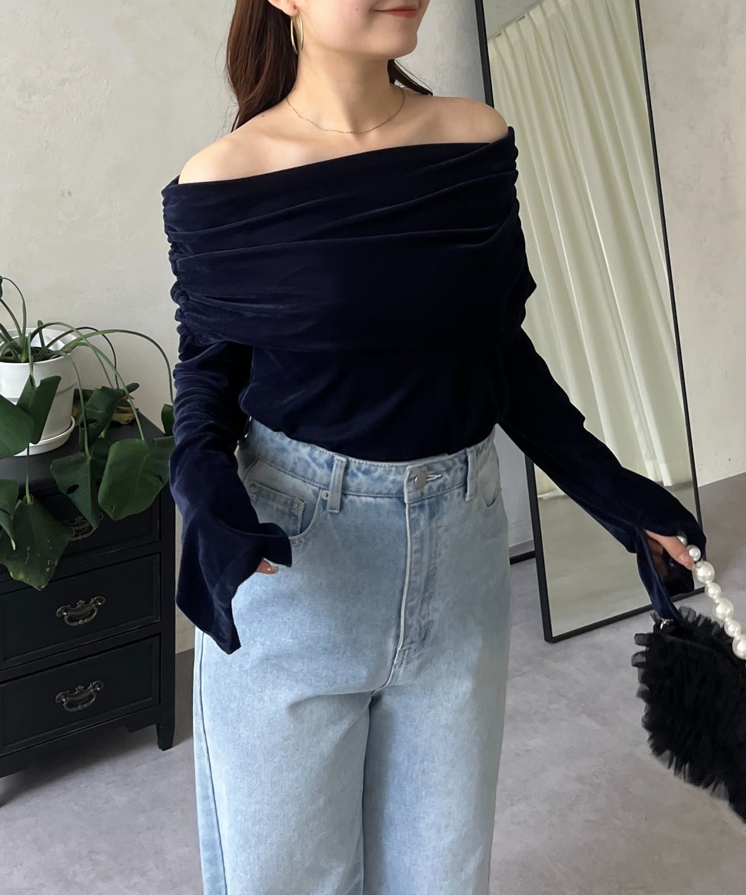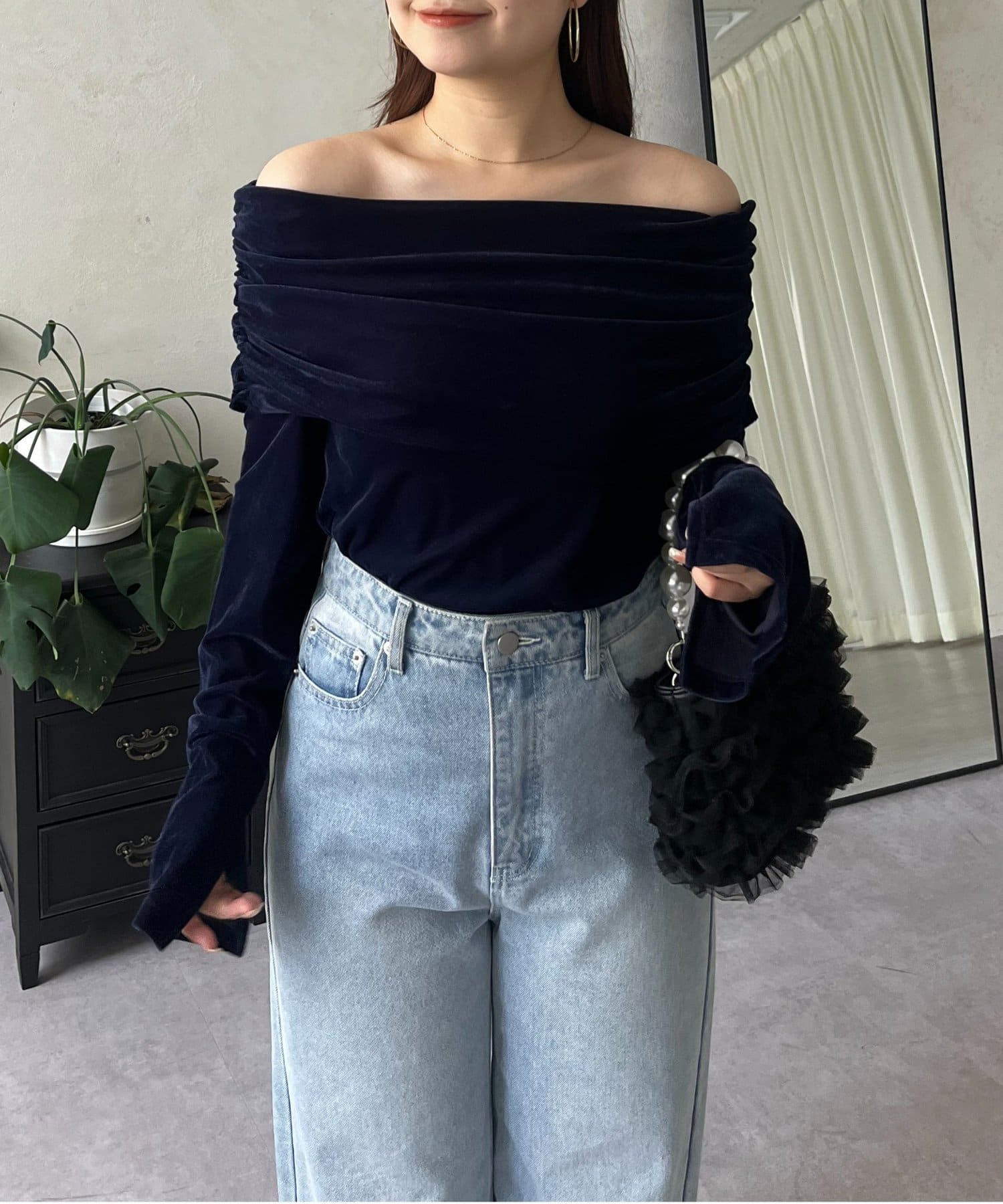 大人カジュアル/シンプル/オフショル/ベロア/ロンT