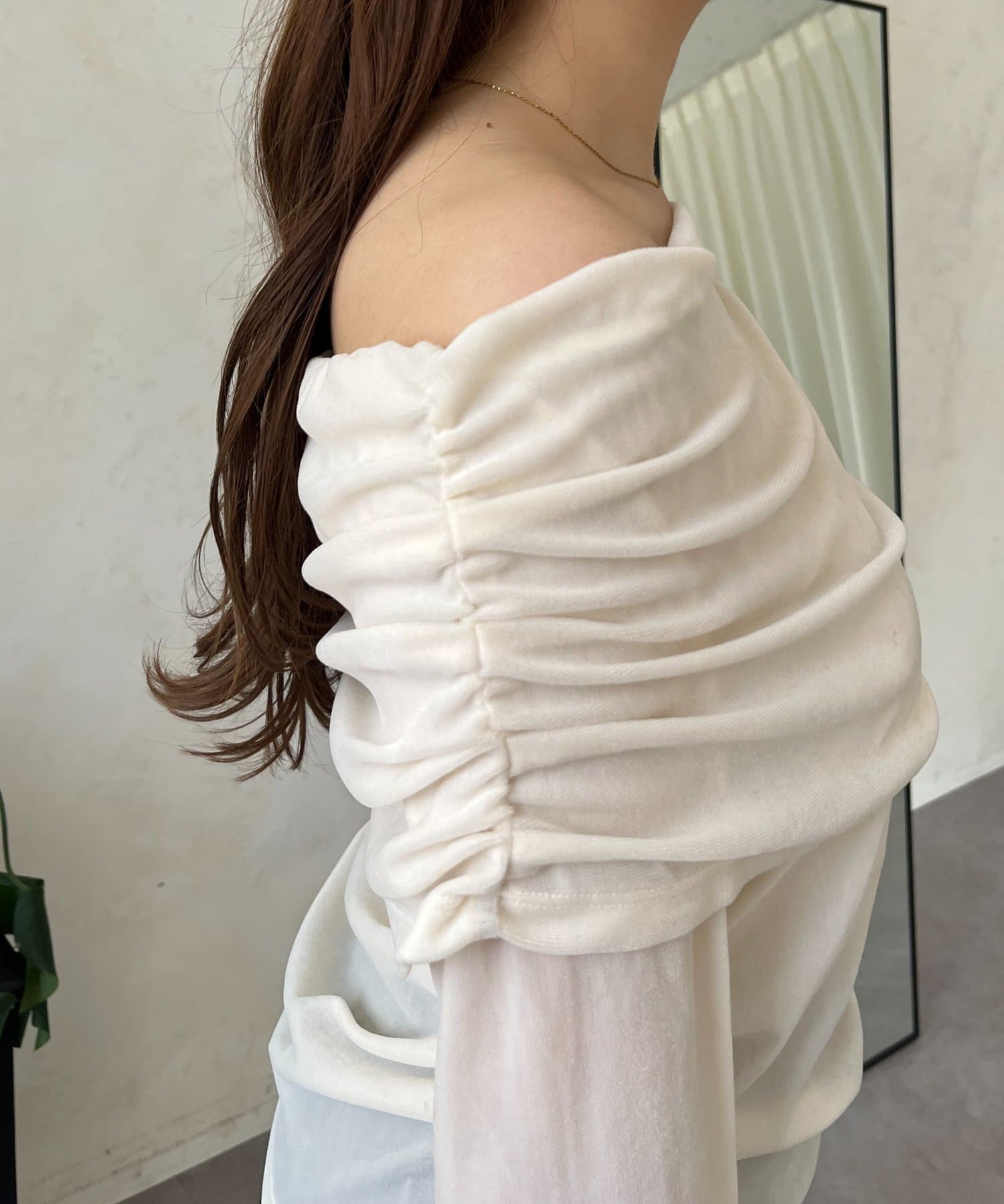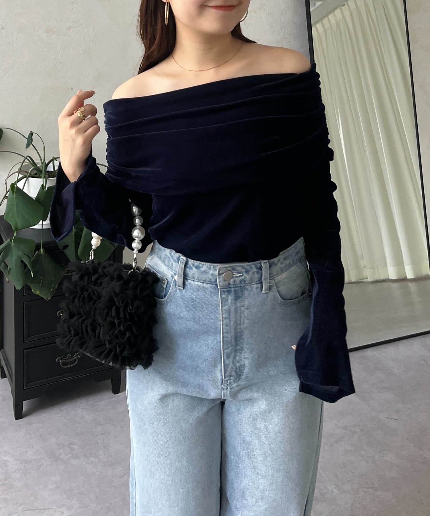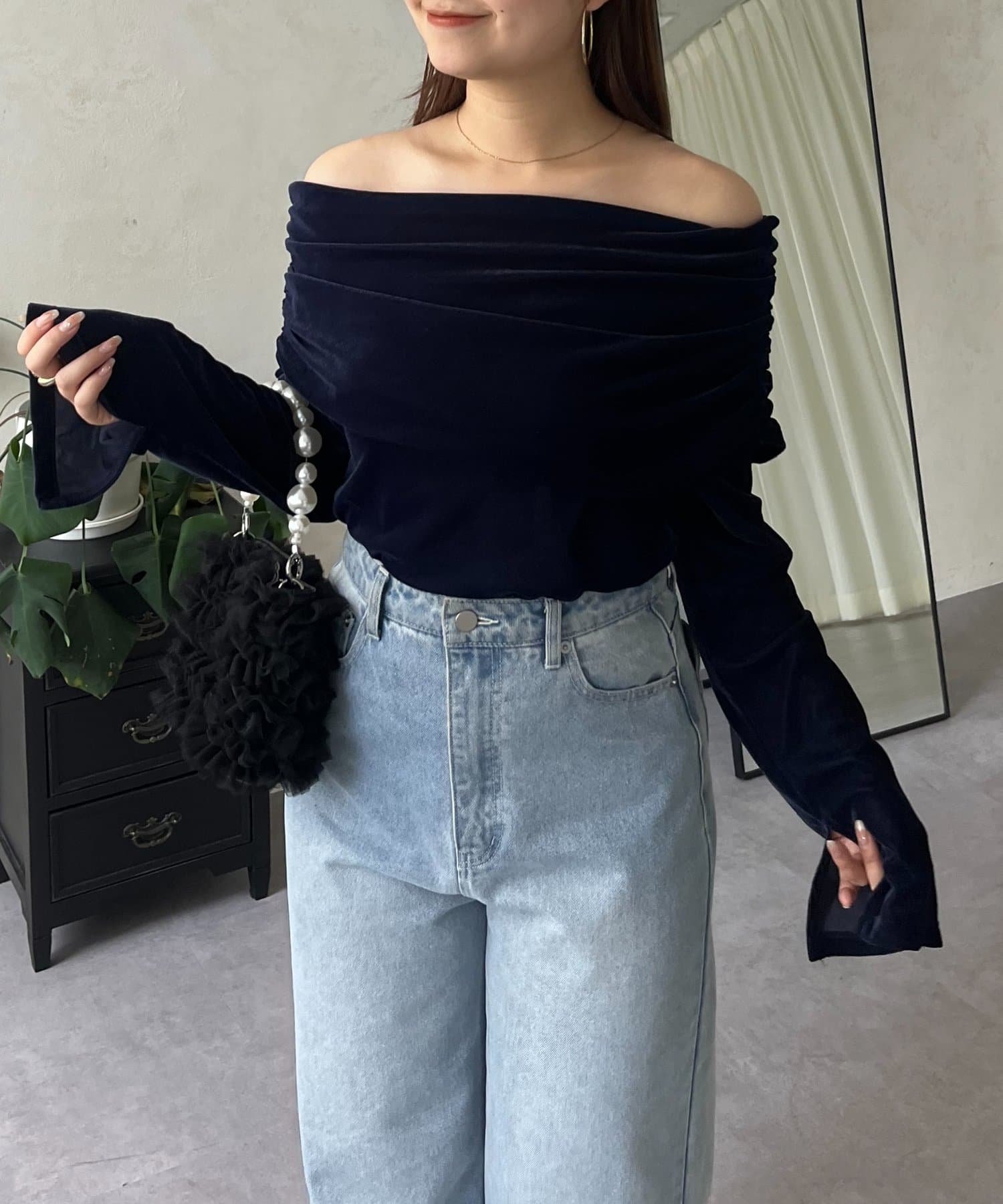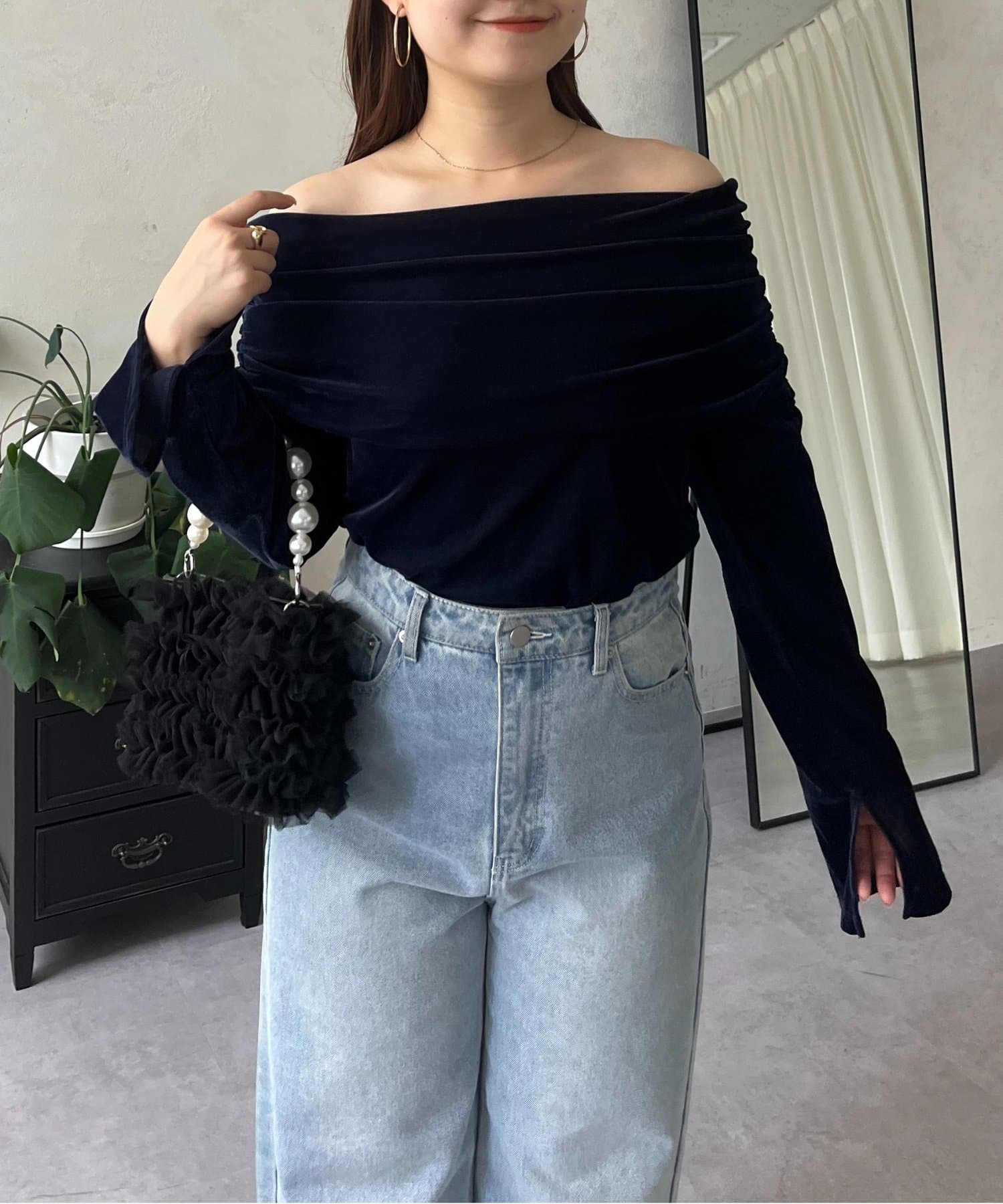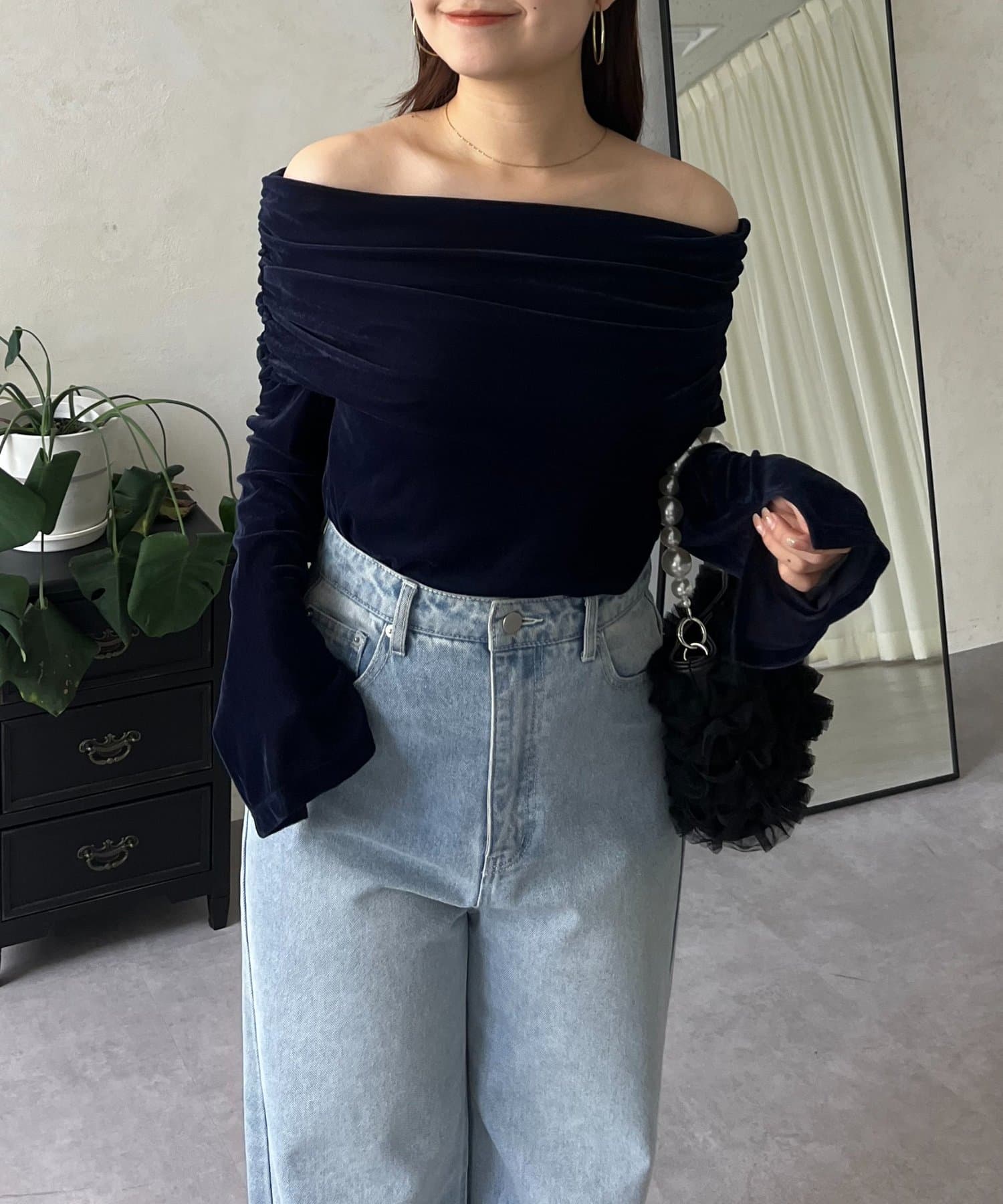 大人カジュアル/シンプル/オフショル/ベロア/ロンT