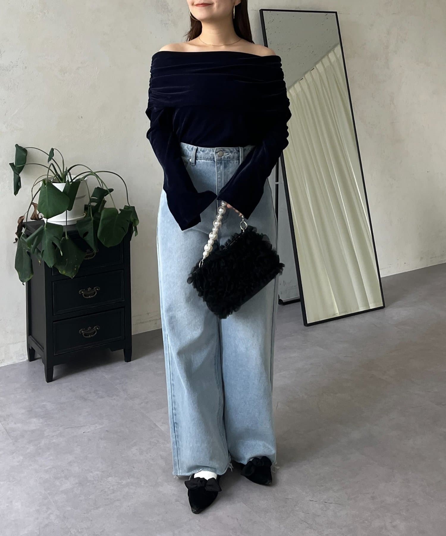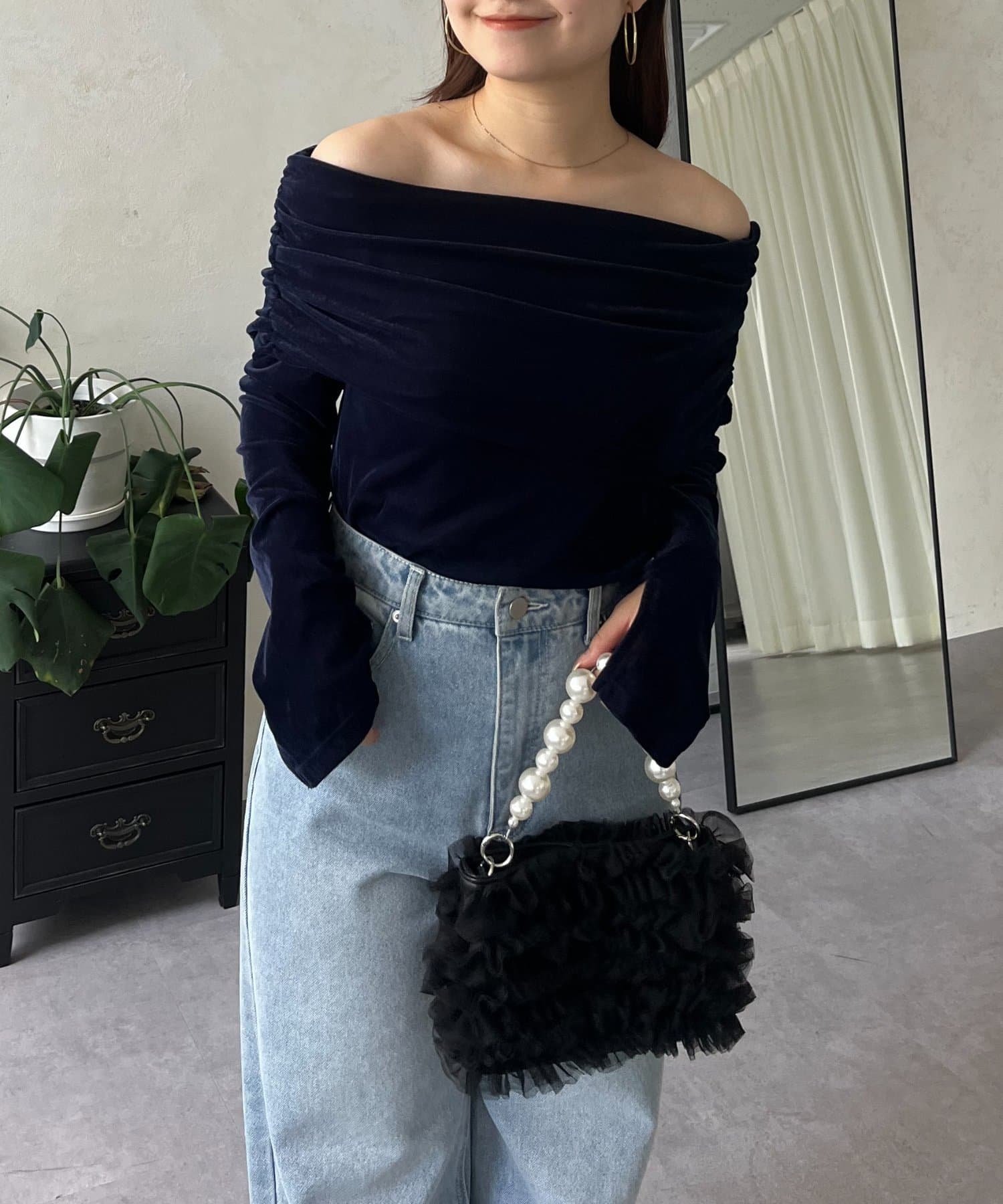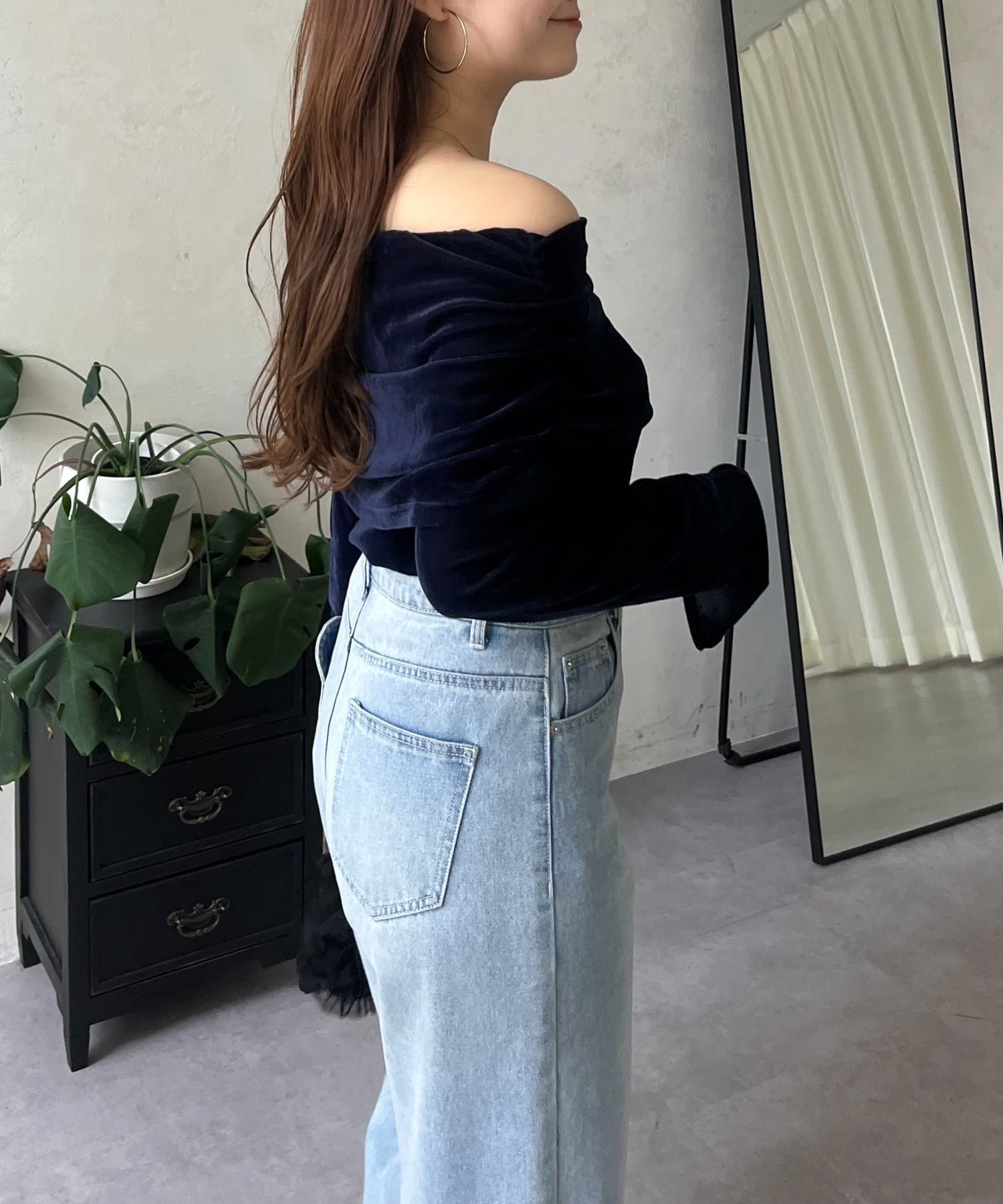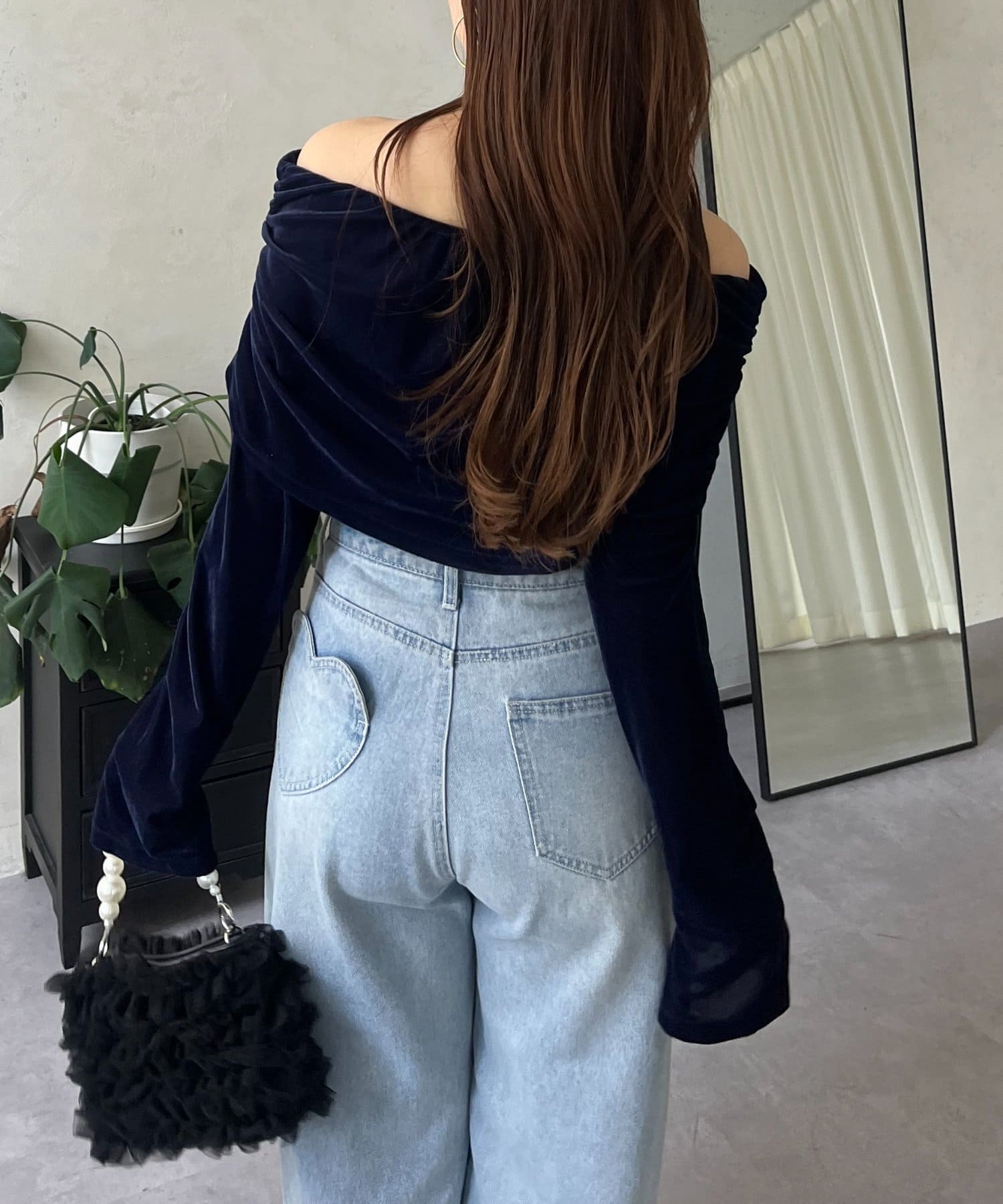 大人カジュアル/シンプル/オフショル/ベロア/ロンT