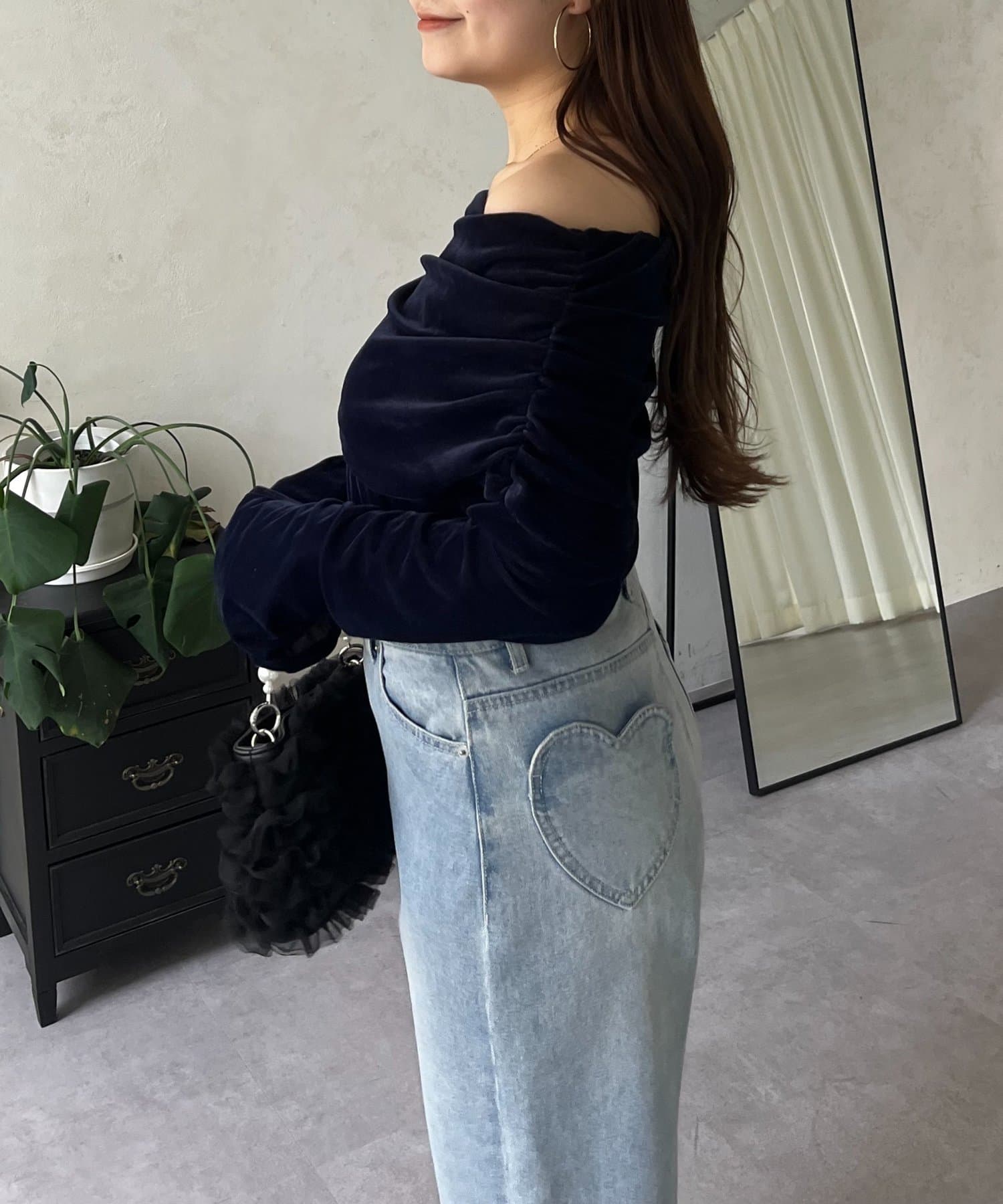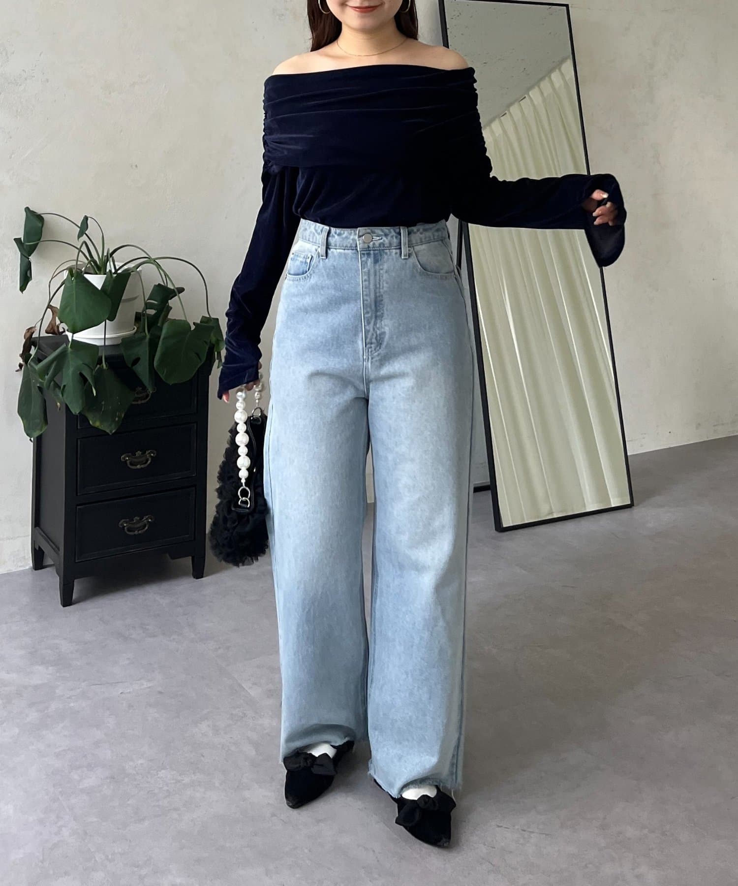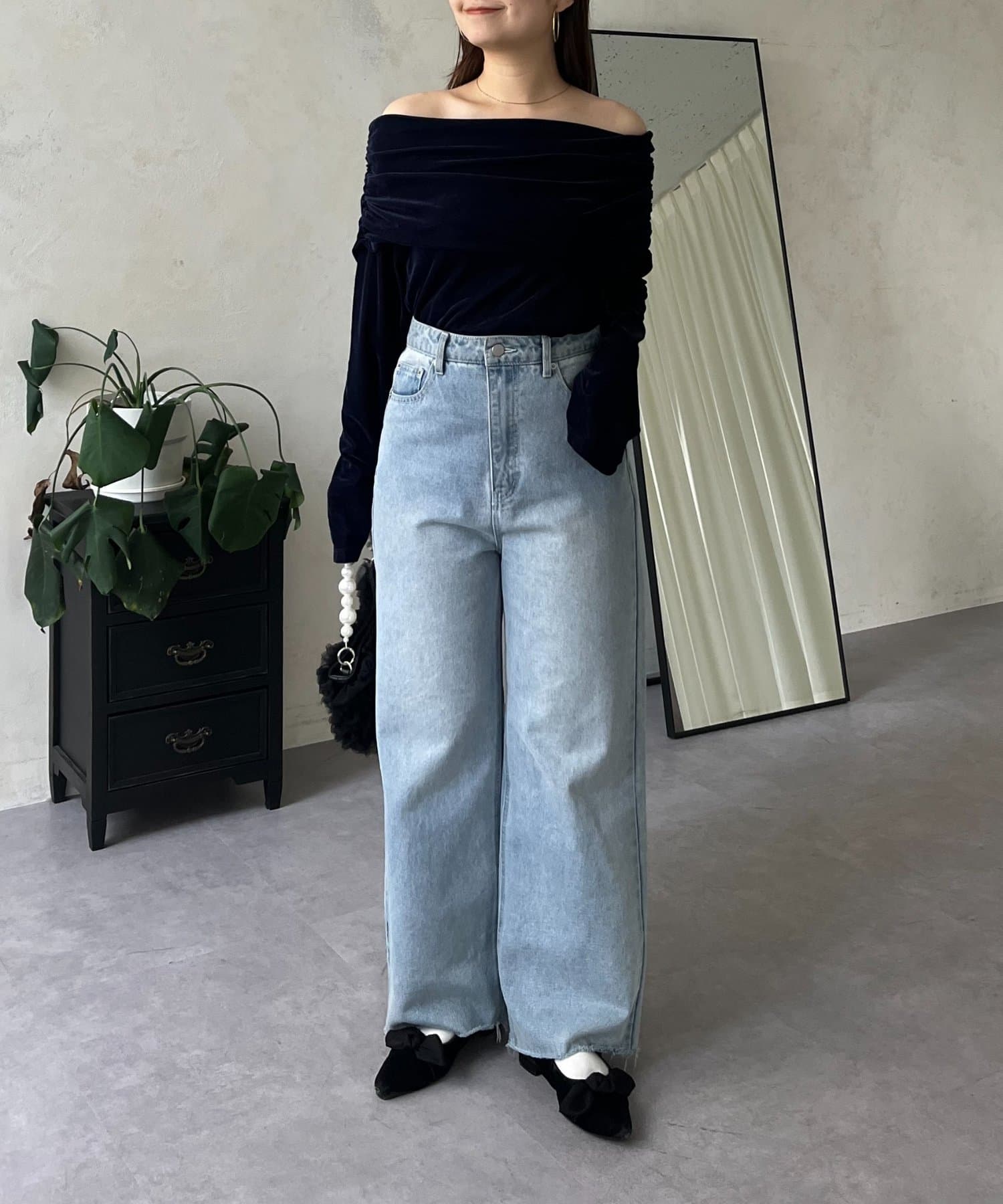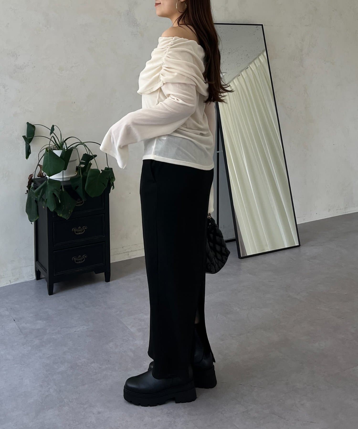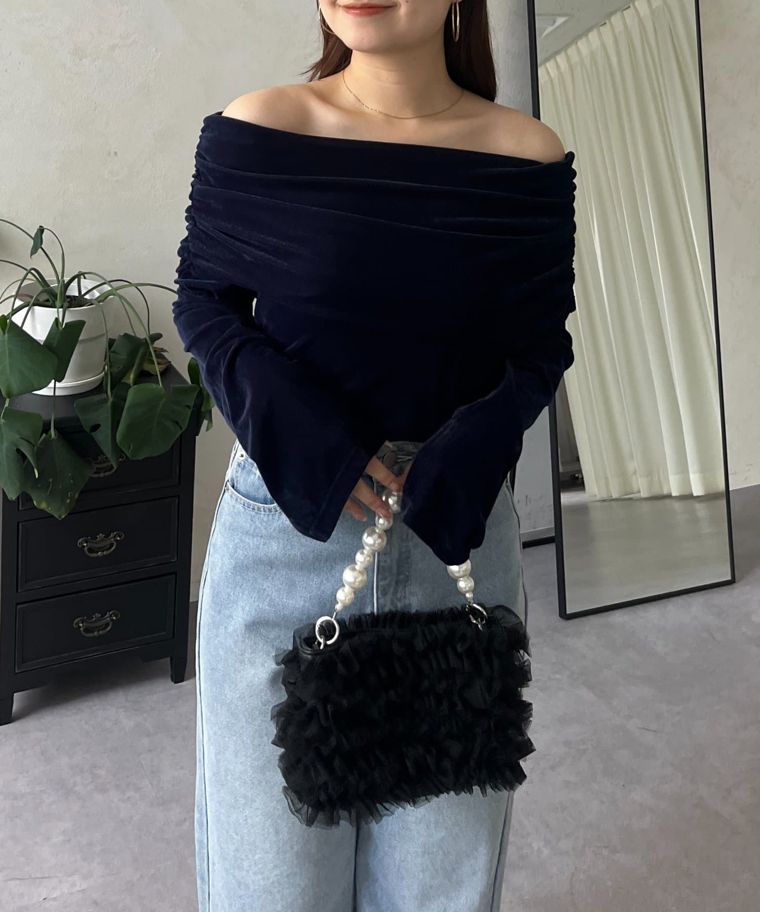 大人カジュアル/シンプル/オフショル/ベロア/ロンT