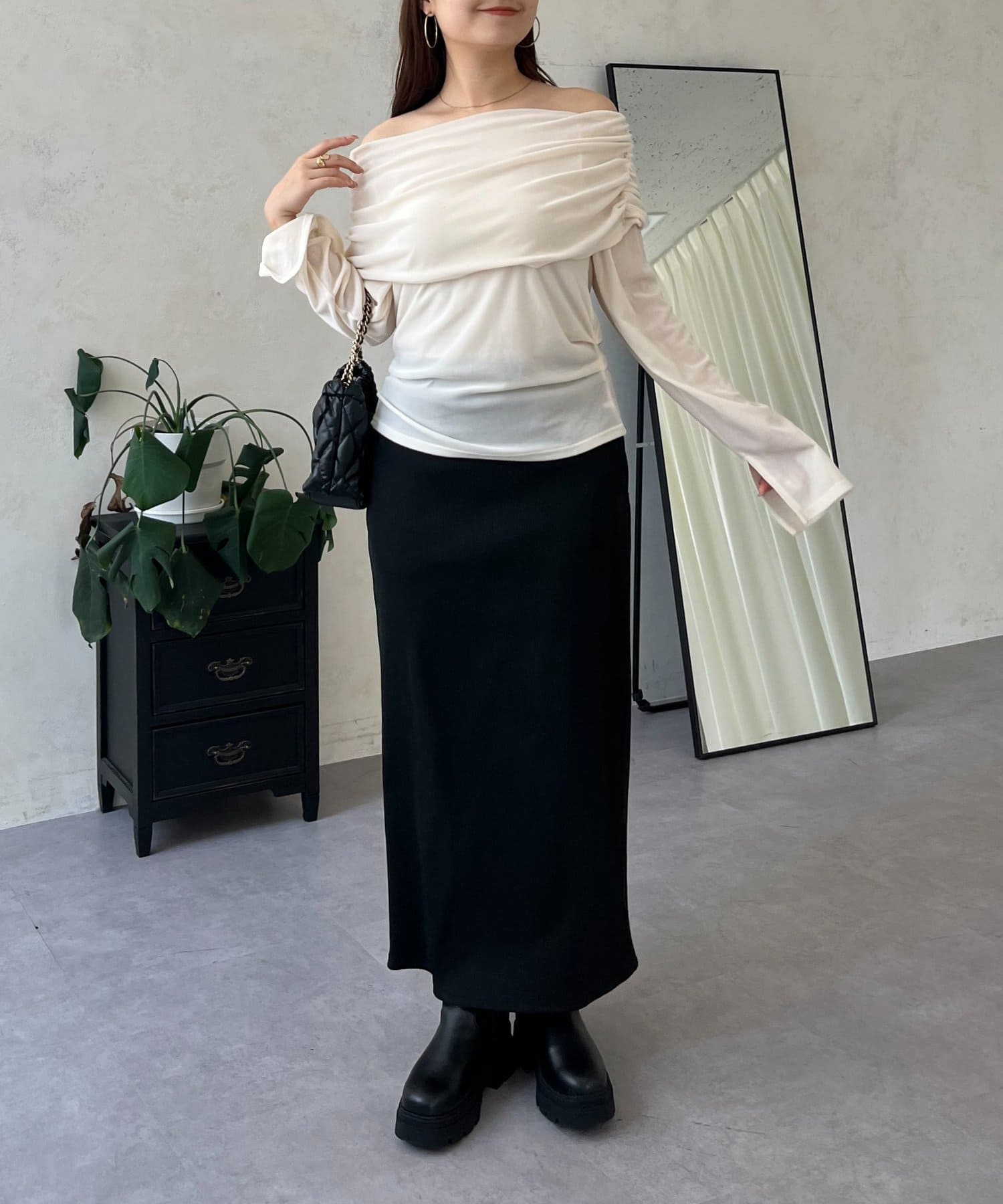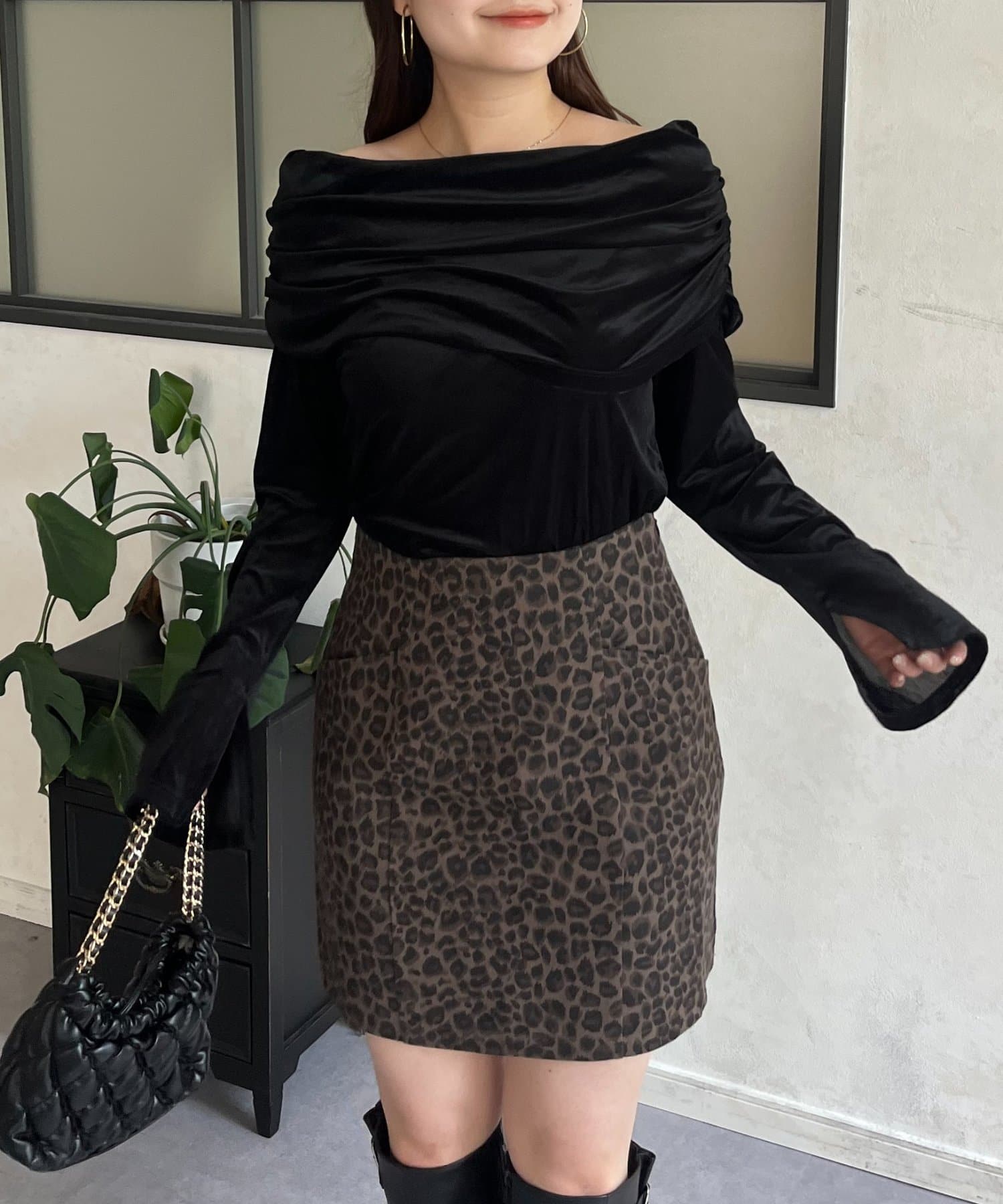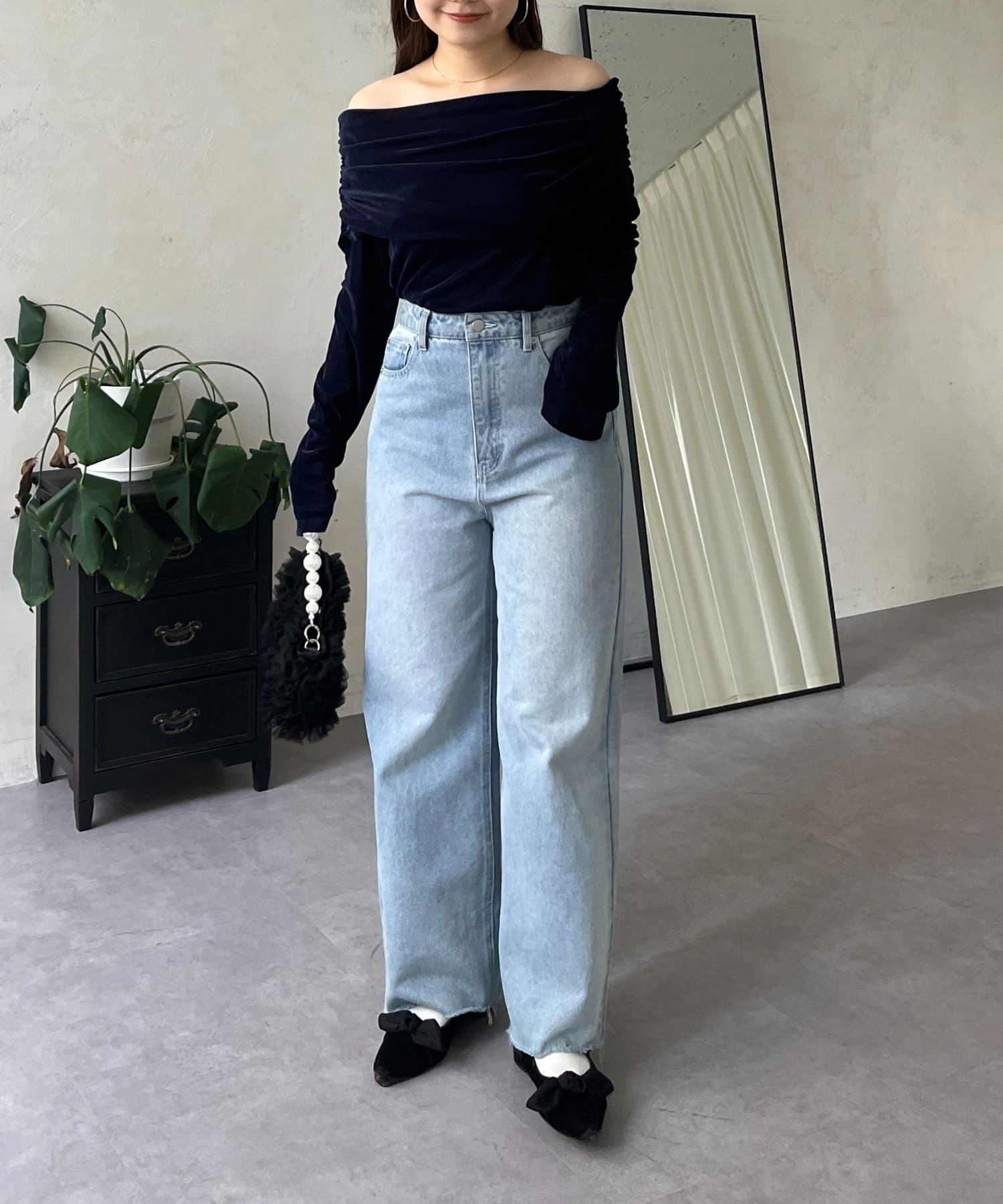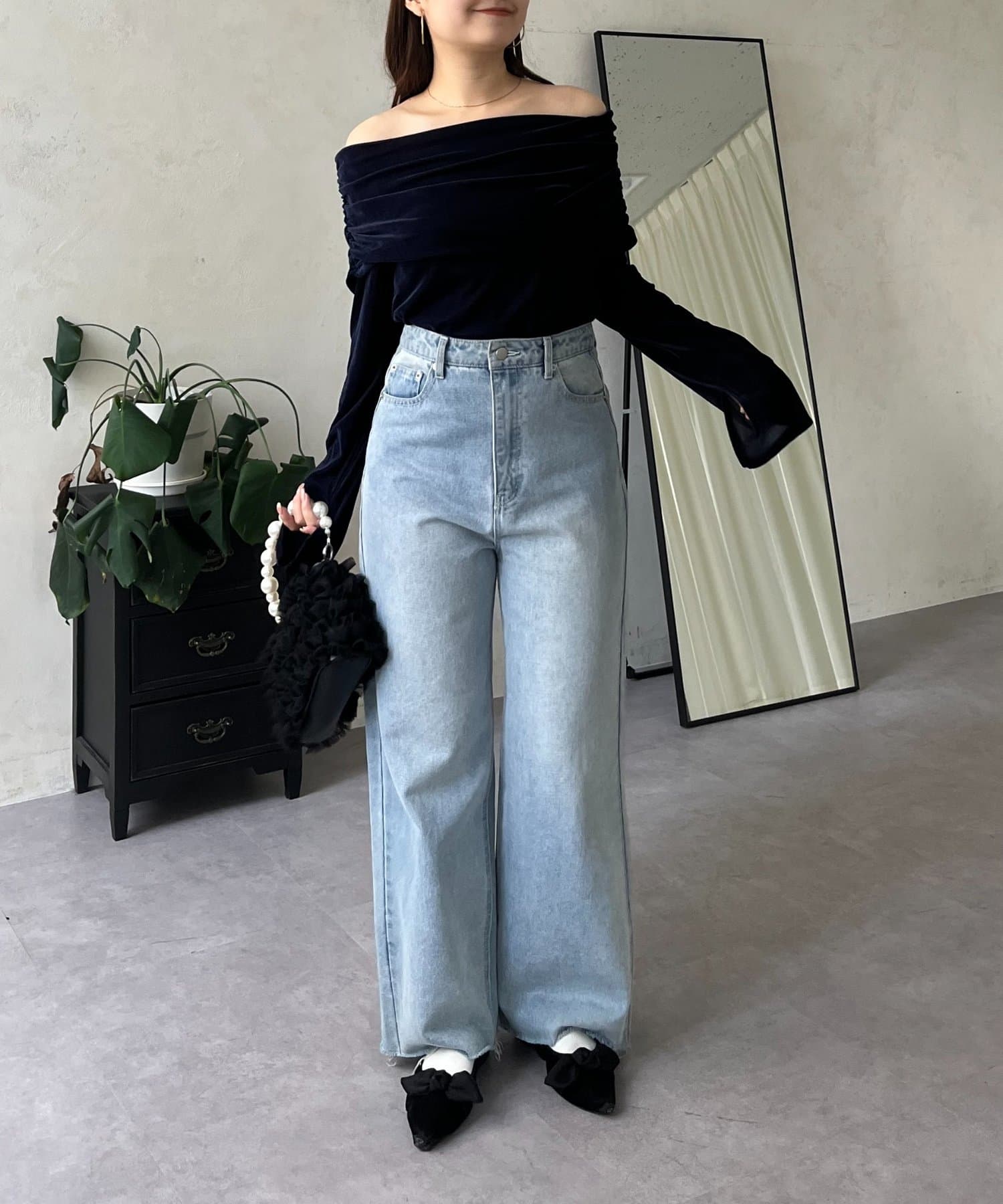 大人カジュアル/シンプル/オフショル/ベロア/ロンT