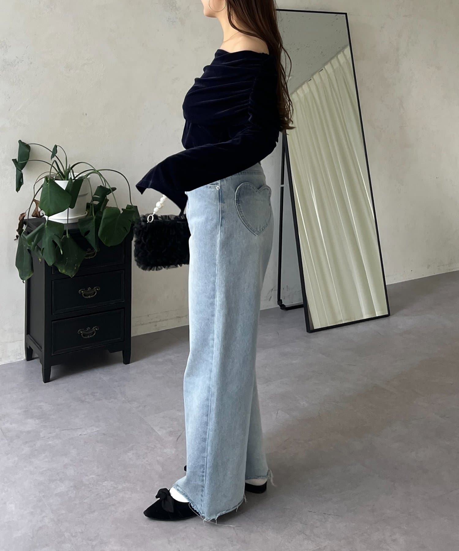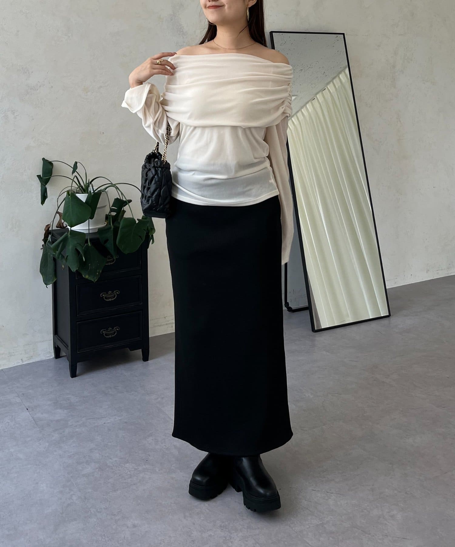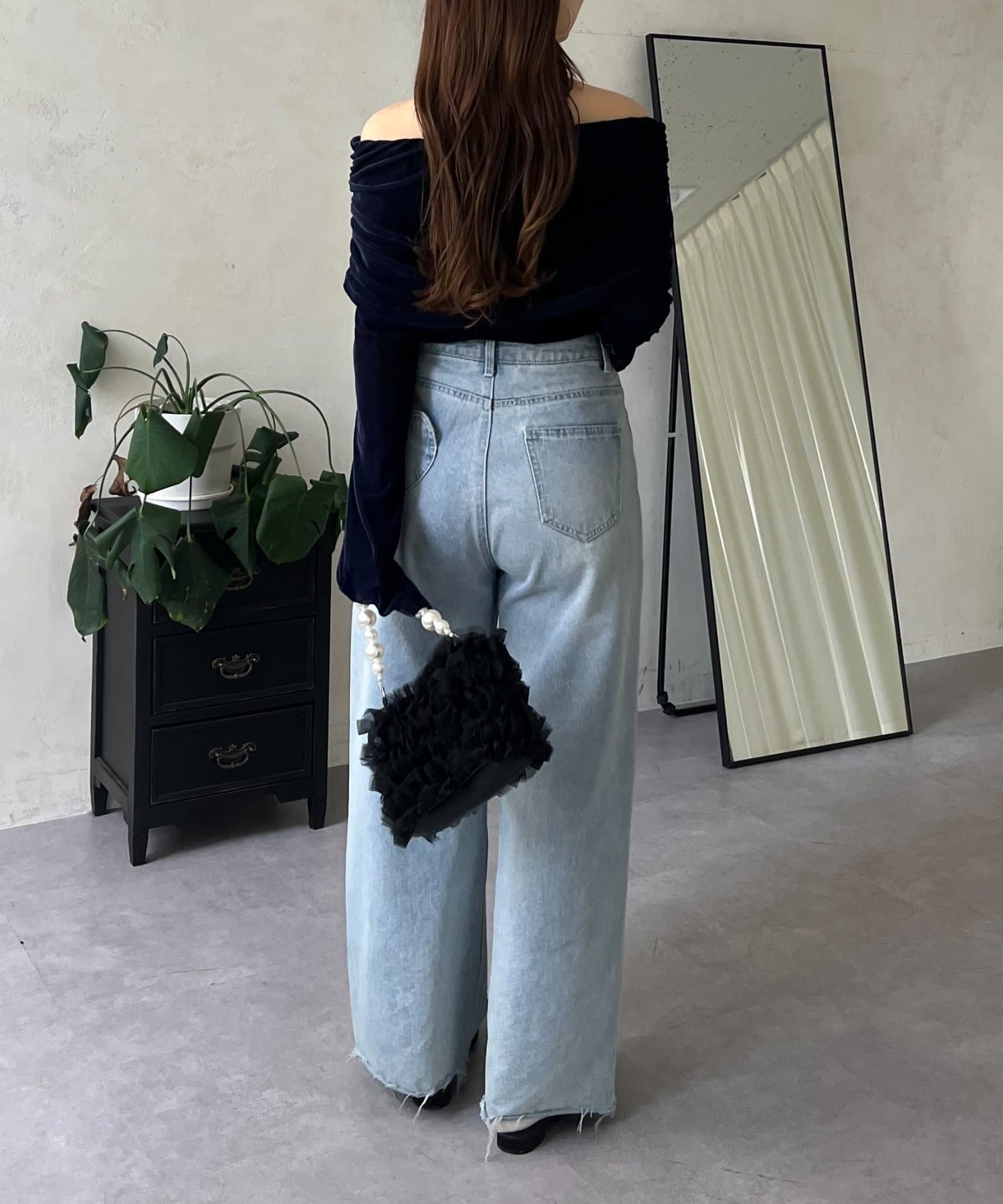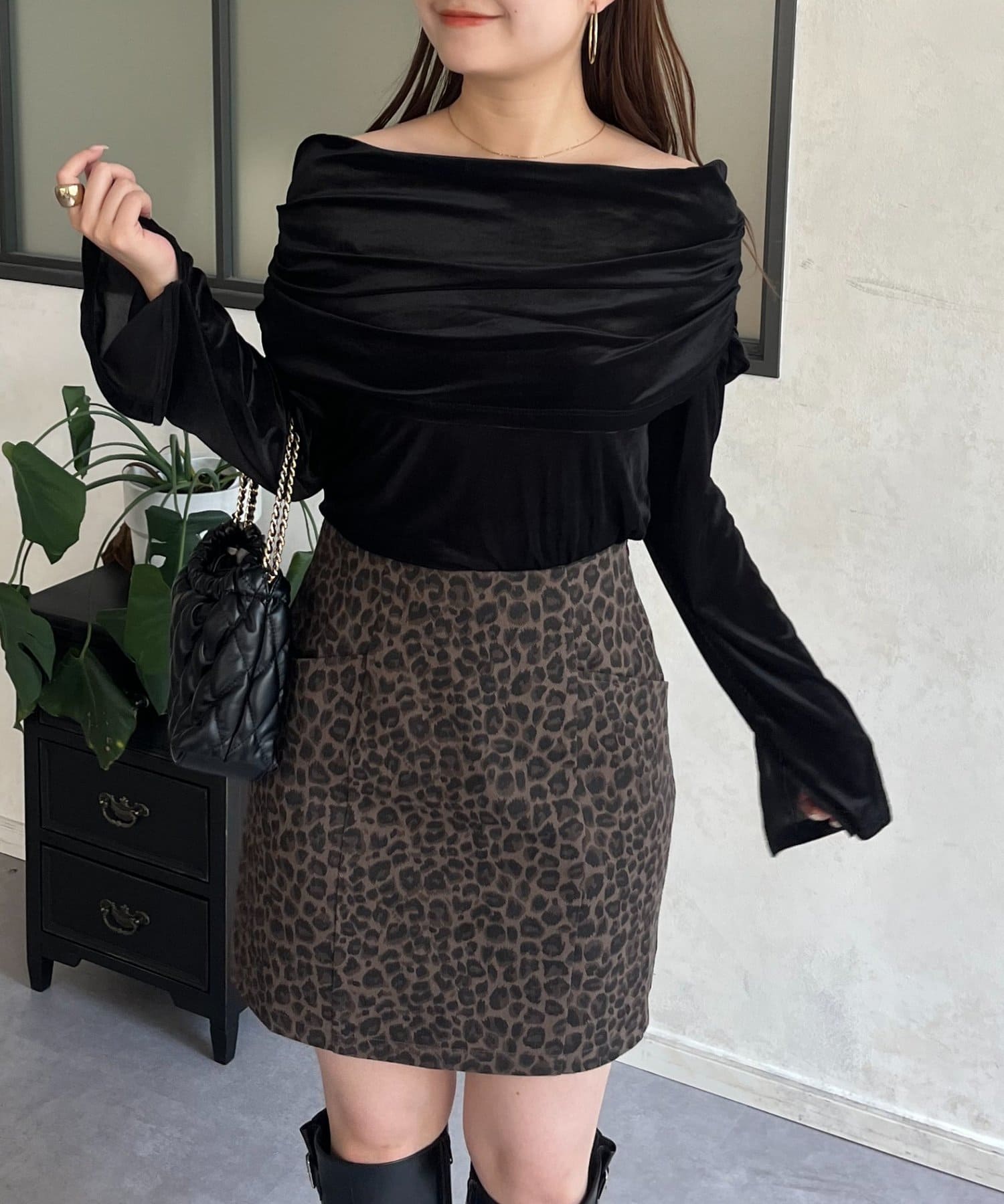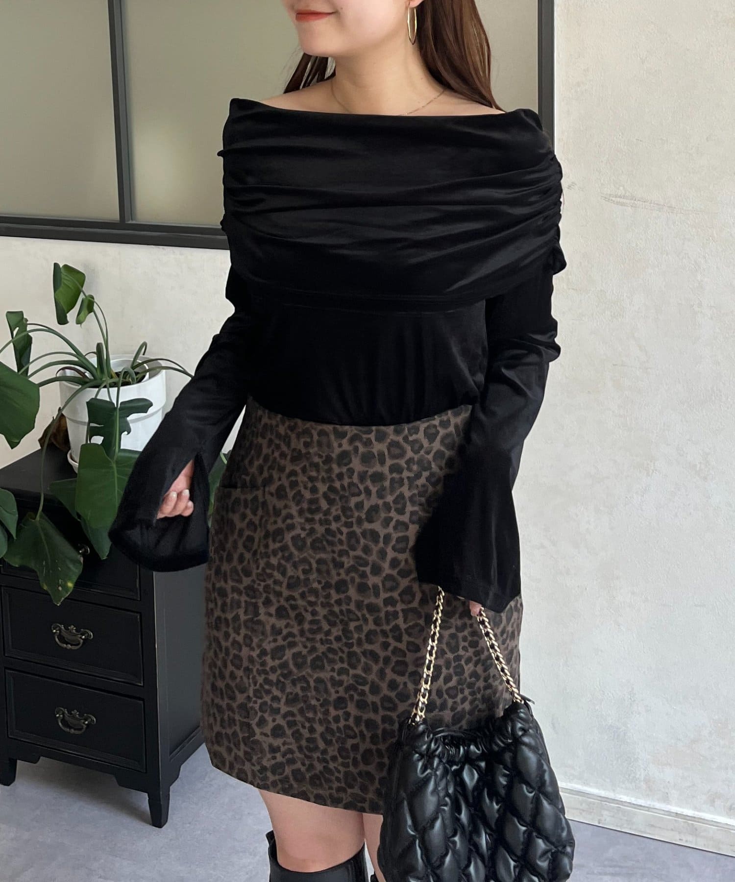 大人カジュアル/シンプル/オフショル/ベロア/ロンT
