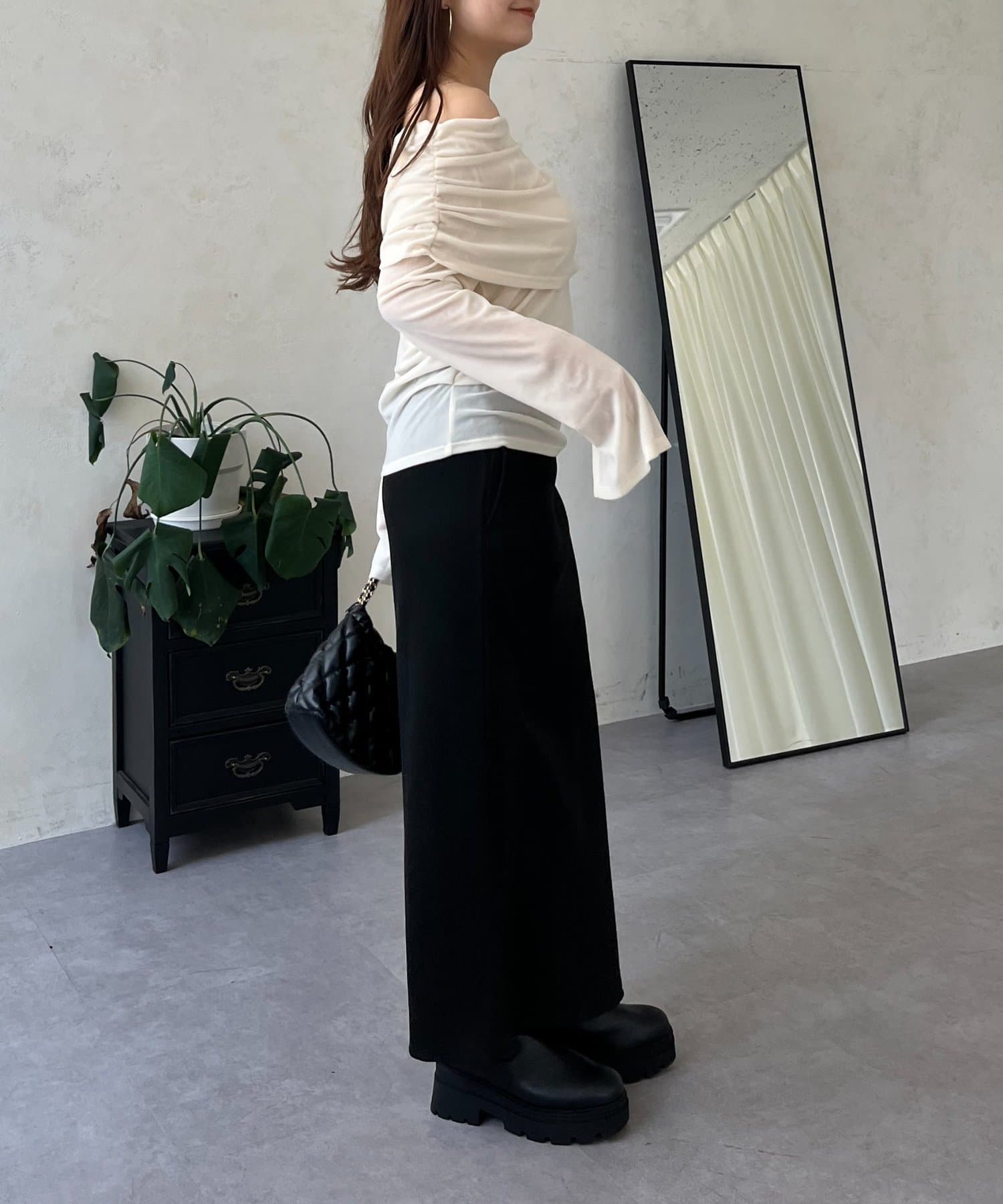 ●裾のサイドにタックが入っているのでインしなくてもオシャレ見え!