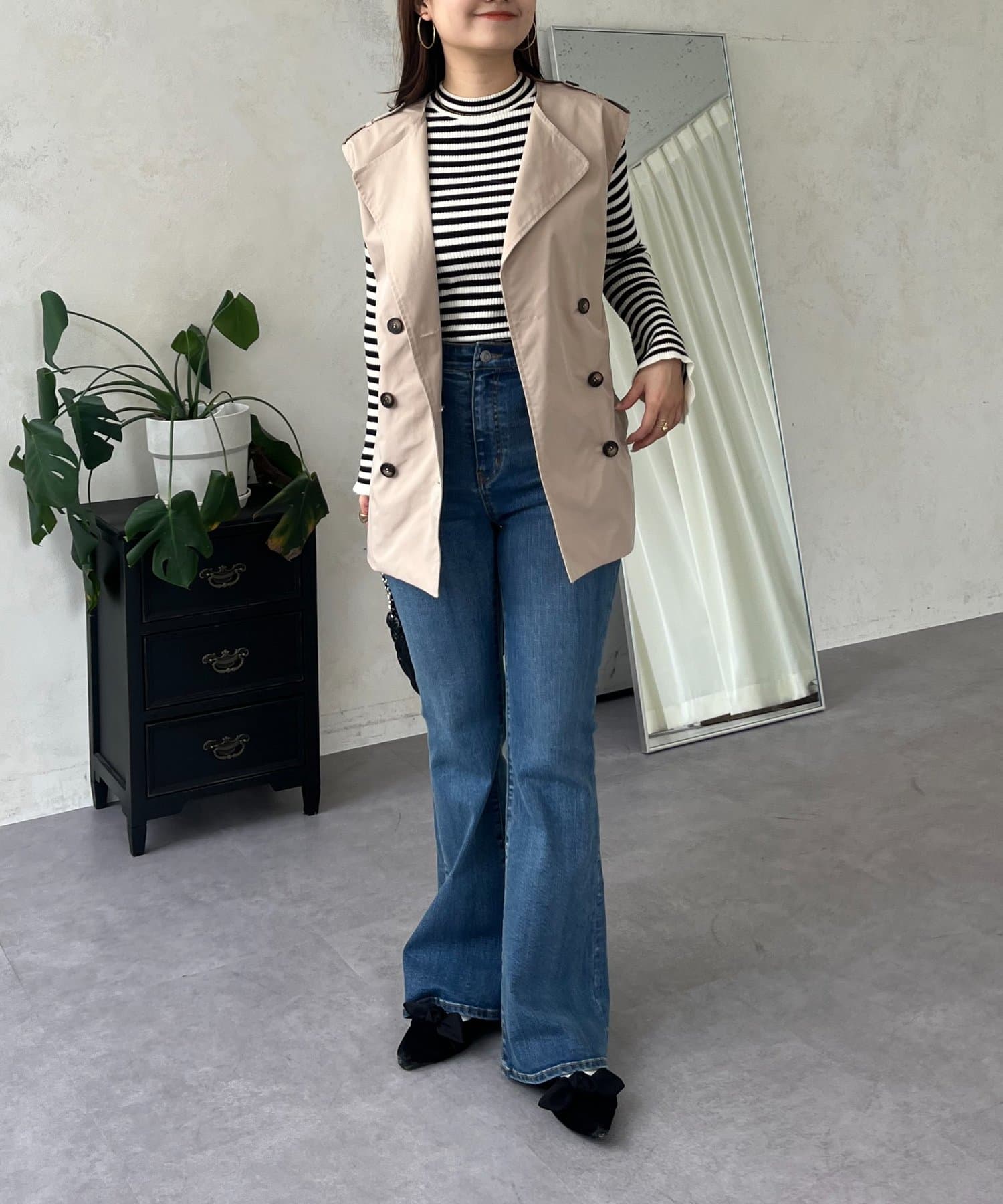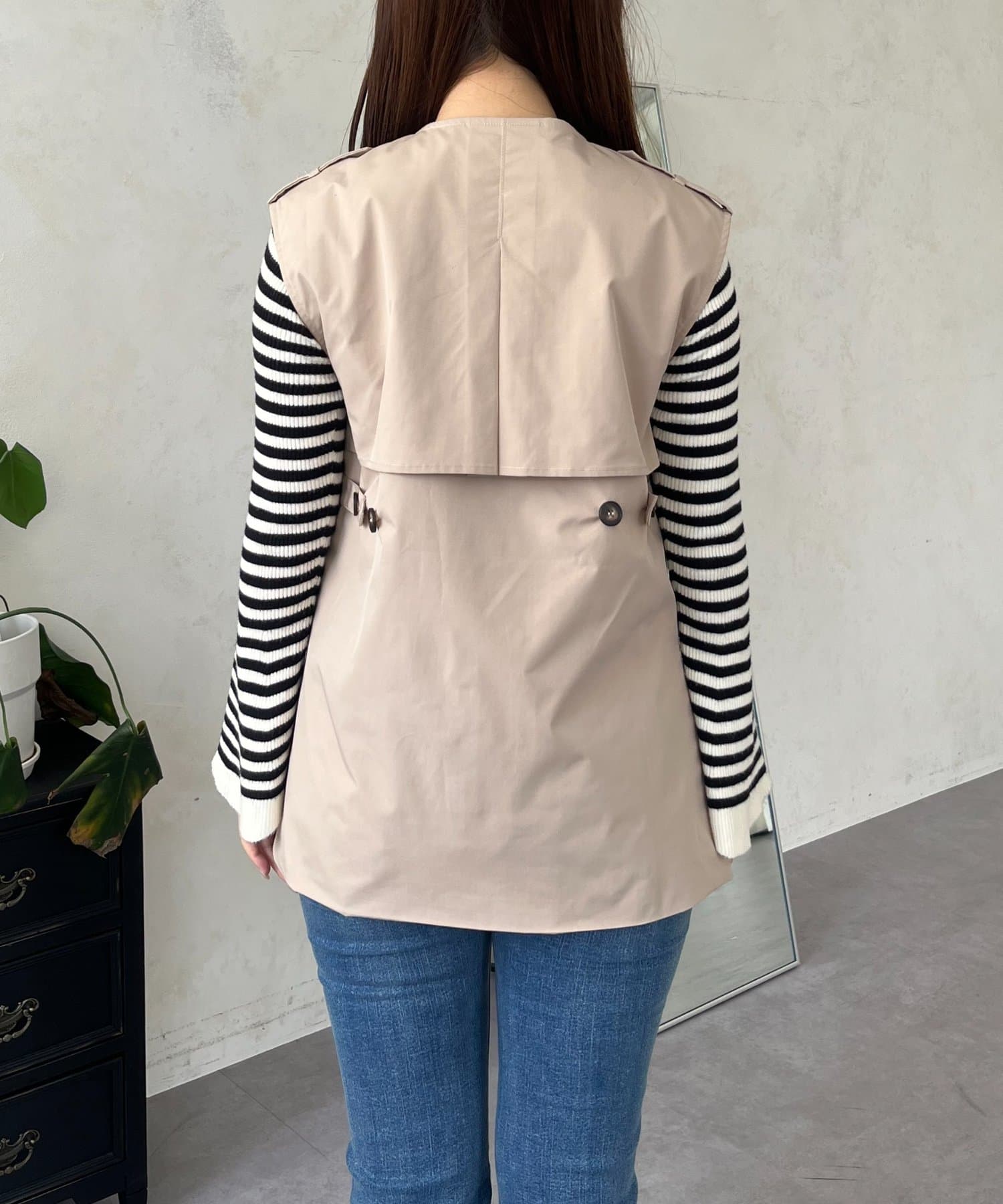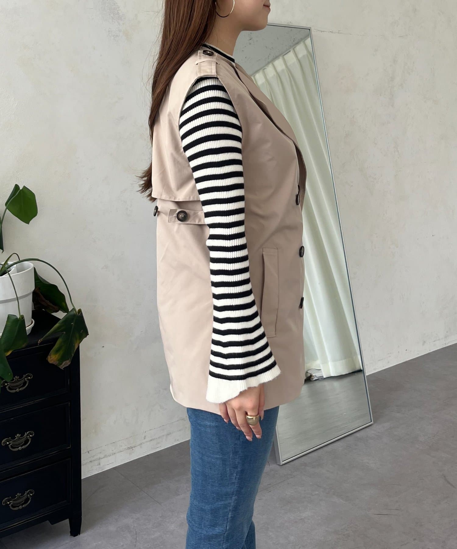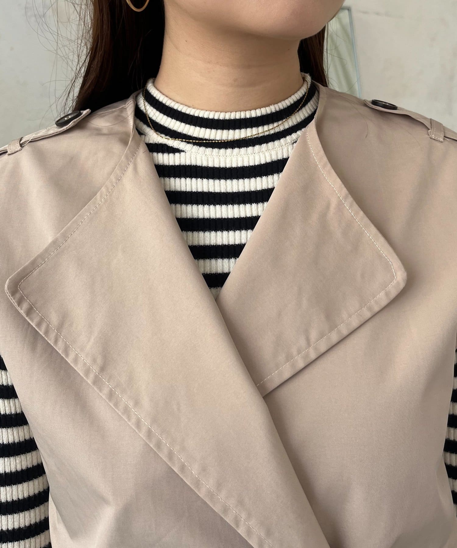 コーディネートの主役になるトレンチ風ジレ
