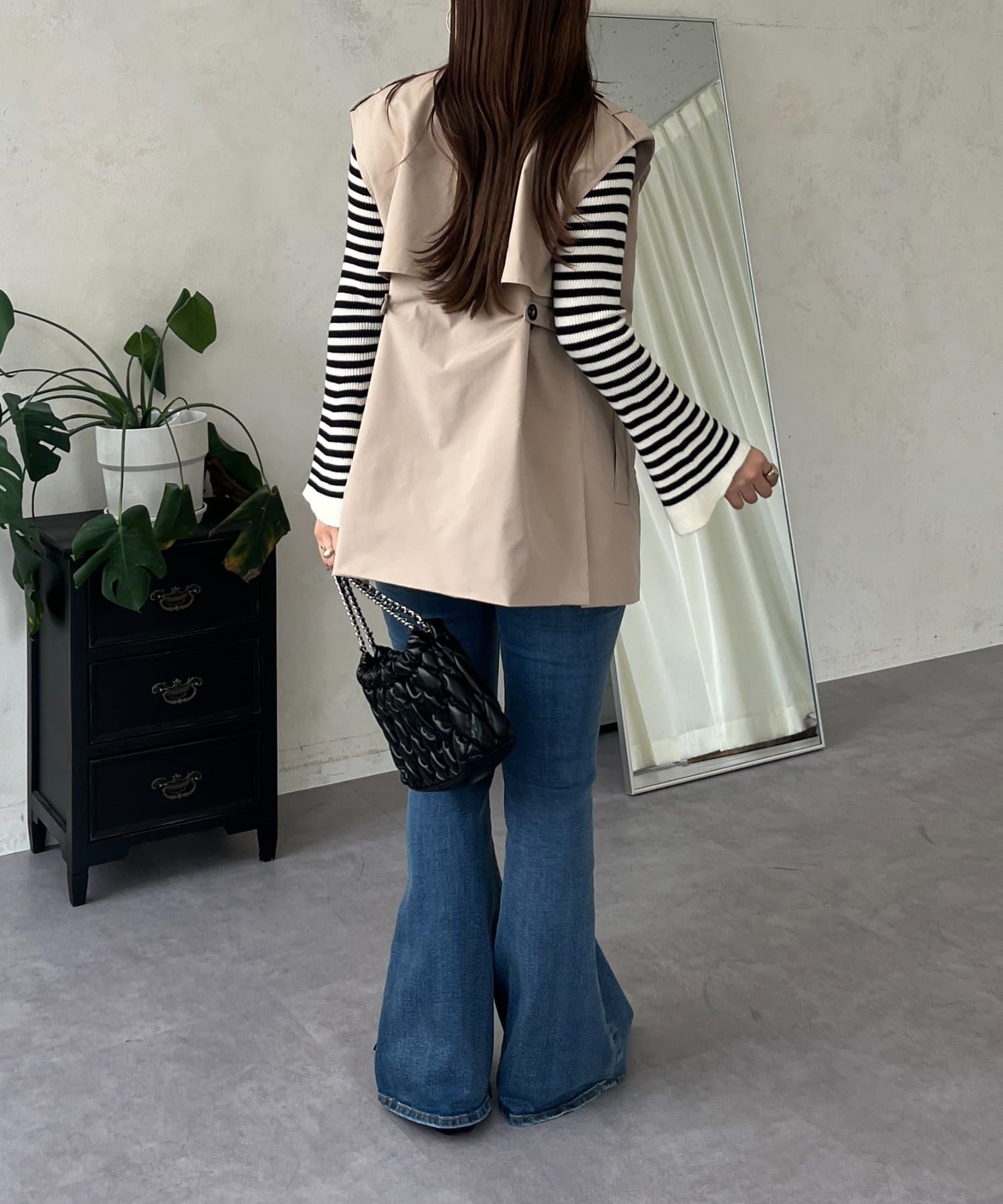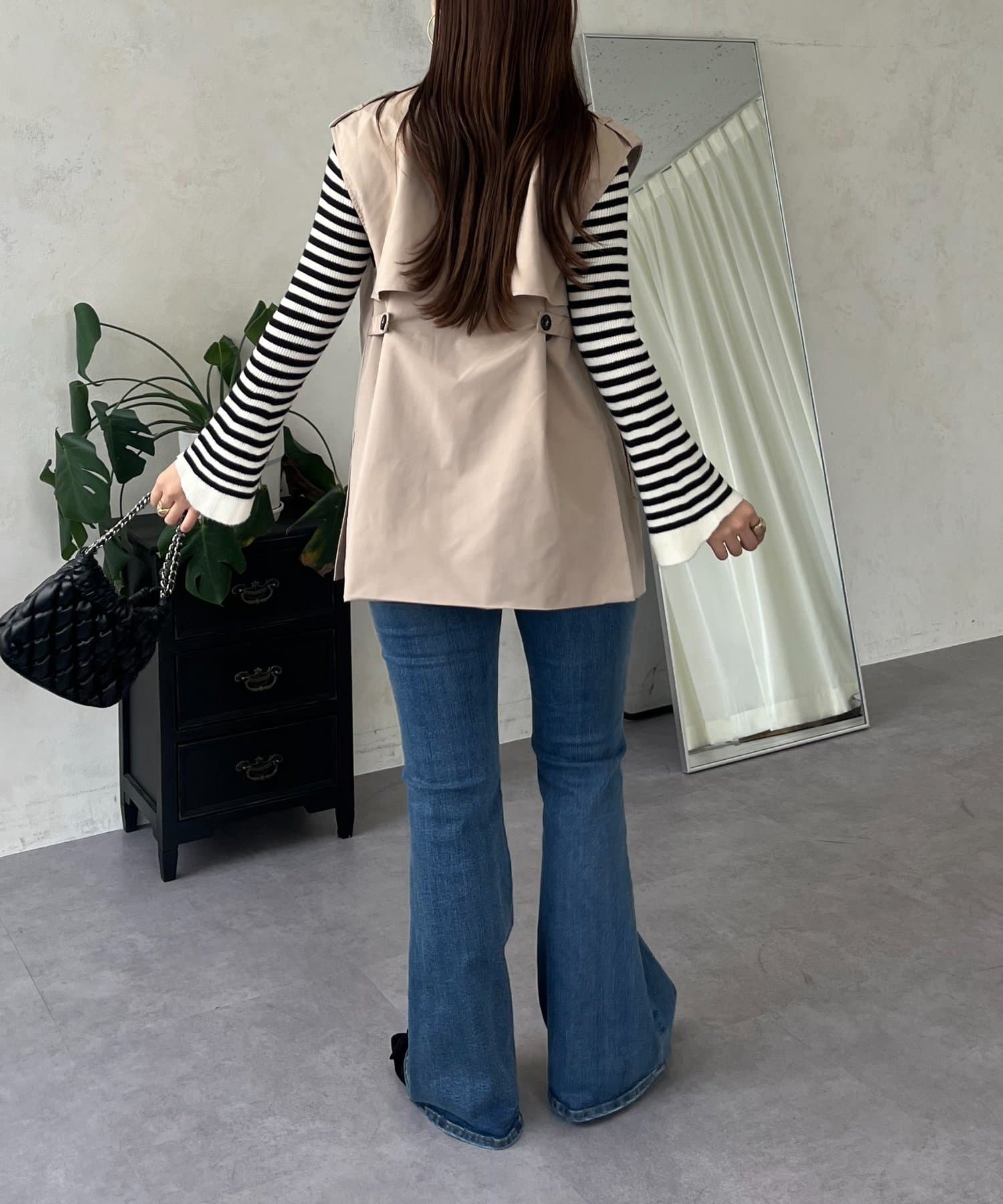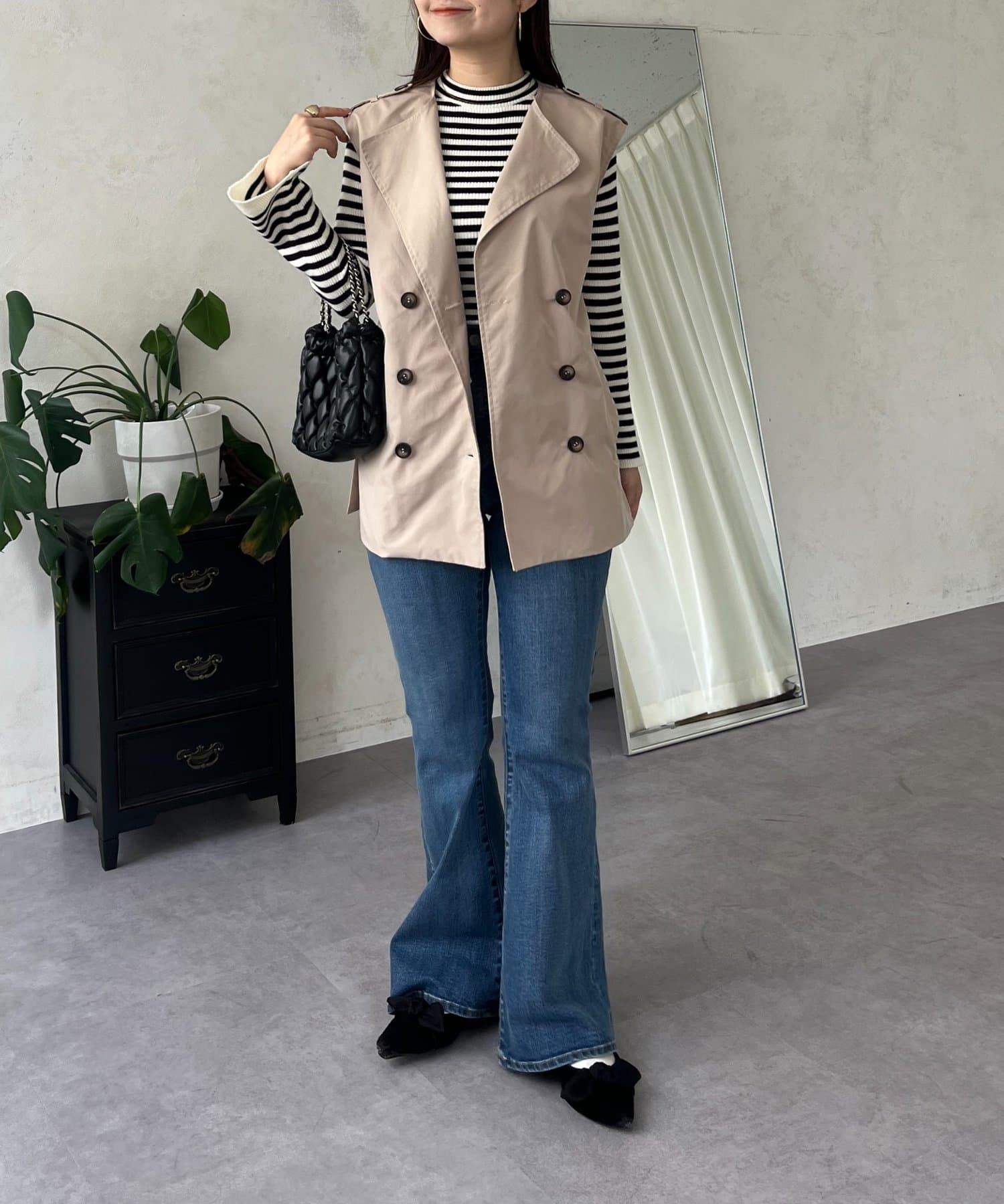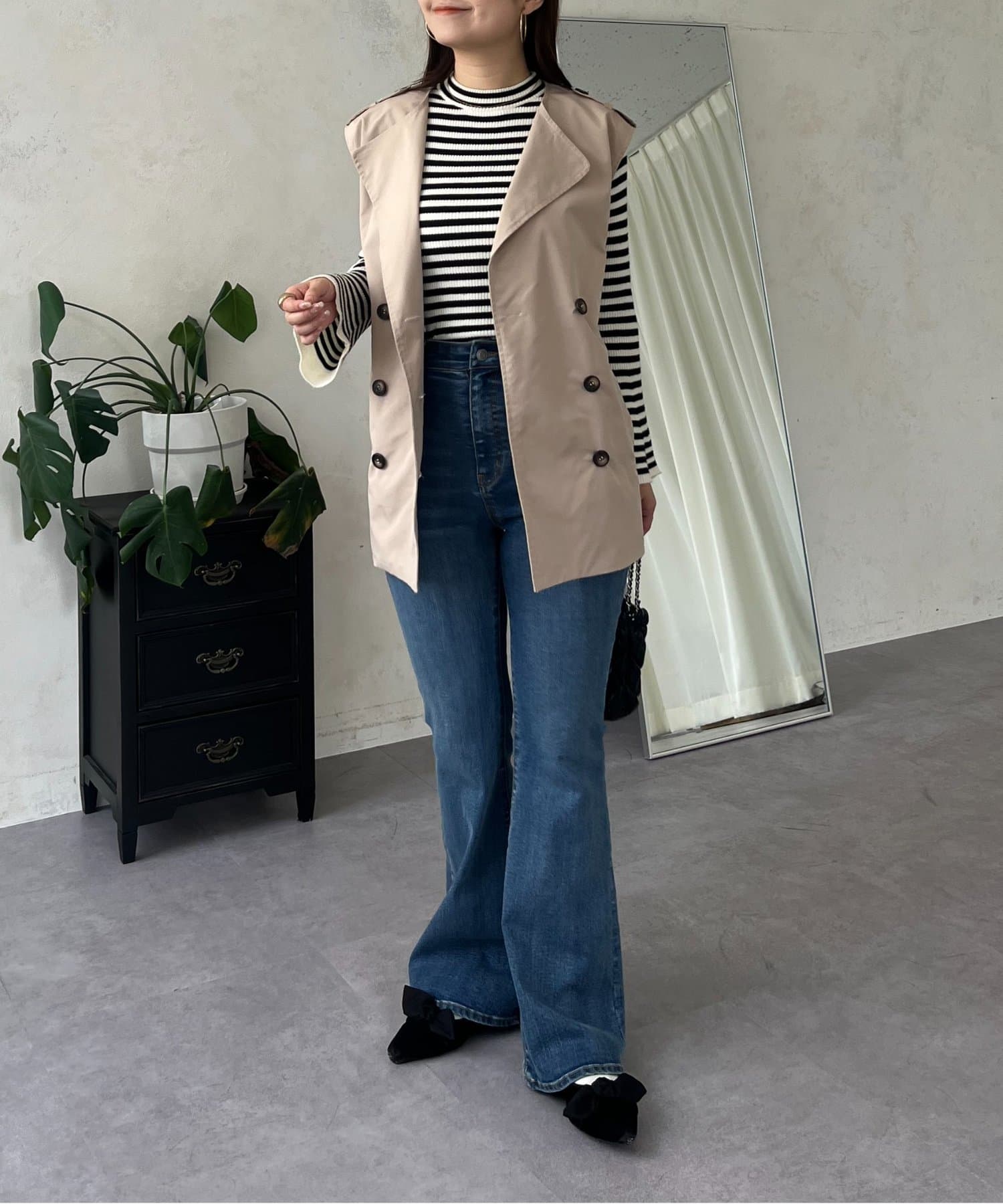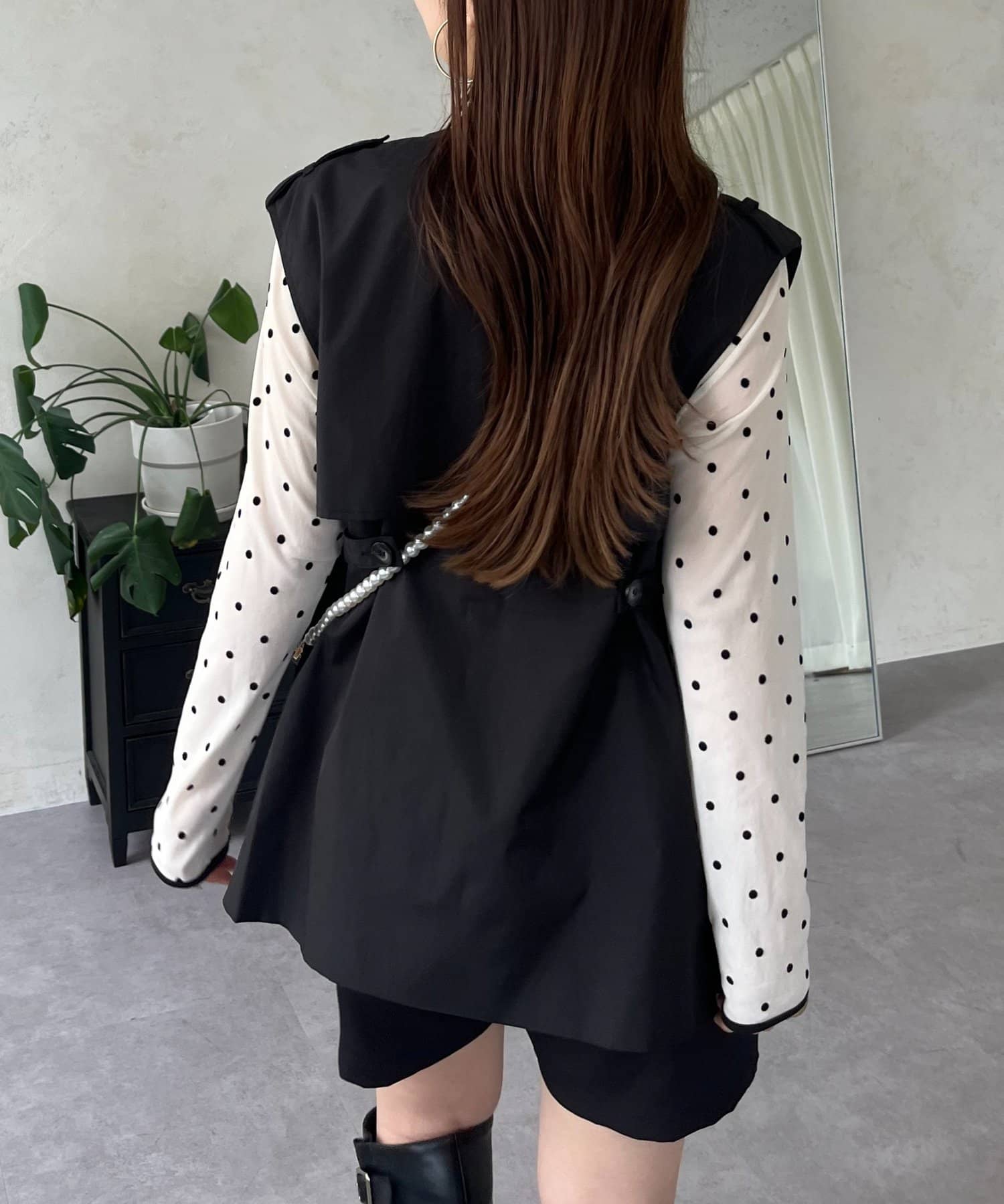 コーディネートの主役になるトレンチ風ジレ
