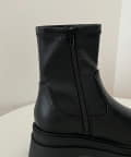 脚長効果UP厚底太ヒールトレッチショートブーツ!
