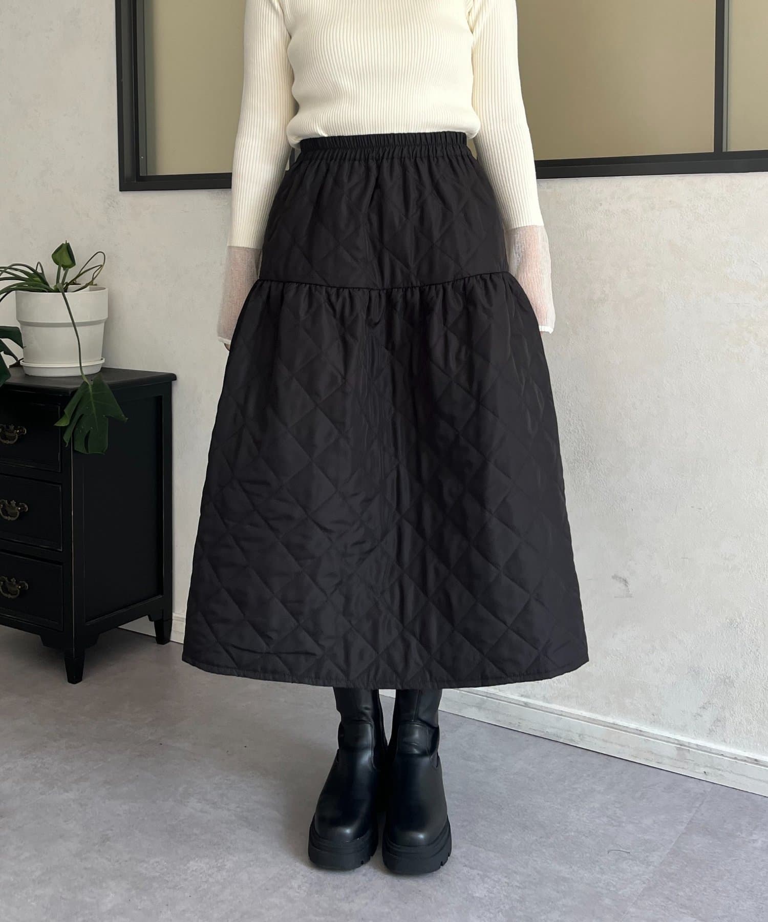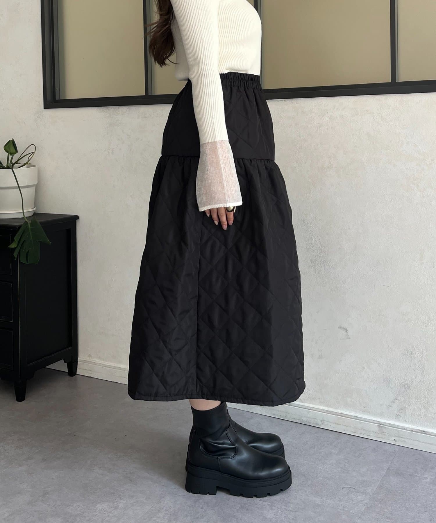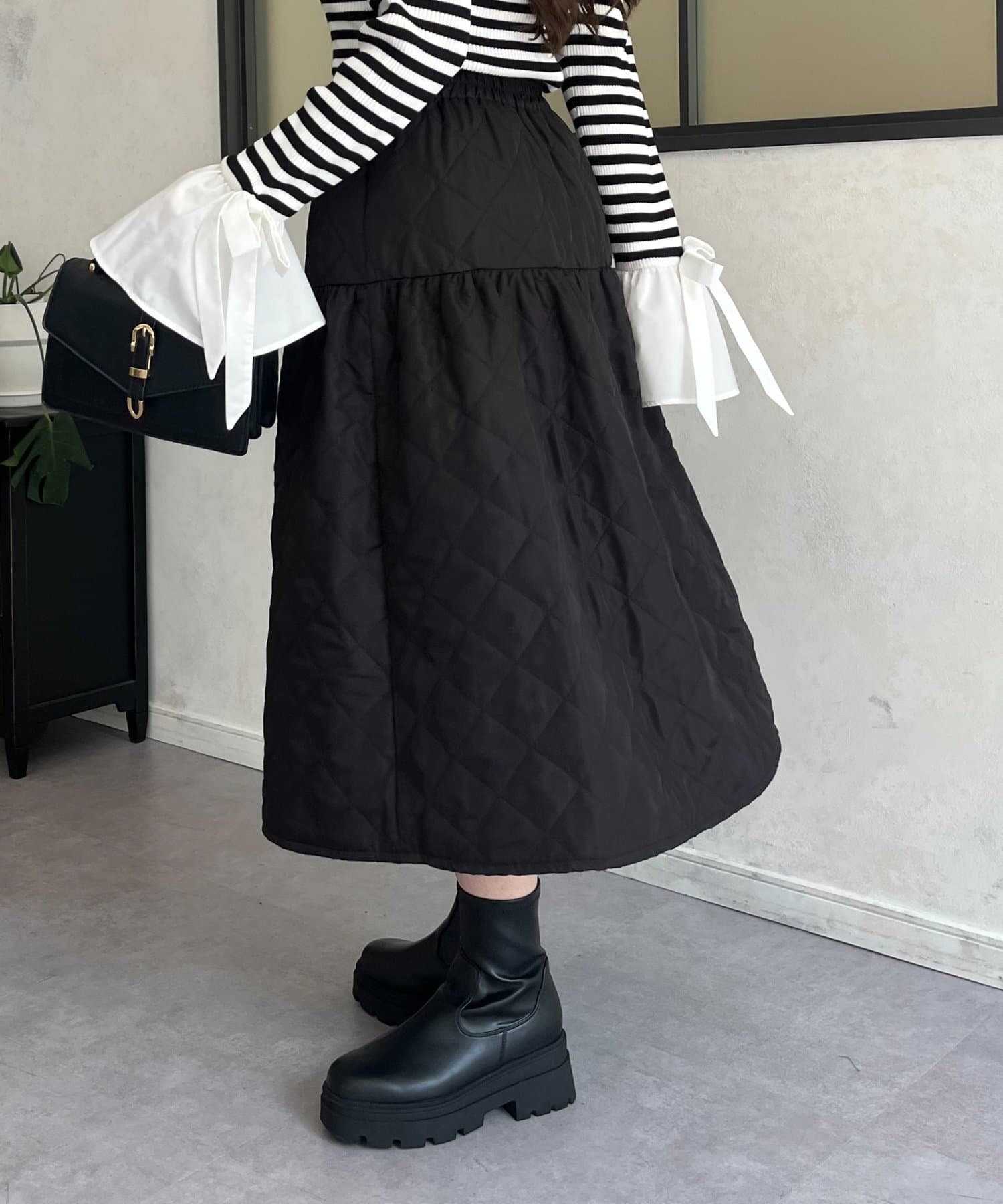 キルティングボリュームフレアスカート