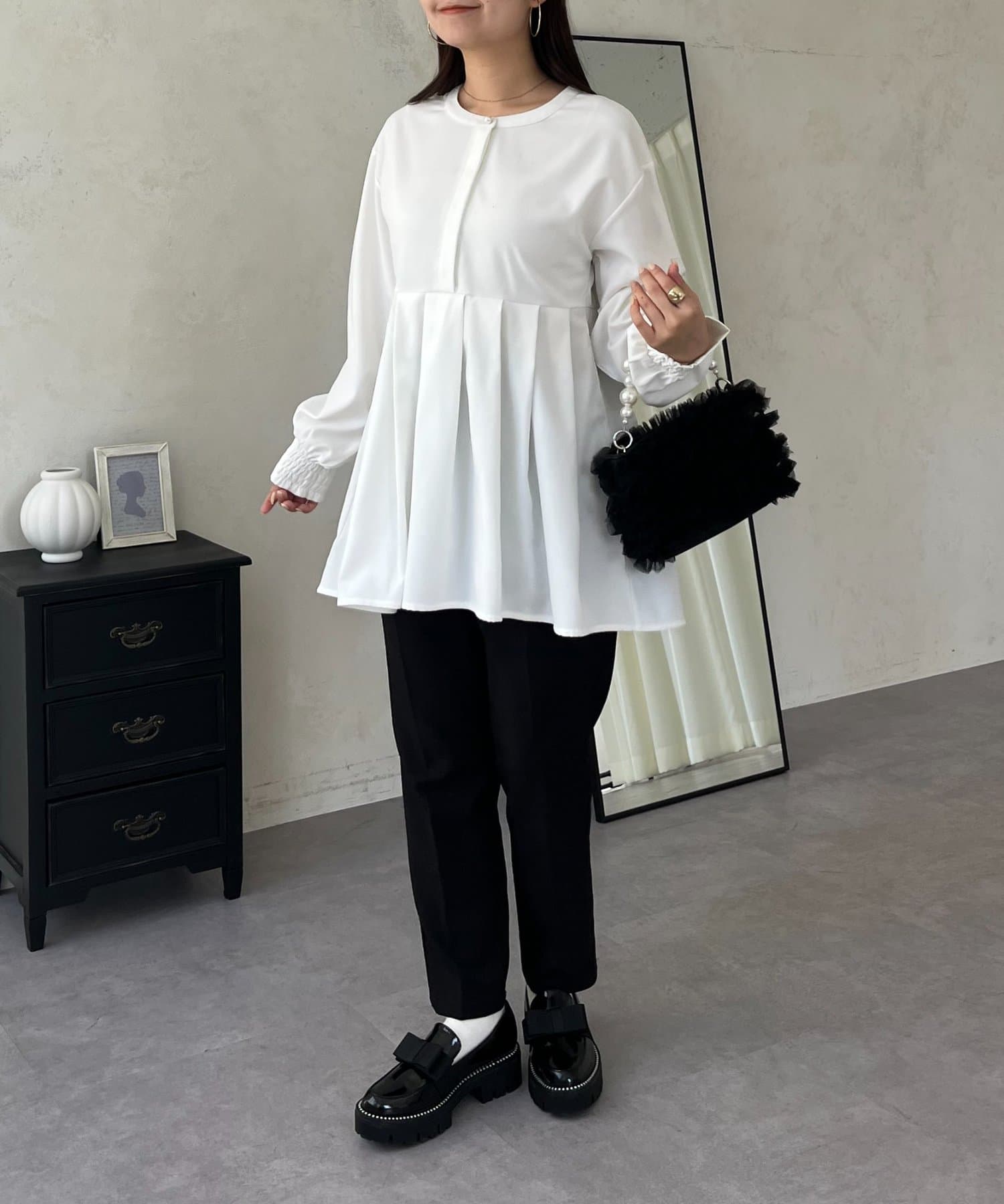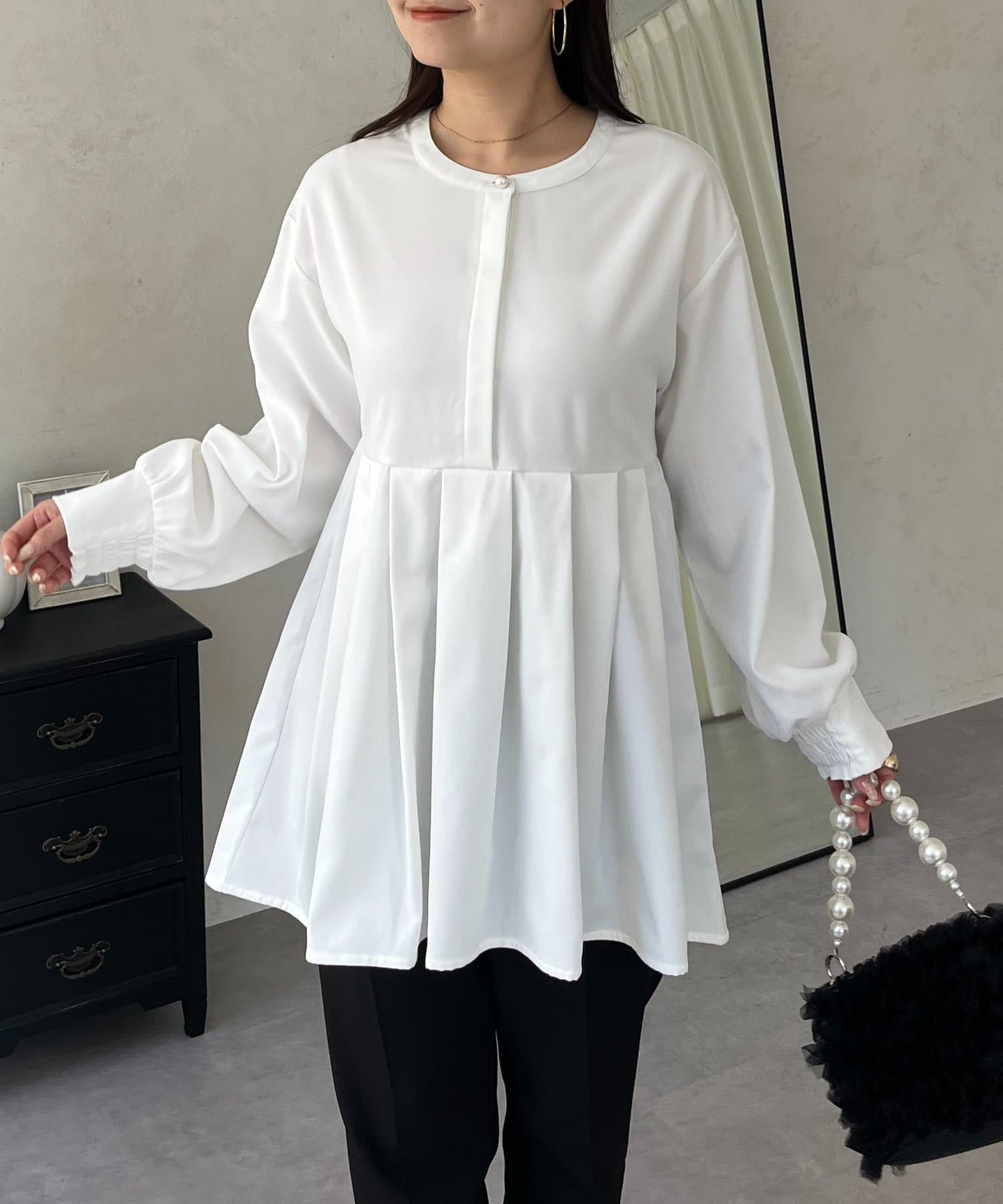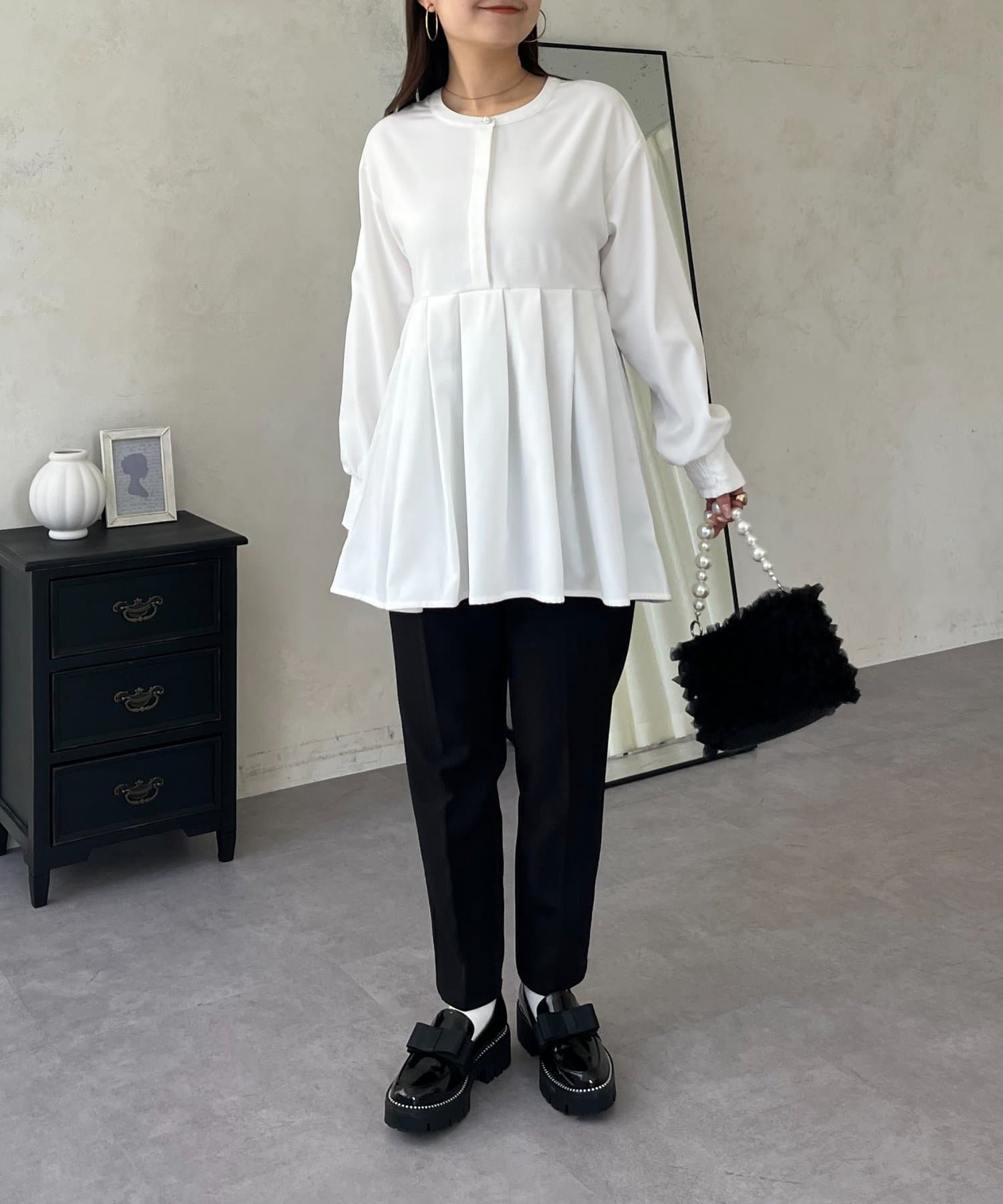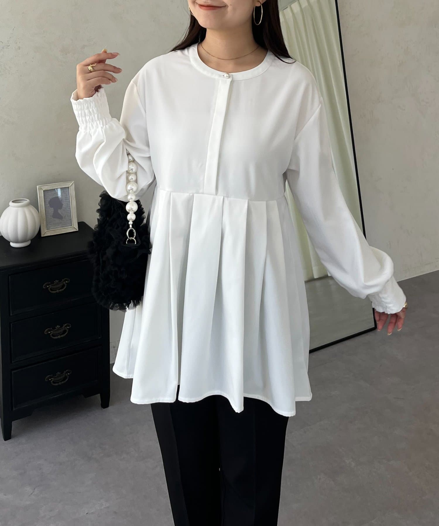 • prose verse(プロズヴェール) パールボタンタックプリーツペプラムブラウス