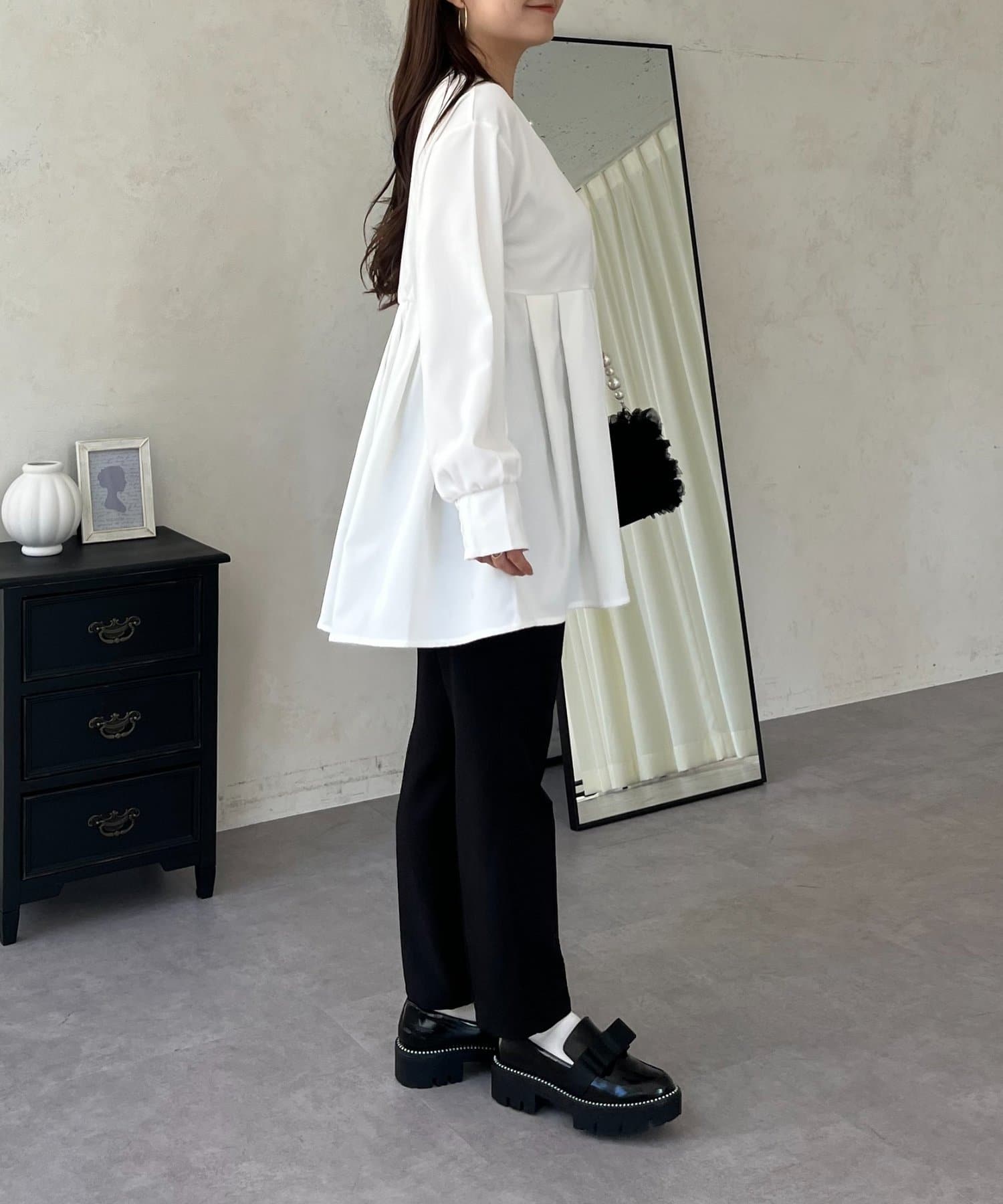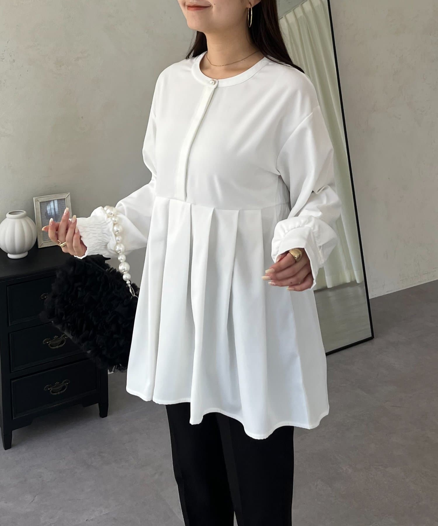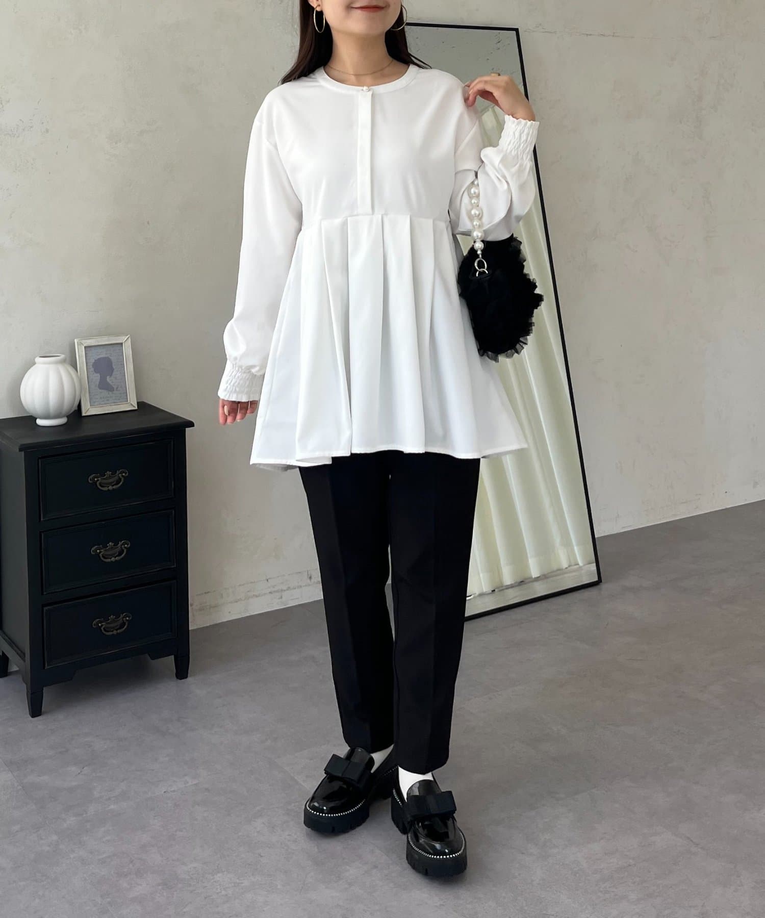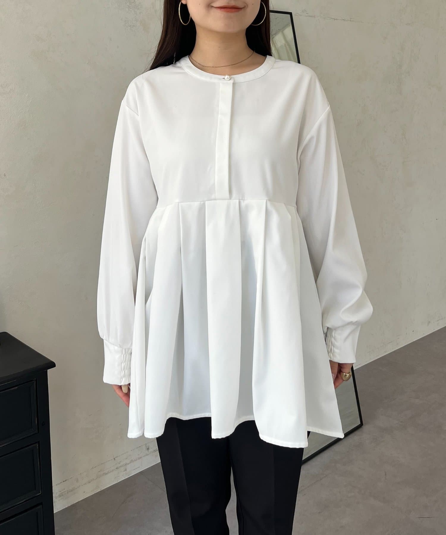 • prose verse(プロズヴェール) パールボタンタックプリーツペプラムブラウス