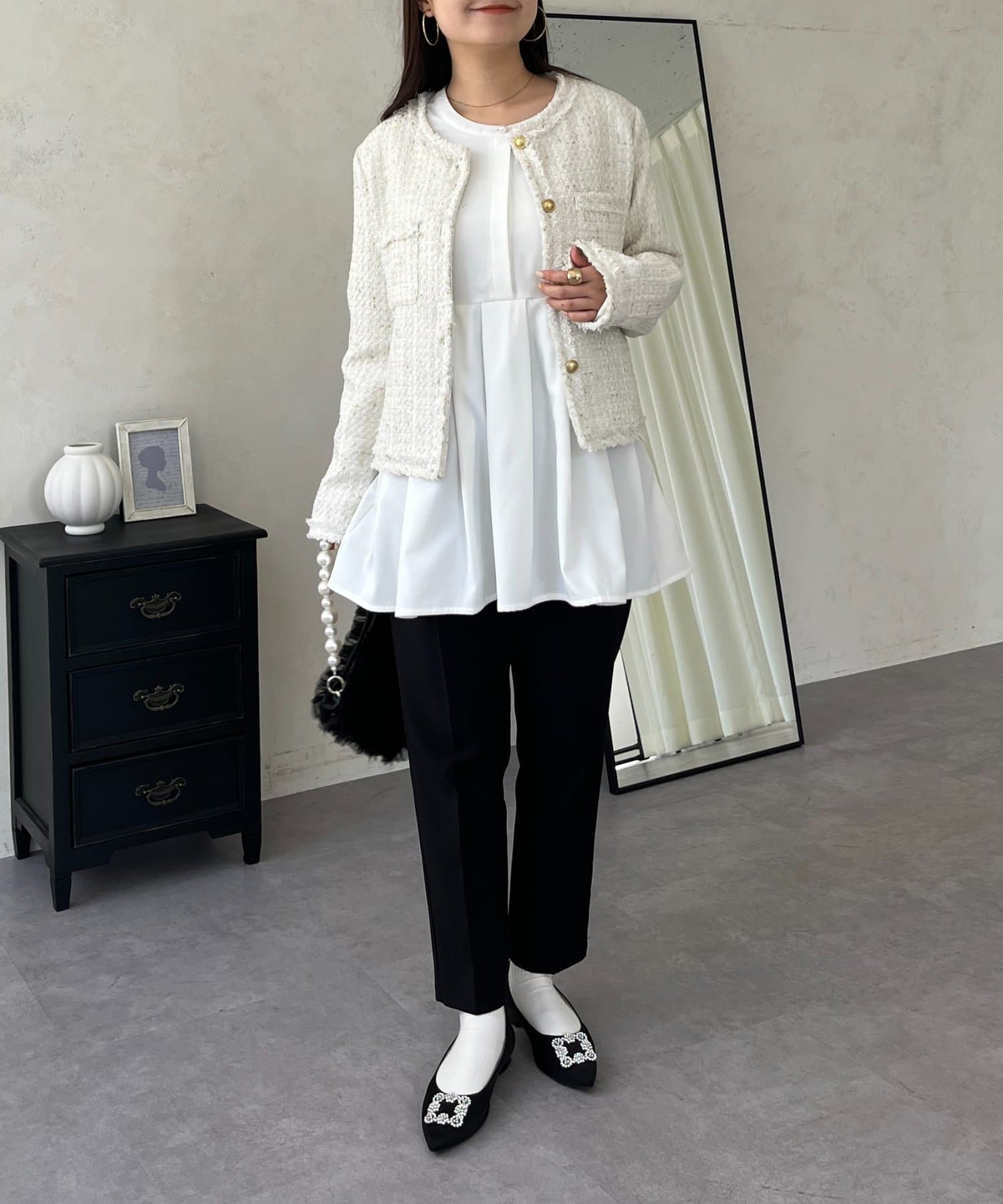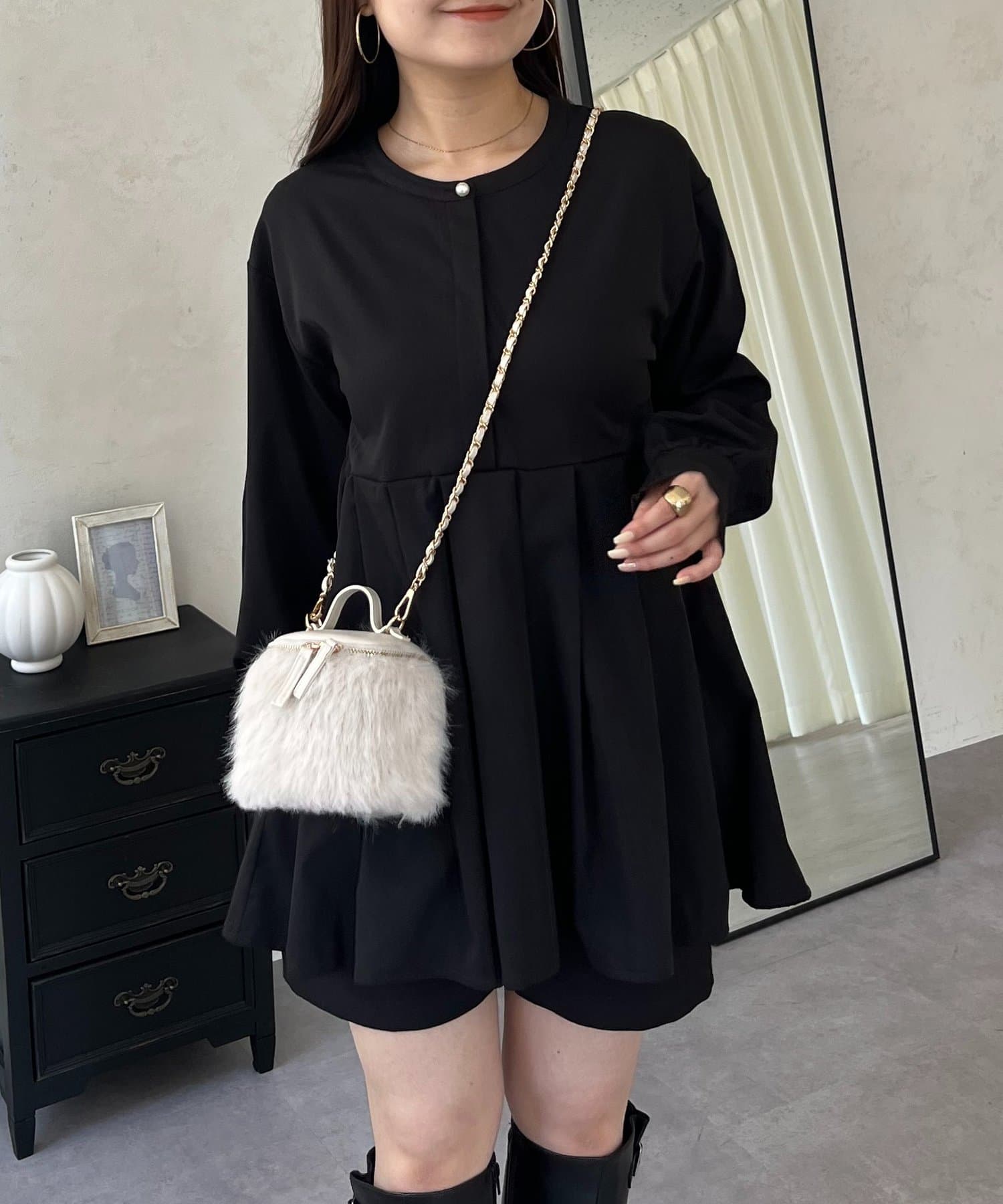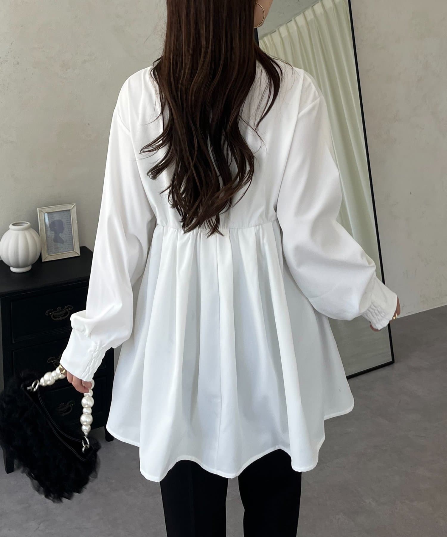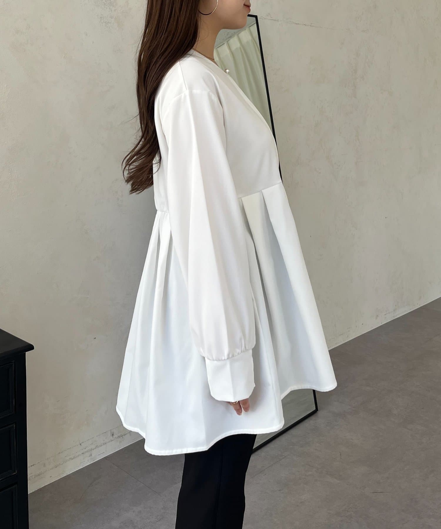 • prose verse(プロズヴェール) パールボタンタックプリーツペプラムブラウス
