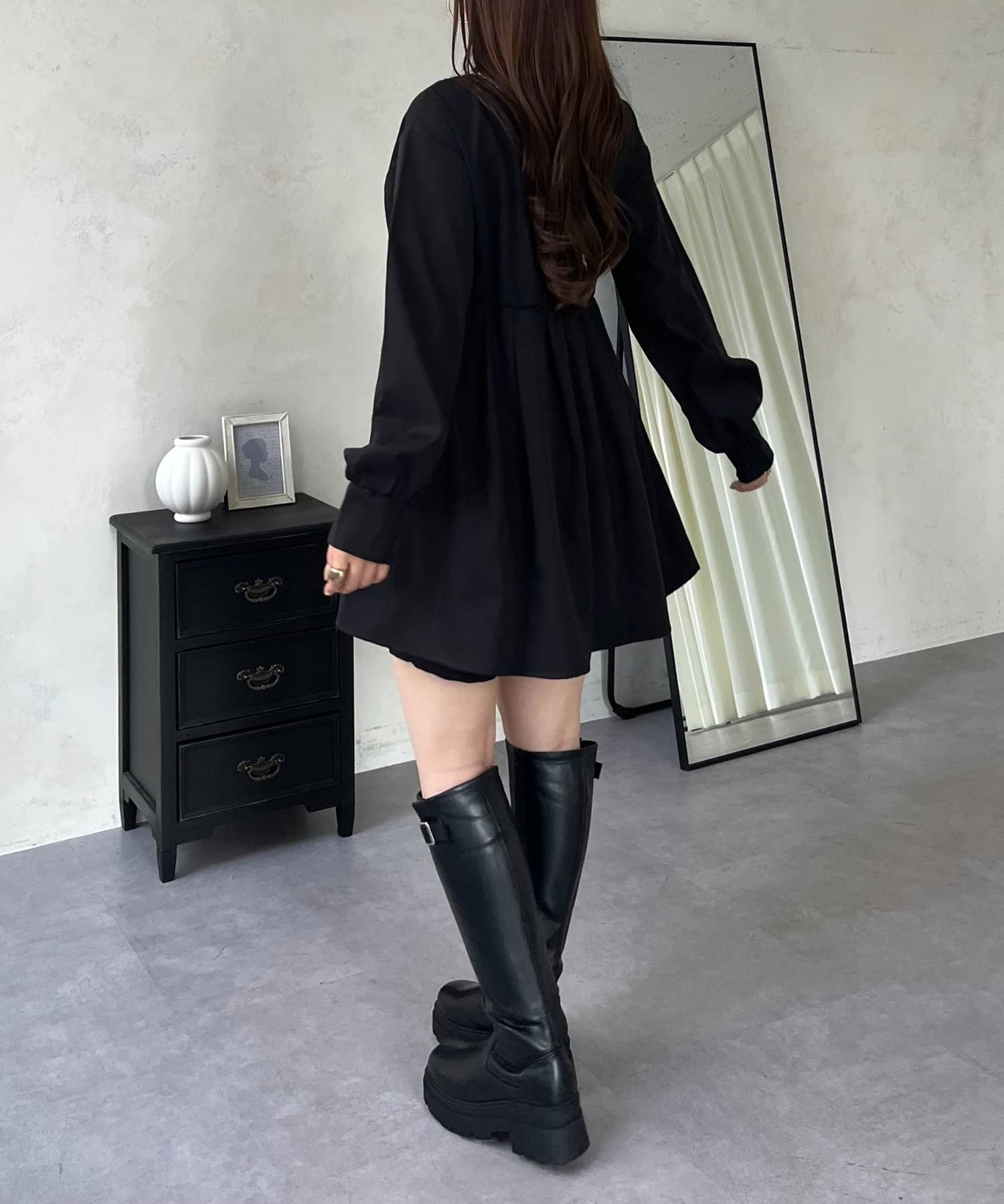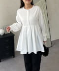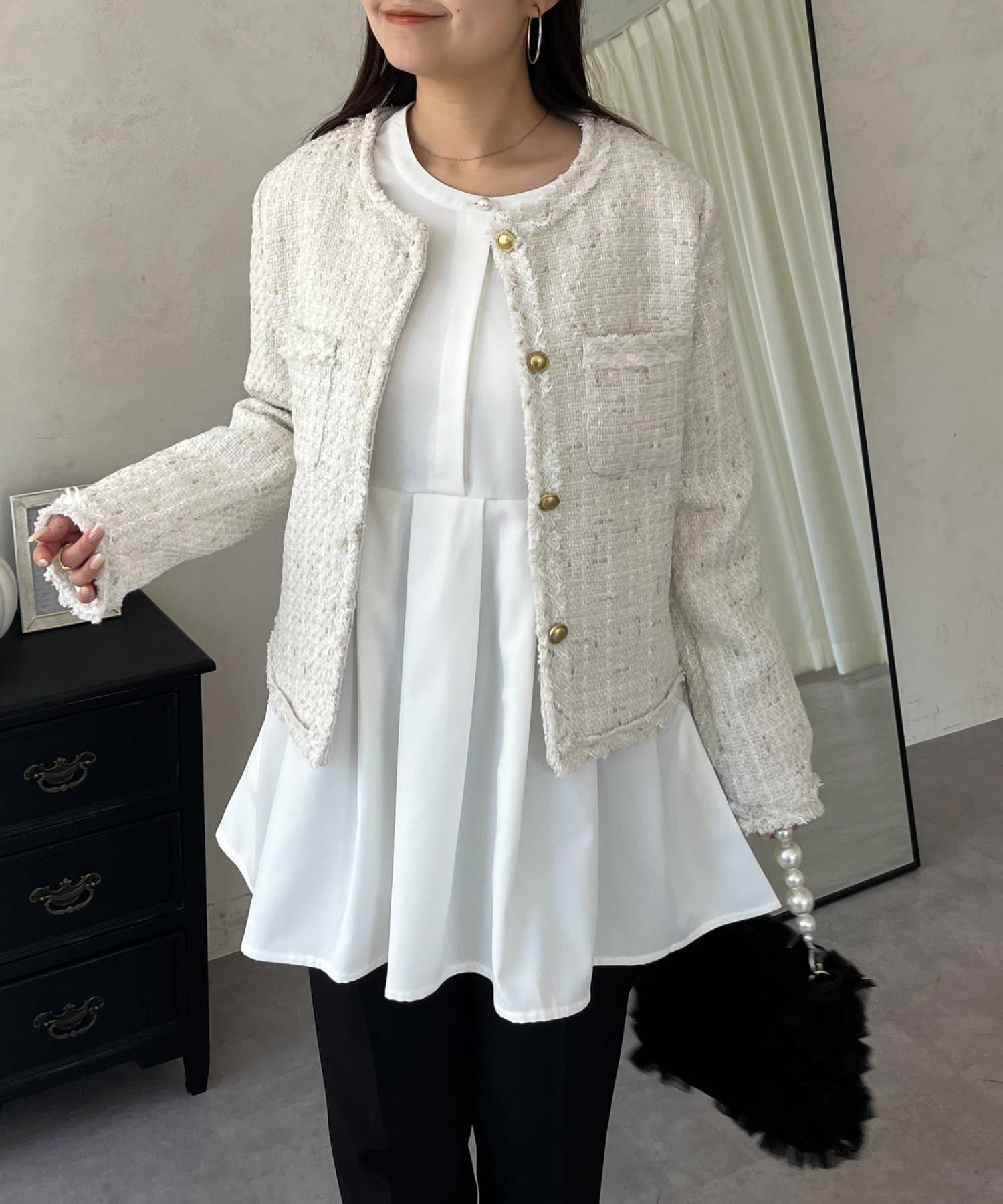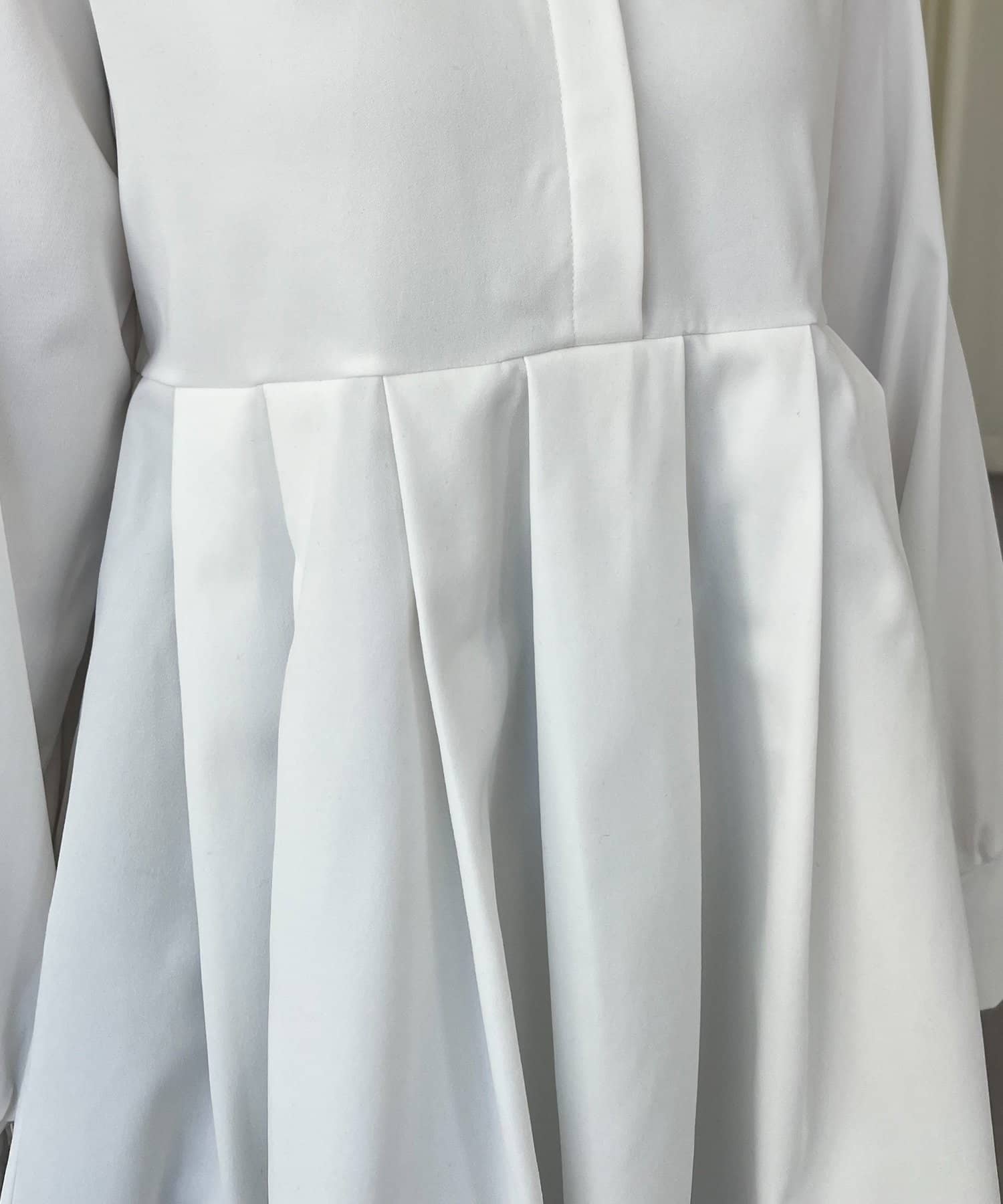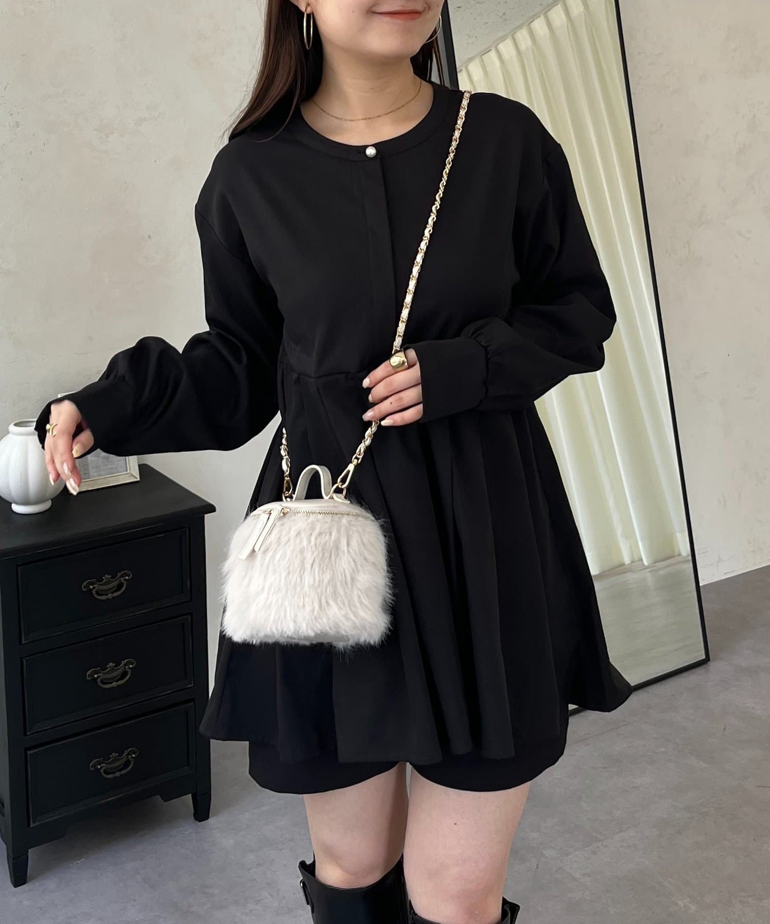 • prose verse(プロズヴェール) パールボタンタックプリーツペプラムブラウス