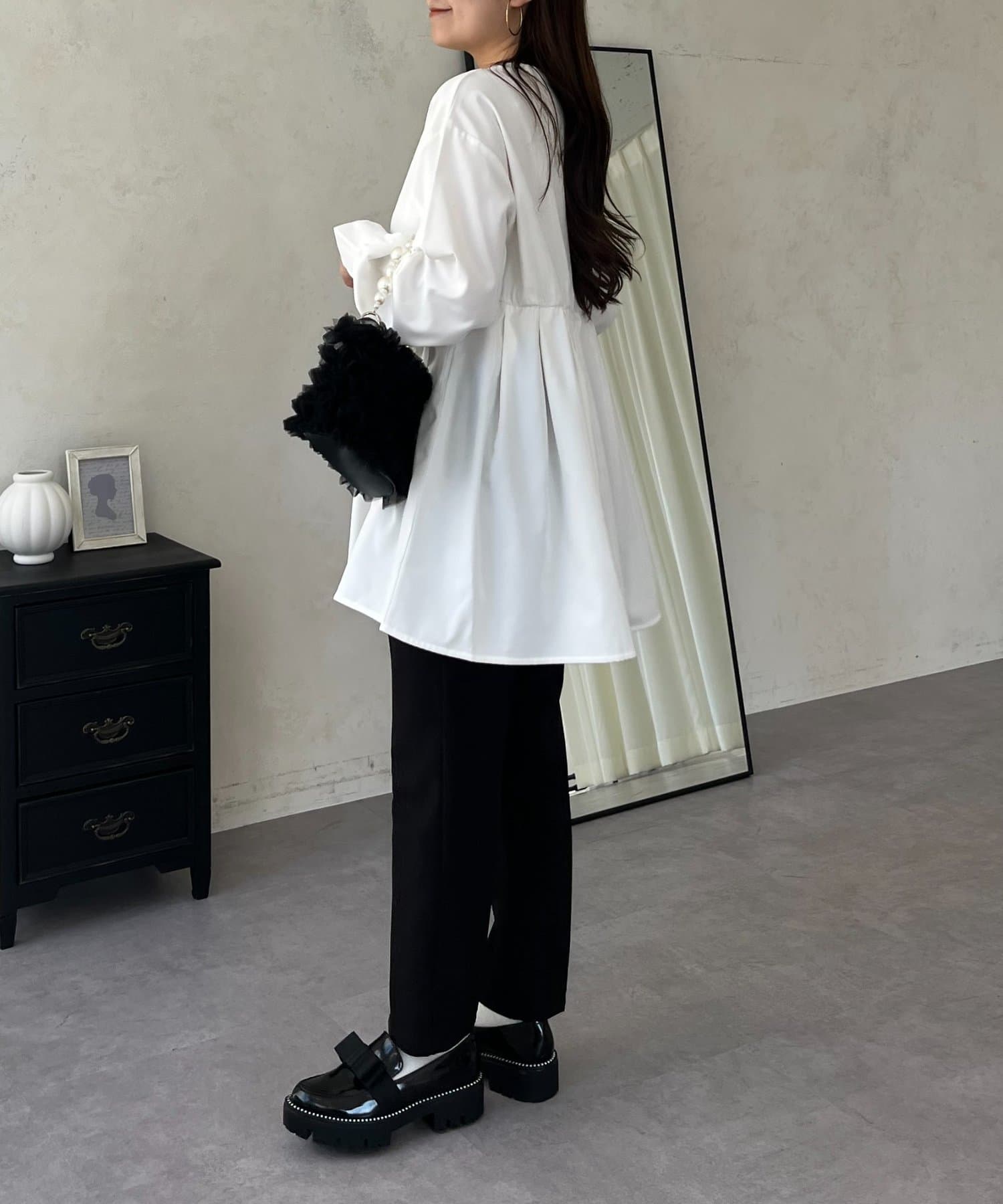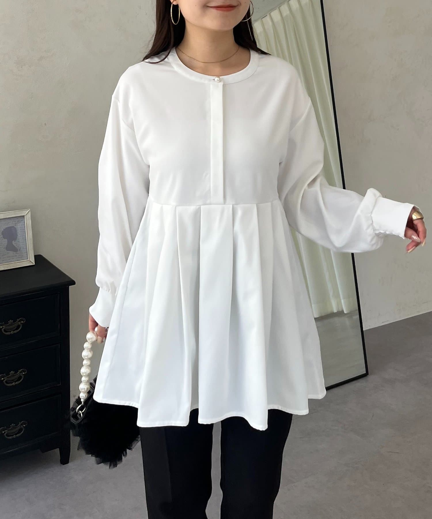 prose verse(プロズヴェール) パールボタンタックプリーツペプラムブラウス
