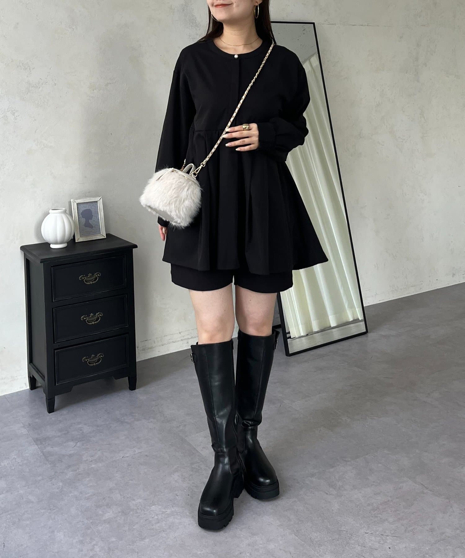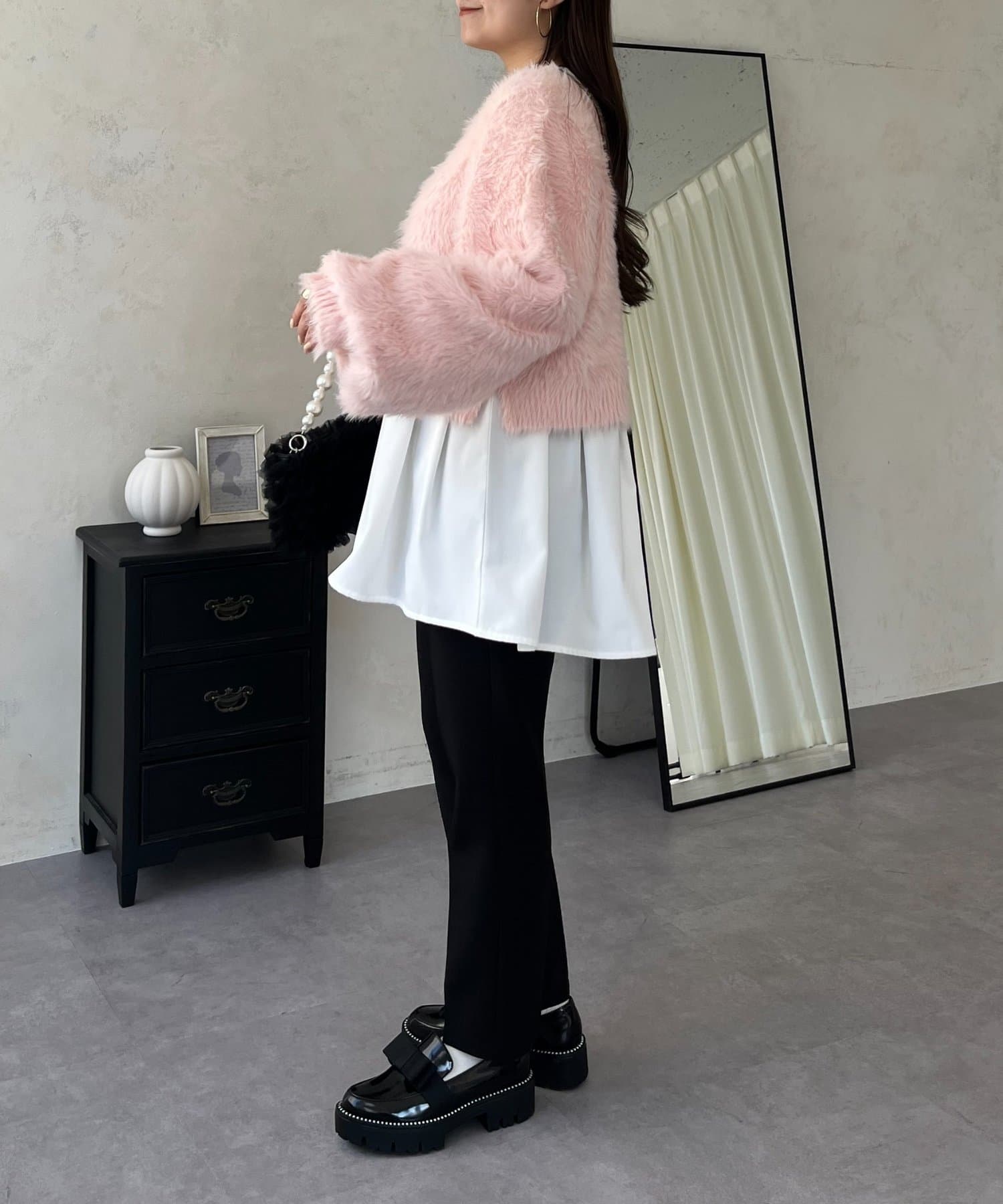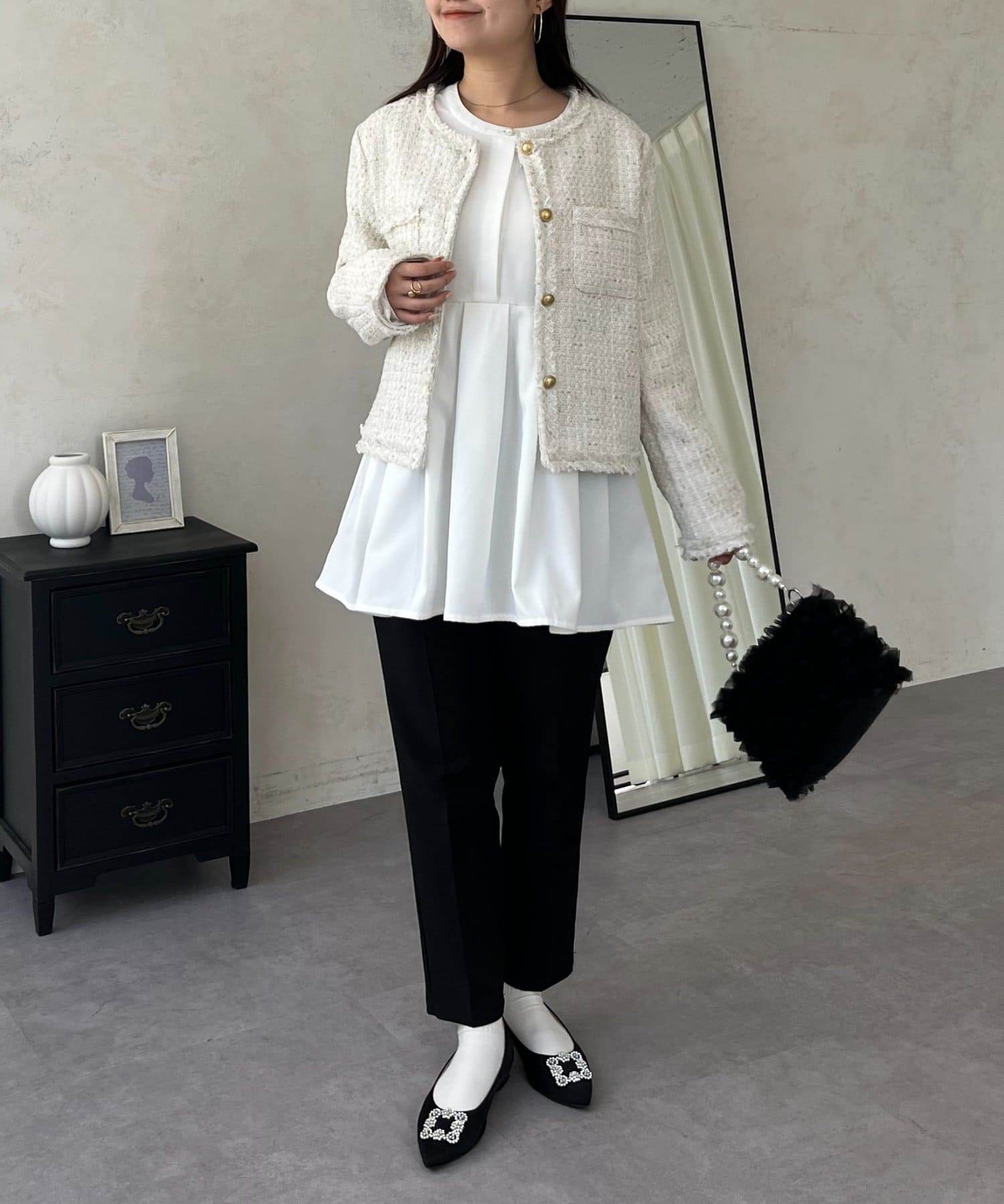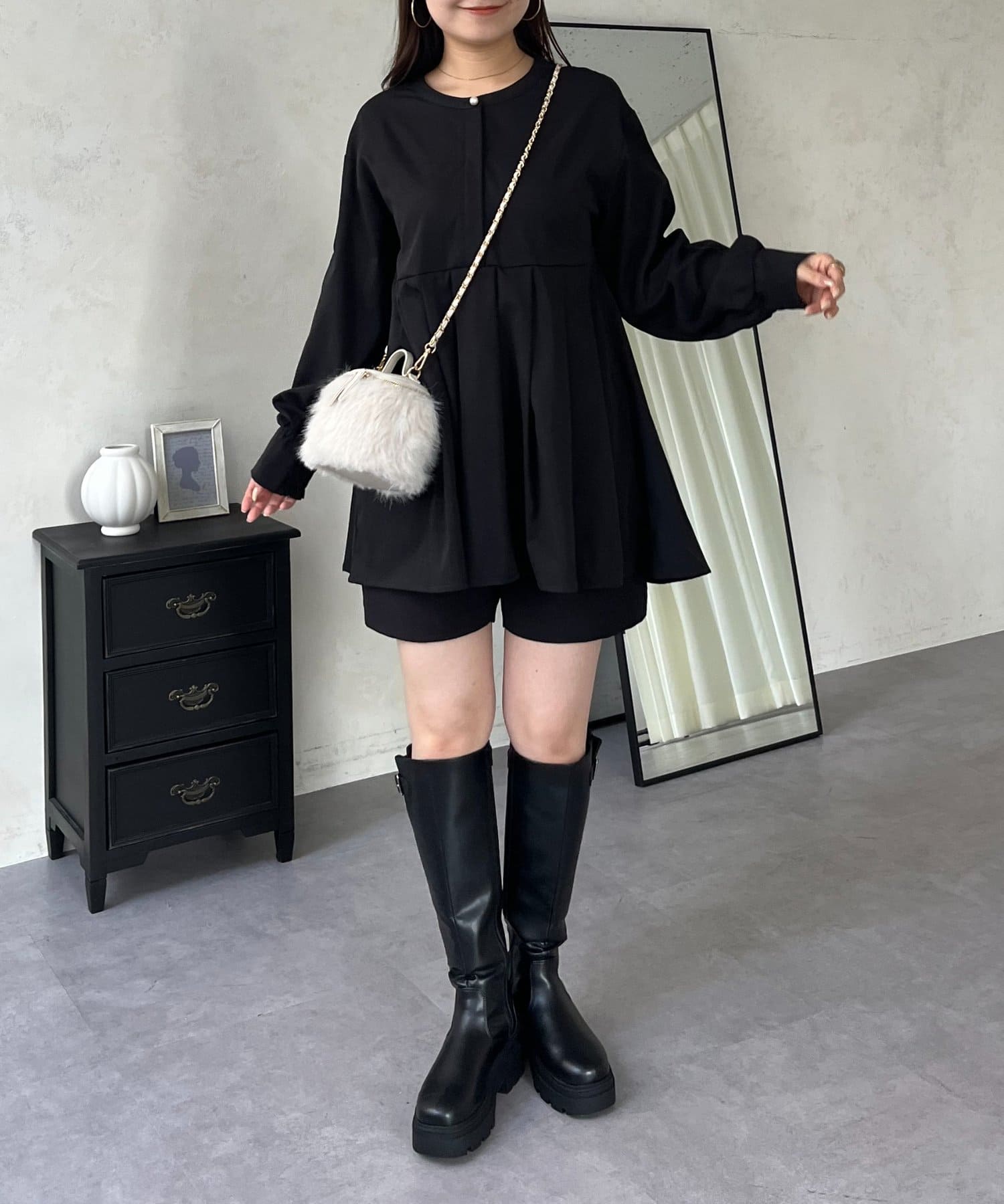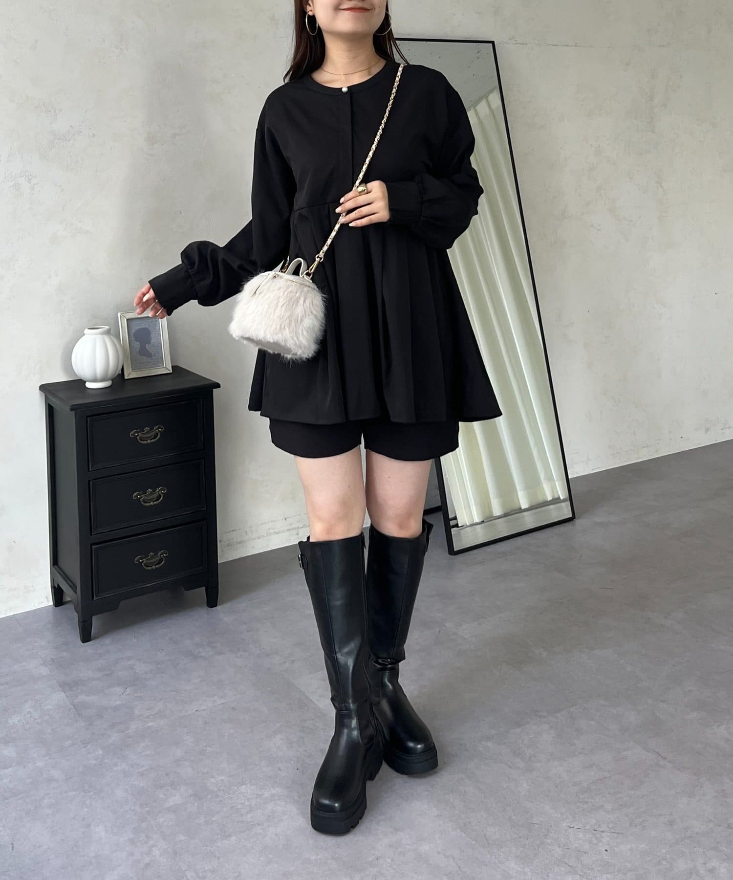 ●1枚で着ても可愛いですがショートカーディガンやニットと重ねることで