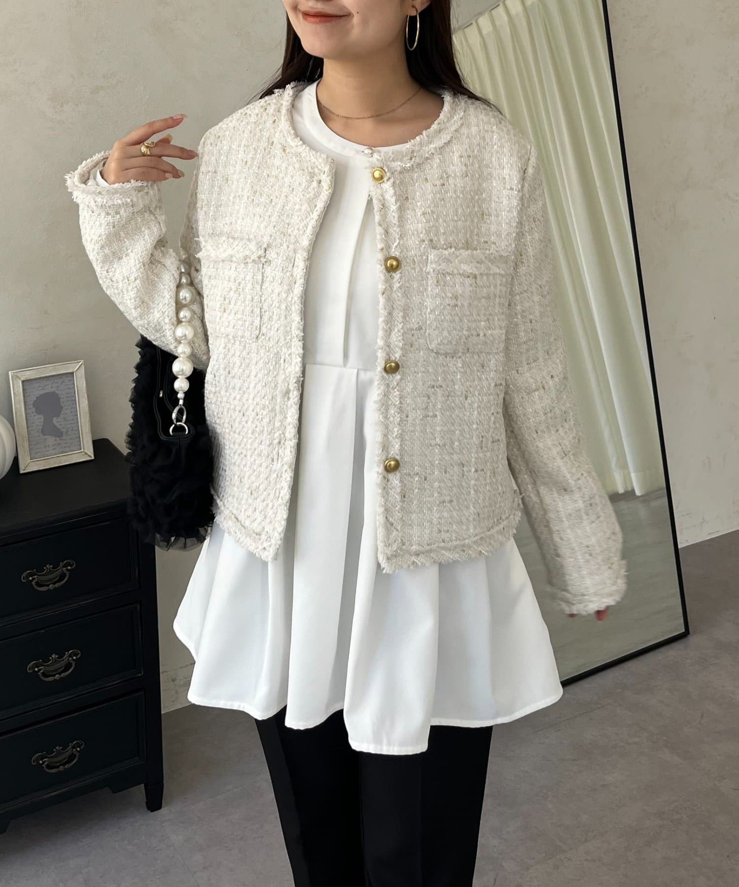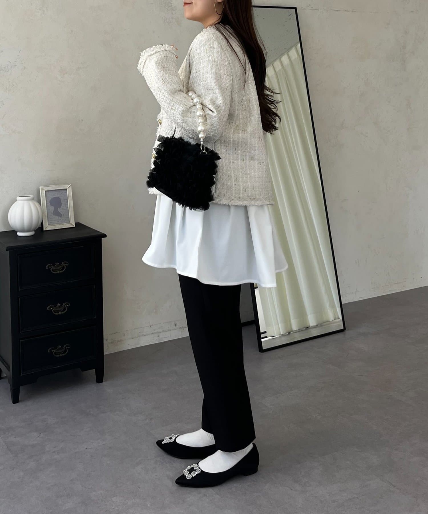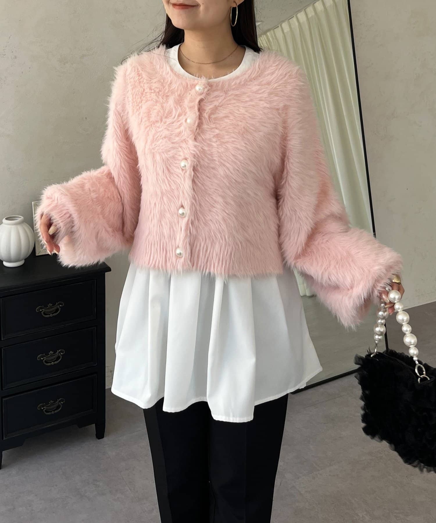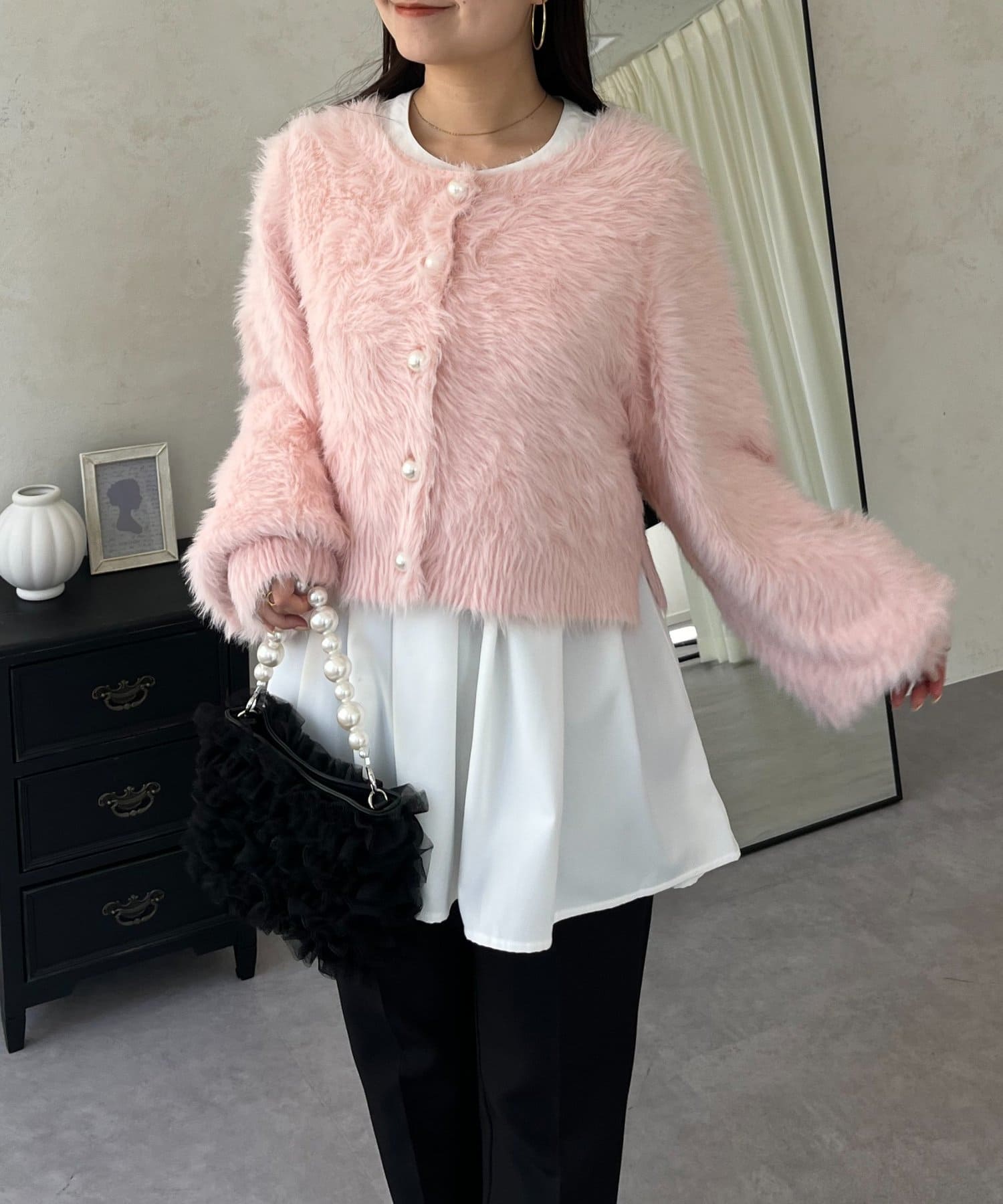 ●1枚で着ても可愛いですがショートカーディガンやニットと重ねることで