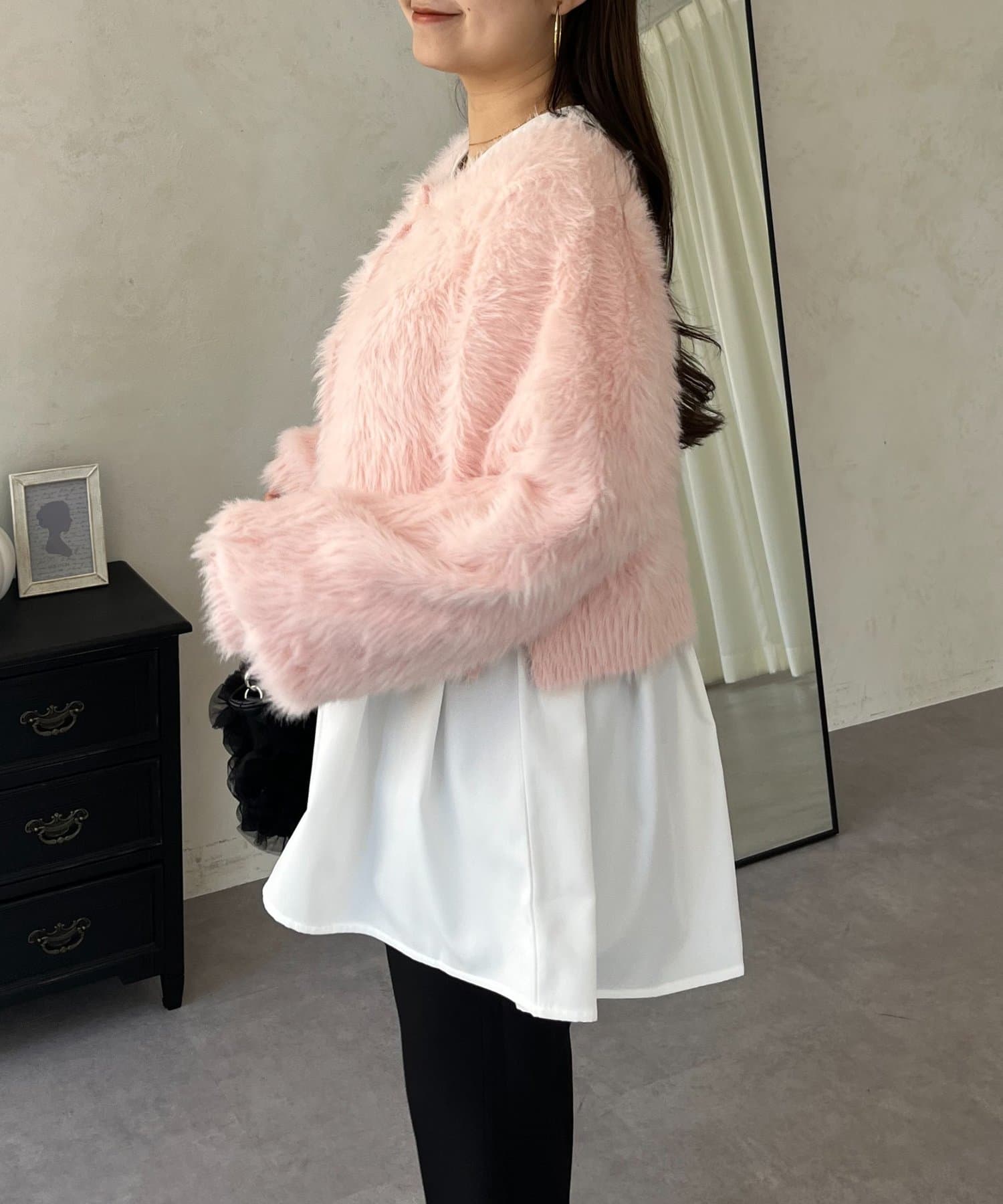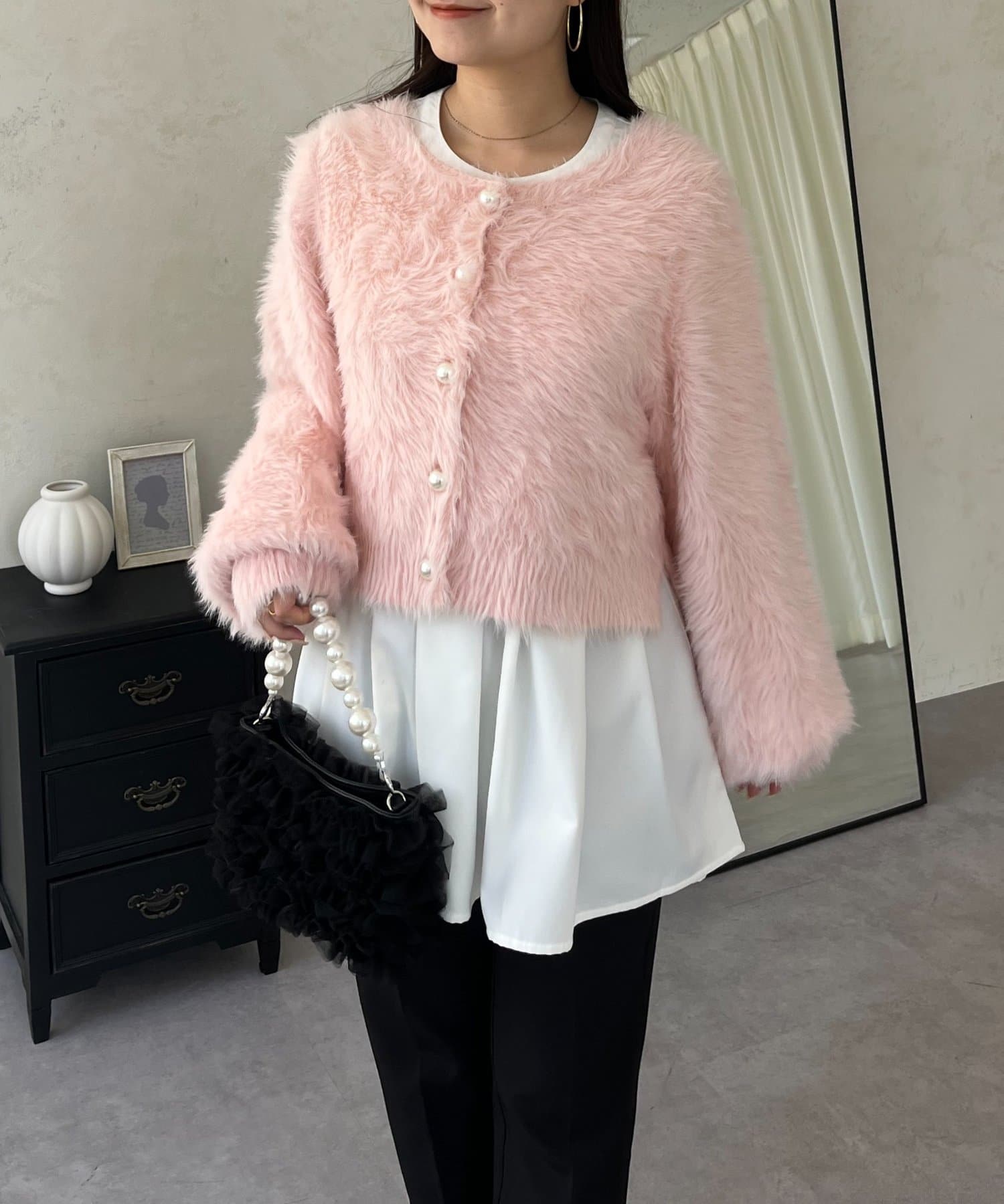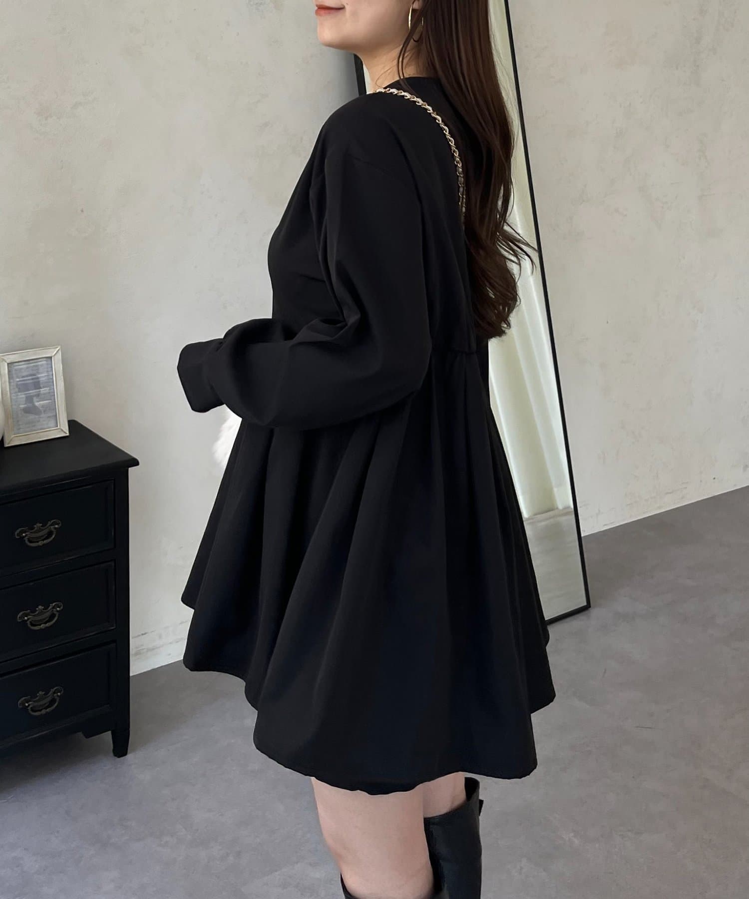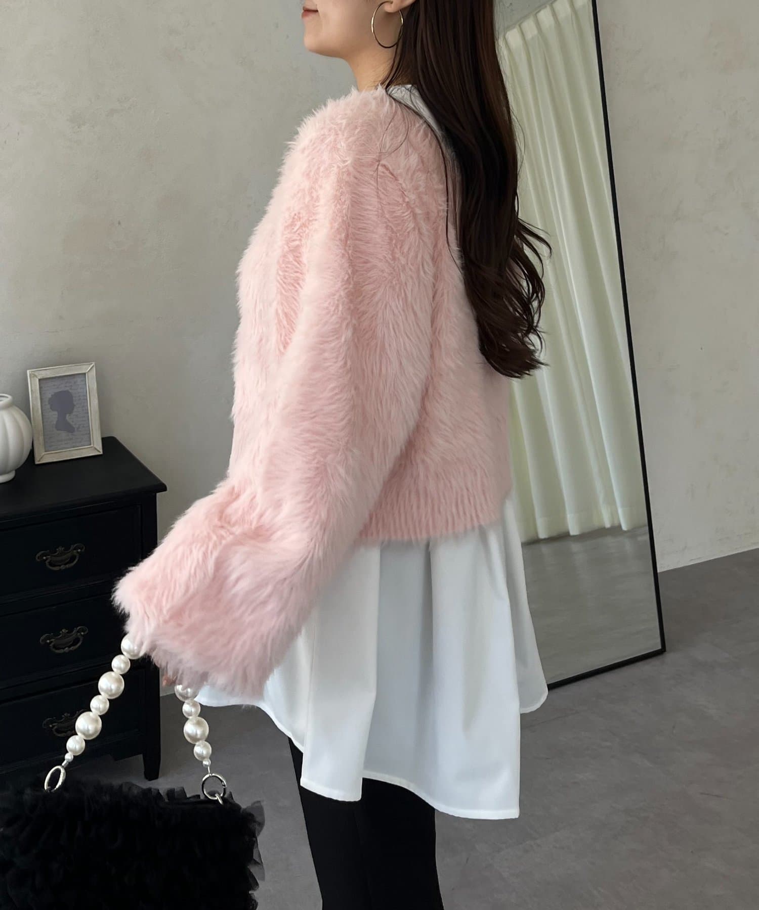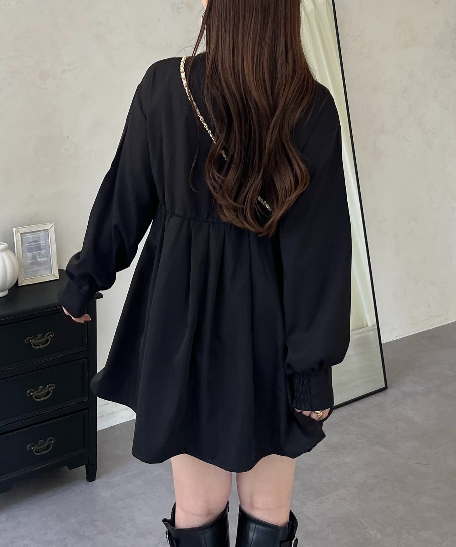 ●1枚で着ても可愛いですがショートカーディガンやニットと重ねることで