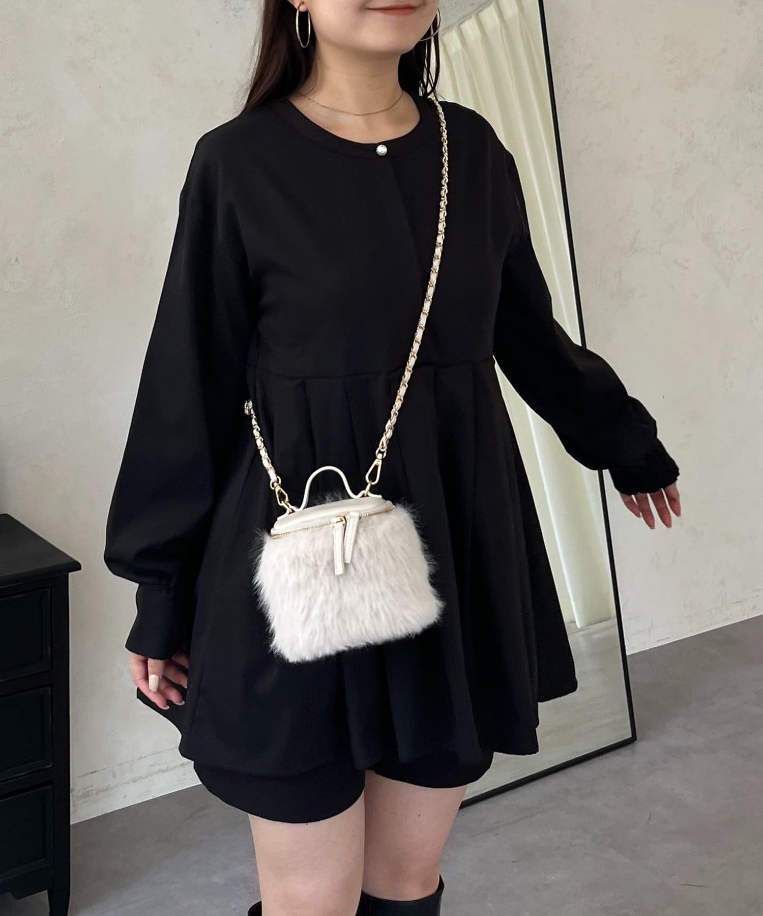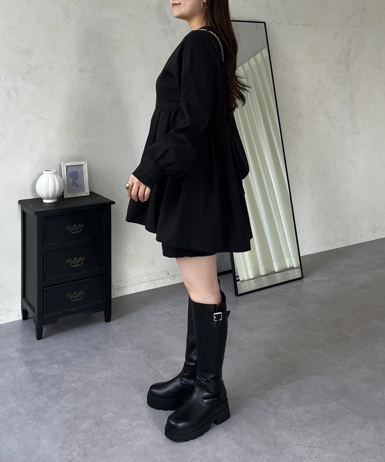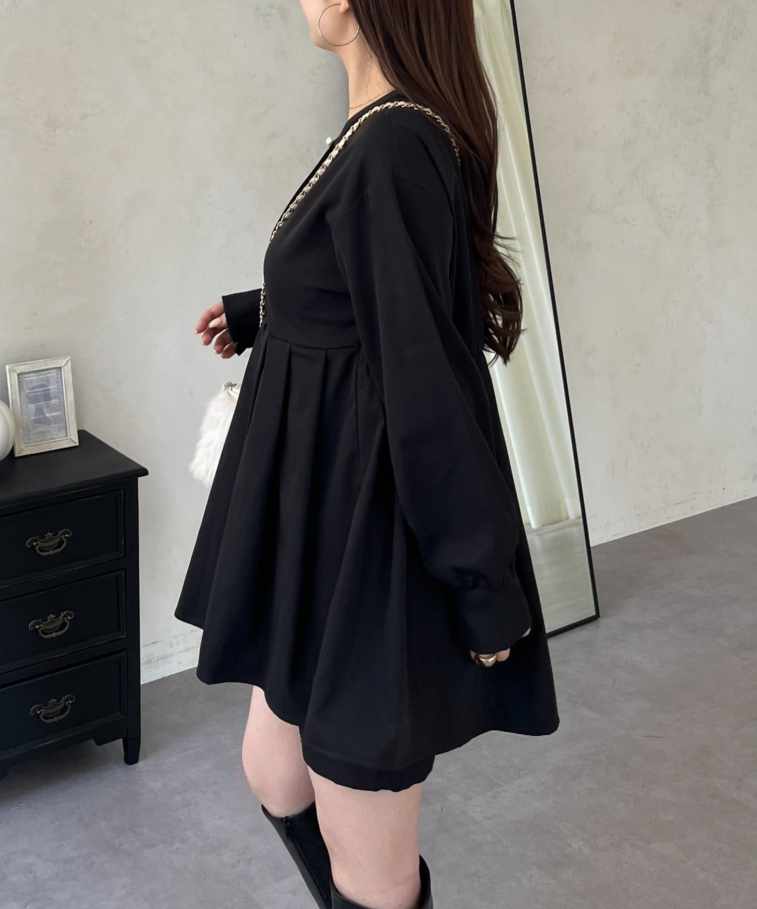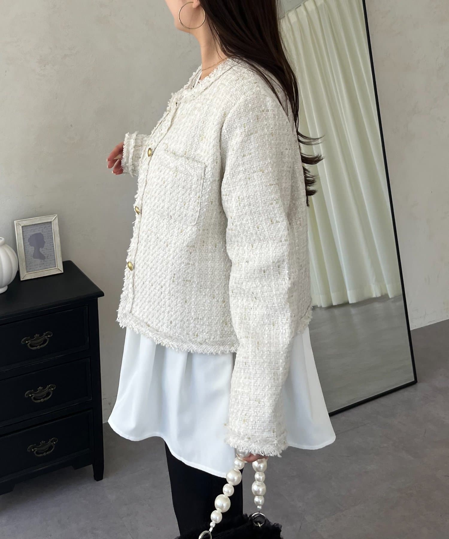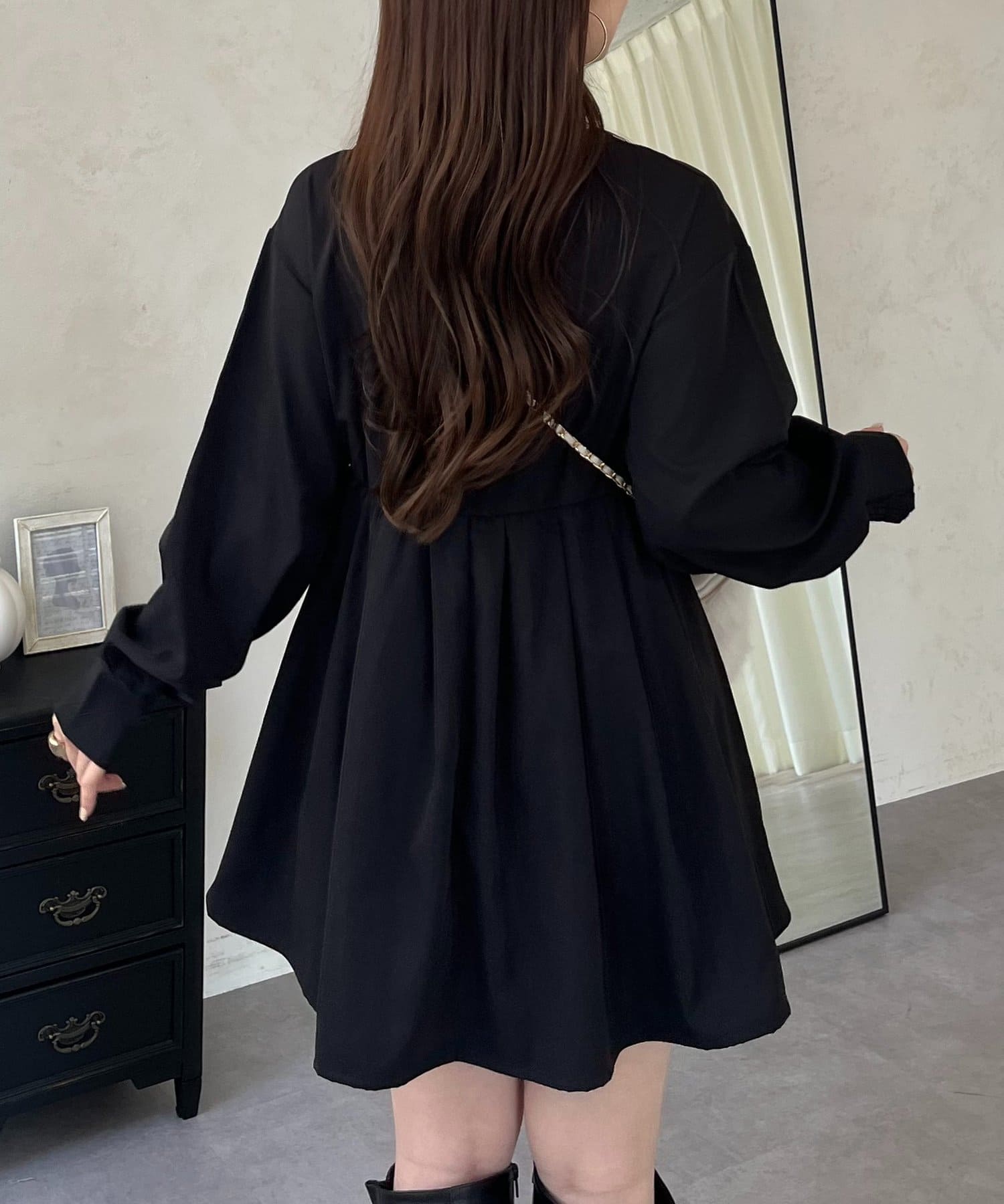 ●1枚で着ても可愛いですがショートカーディガンやニットと重ねることで