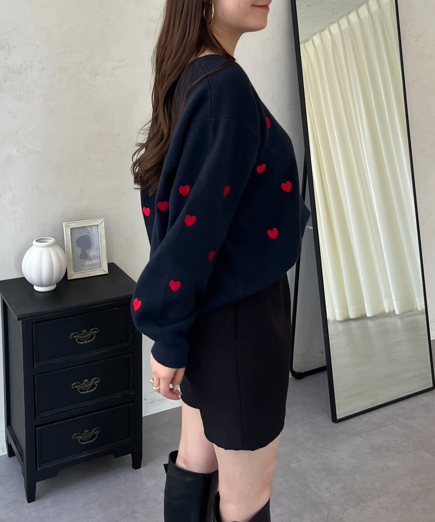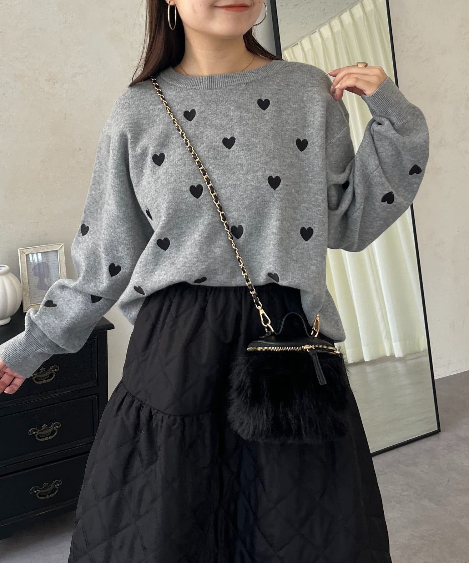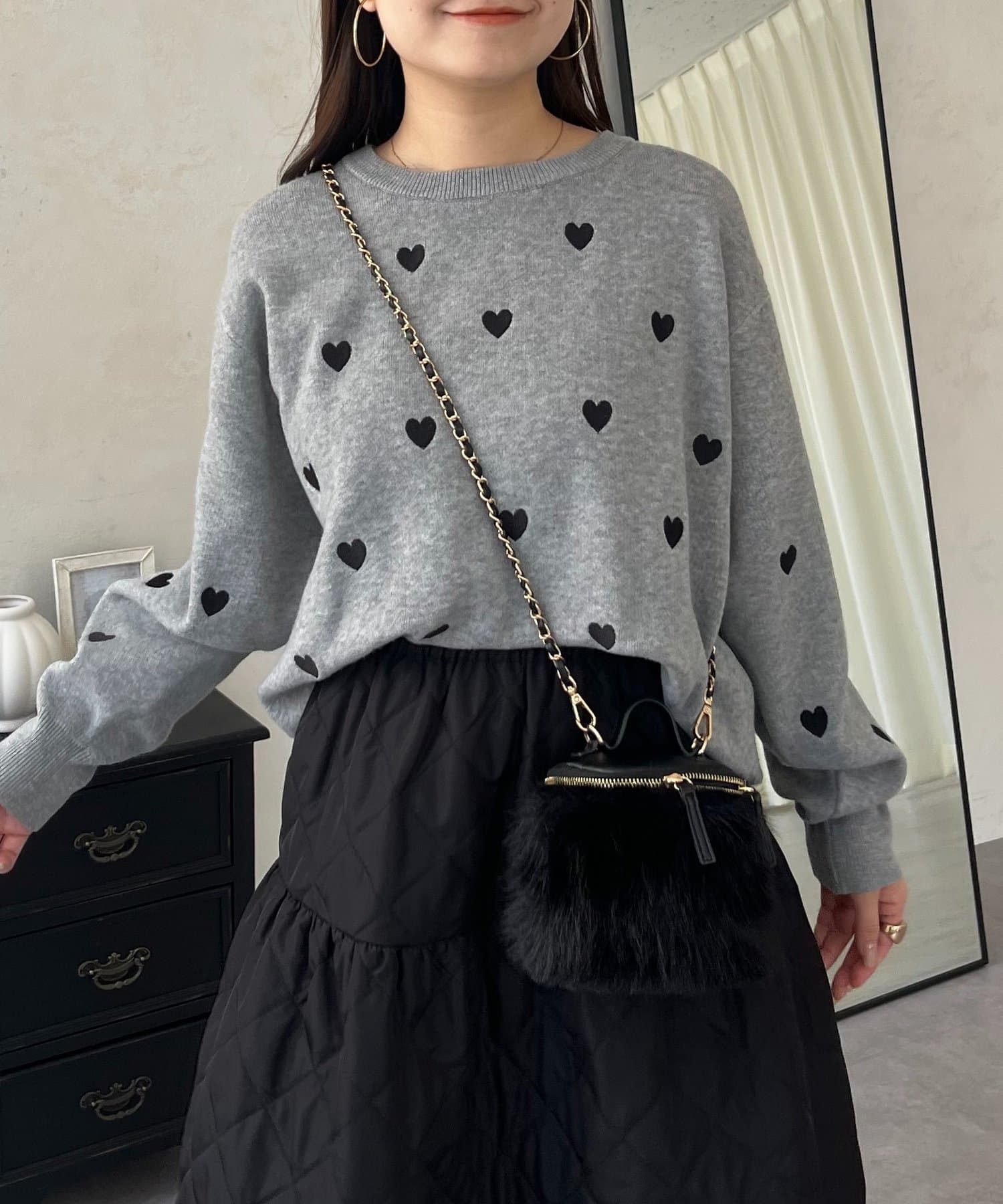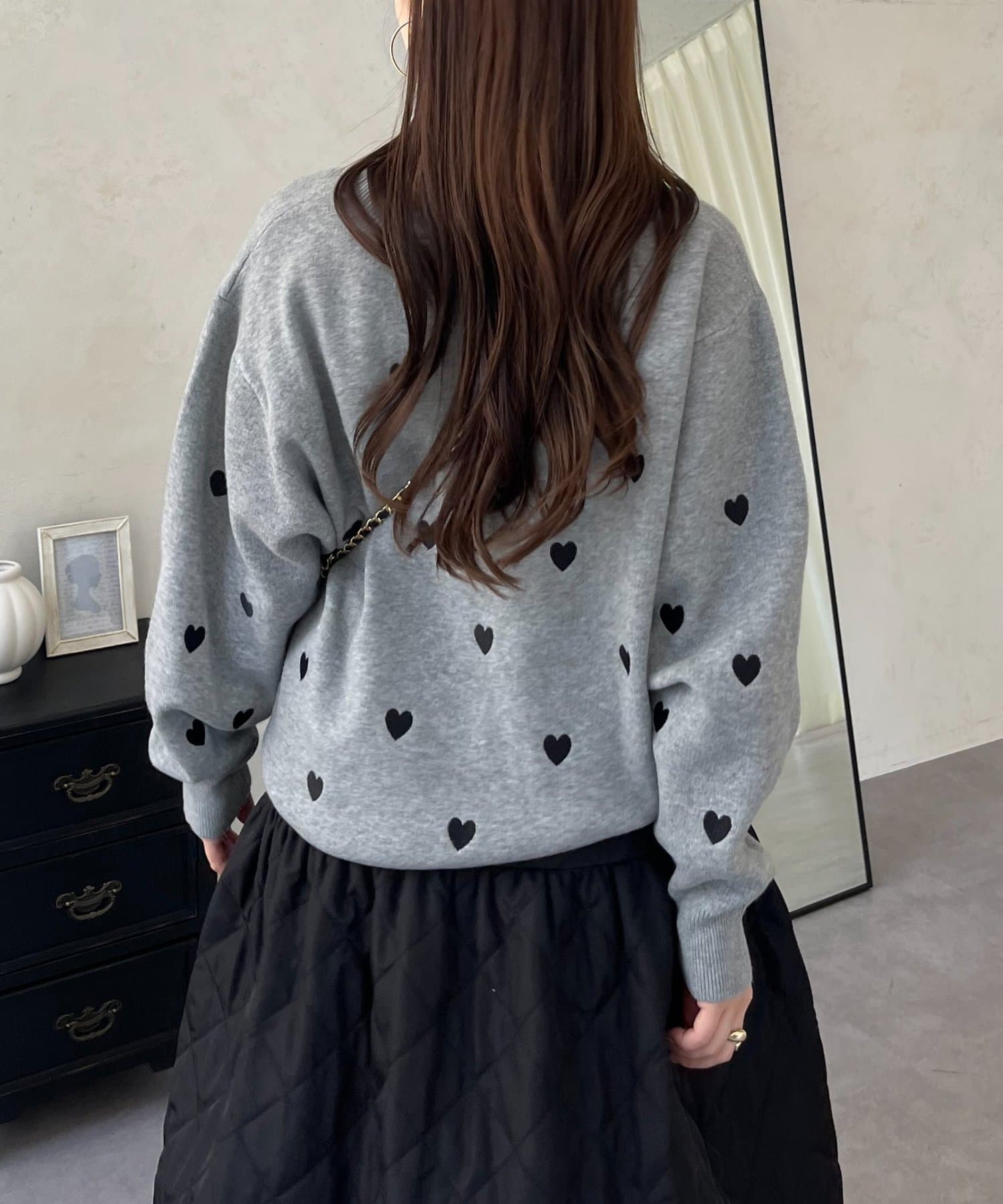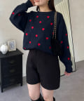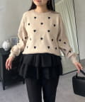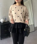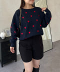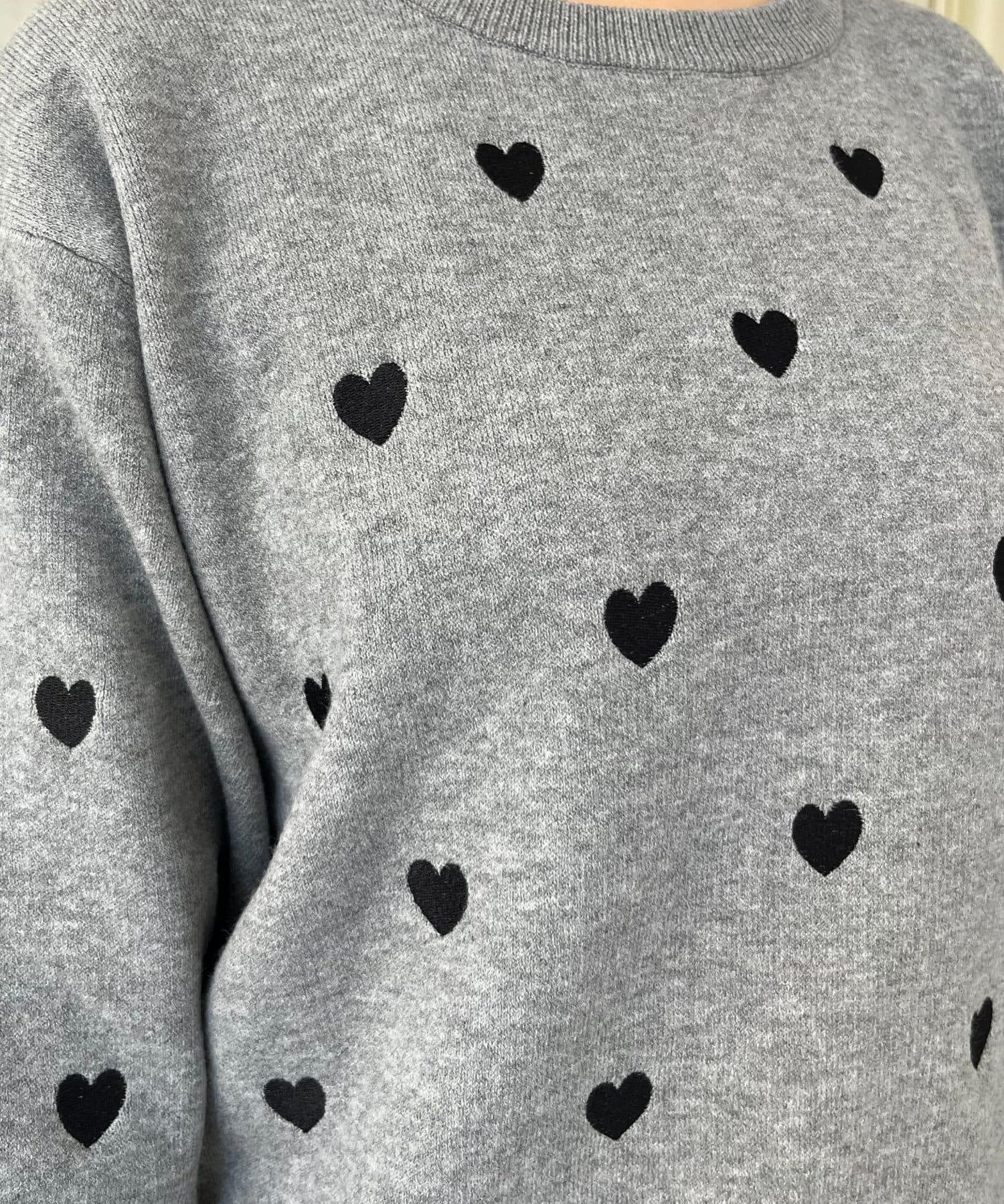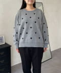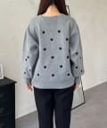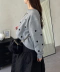 ハート刺繡が大人可愛く着こなせるスウェットライクニット