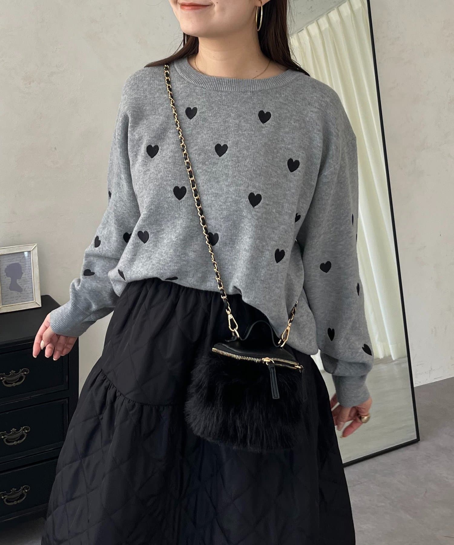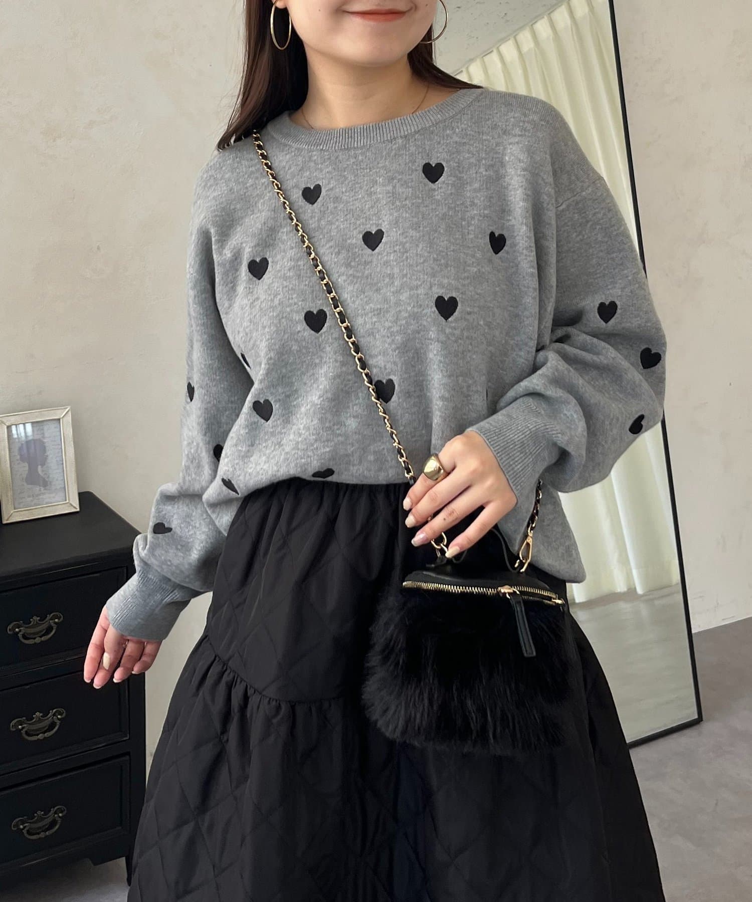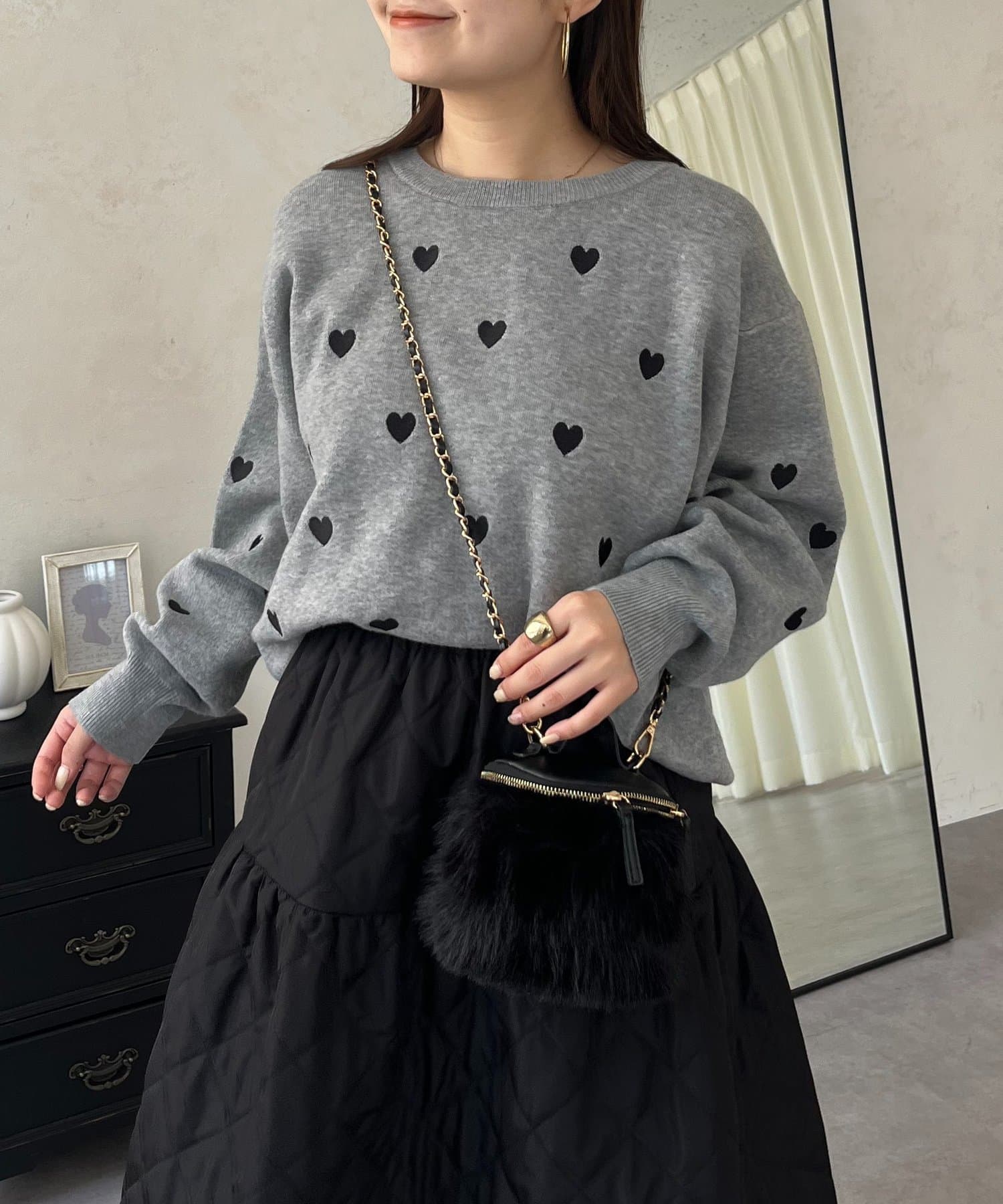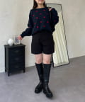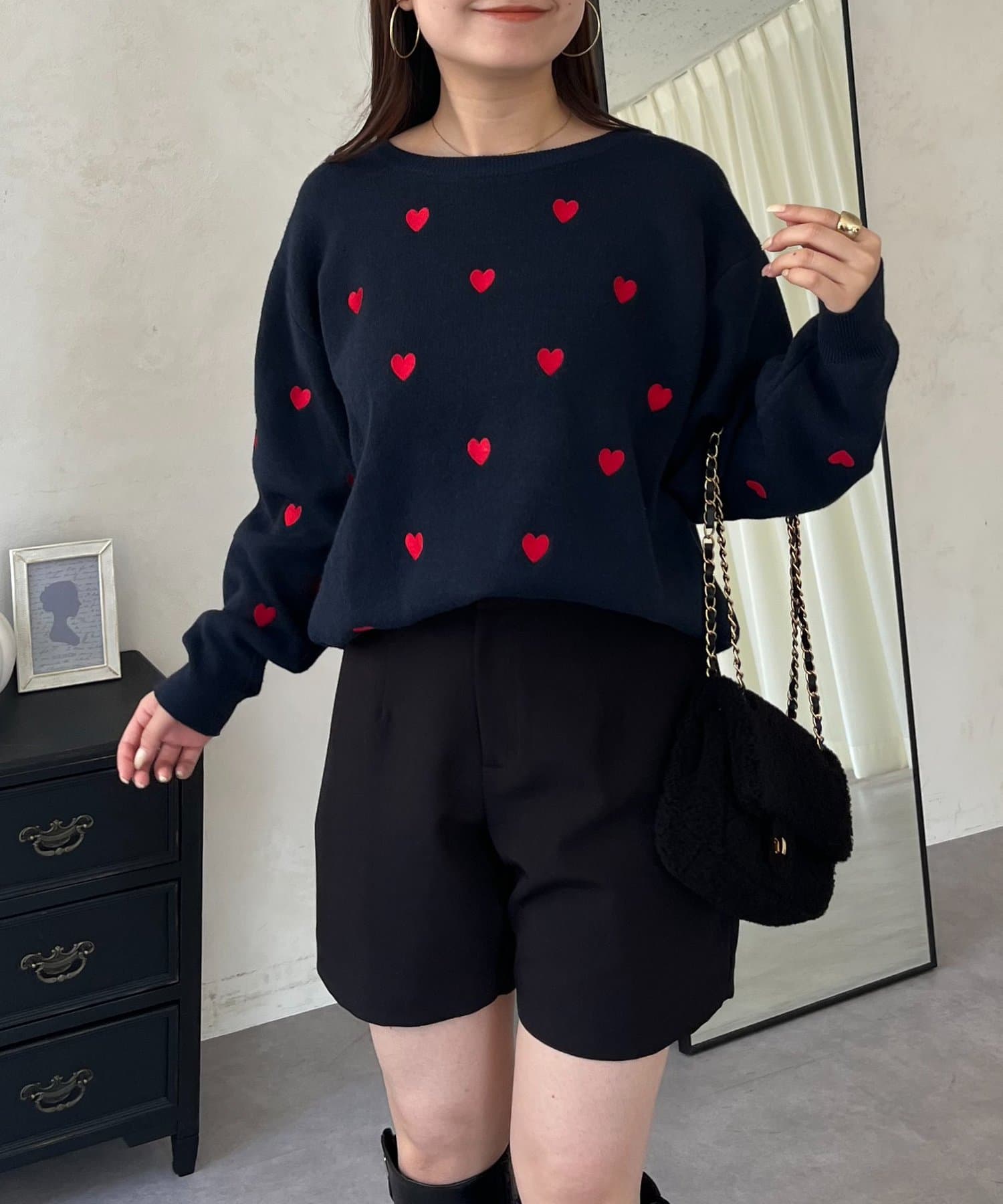ハート刺繡が大人可愛く着こなせるスウェットライクニット