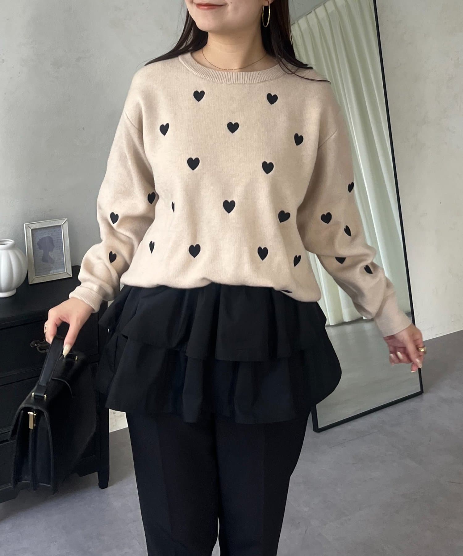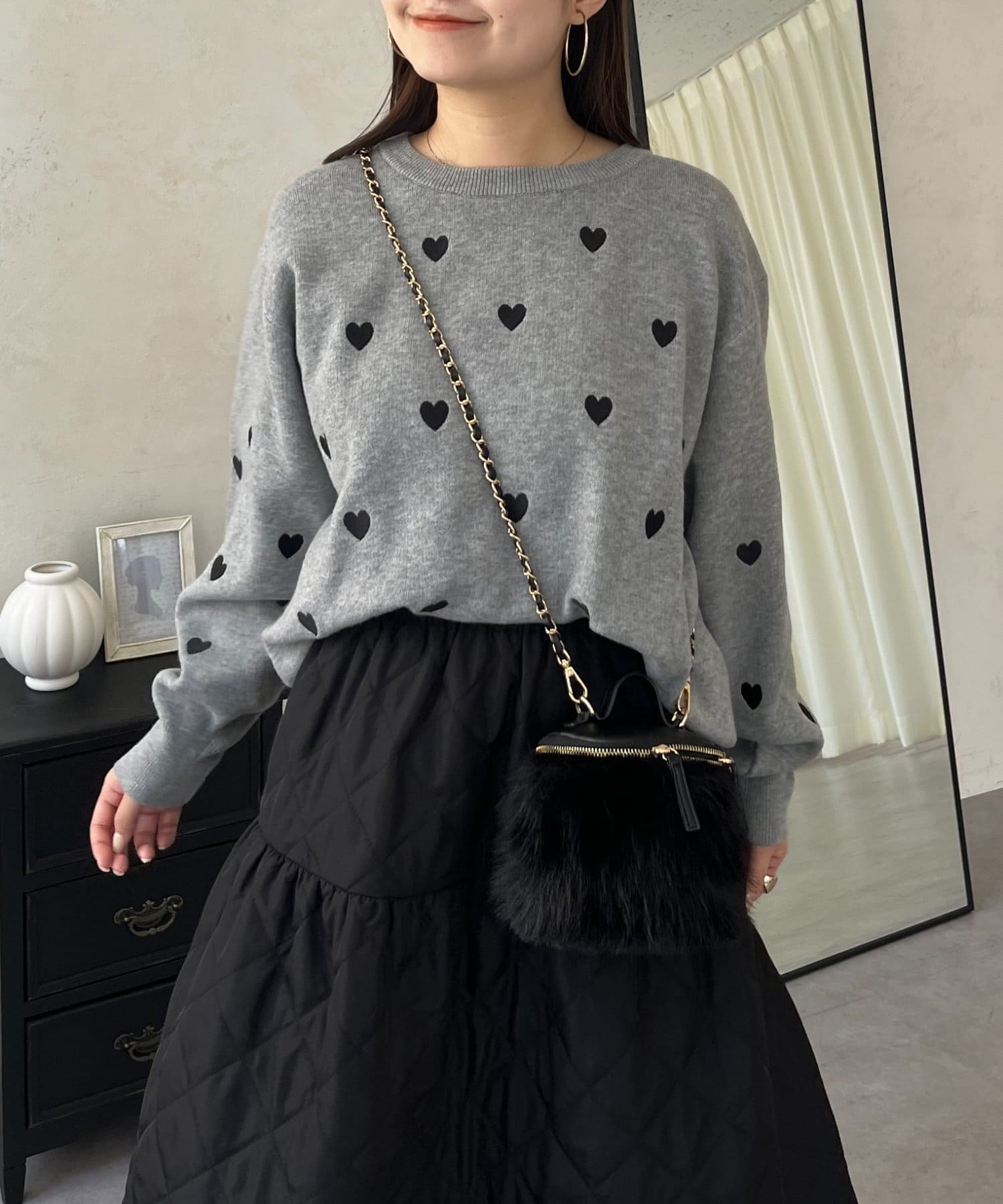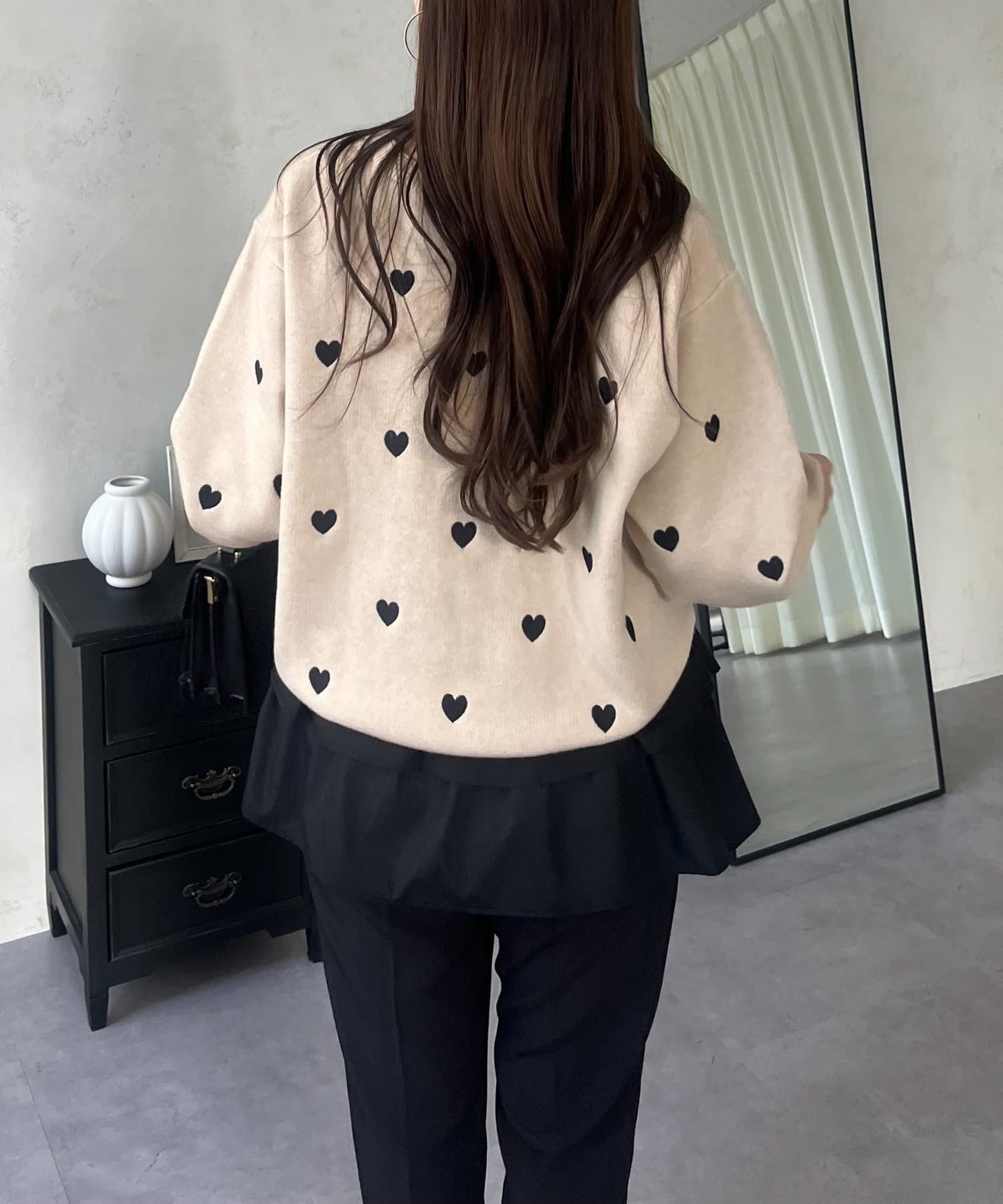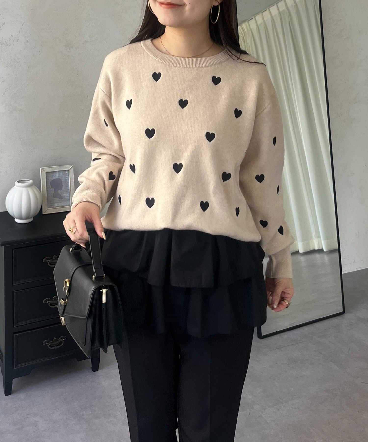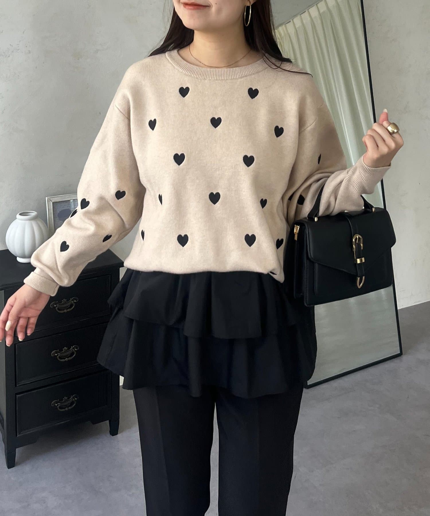 ハート刺繡が大人可愛く着こなせるスウェットライクニット