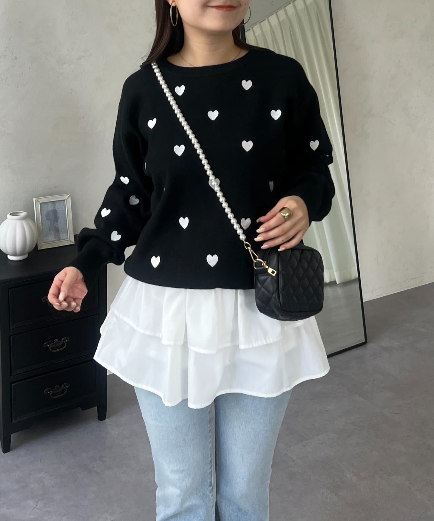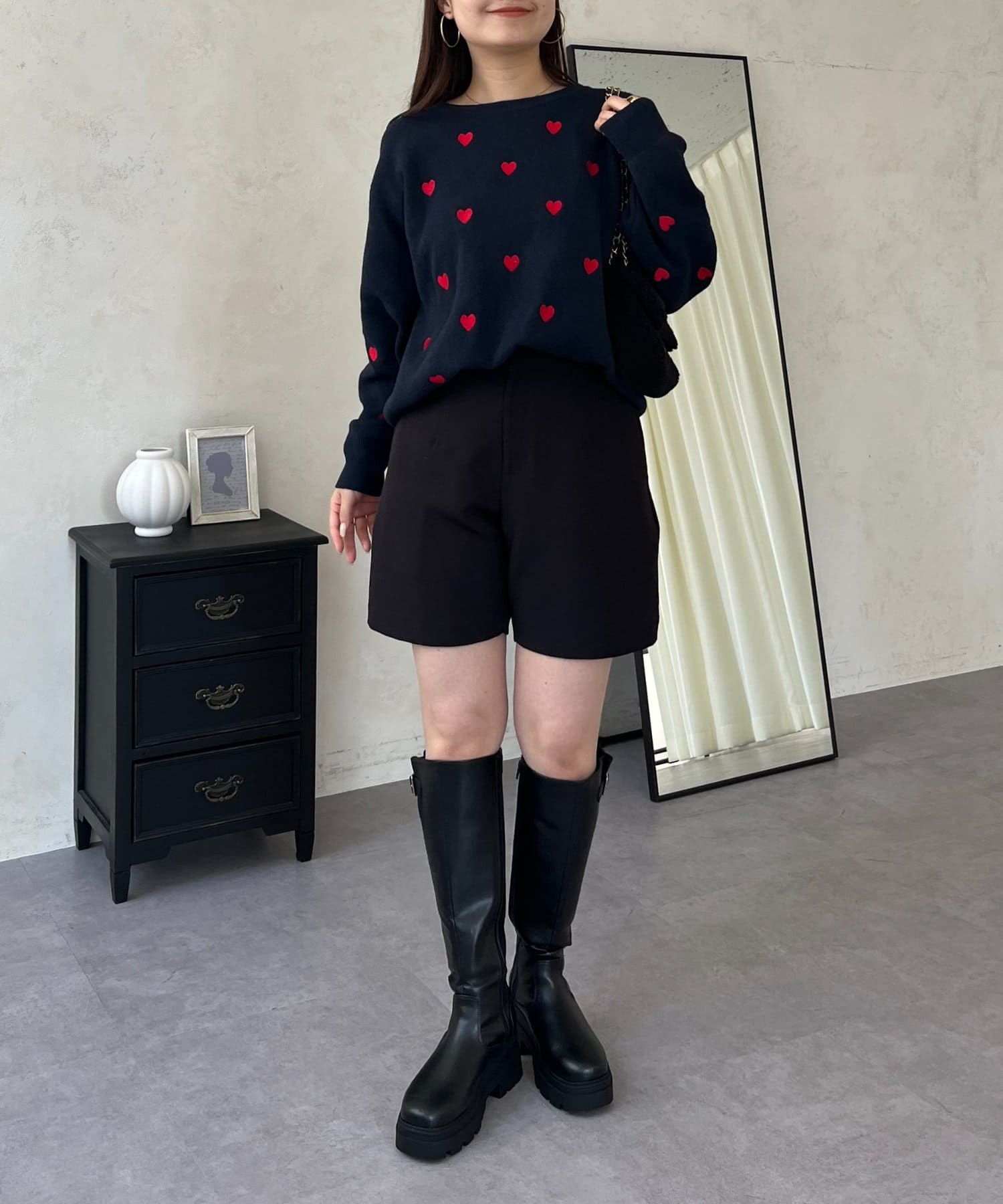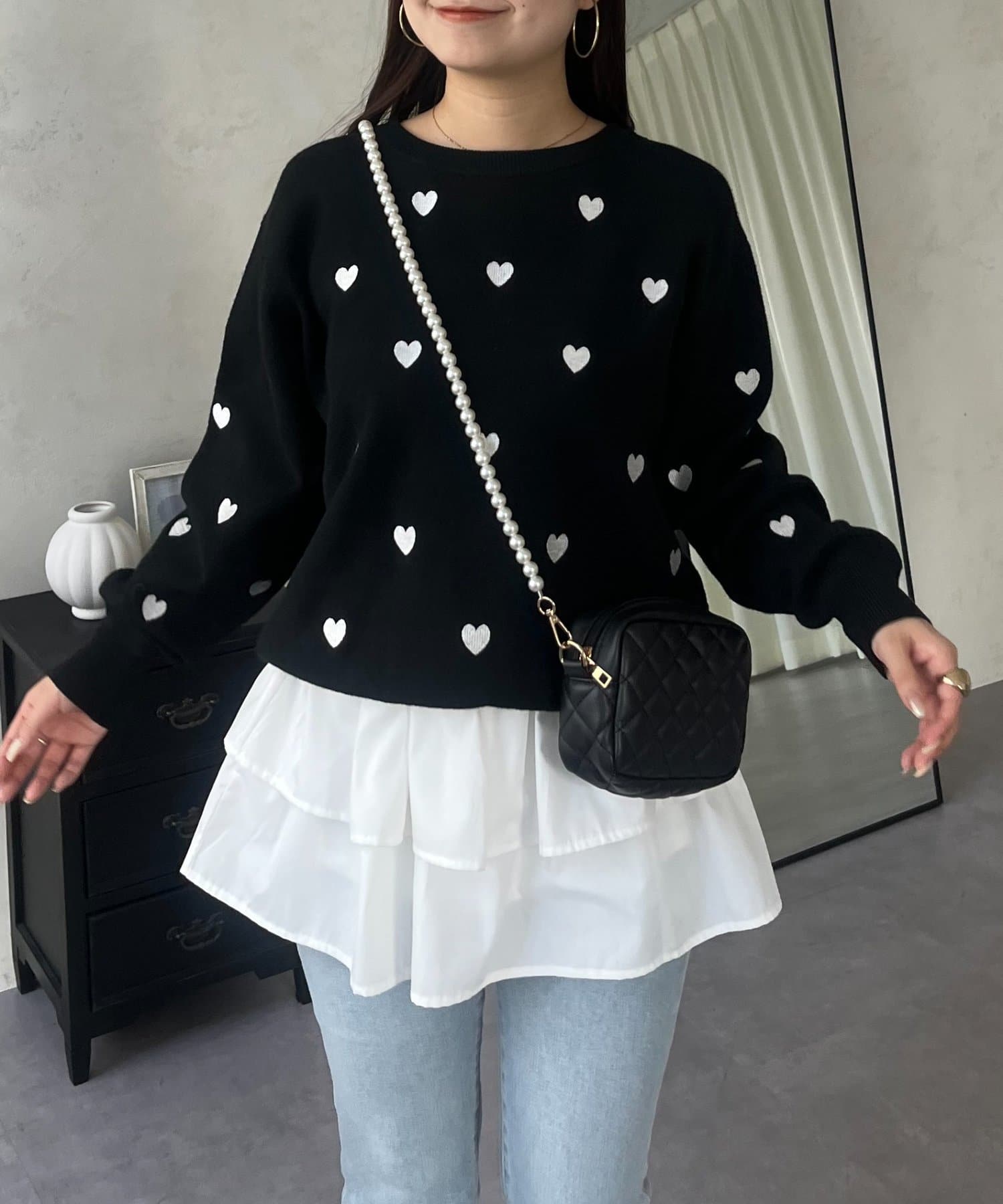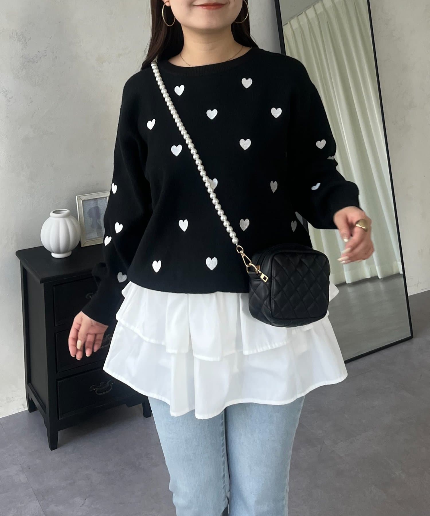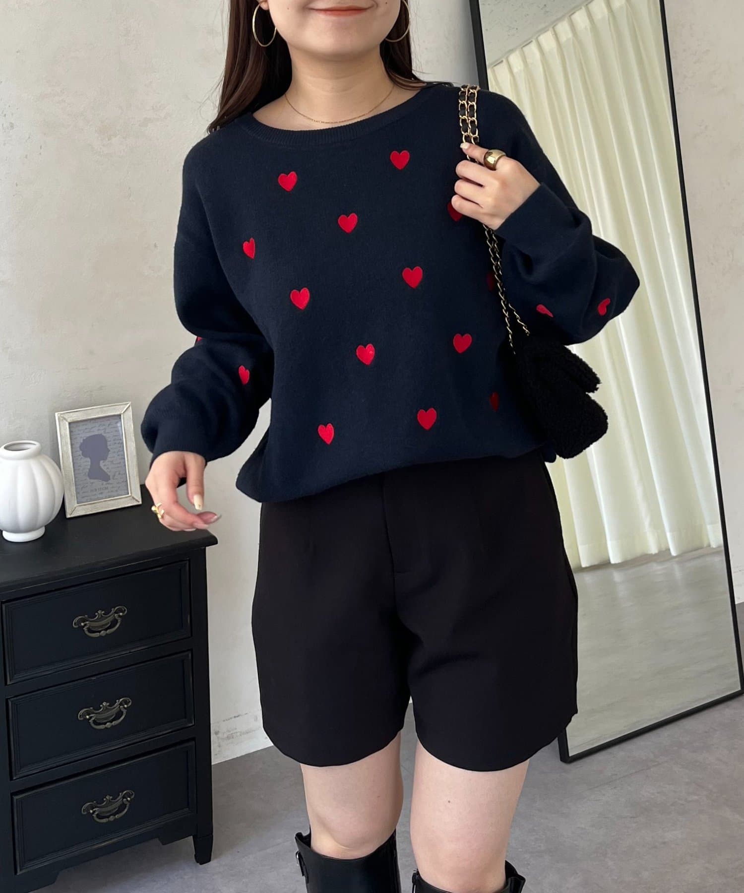 ハート刺繡が大人可愛く着こなせるスウェットライクニット
