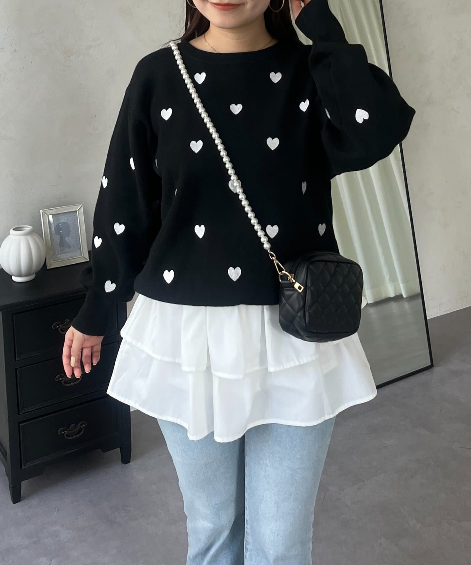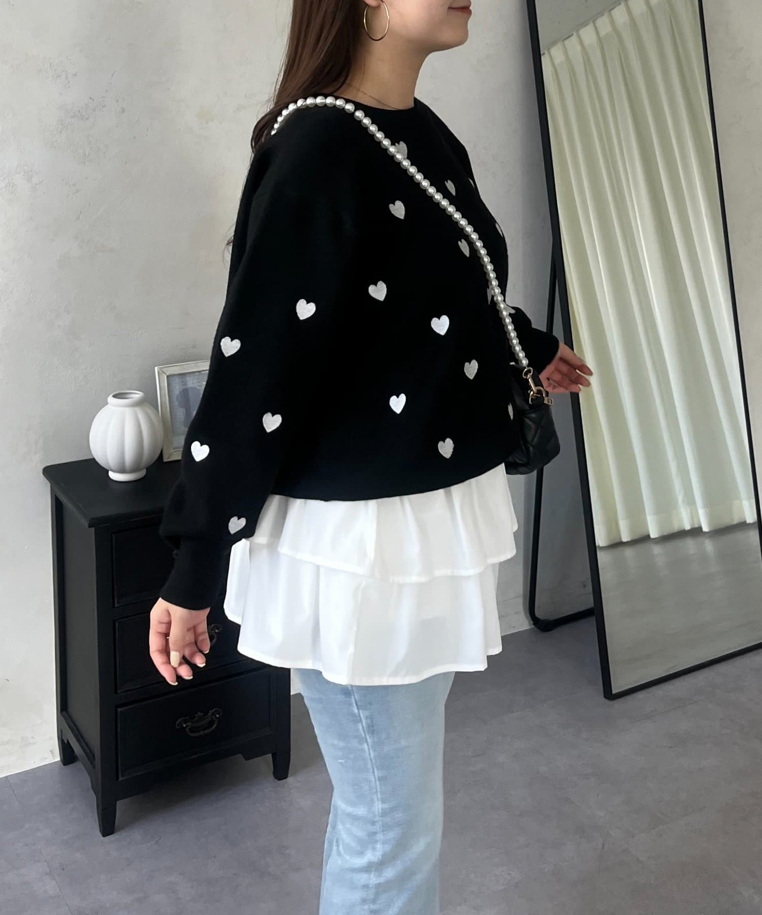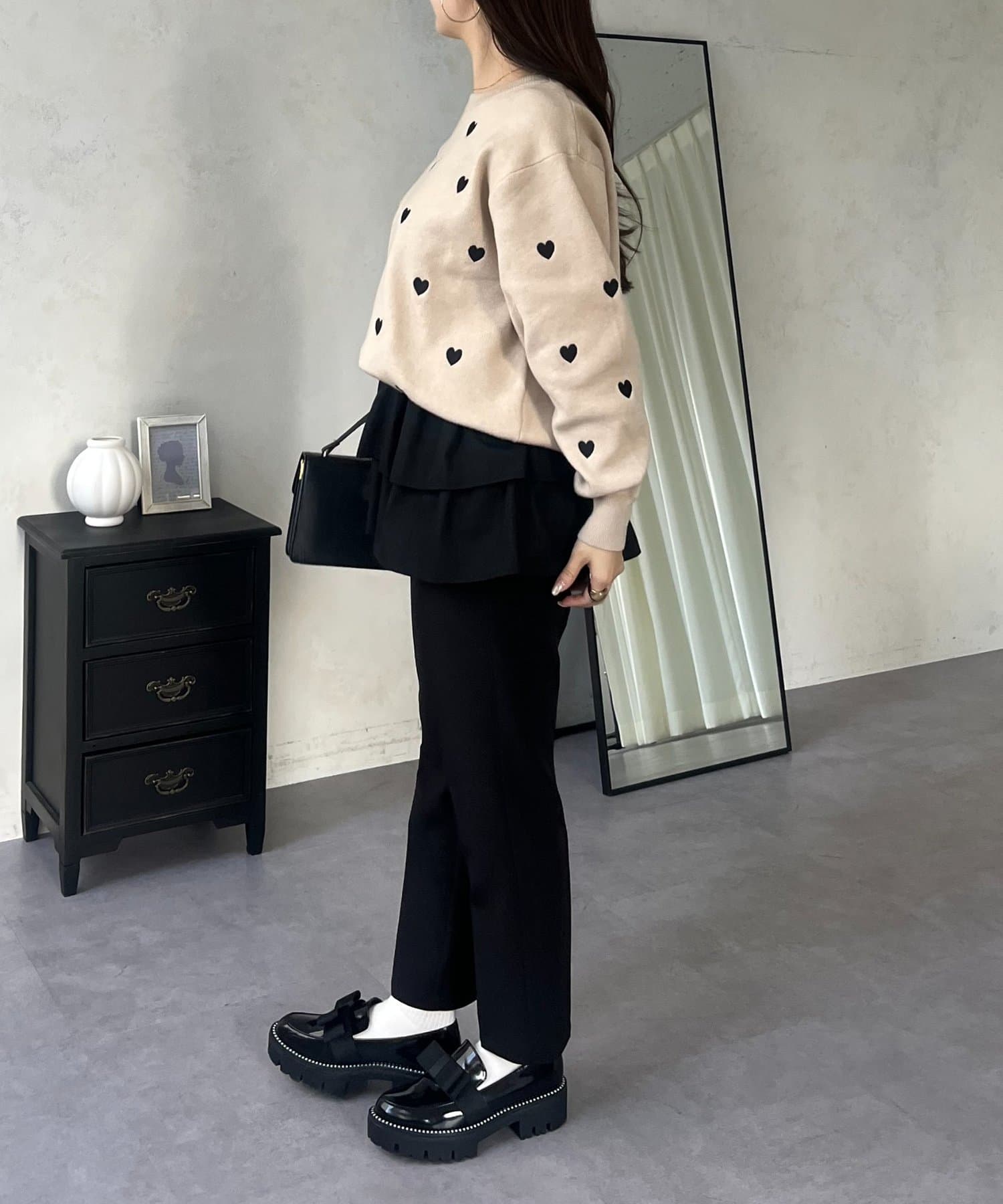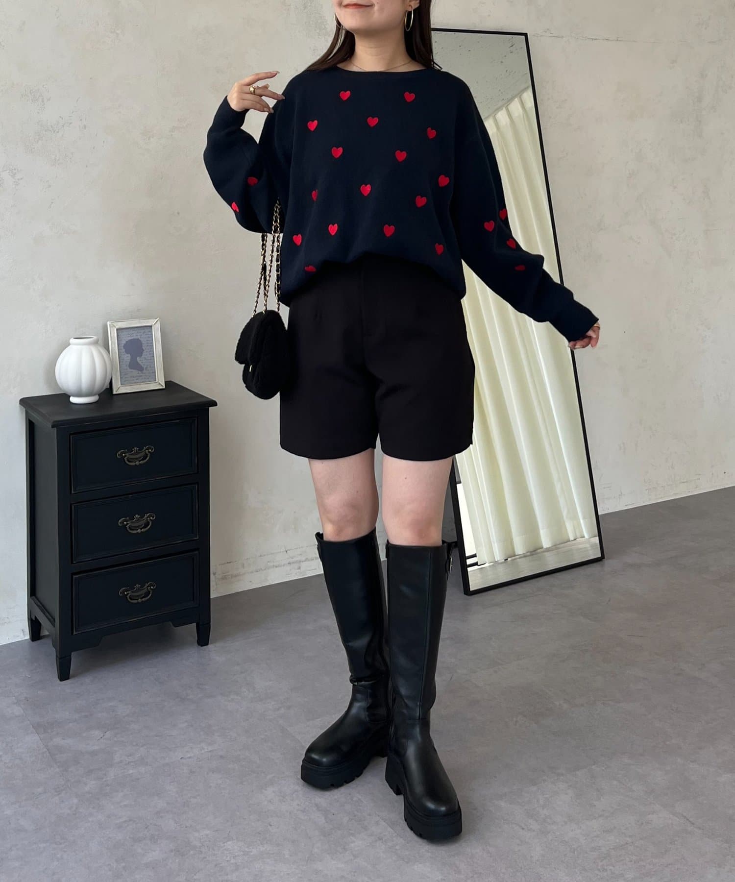 ハート刺繡が大人可愛く着こなせるスウェットライクニット