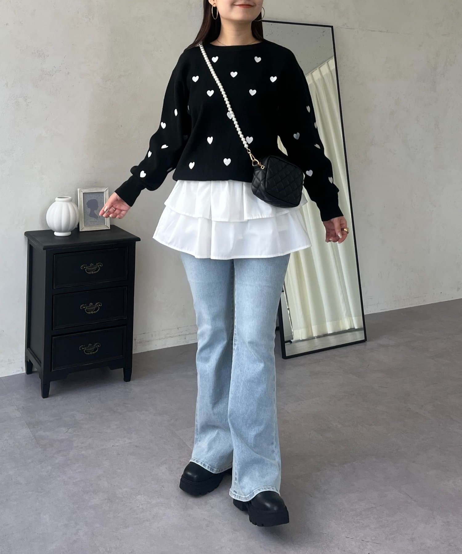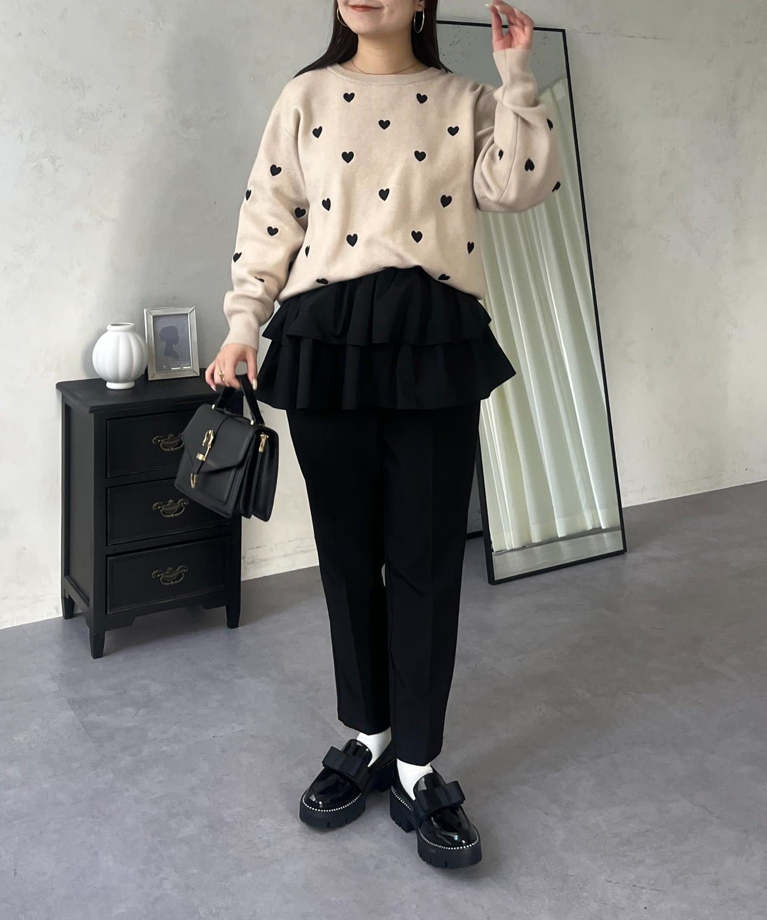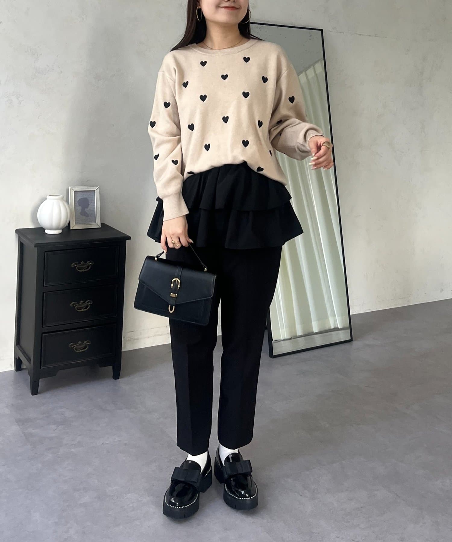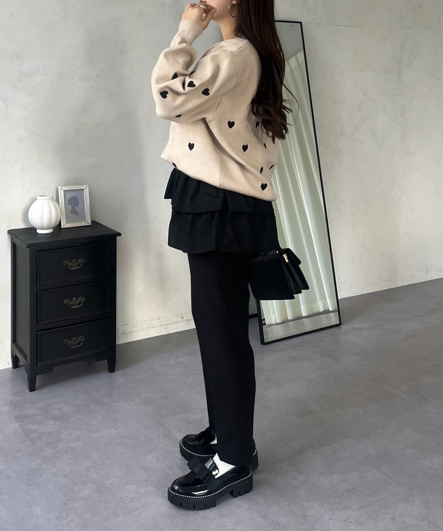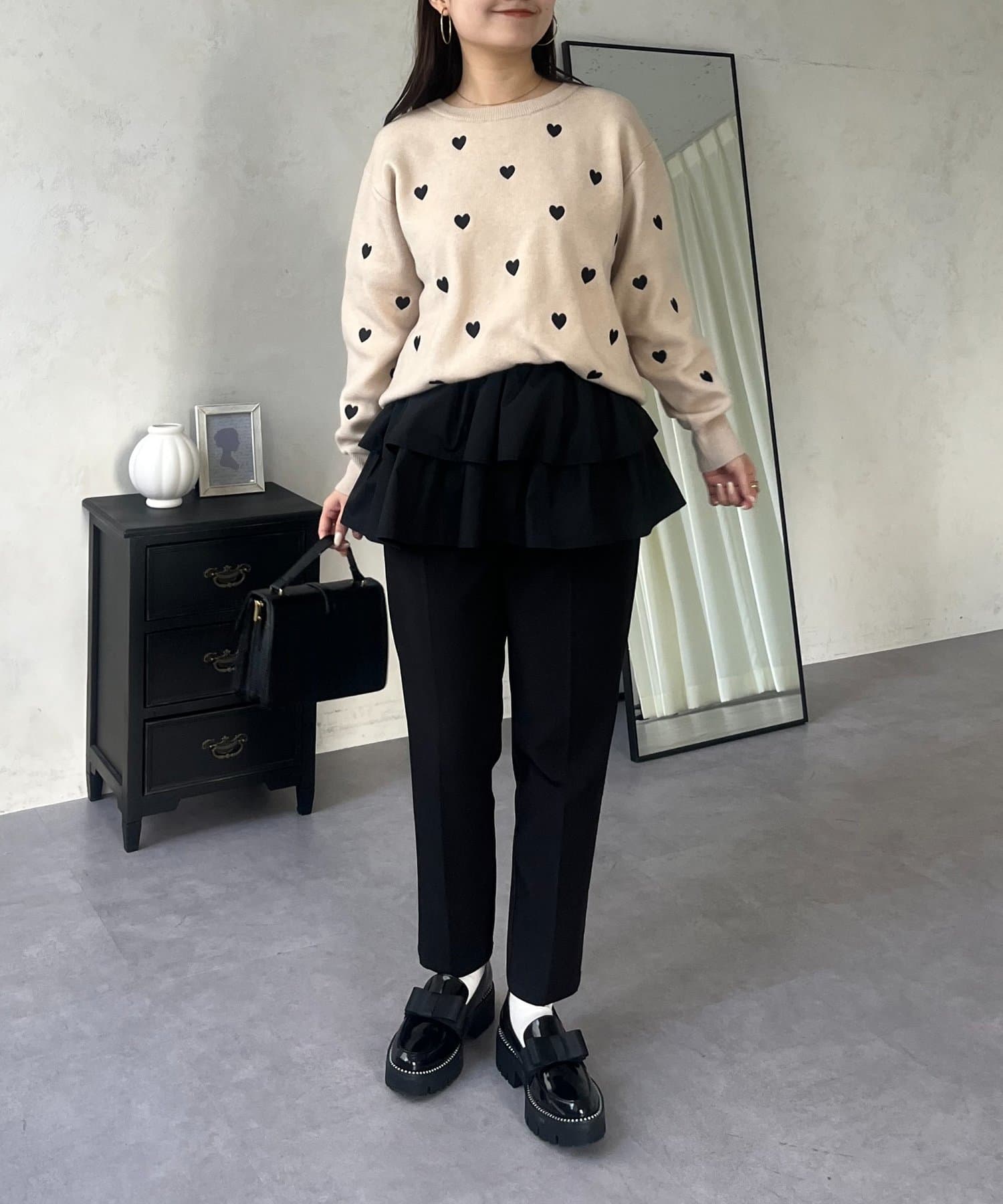 ハート刺繡が大人可愛く着こなせるスウェットライクニット