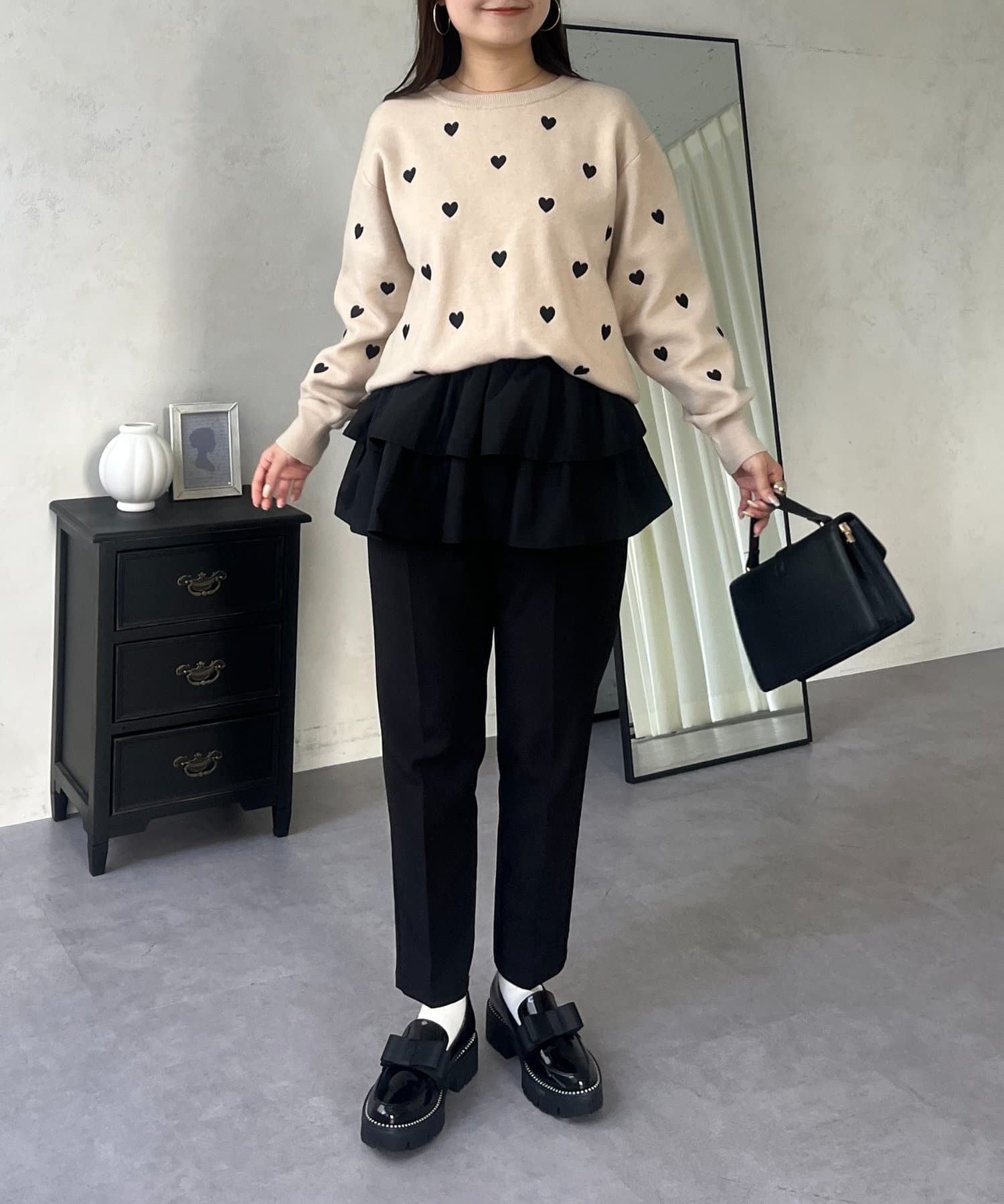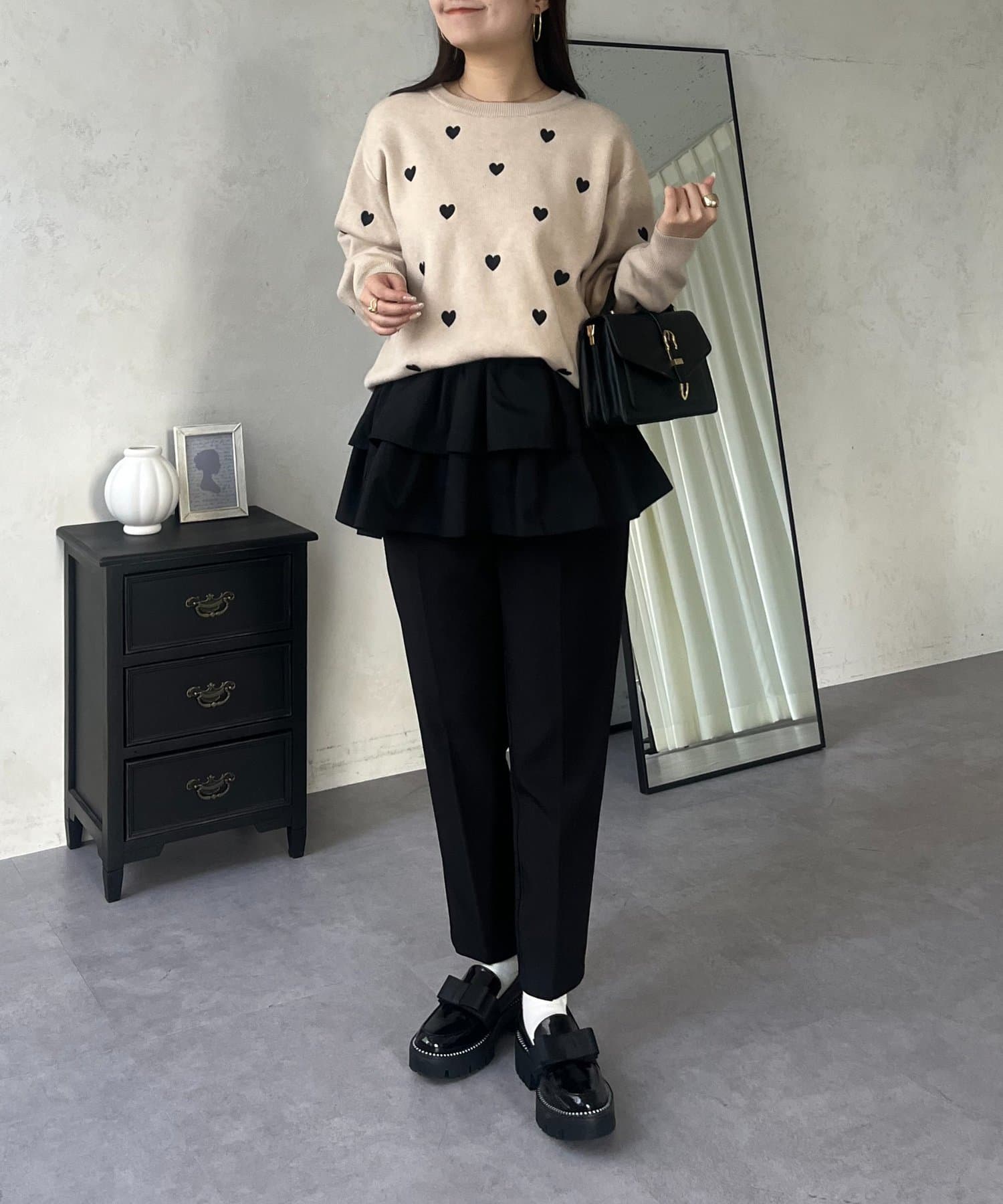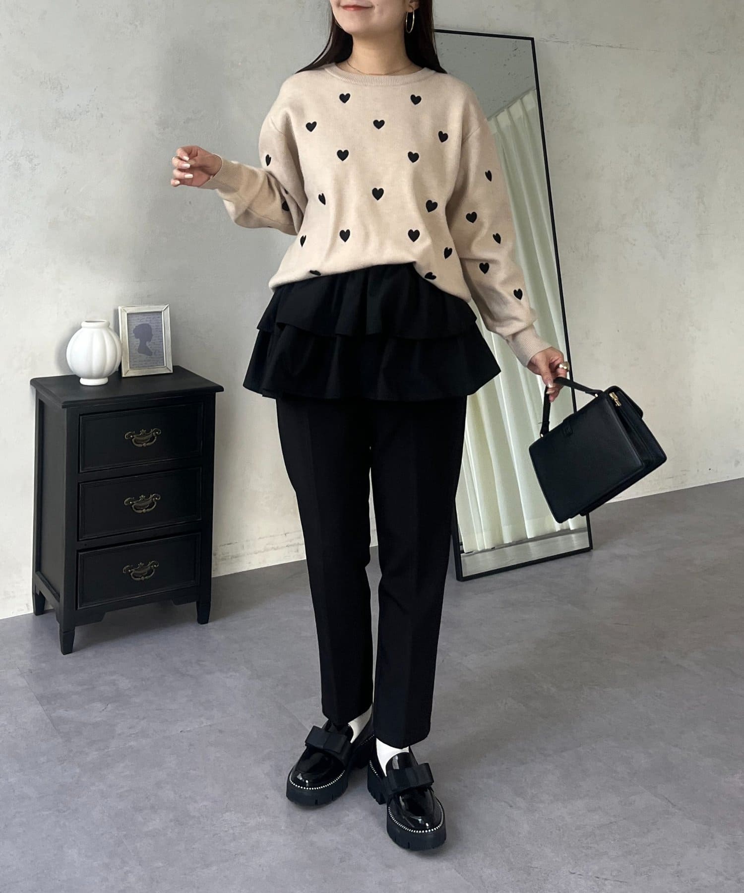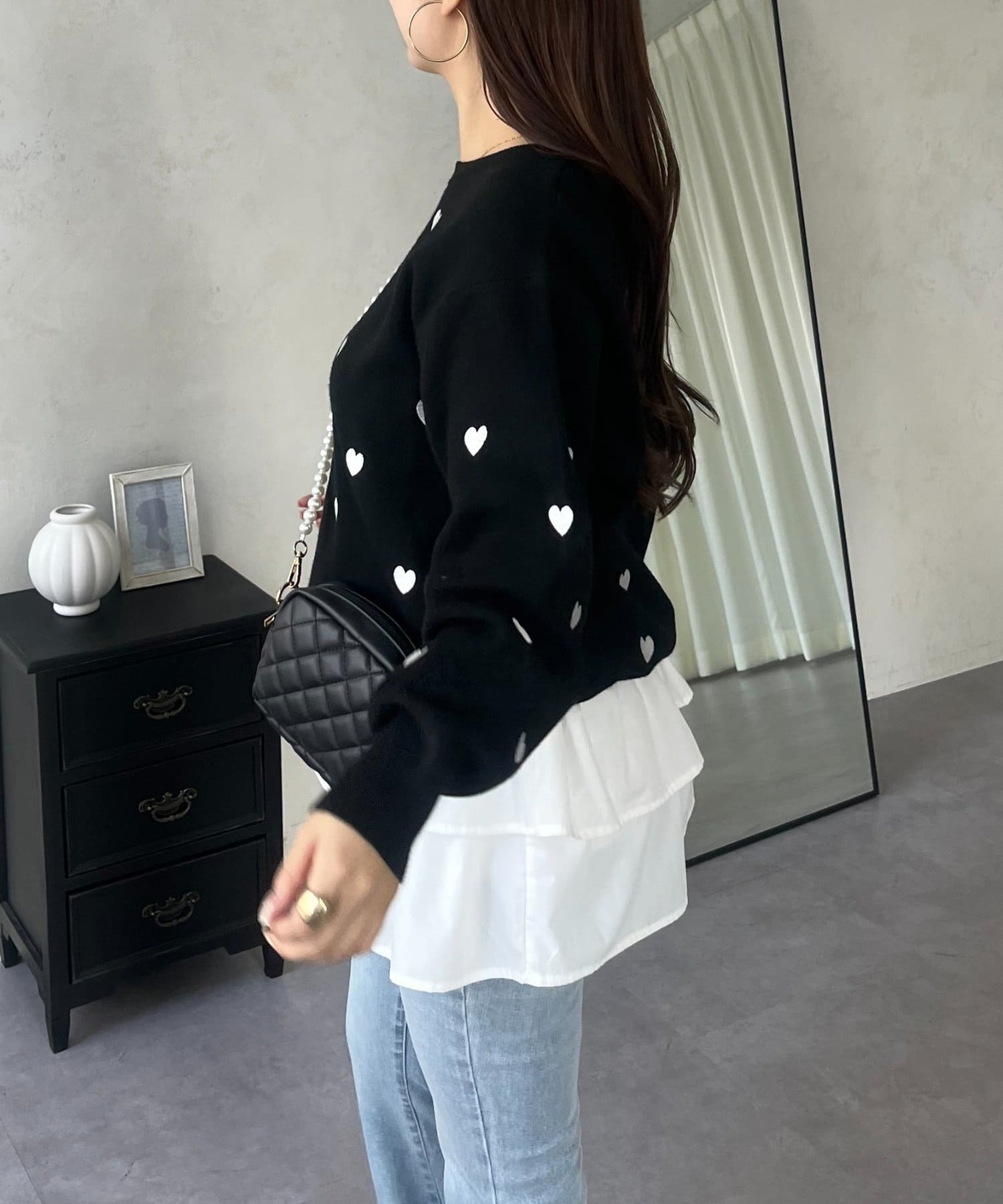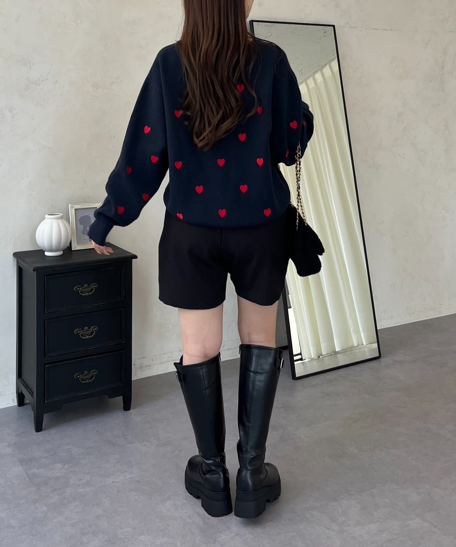 ハート刺繡が大人可愛く着こなせるスウェットライクニット