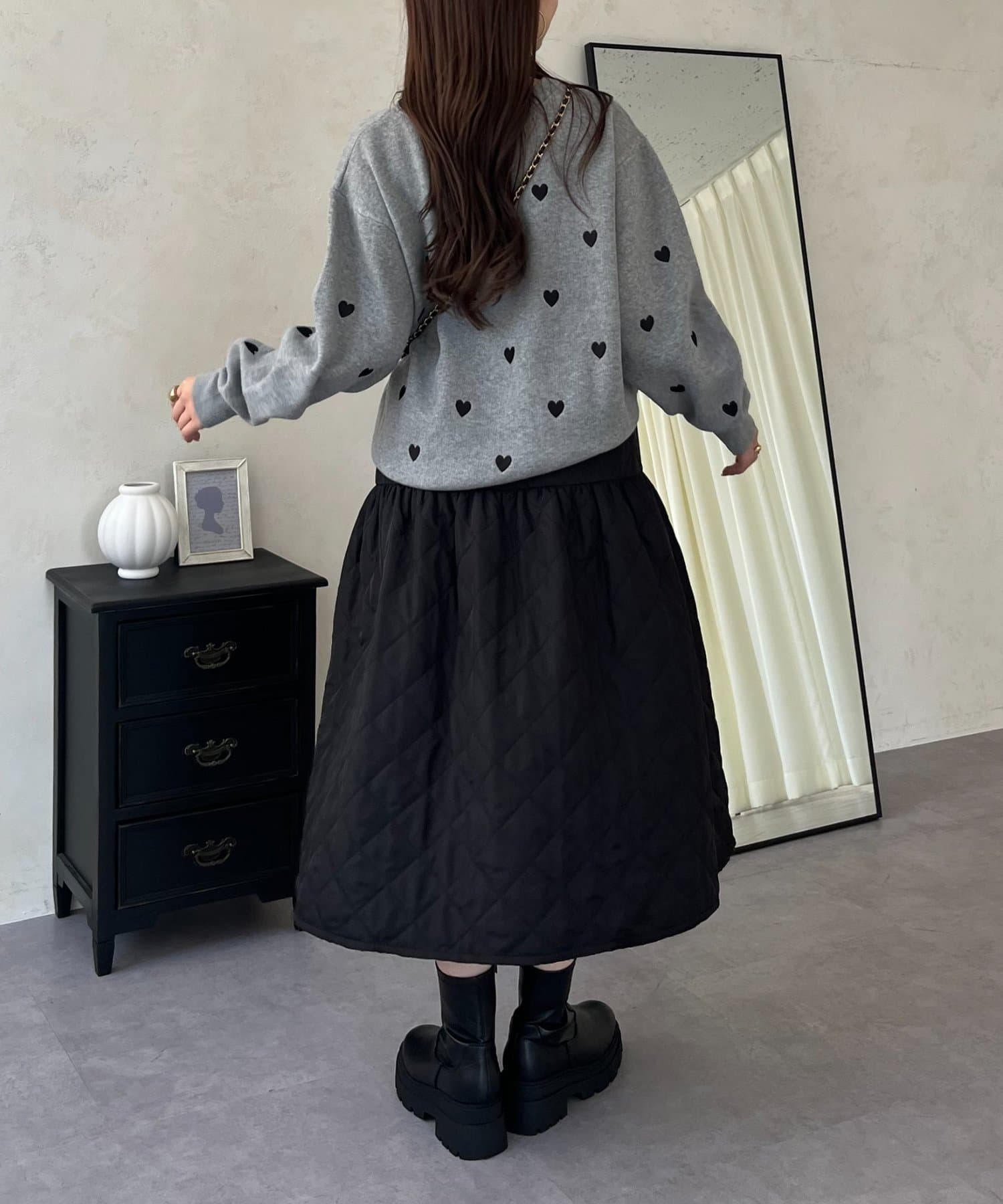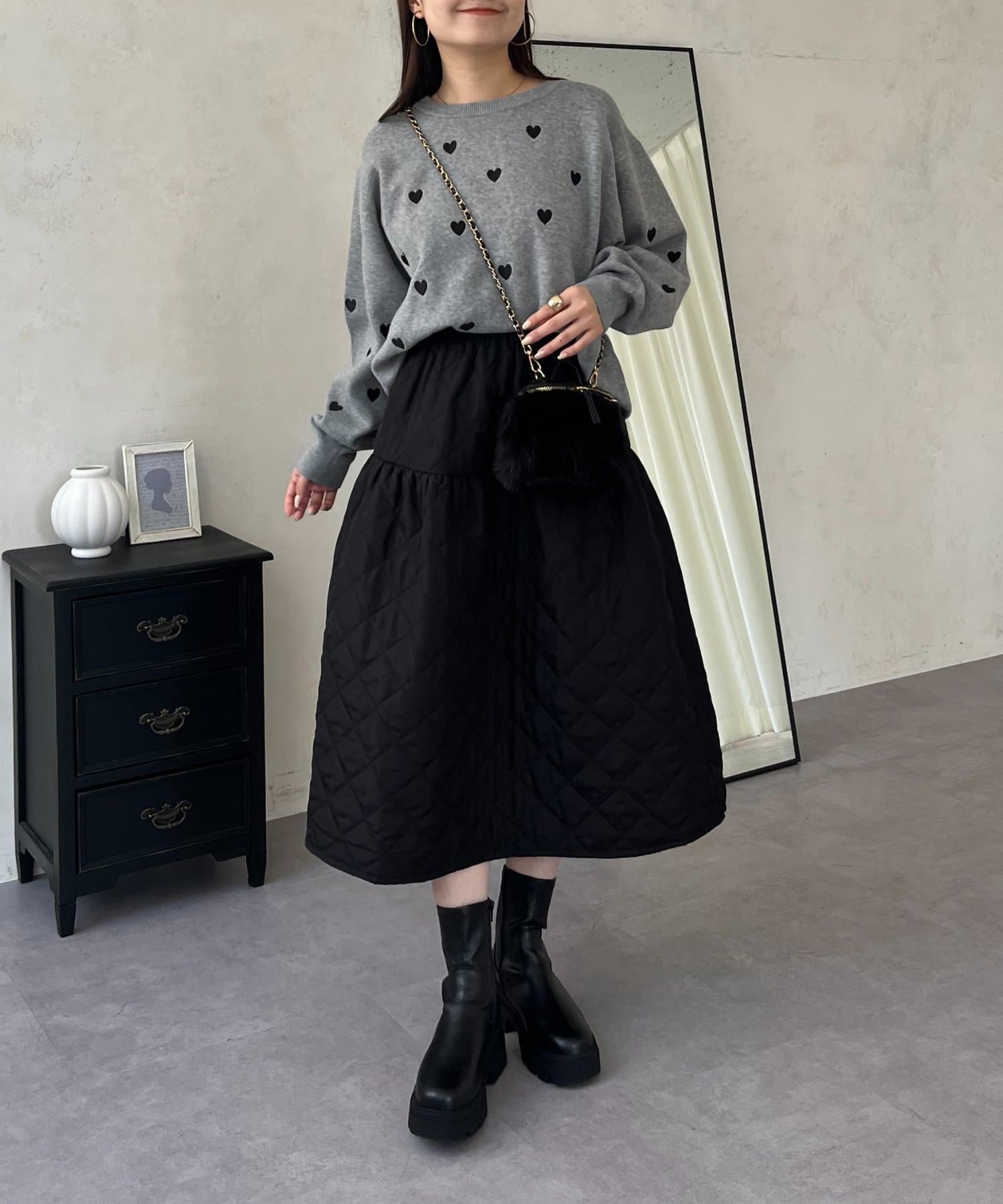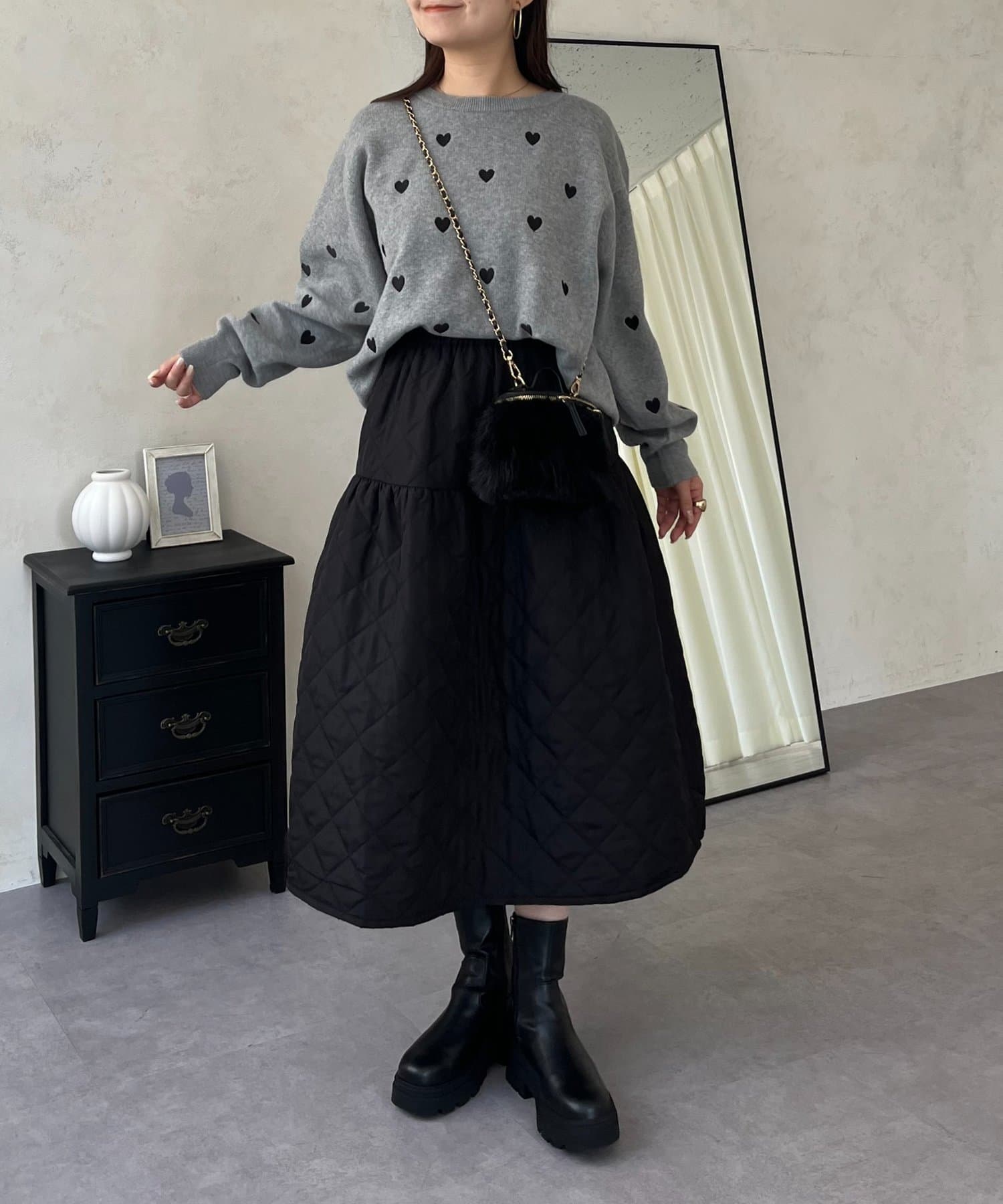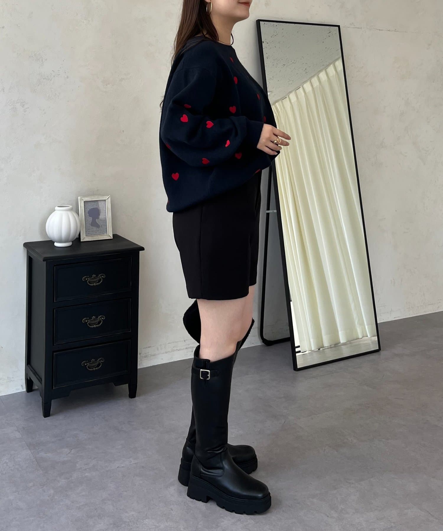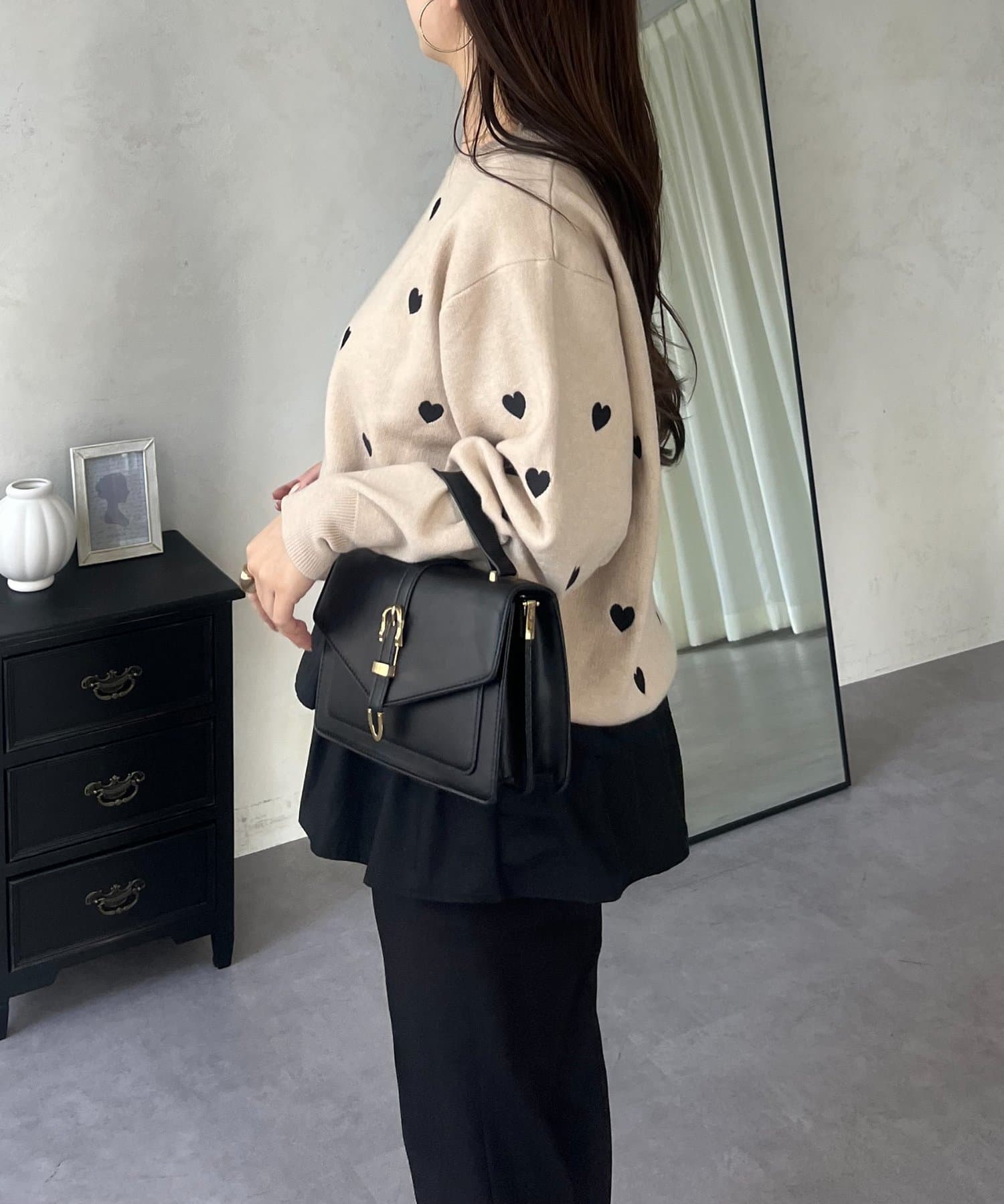 ハート刺繡が大人可愛く着こなせるスウェットライクニット