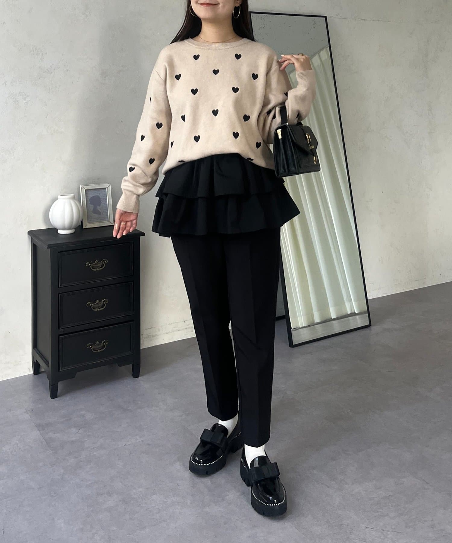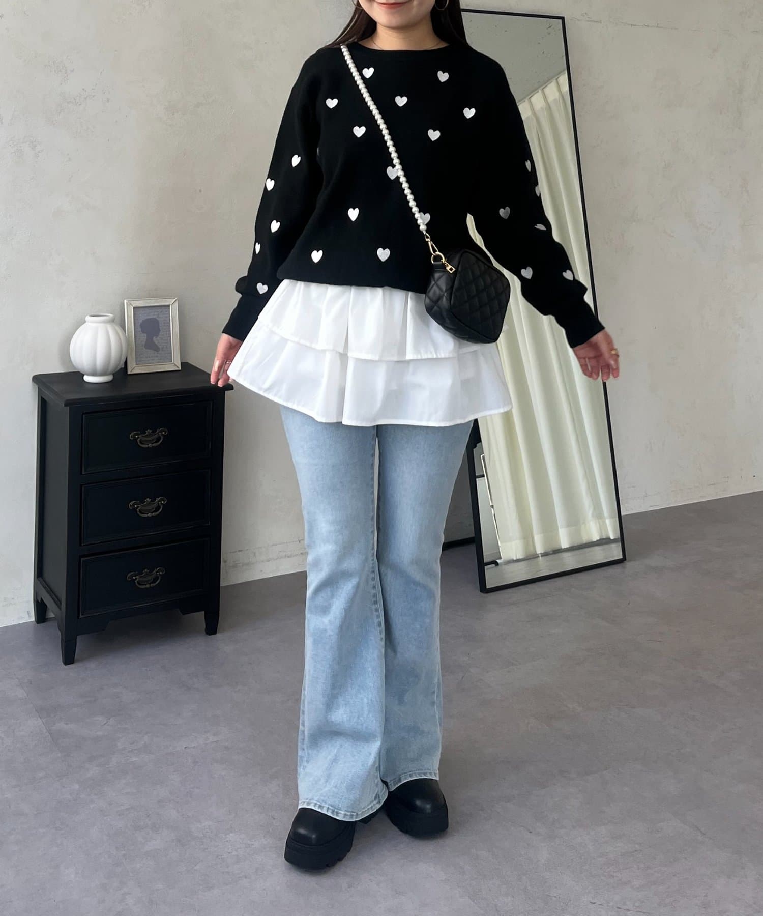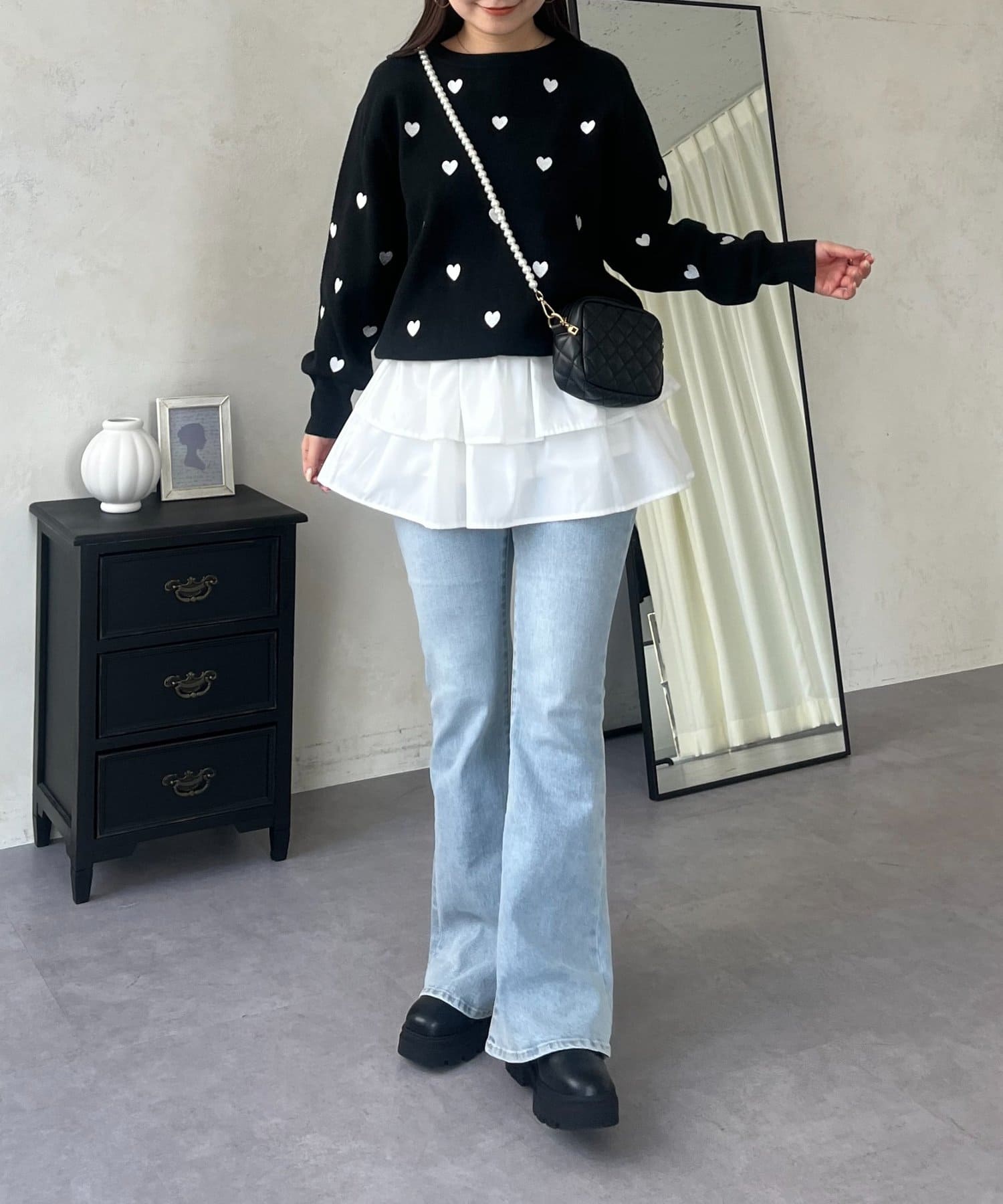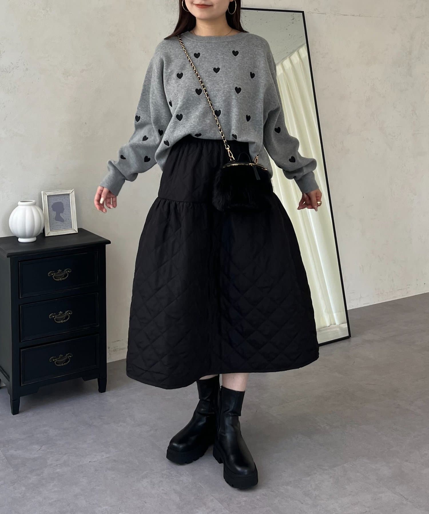 ハート刺繡が大人可愛く着こなせるスウェットライクニット