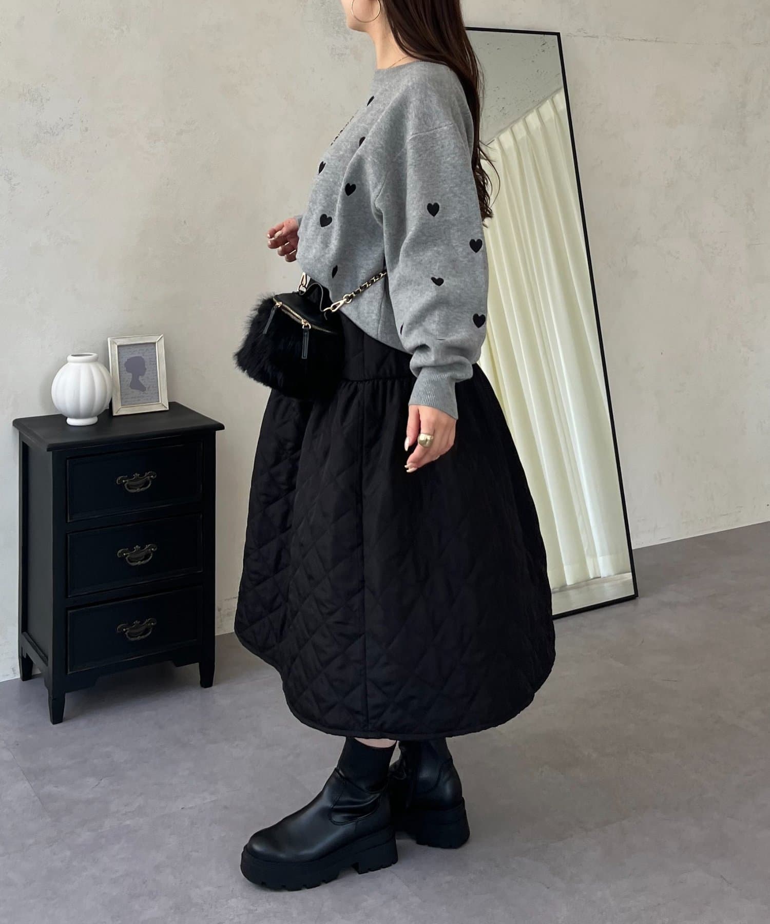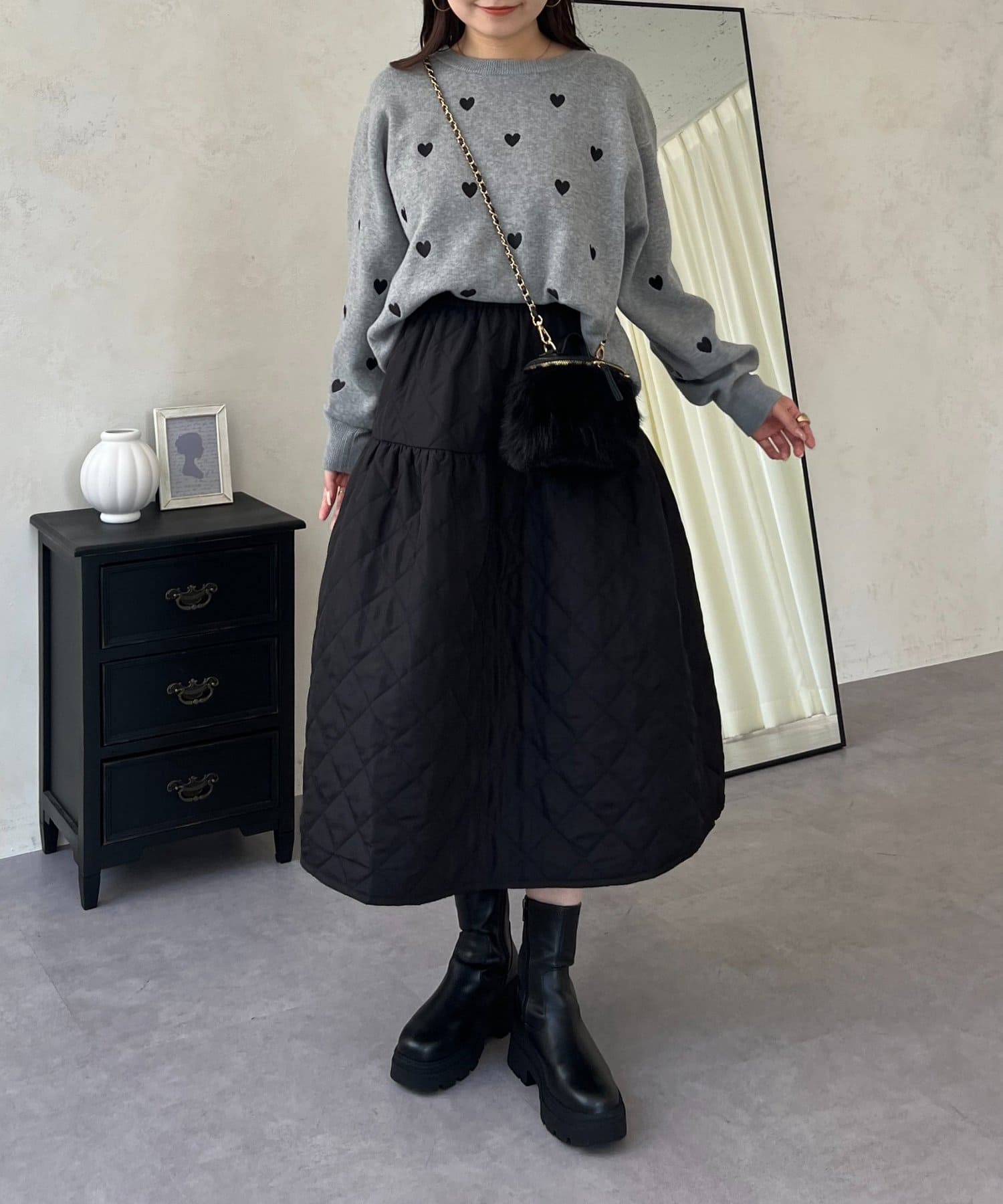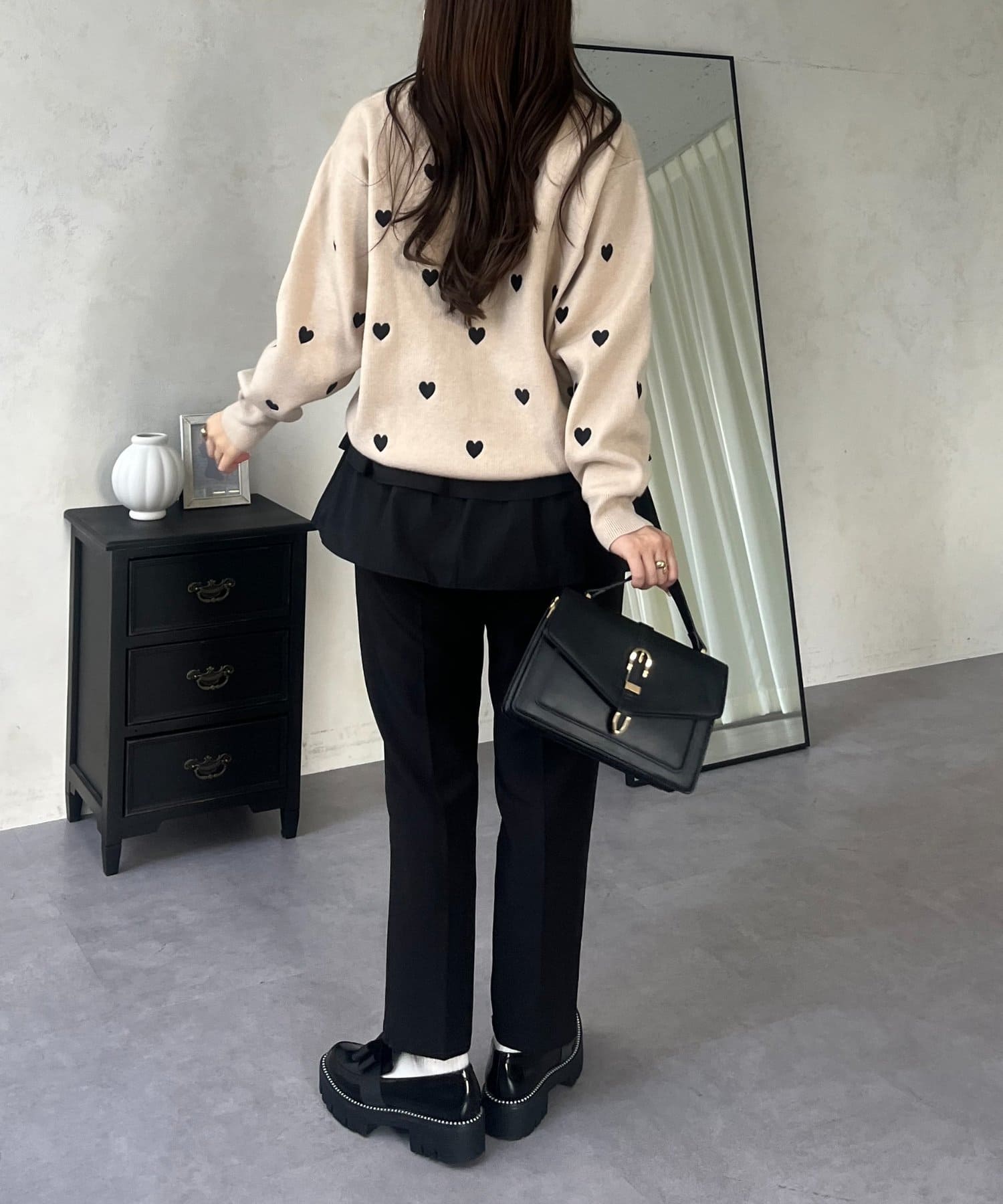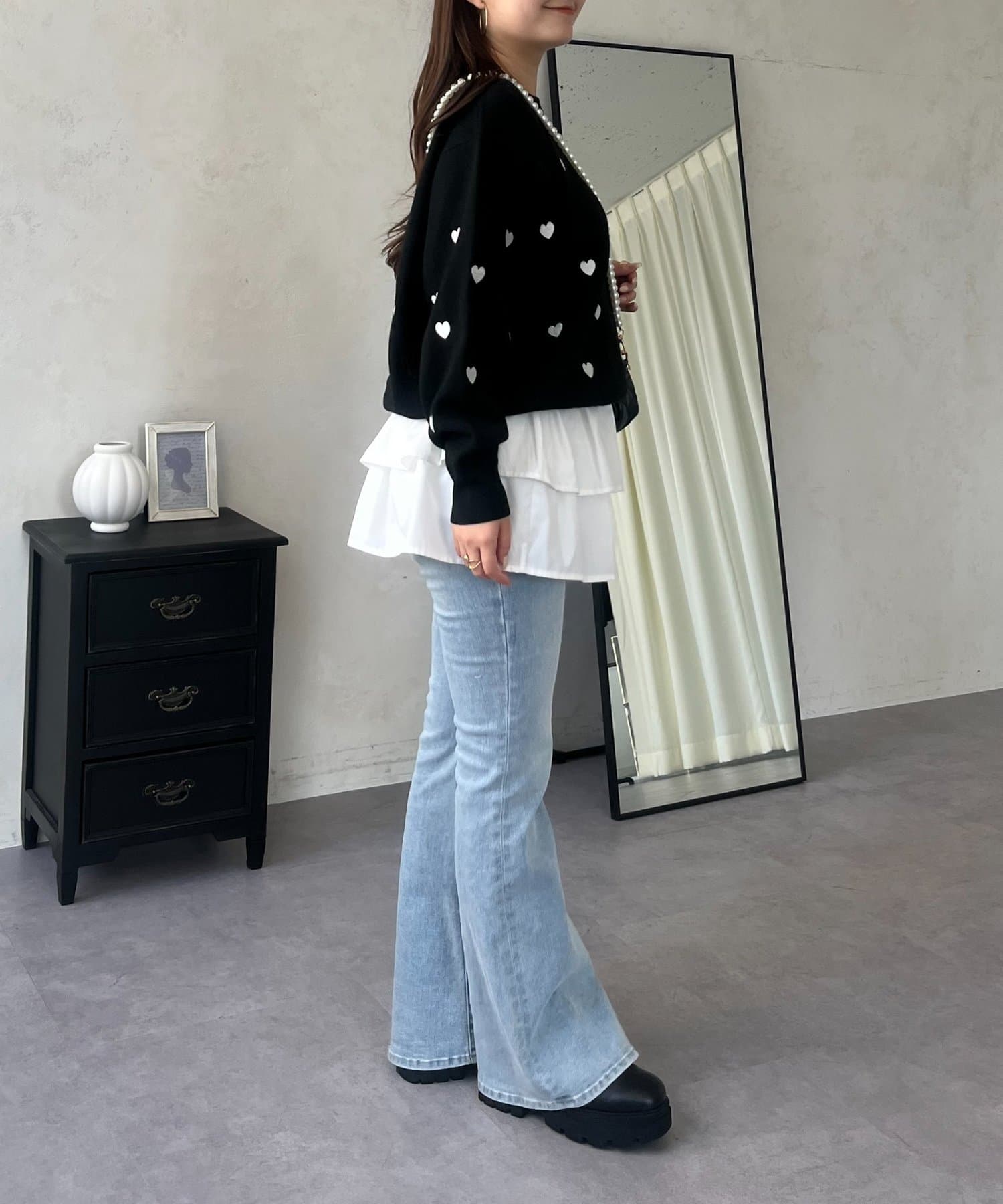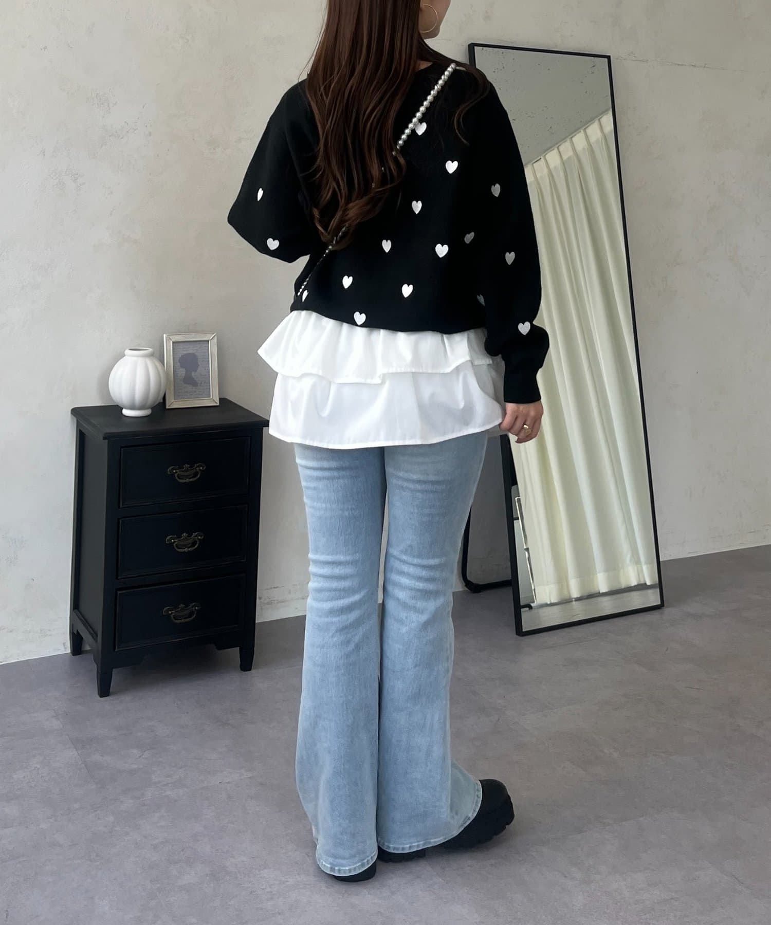 ハート刺繡が大人可愛く着こなせるスウェットライクニット