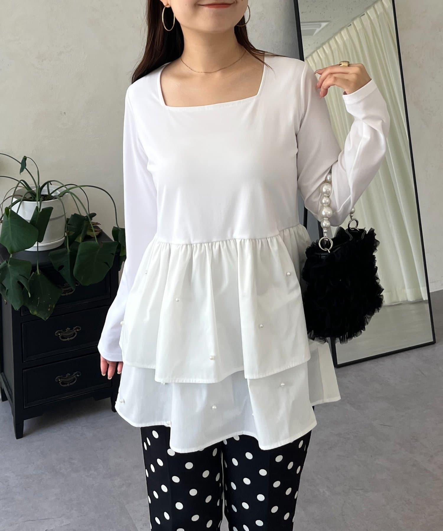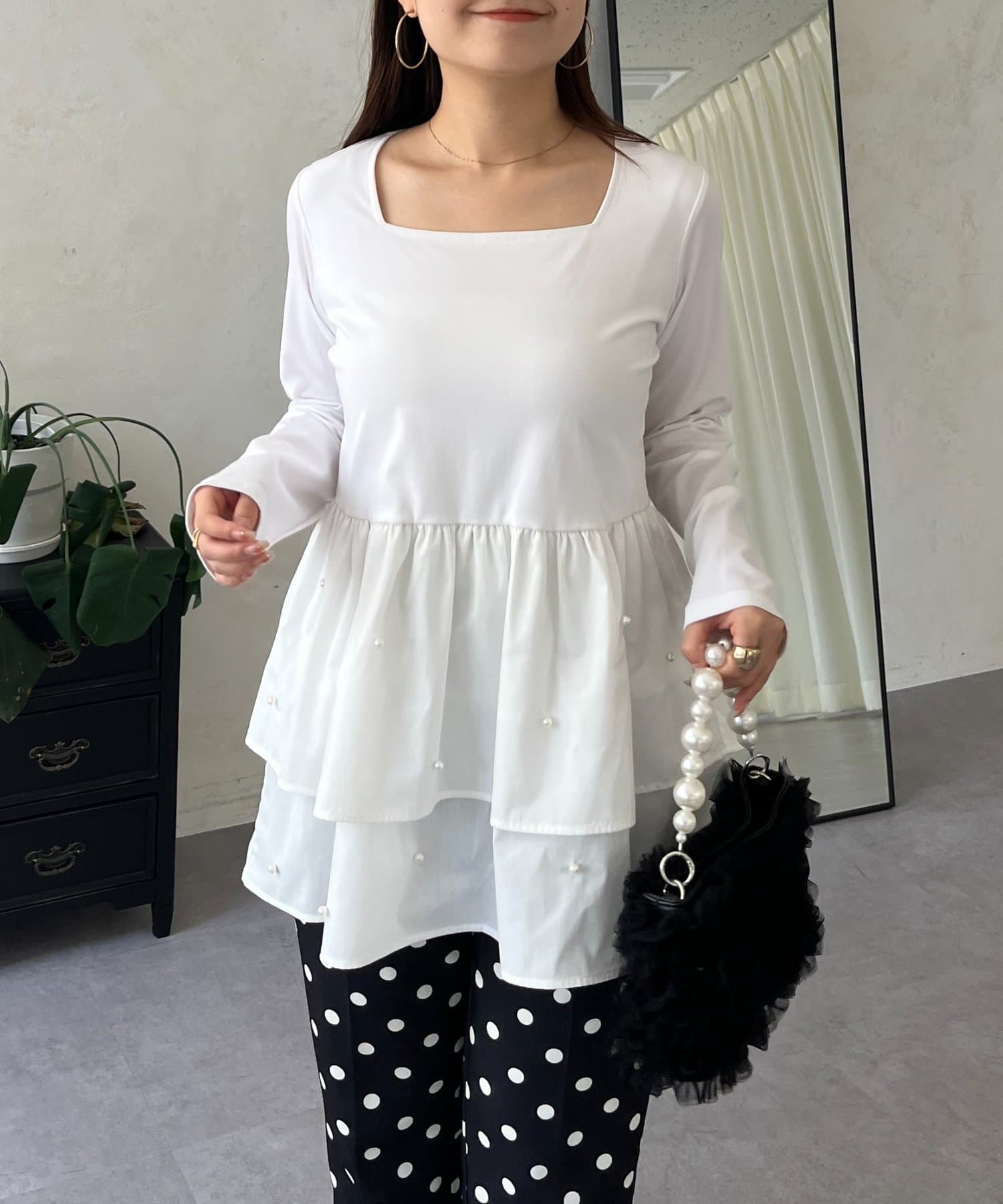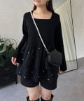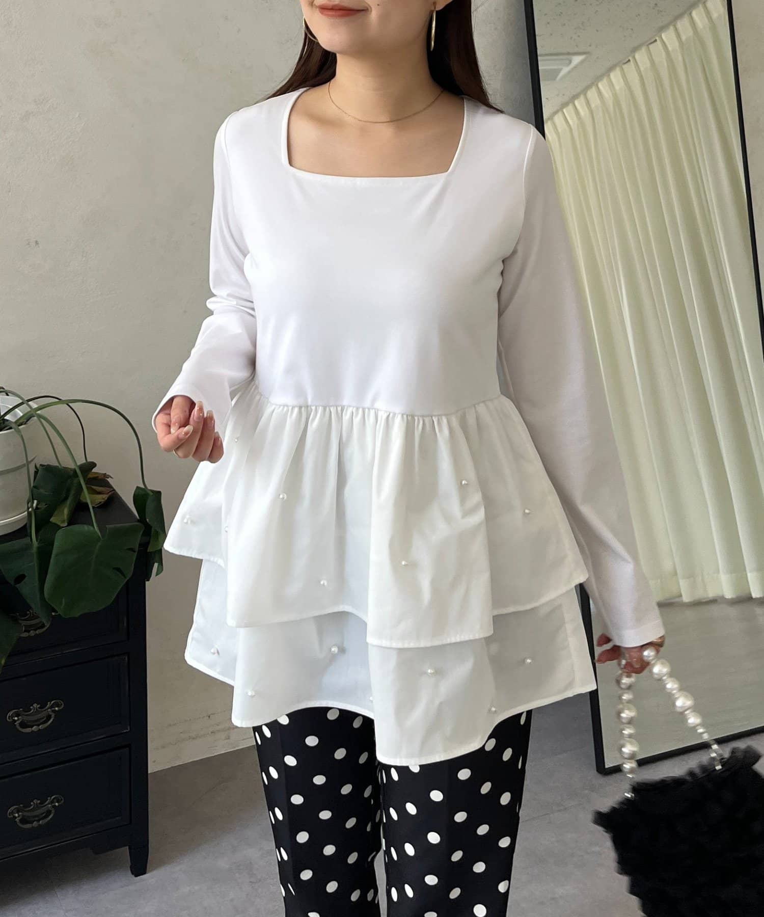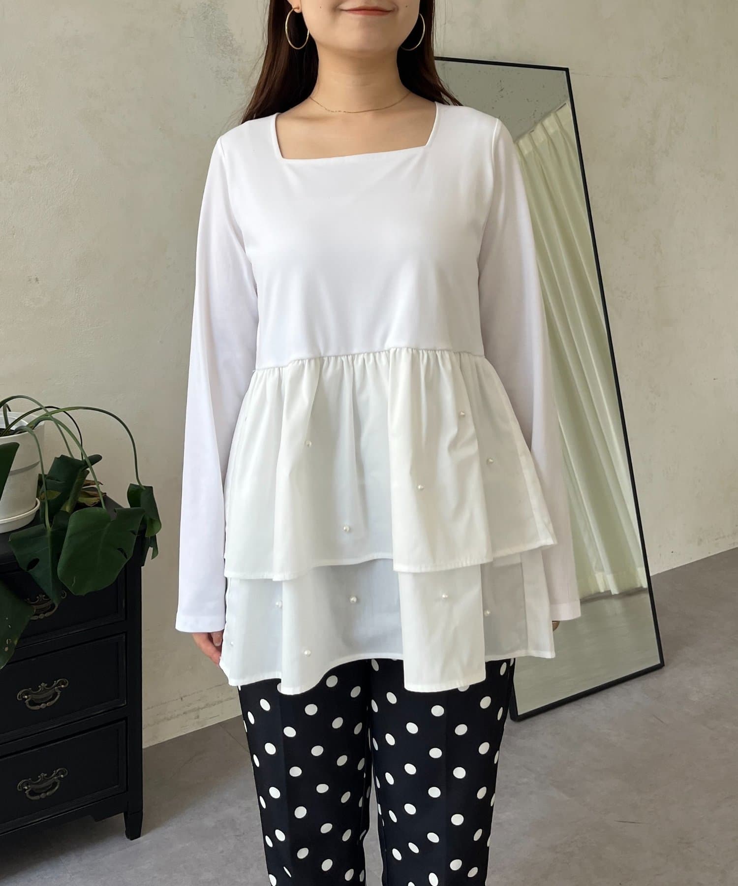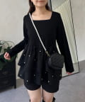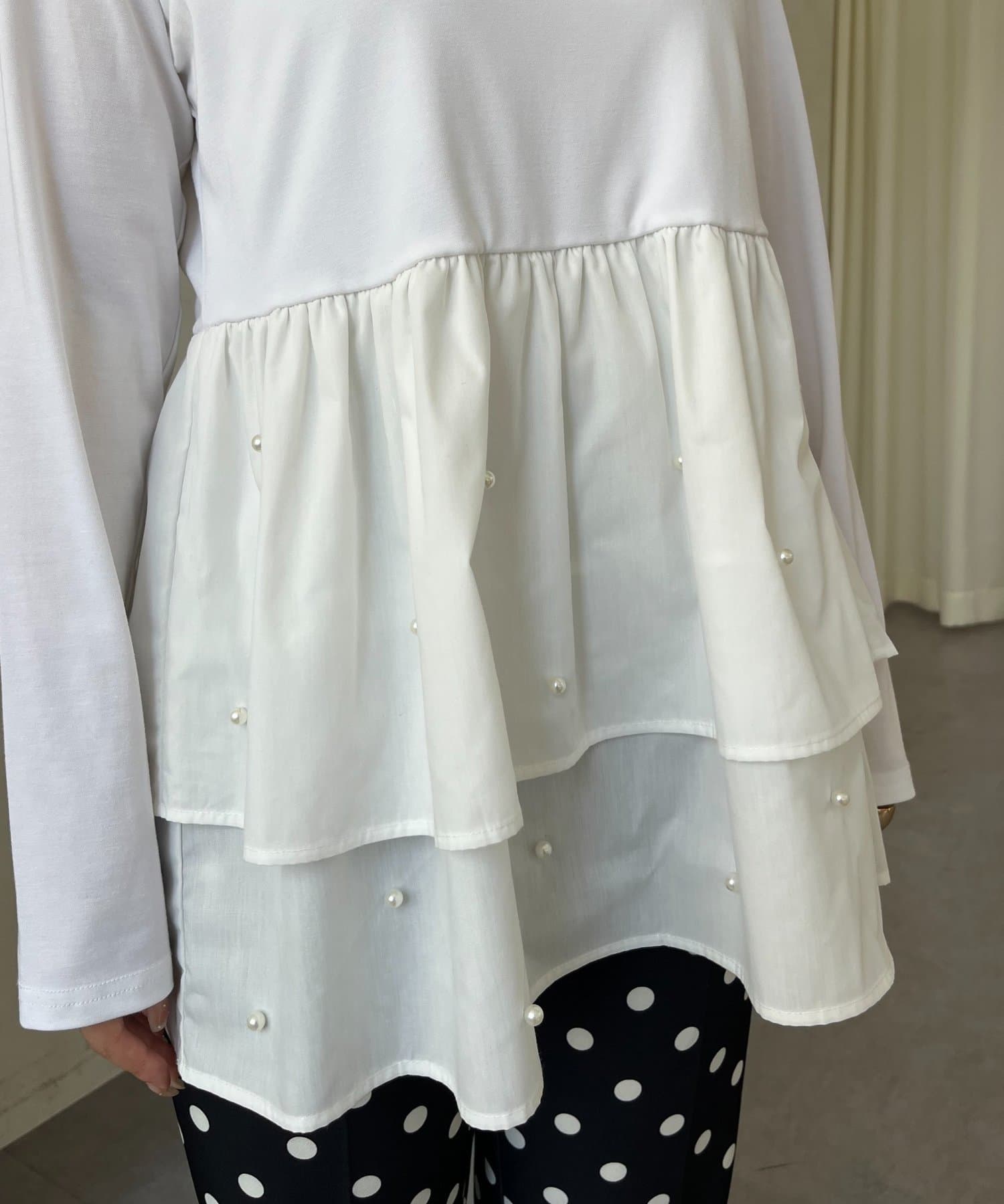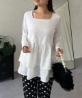 スクエアネックパールペプラムレイヤードロンT