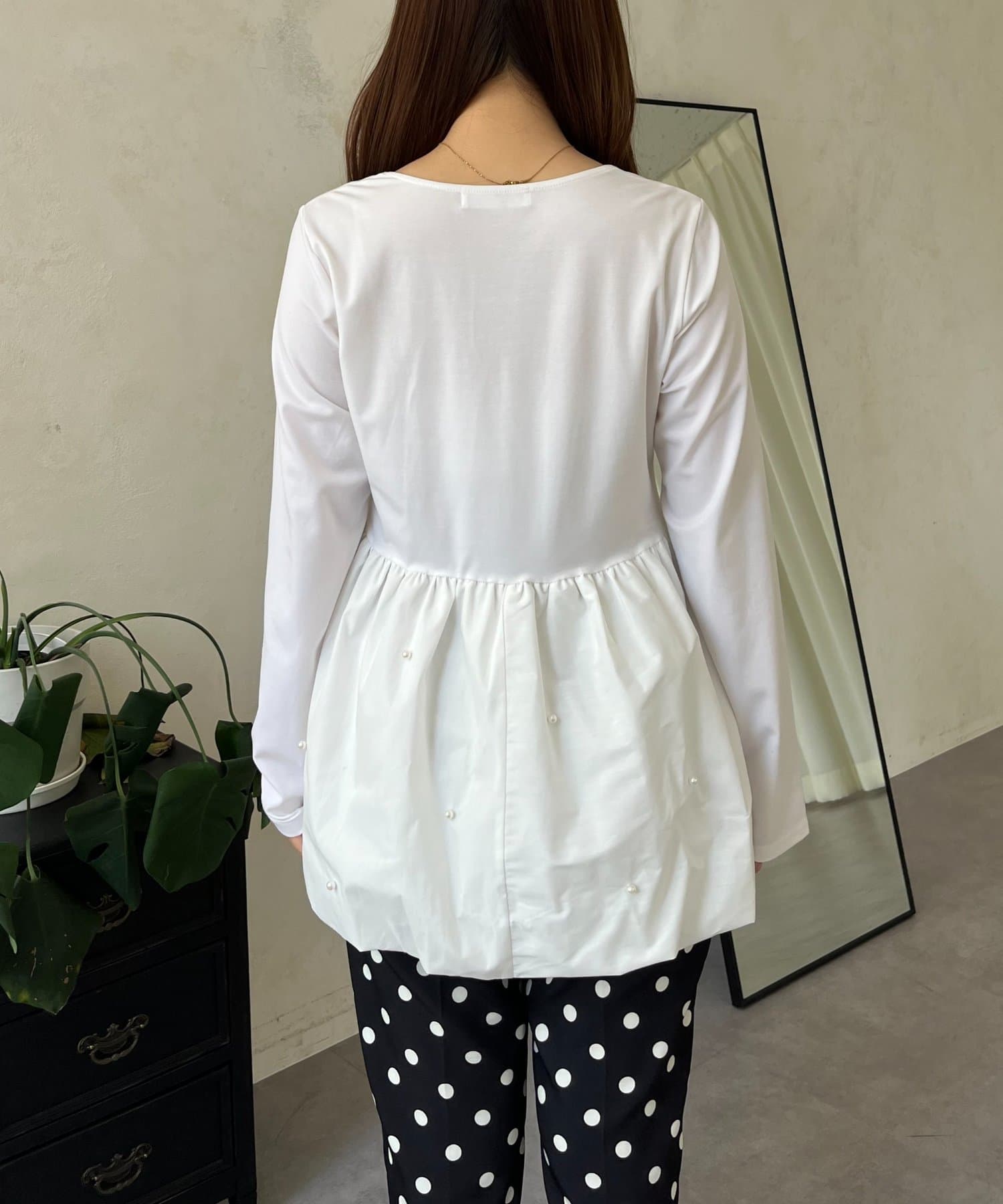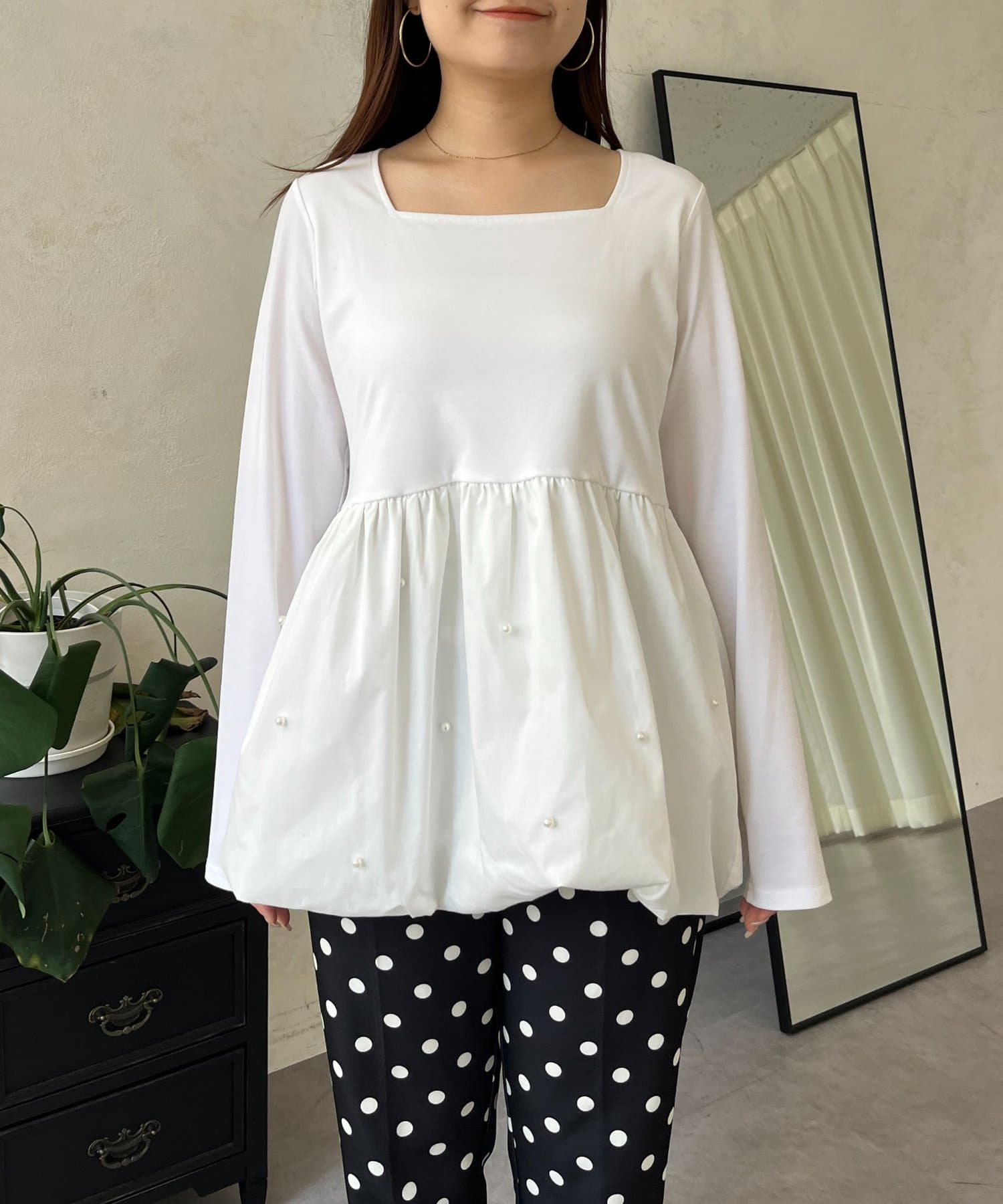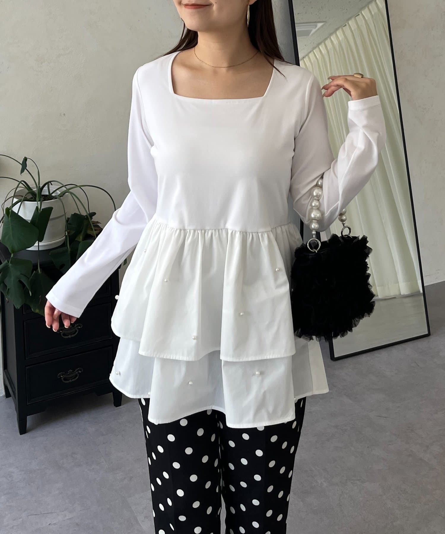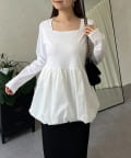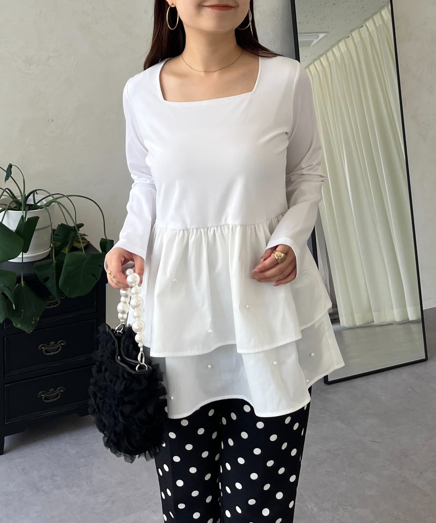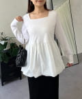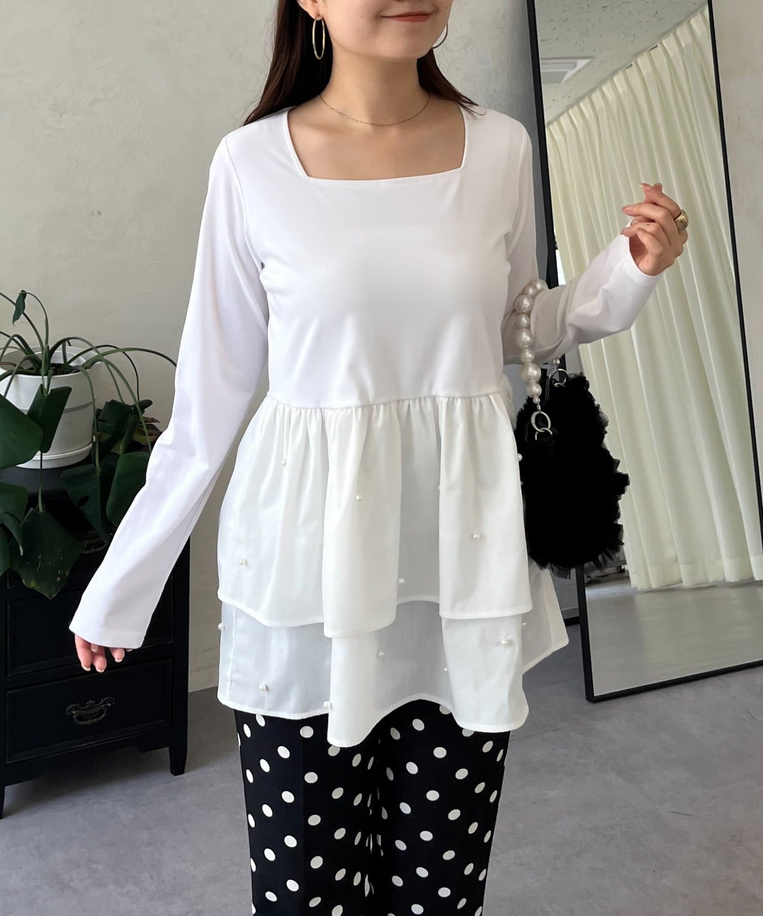 スクエアネックパールペプラムレイヤードロンT