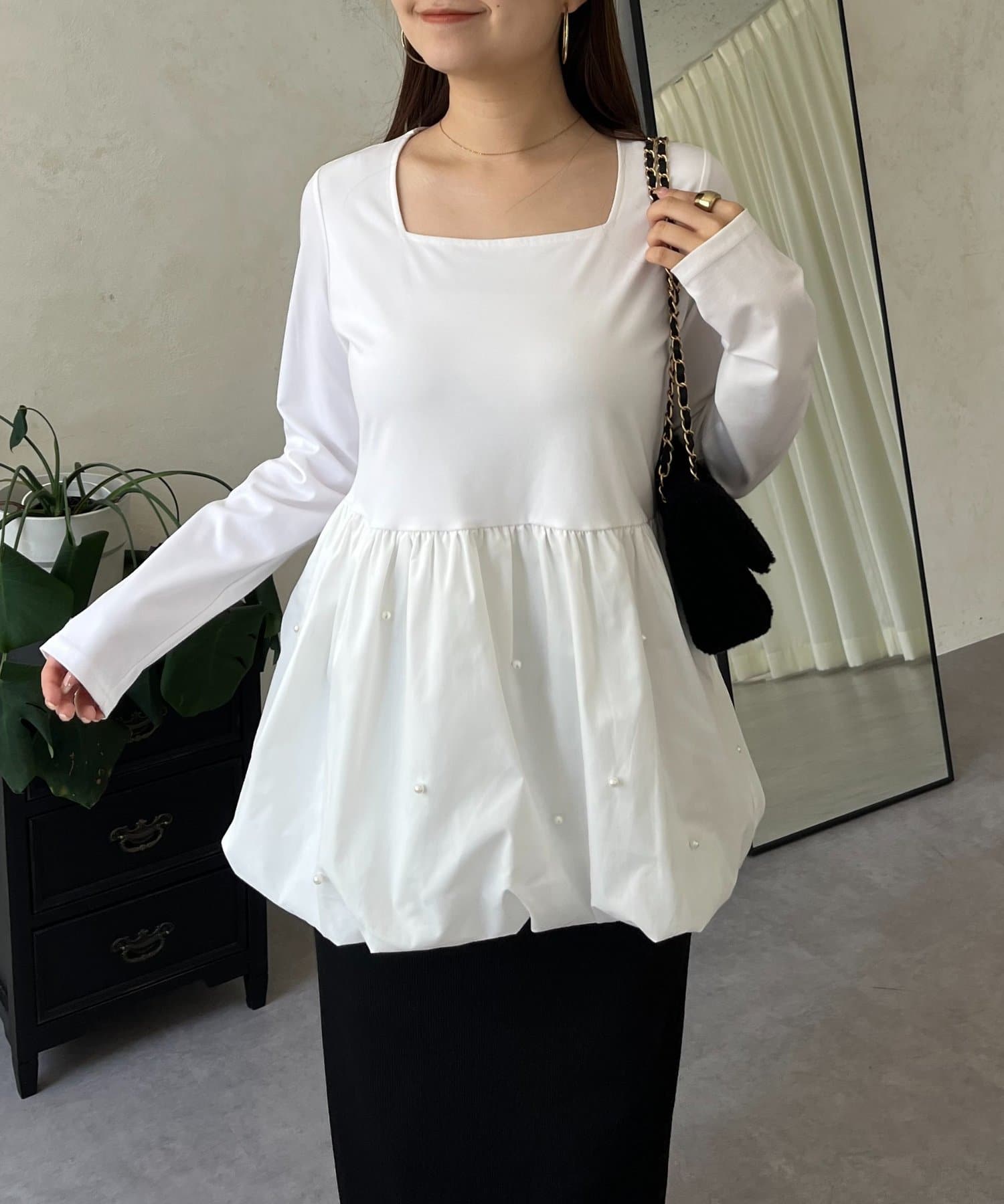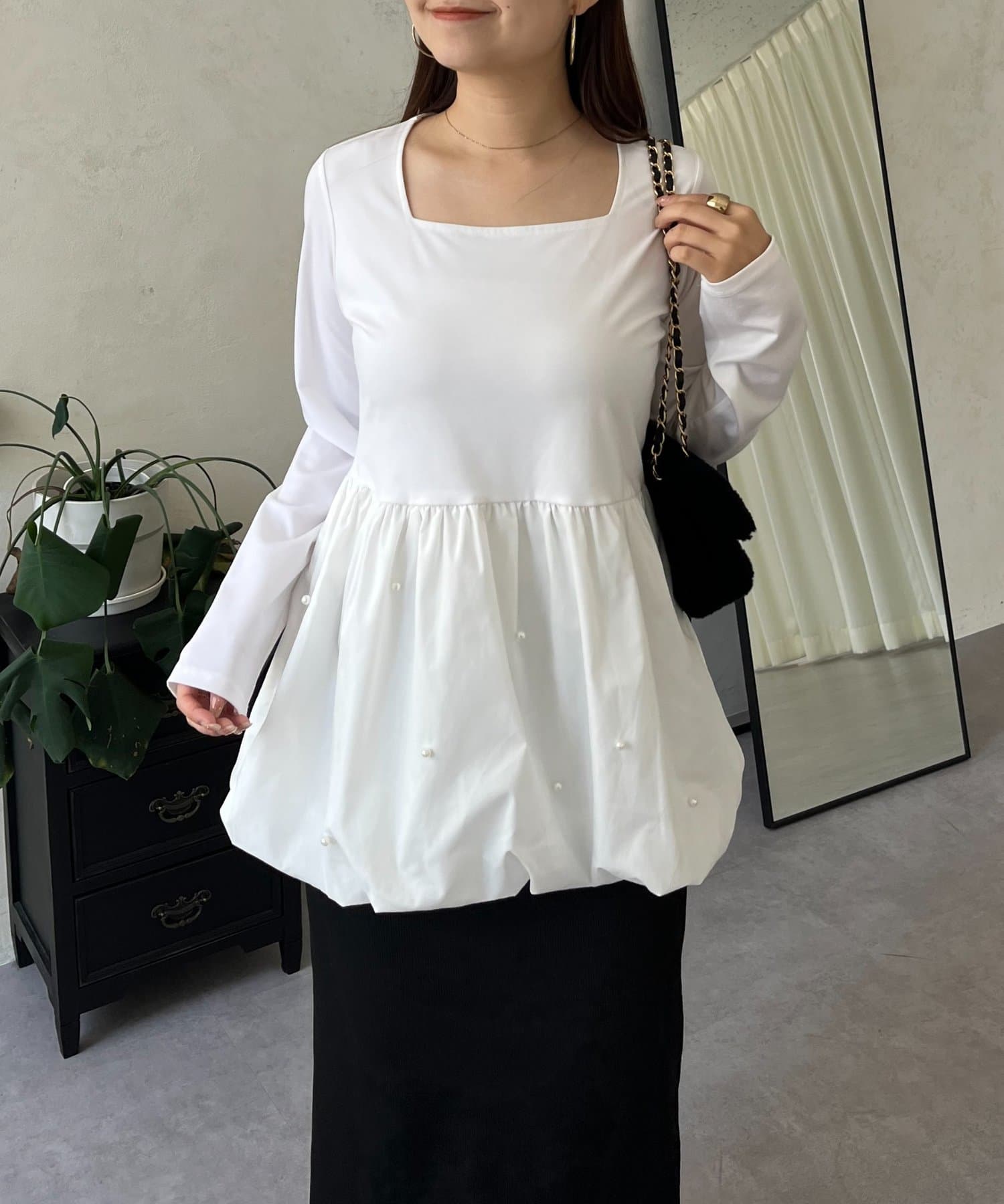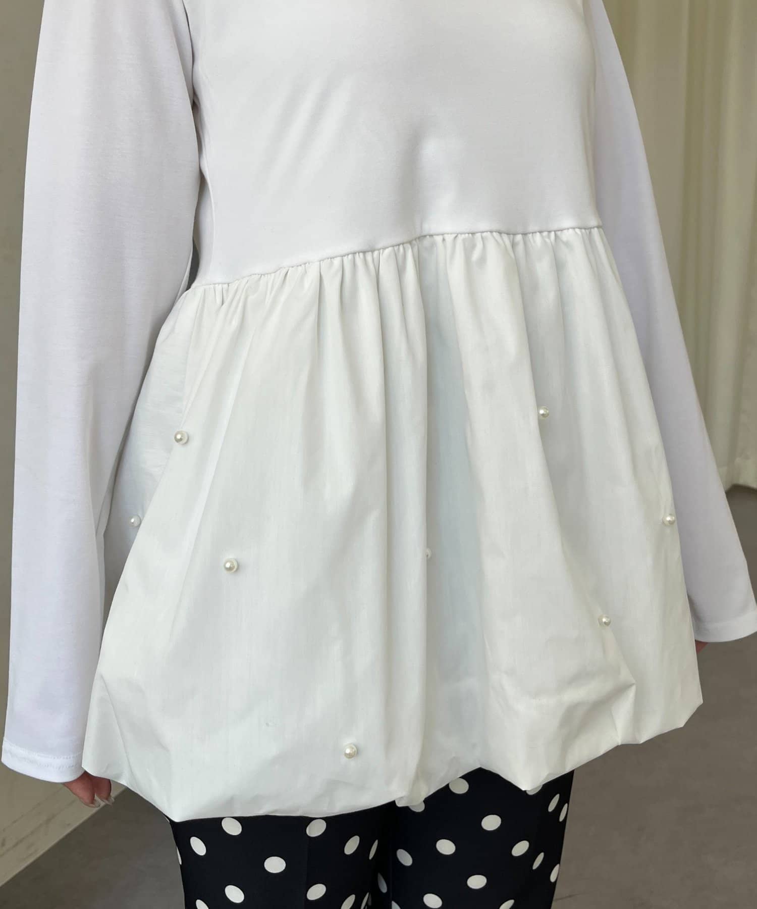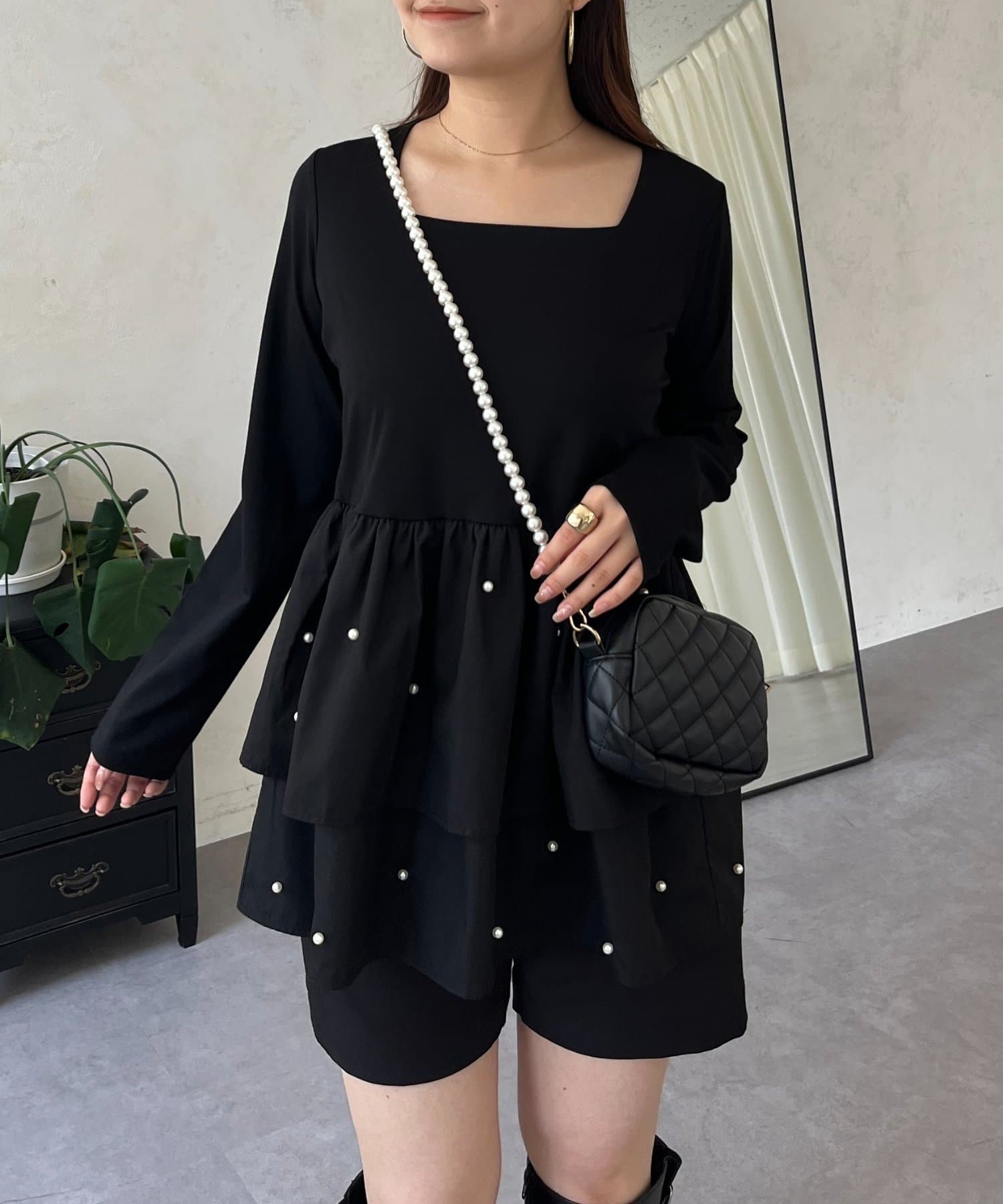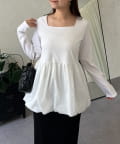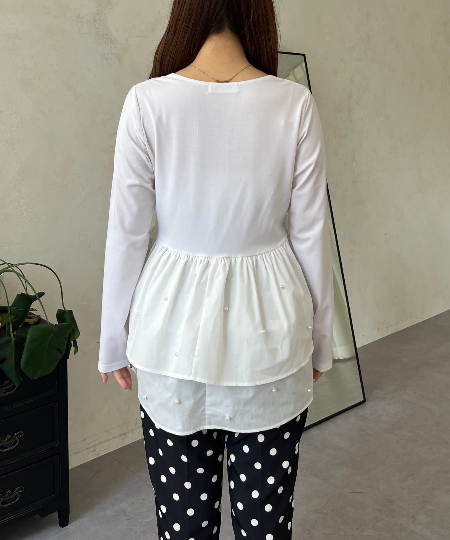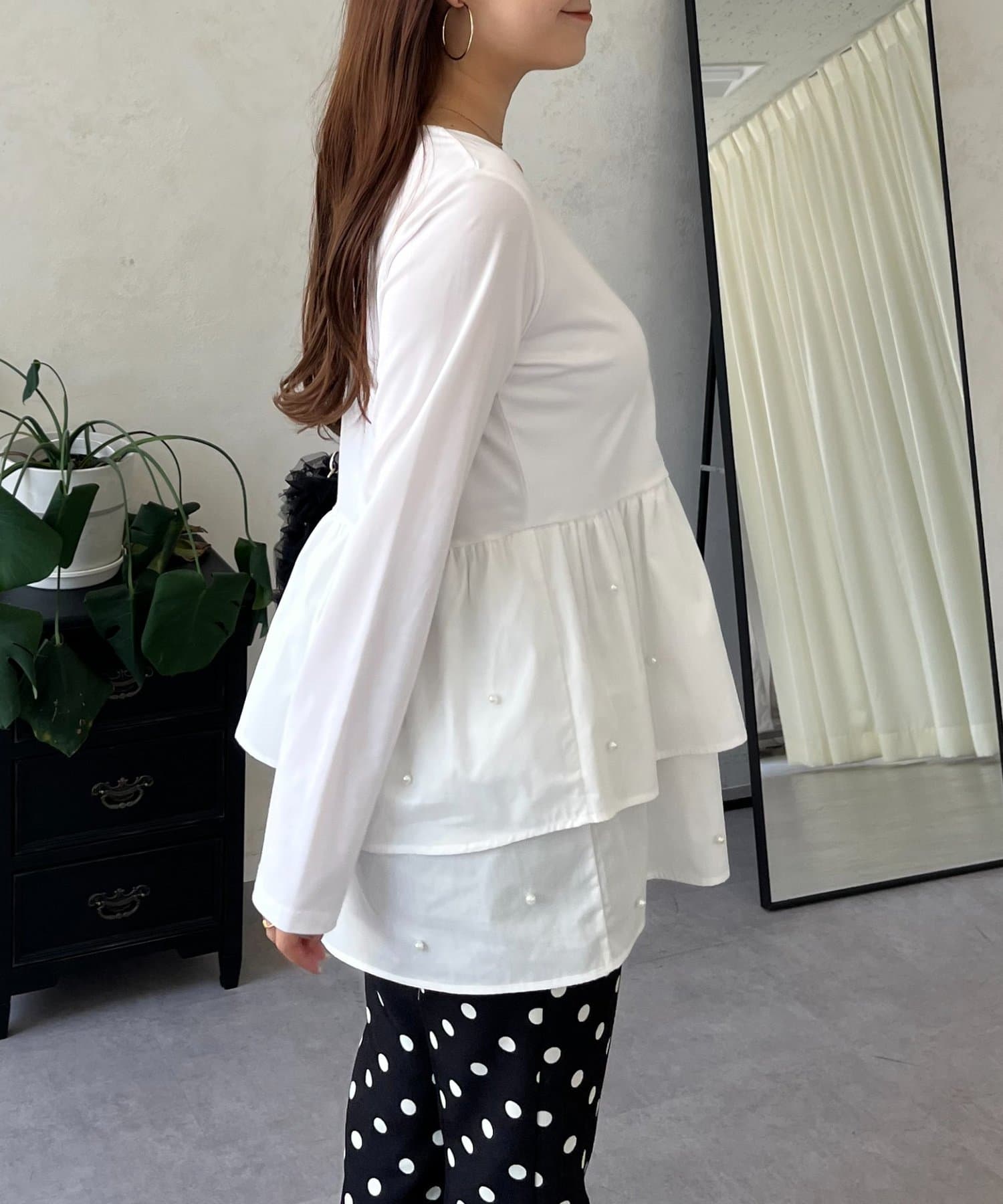 スクエアネックパールペプラムレイヤードロンT