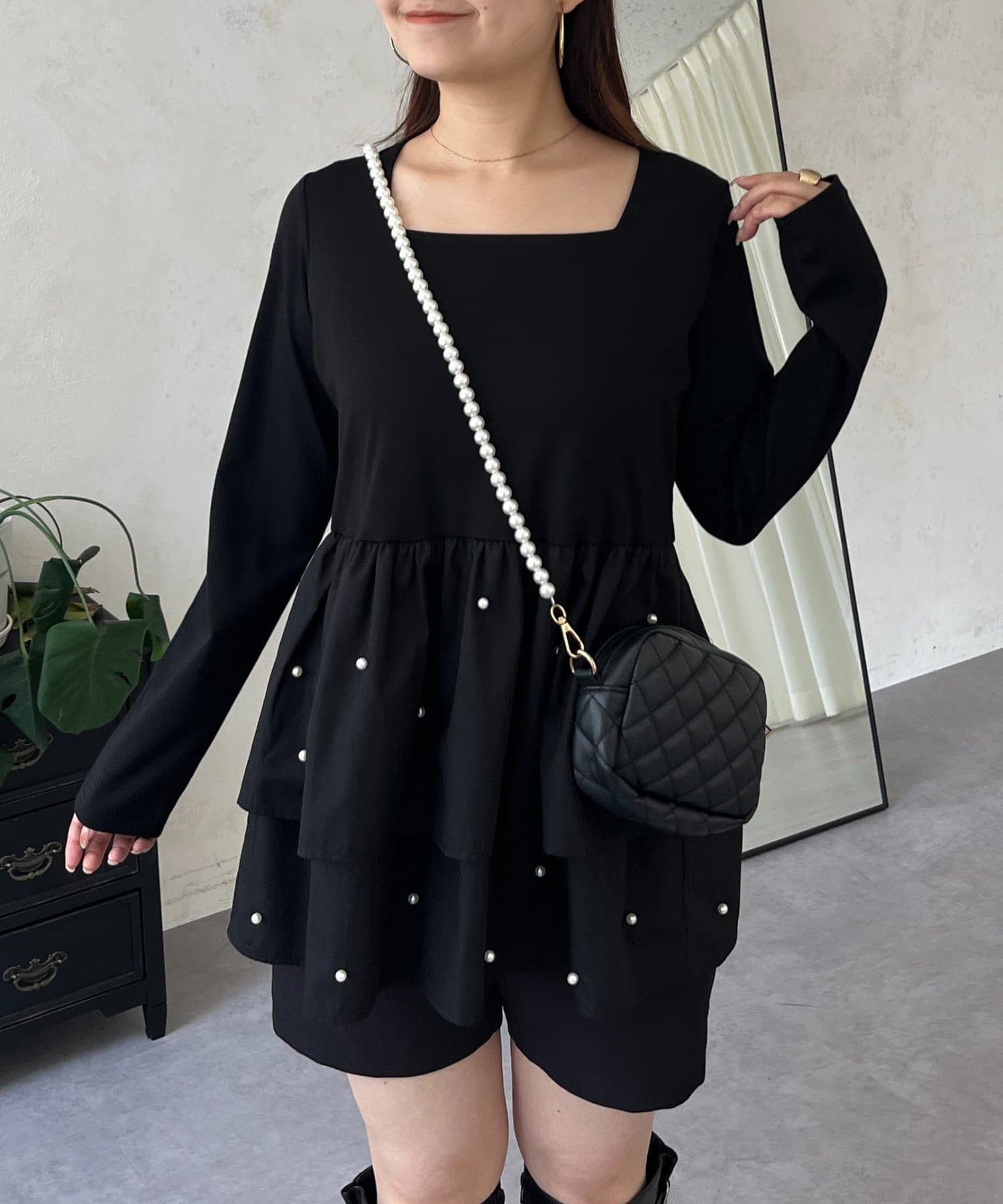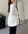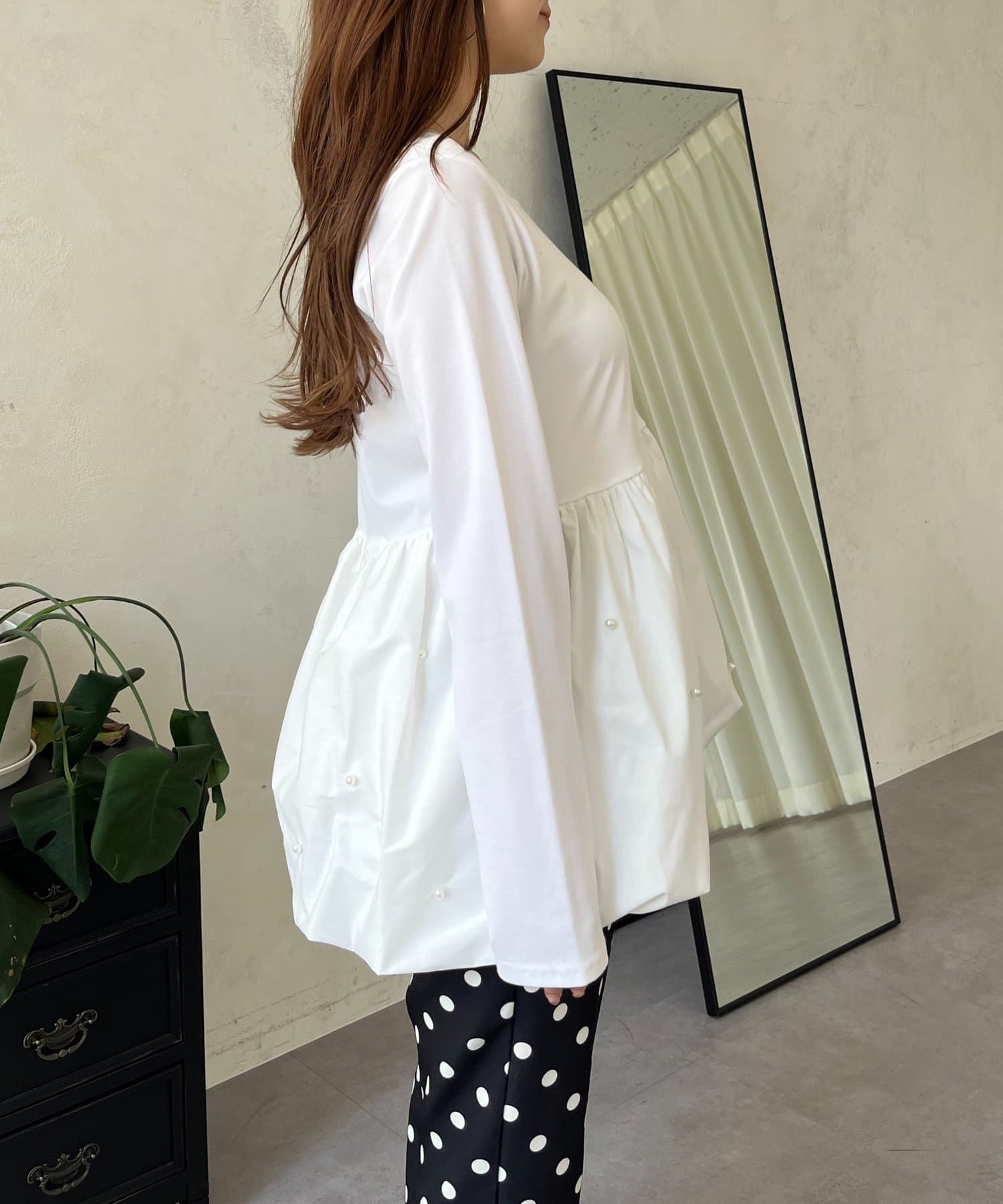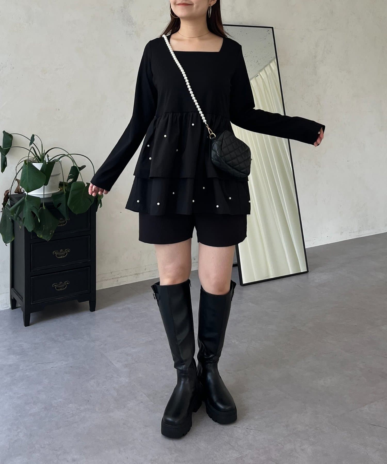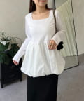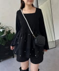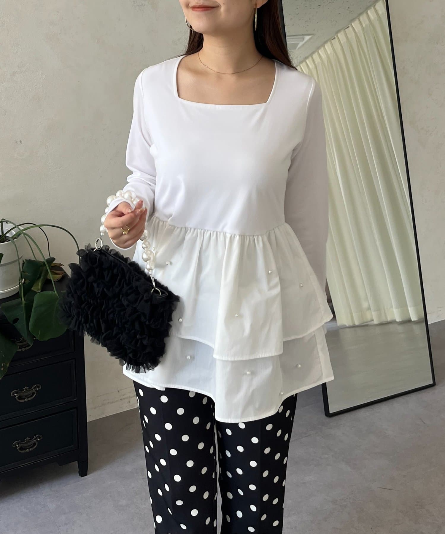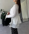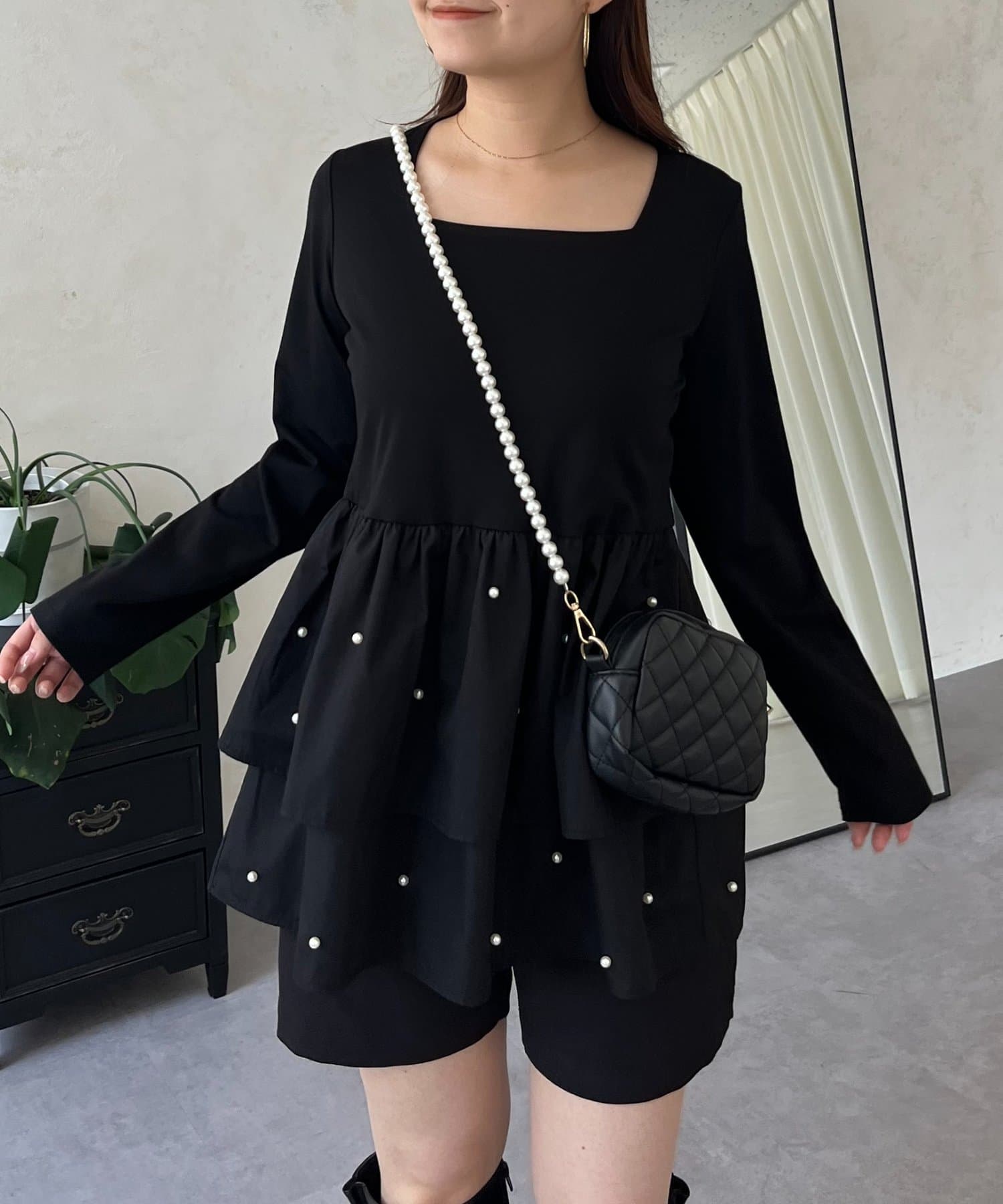 スクエアネックパールペプラムレイヤードロンT