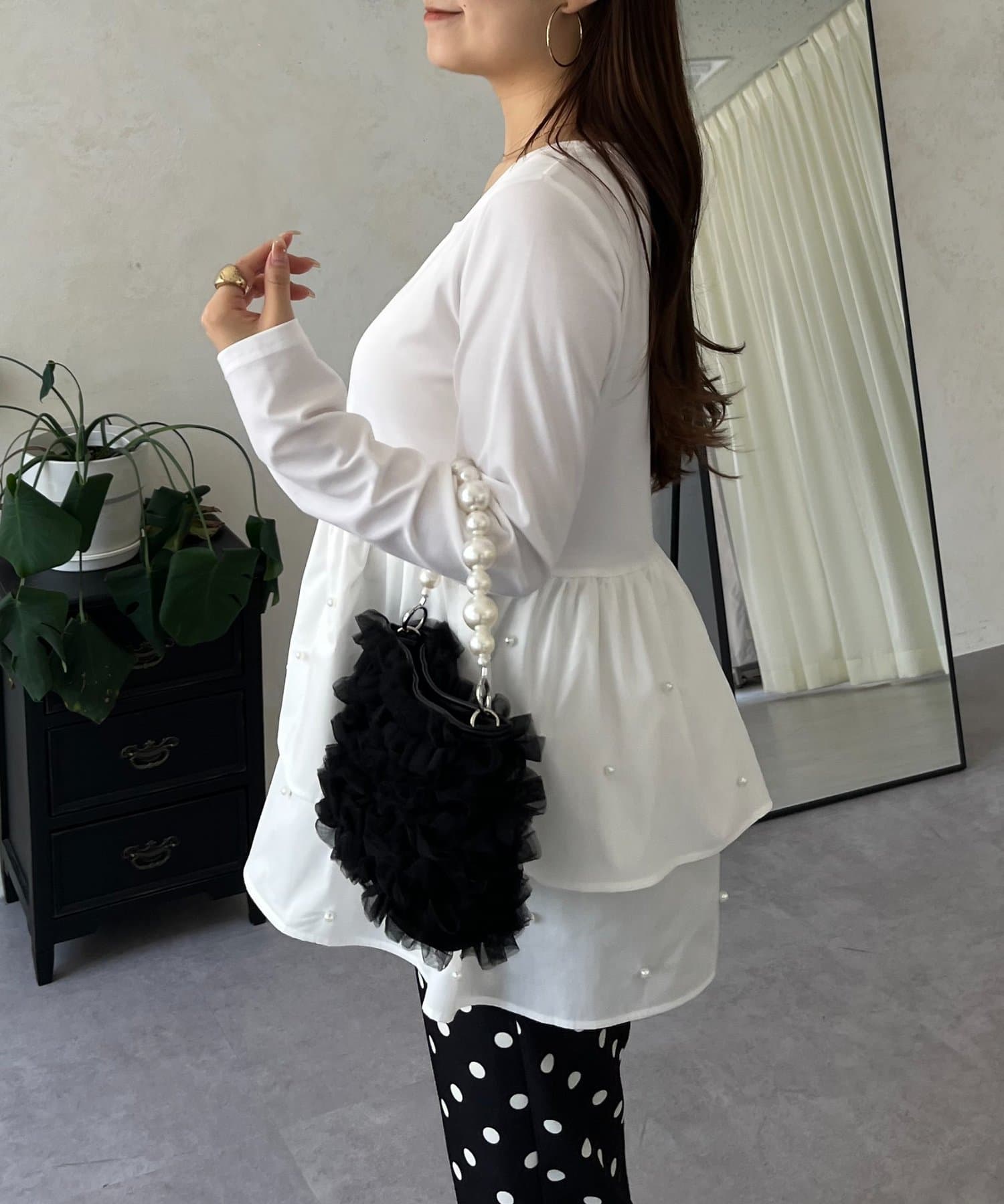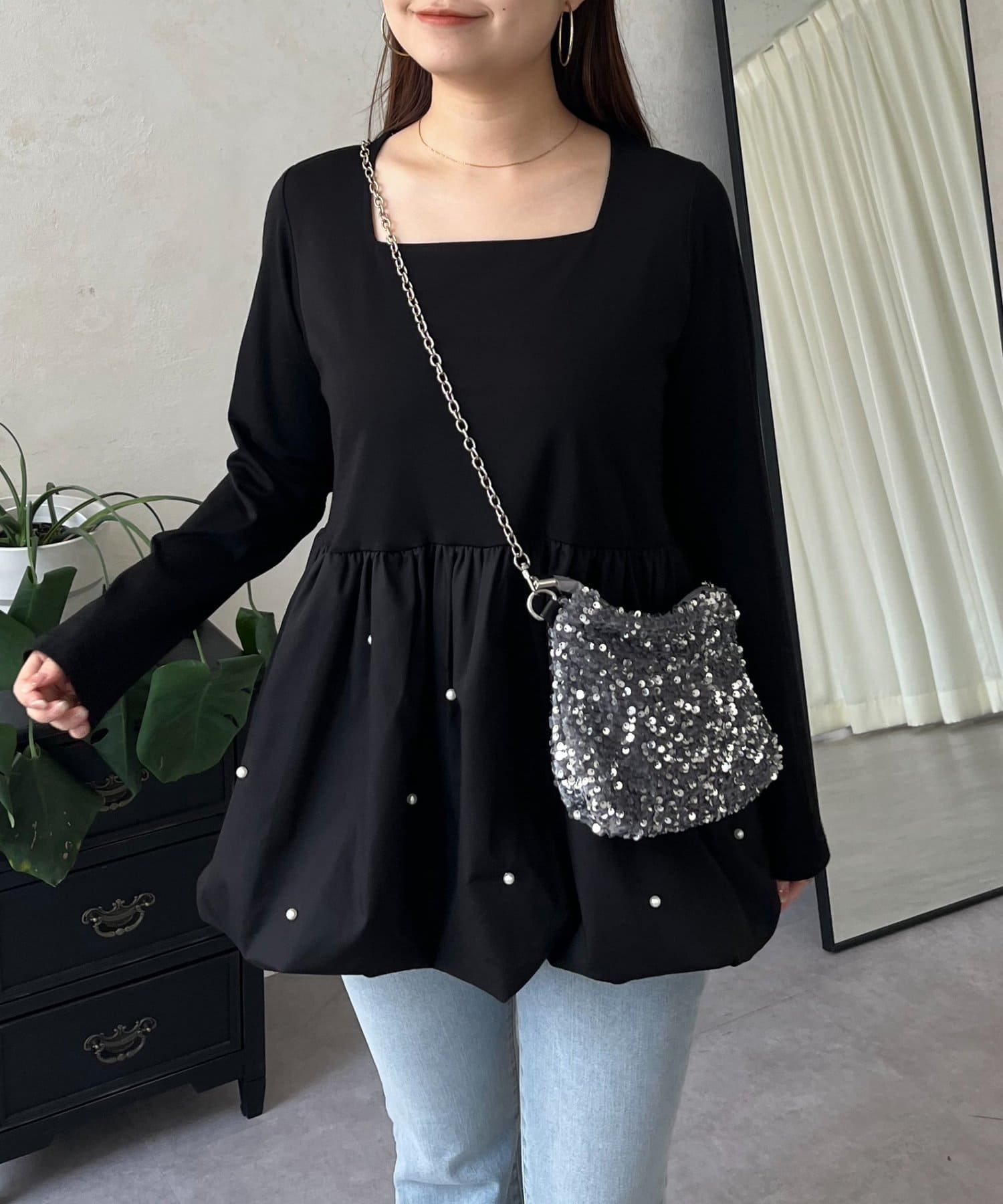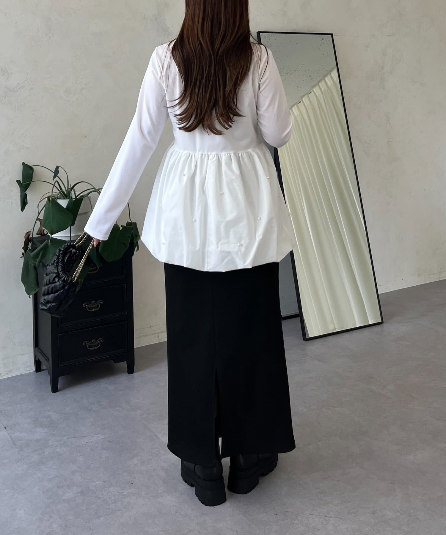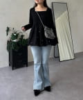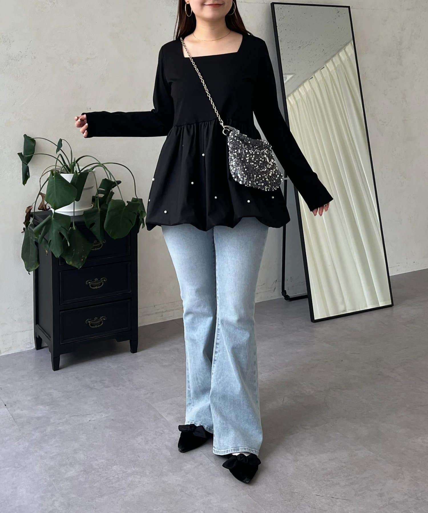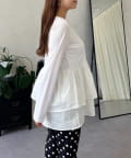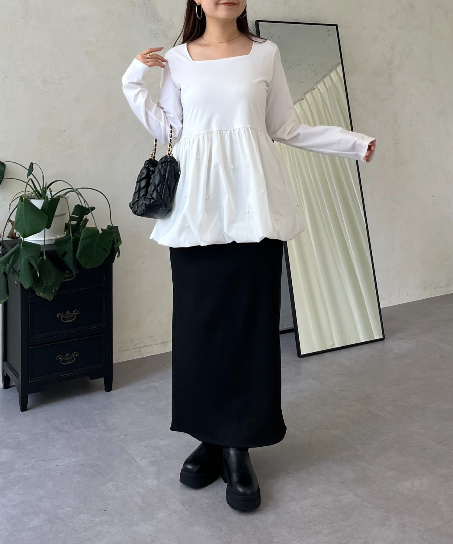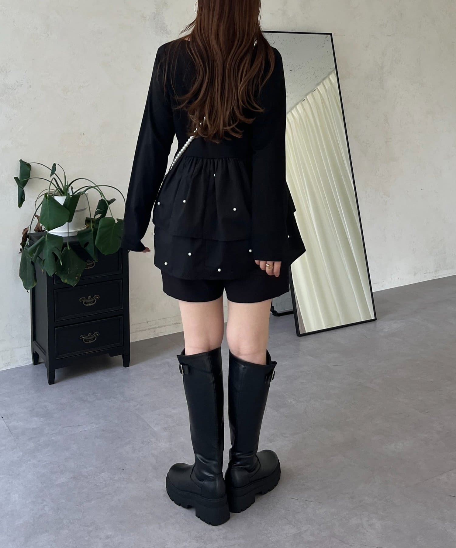 スクエアネックパールペプラムレイヤードロンT