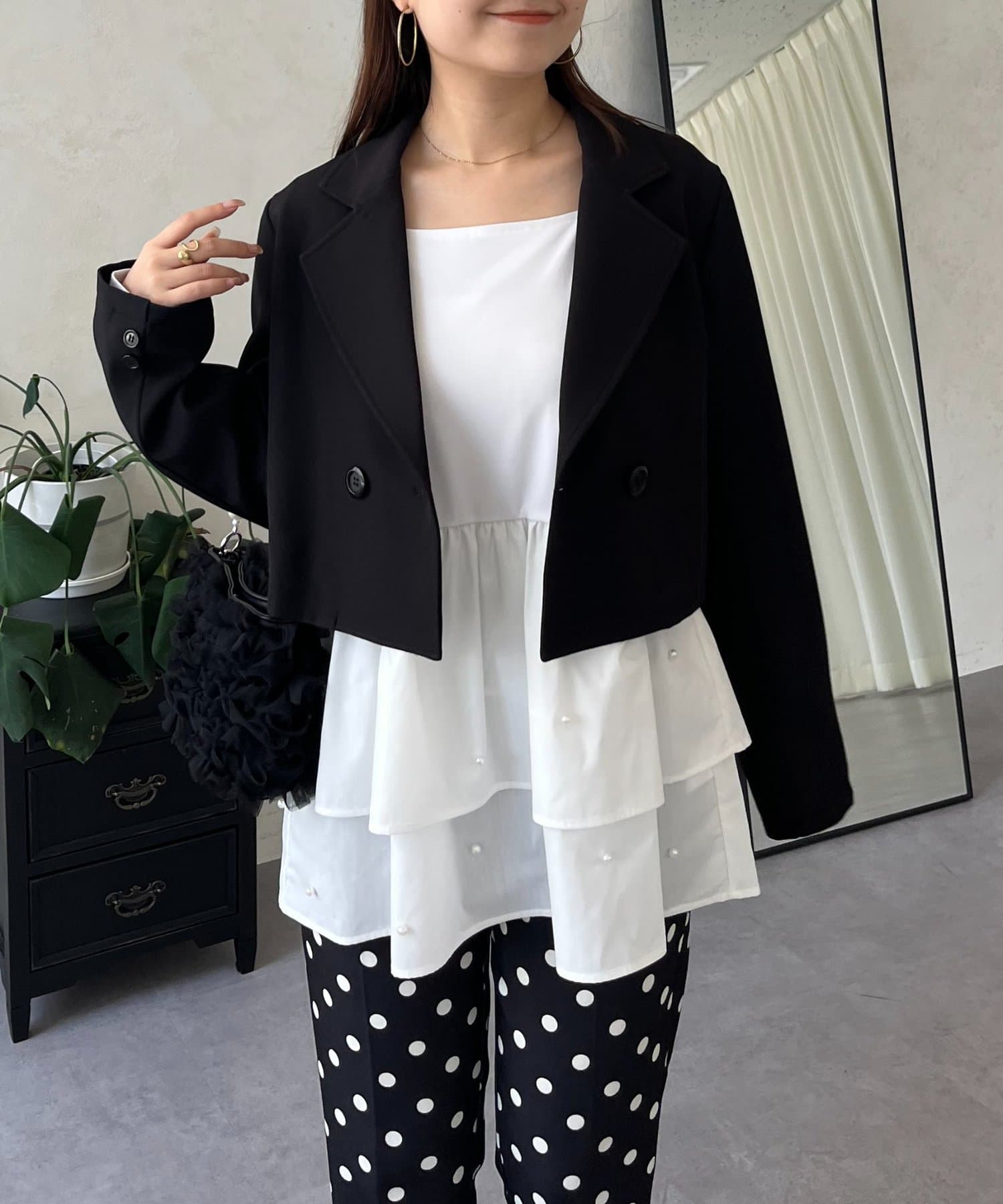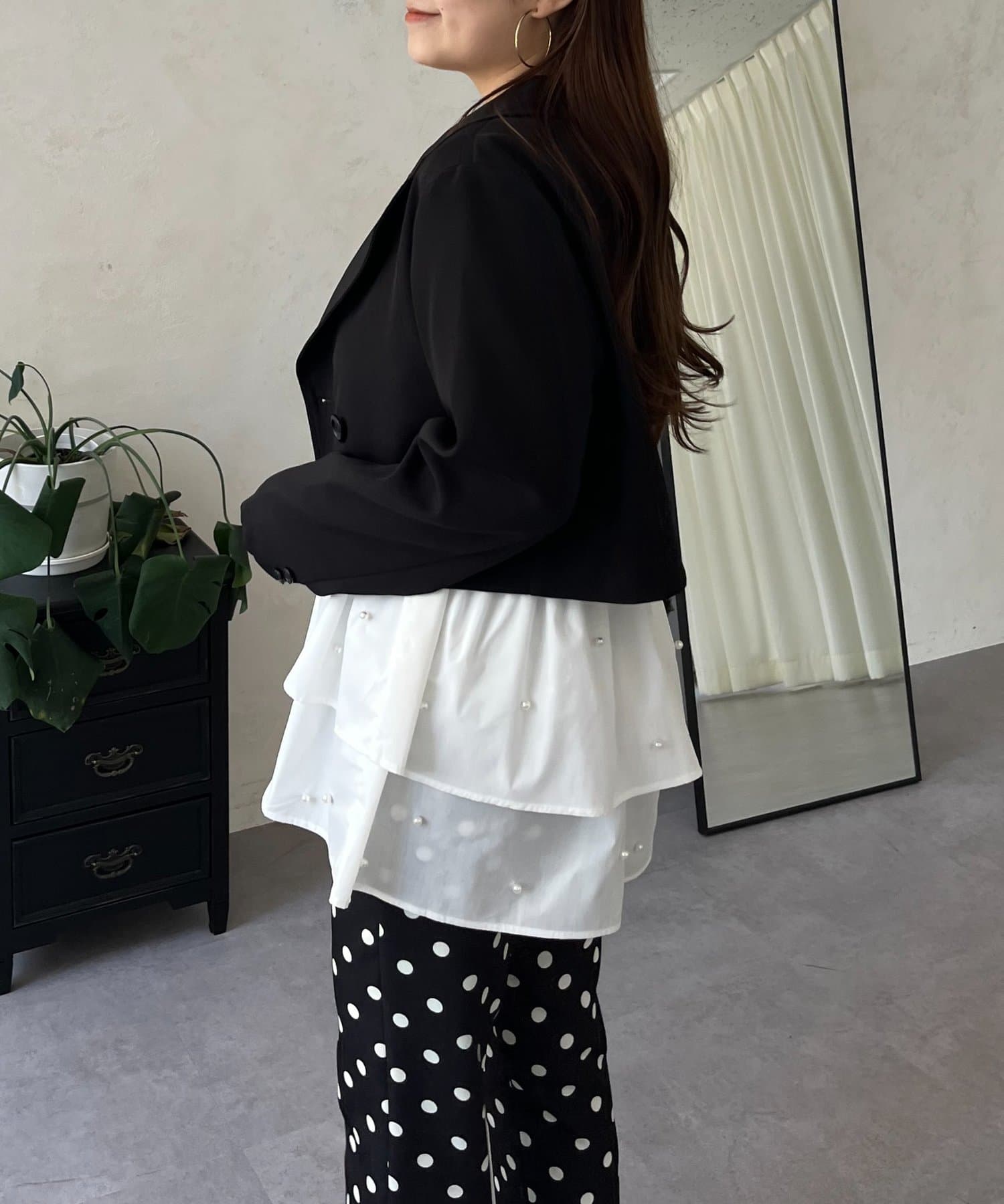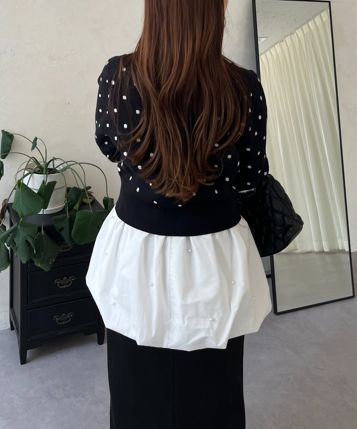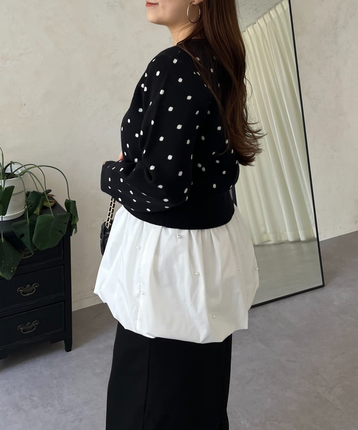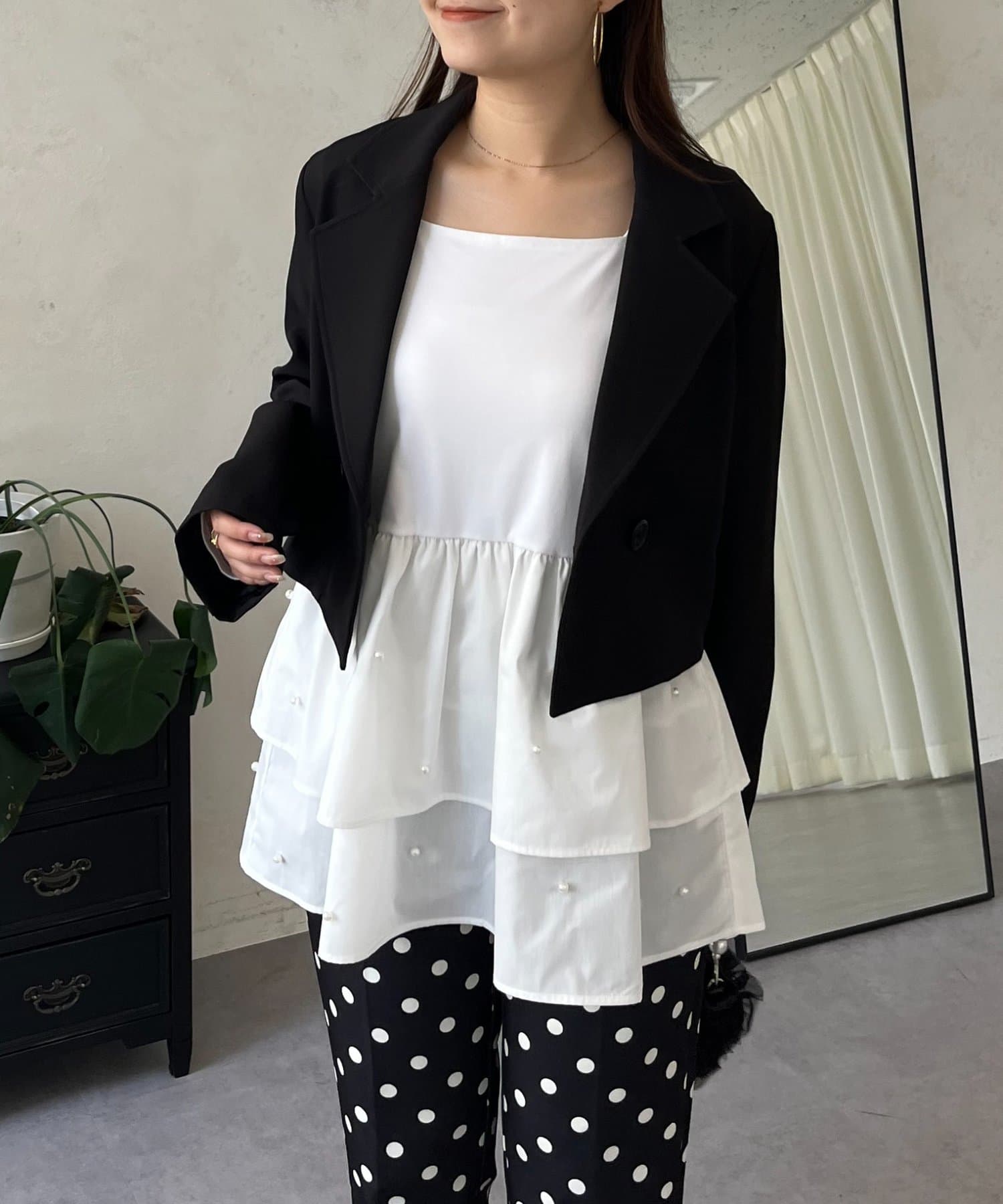 スクエアネックパールペプラムレイヤードロンT