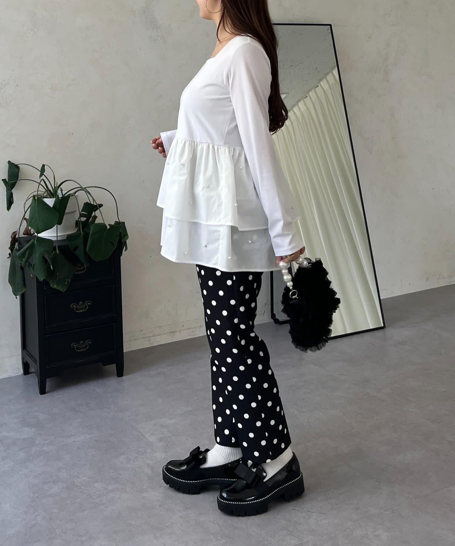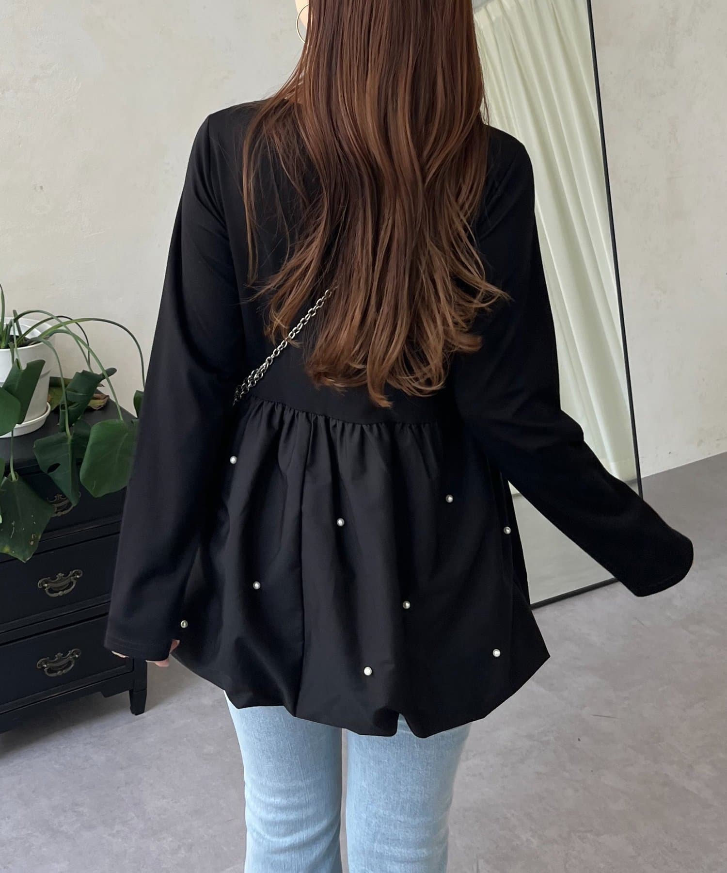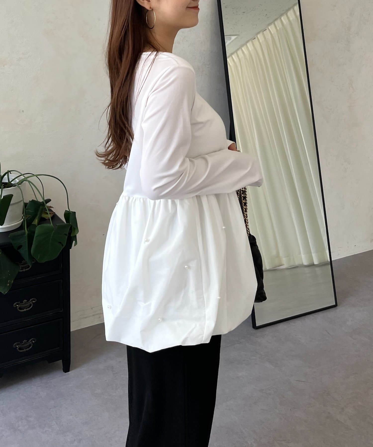 ロンT/パール/シンプル/体型カバー/大人カジュアル