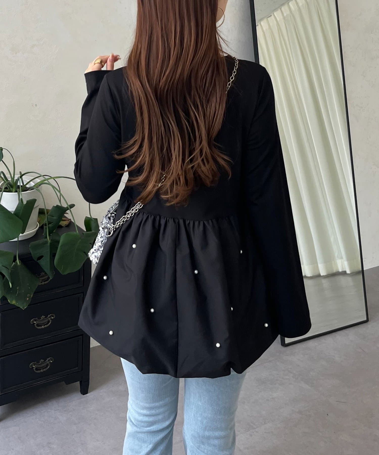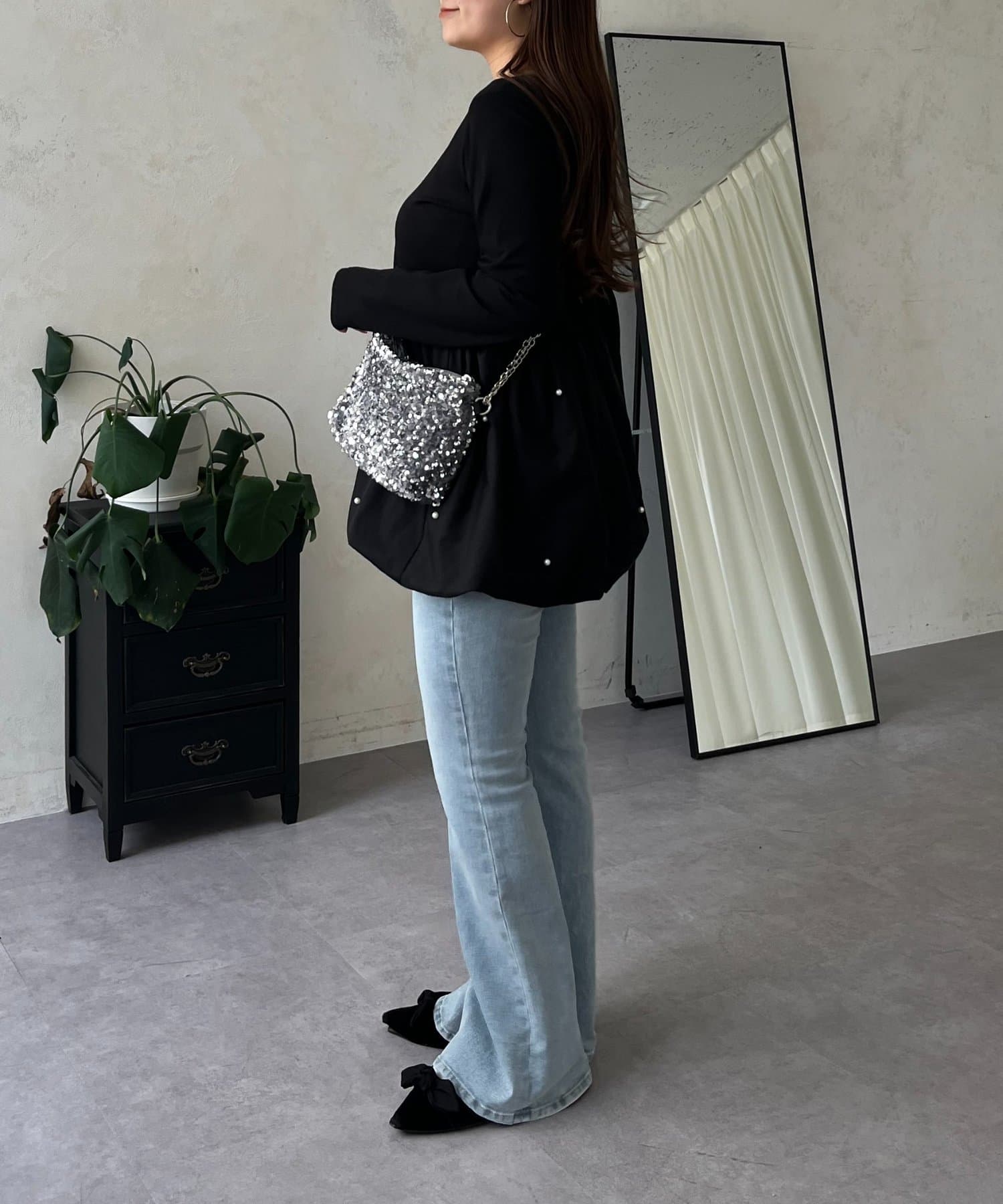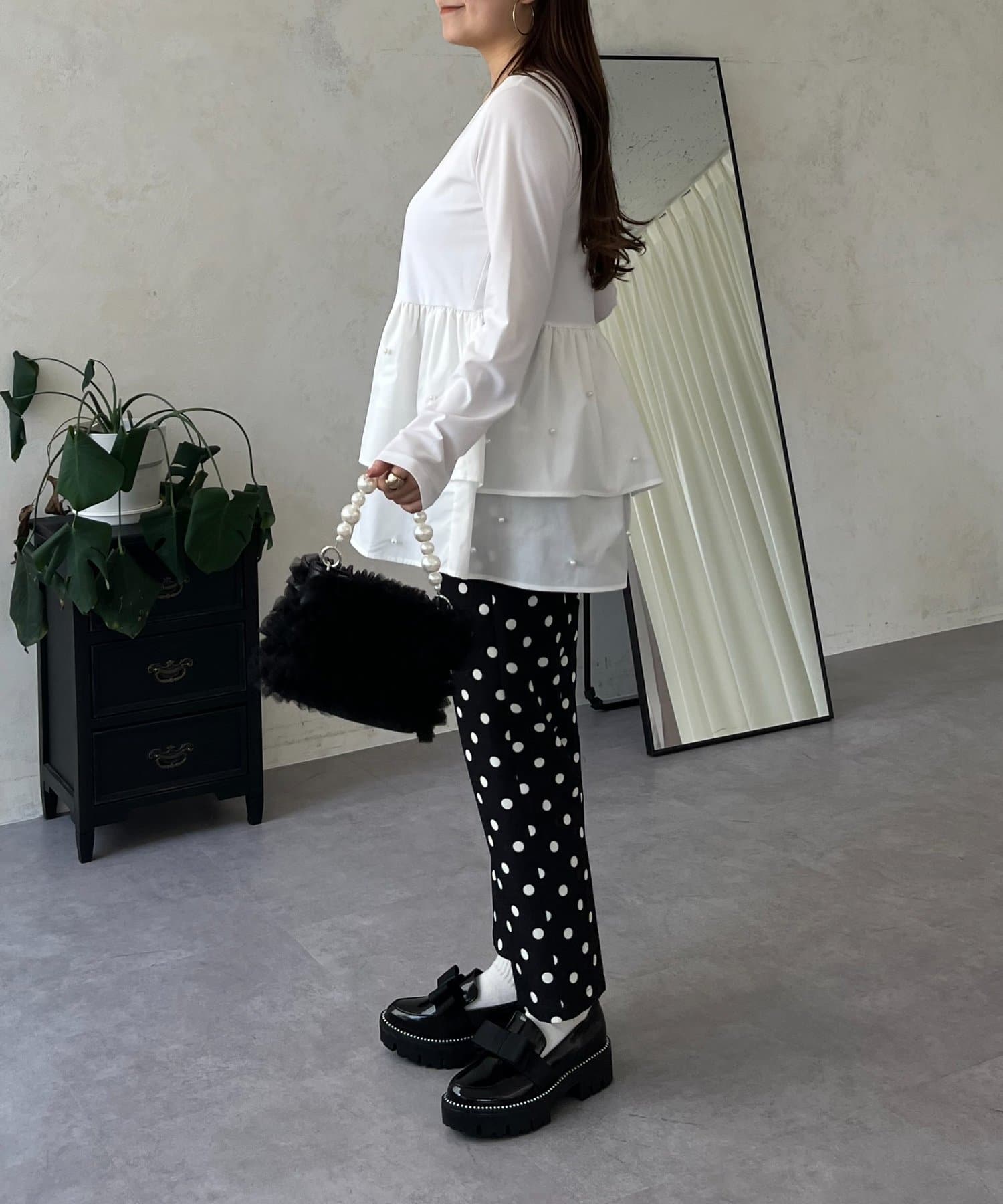ロンT/パール/シンプル/体型カバー/大人カジュアル