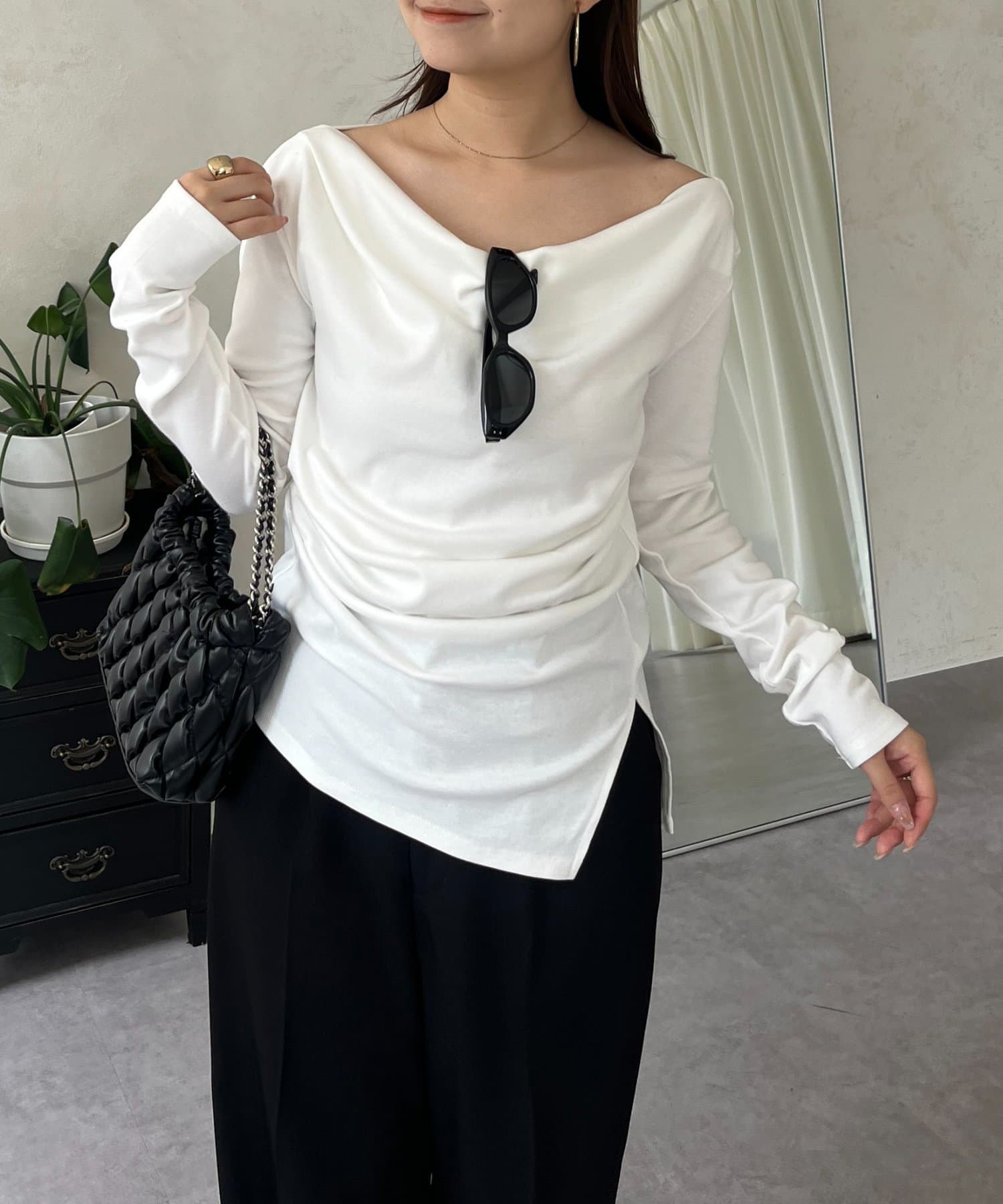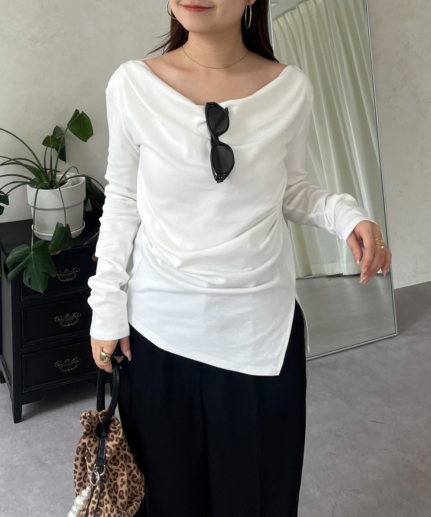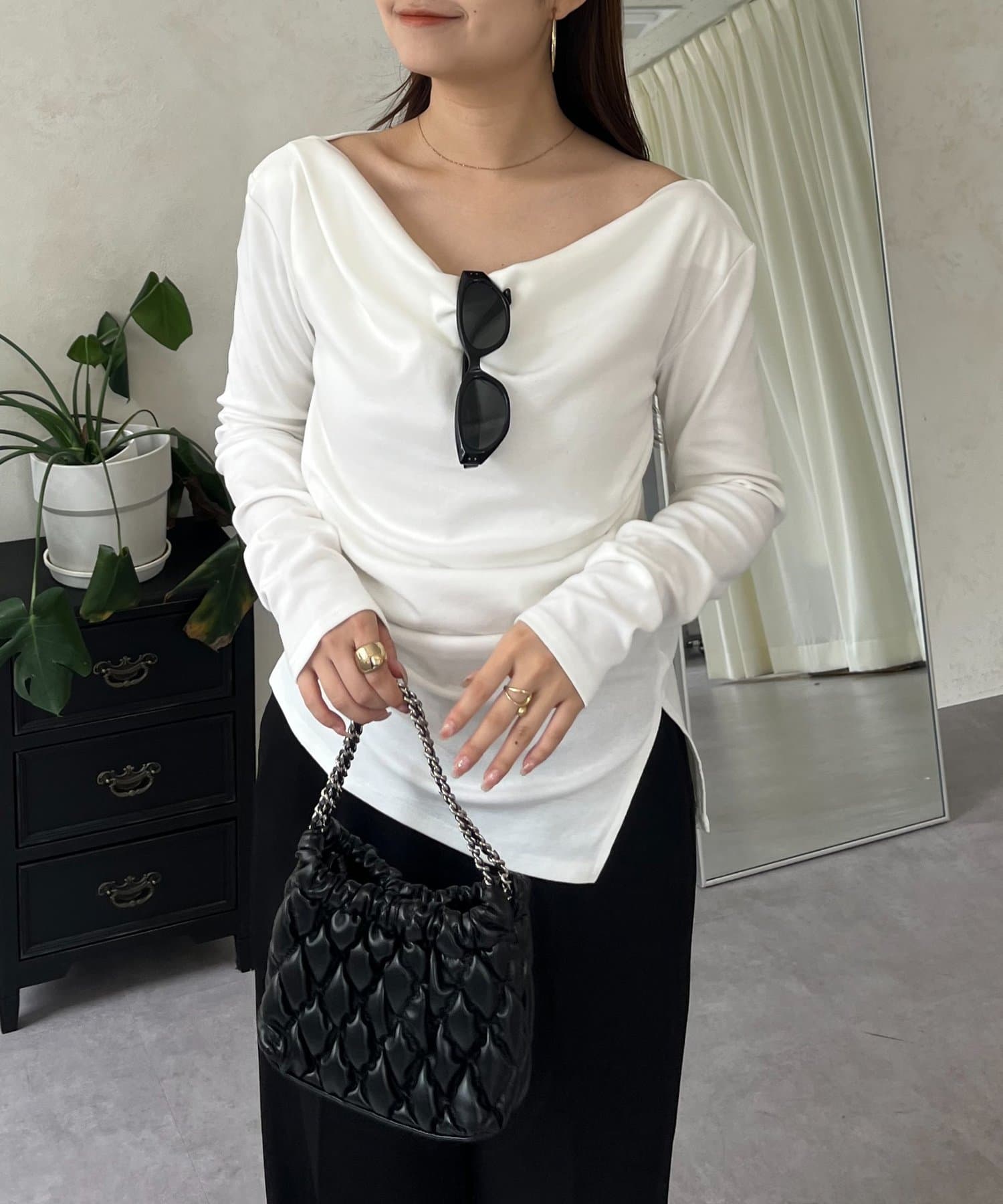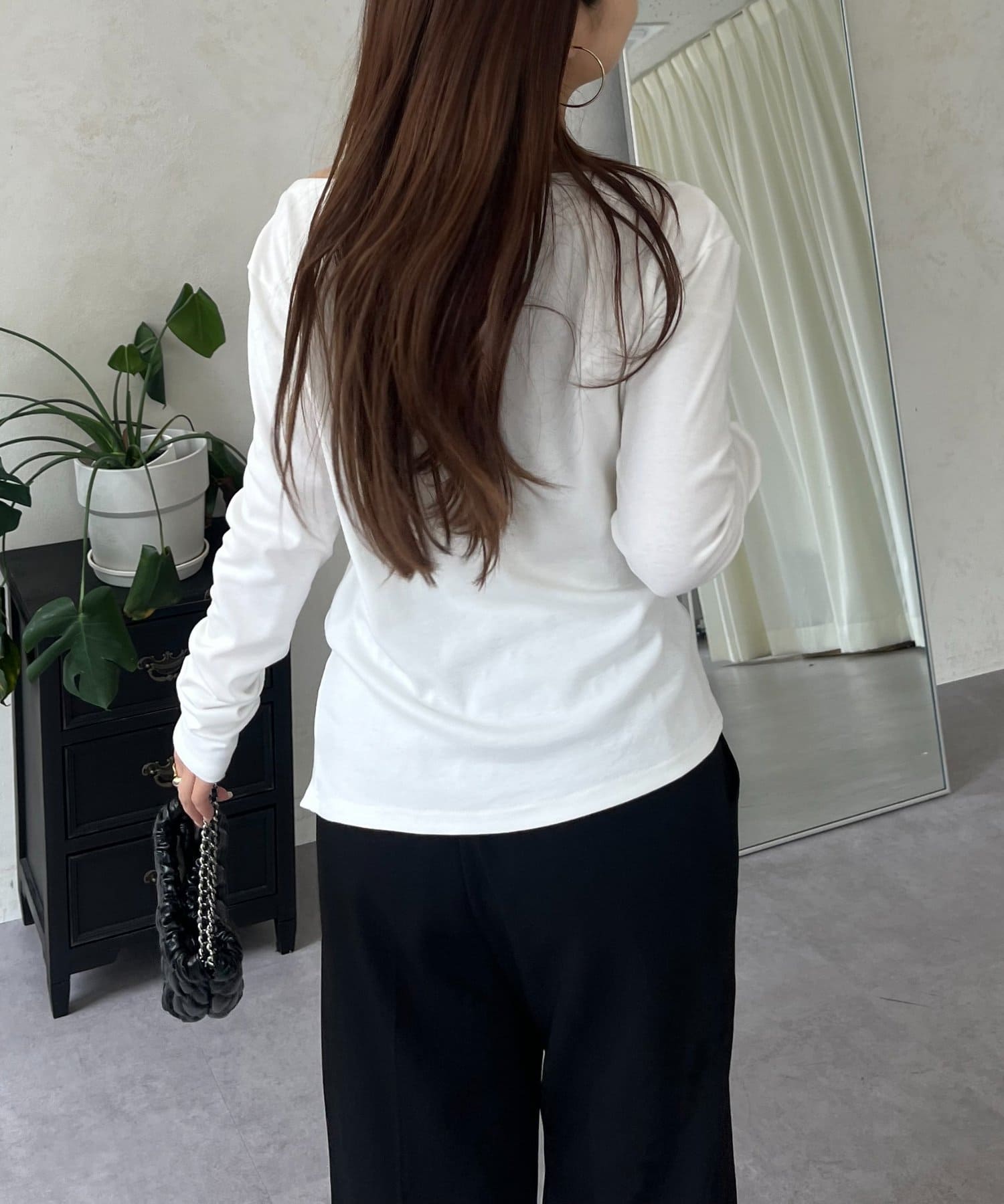 ●襟ぐりを落とせばオフショル風にも着こなせます