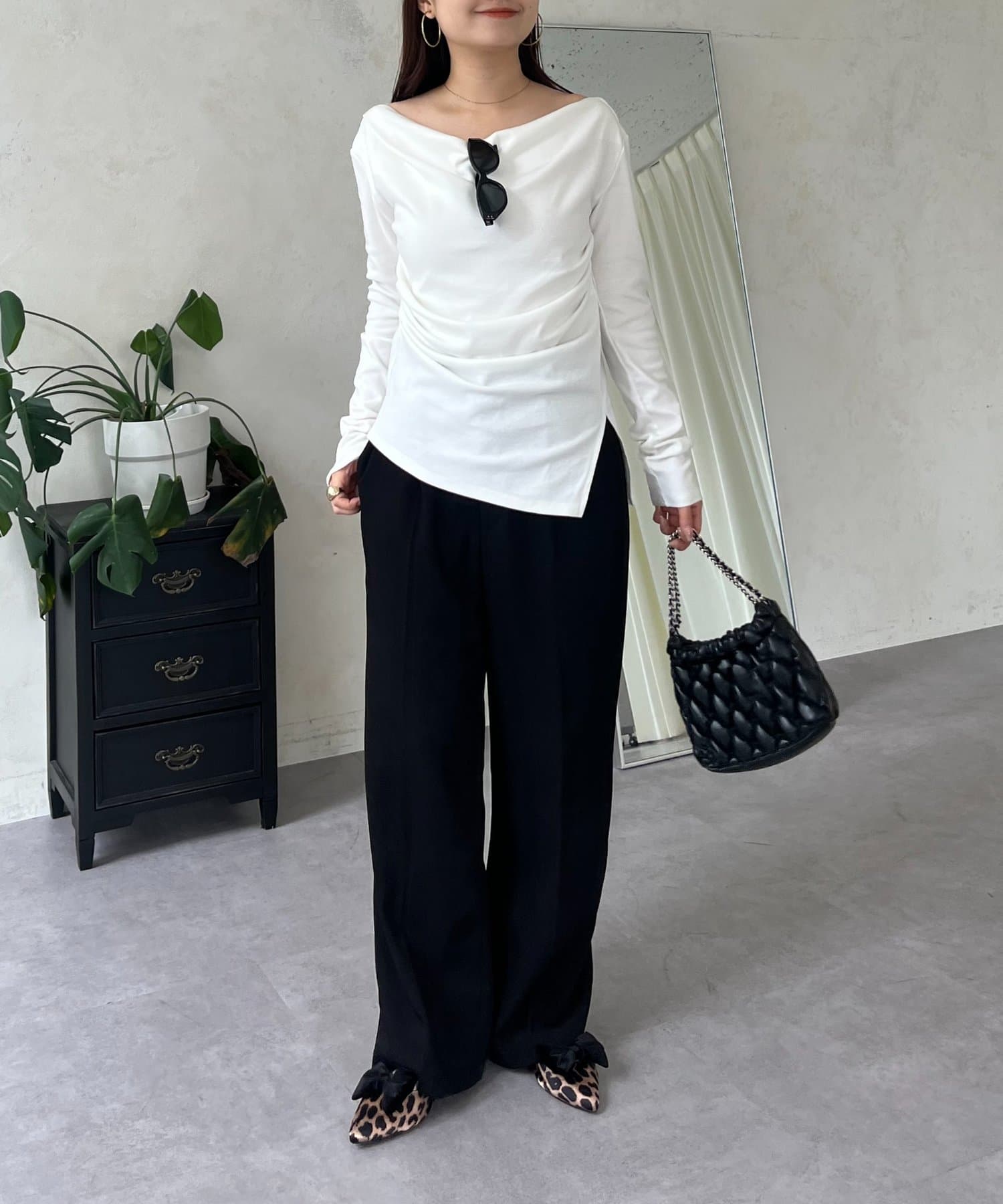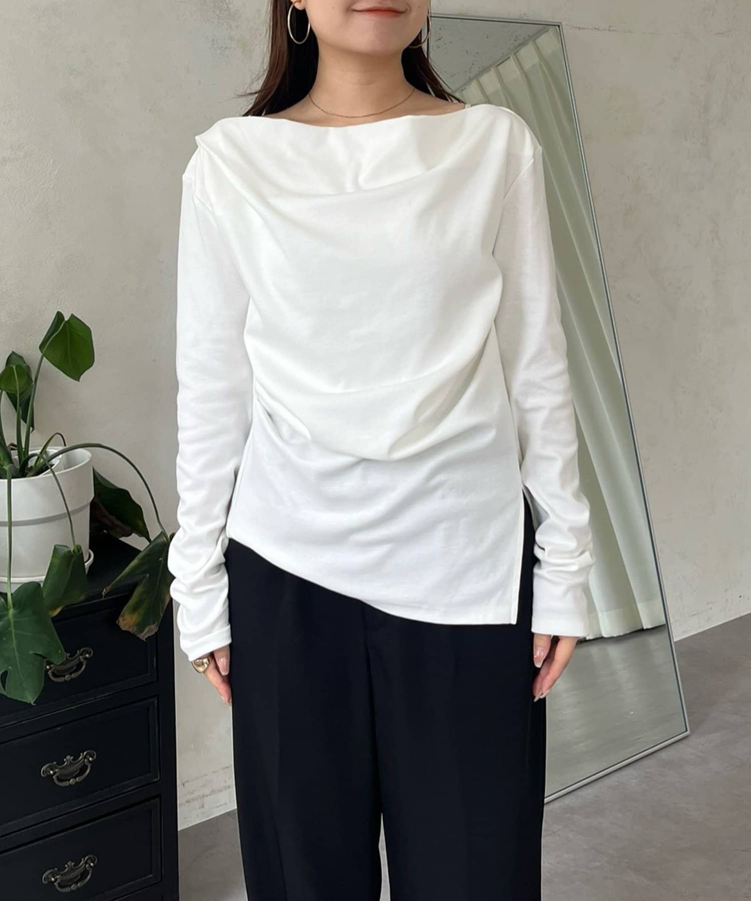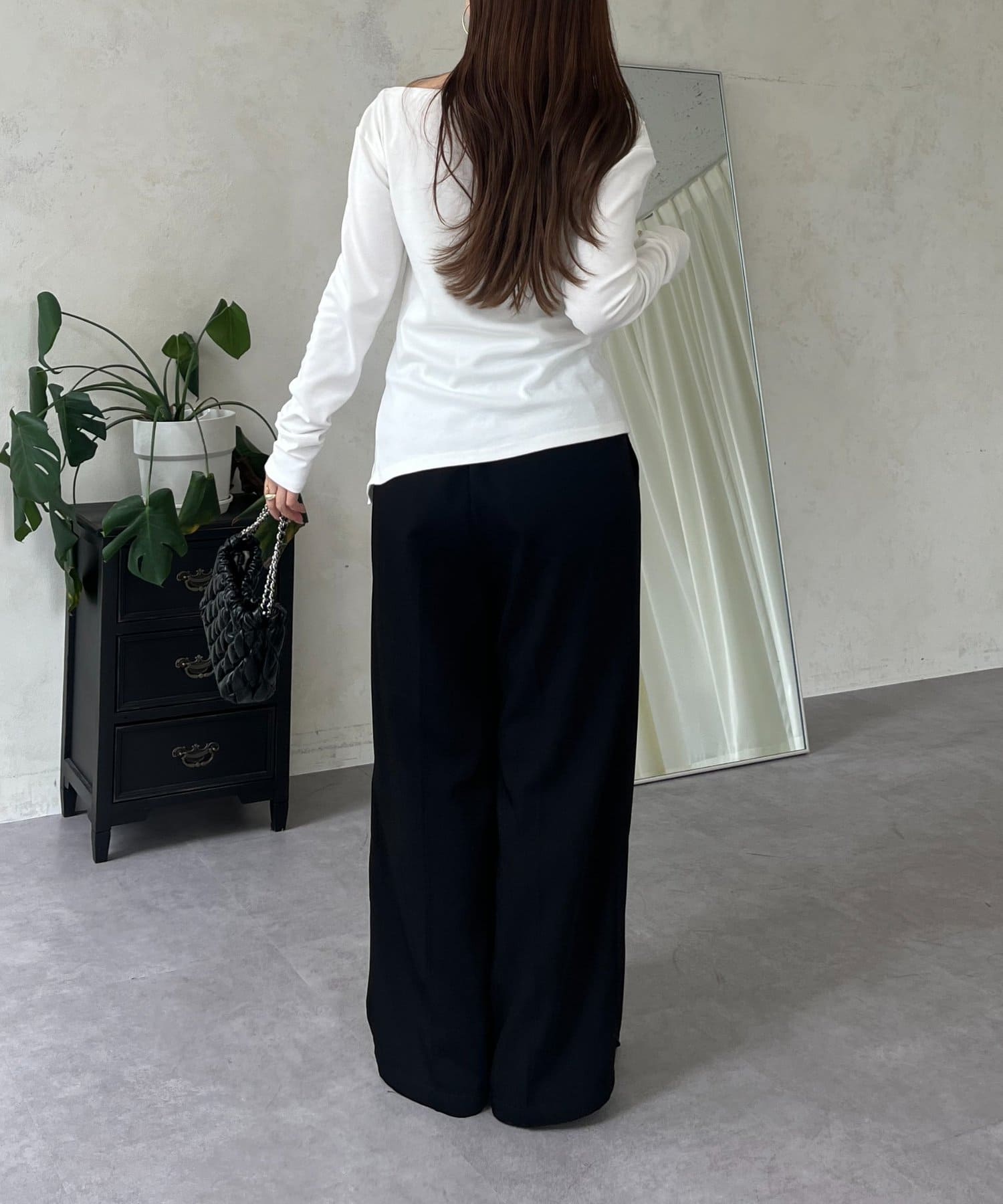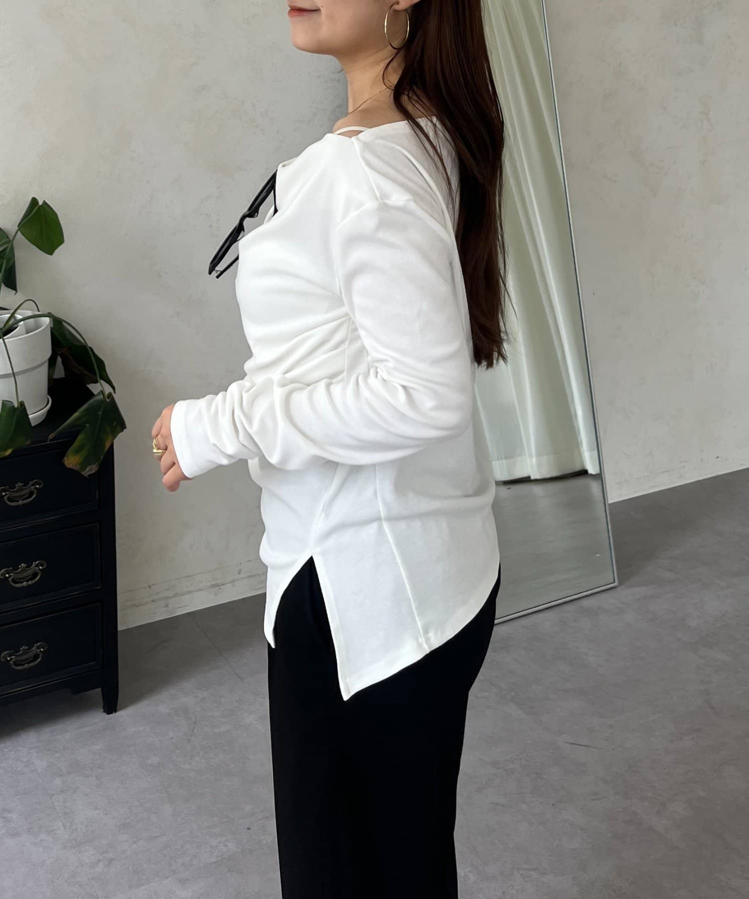 ●襟ぐりを落とせばオフショル風にも着こなせます