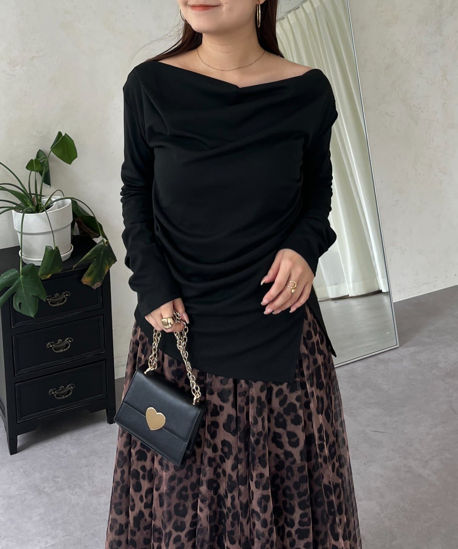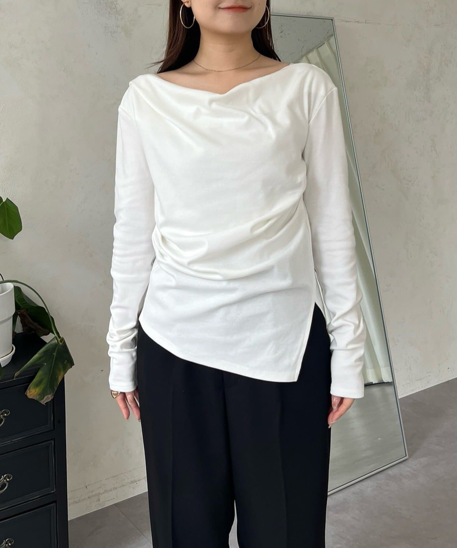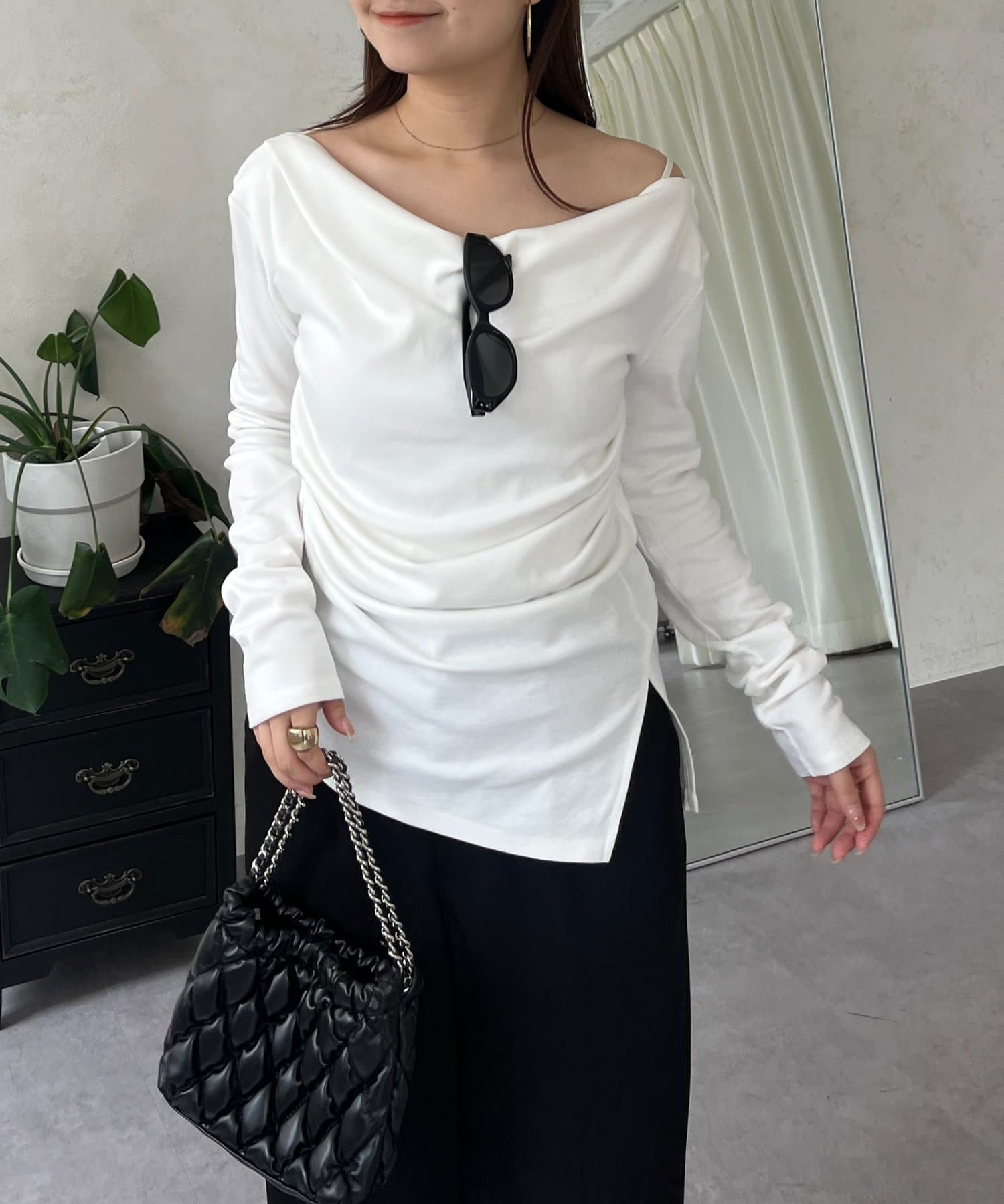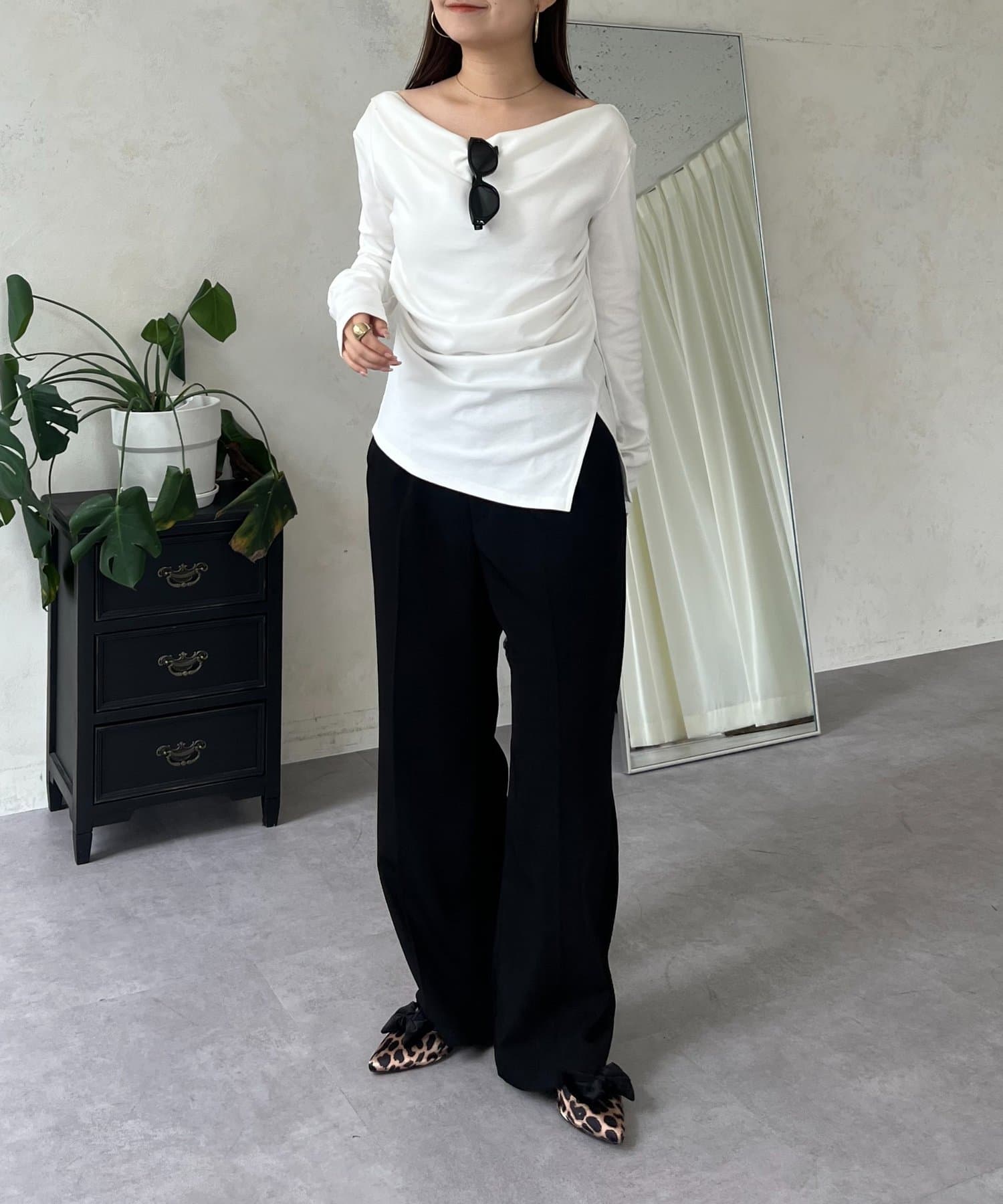 ●襟ぐりを落とせばオフショル風にも着こなせます