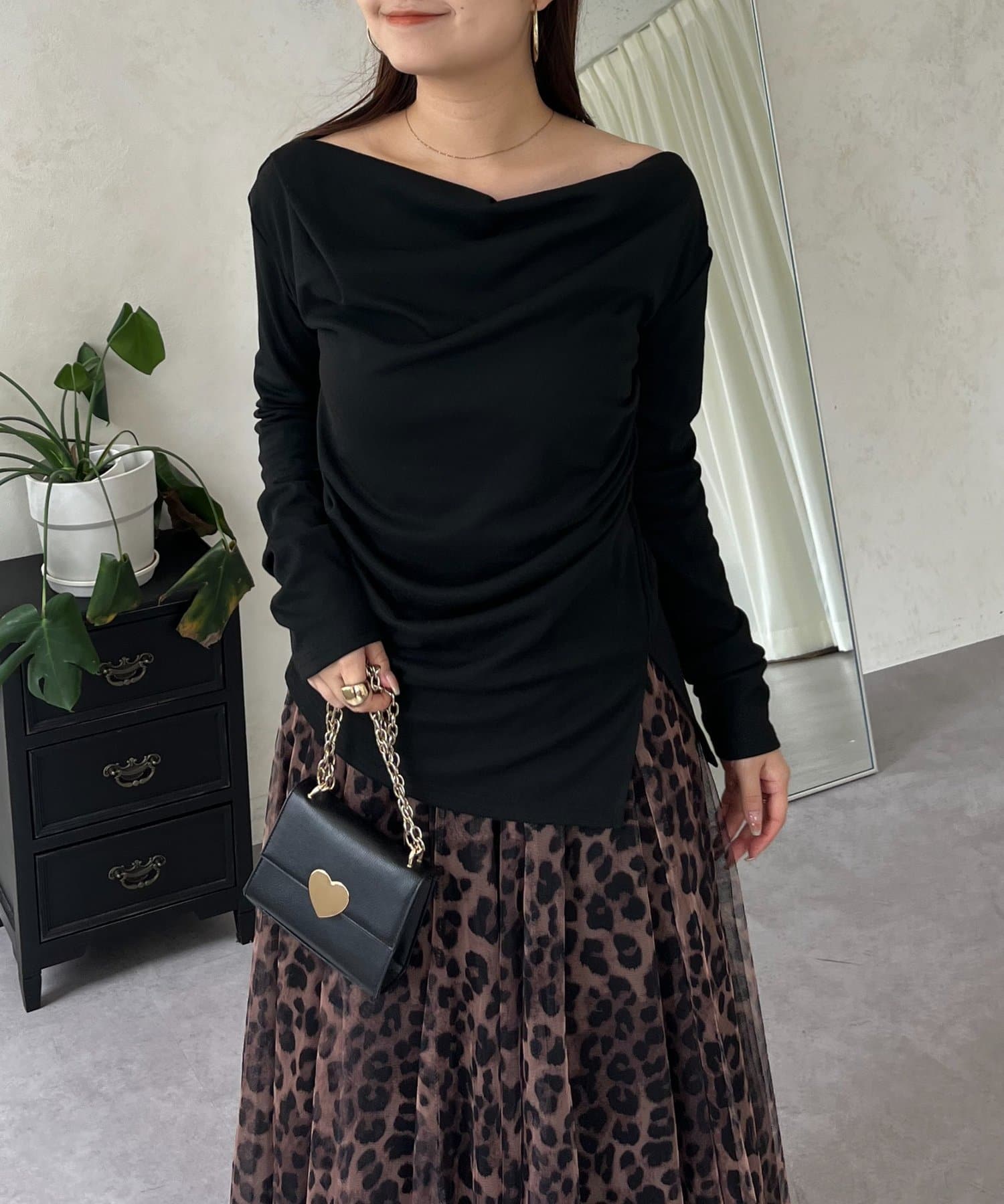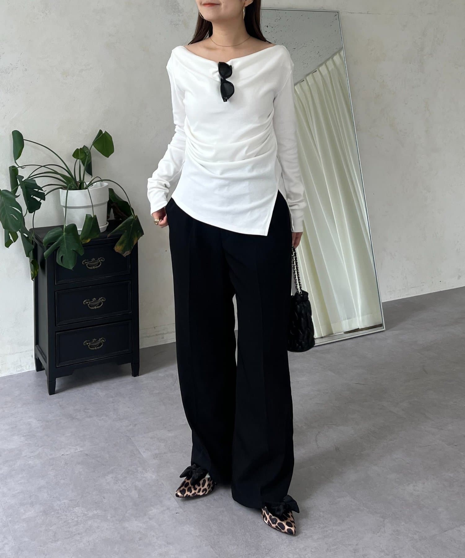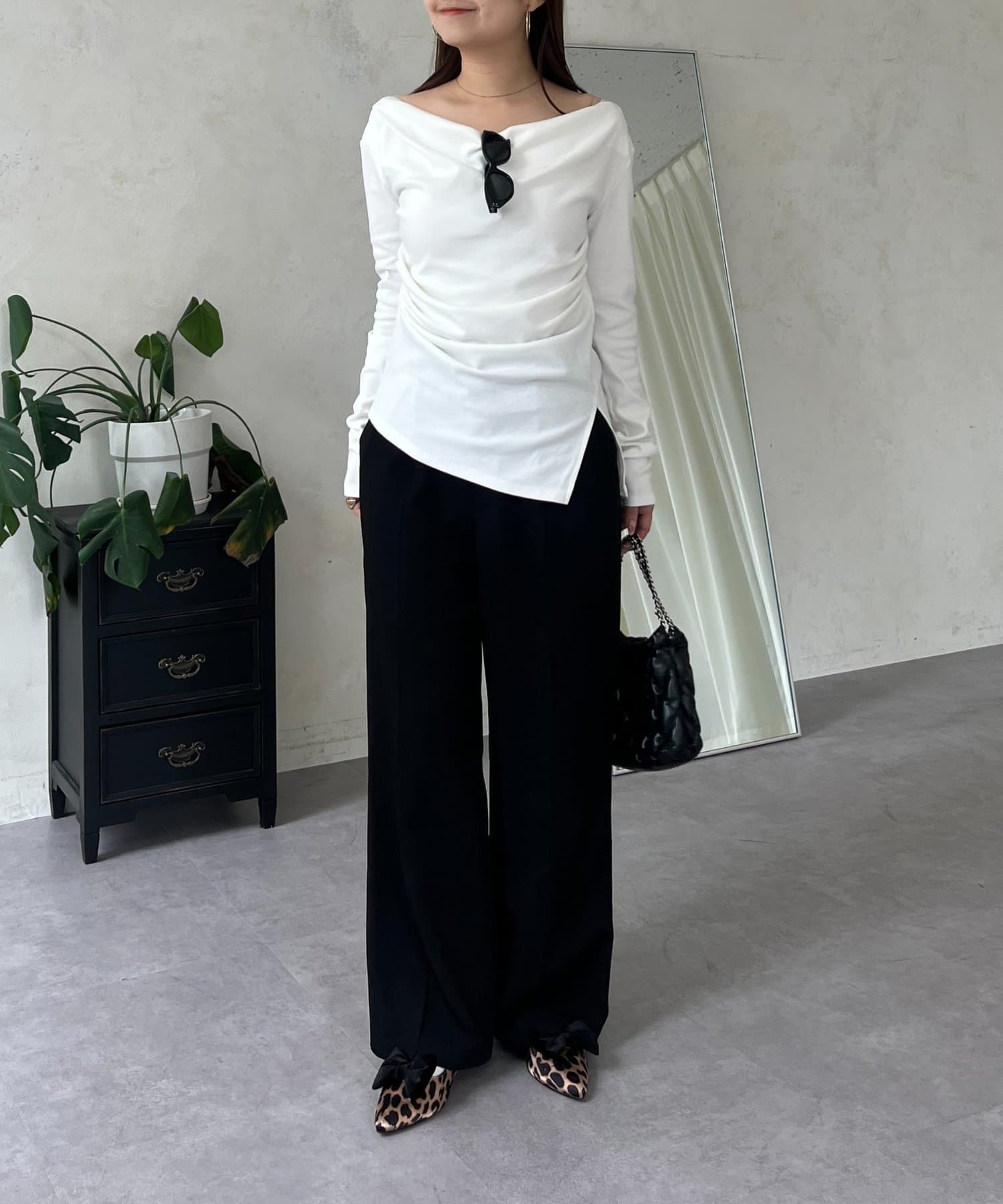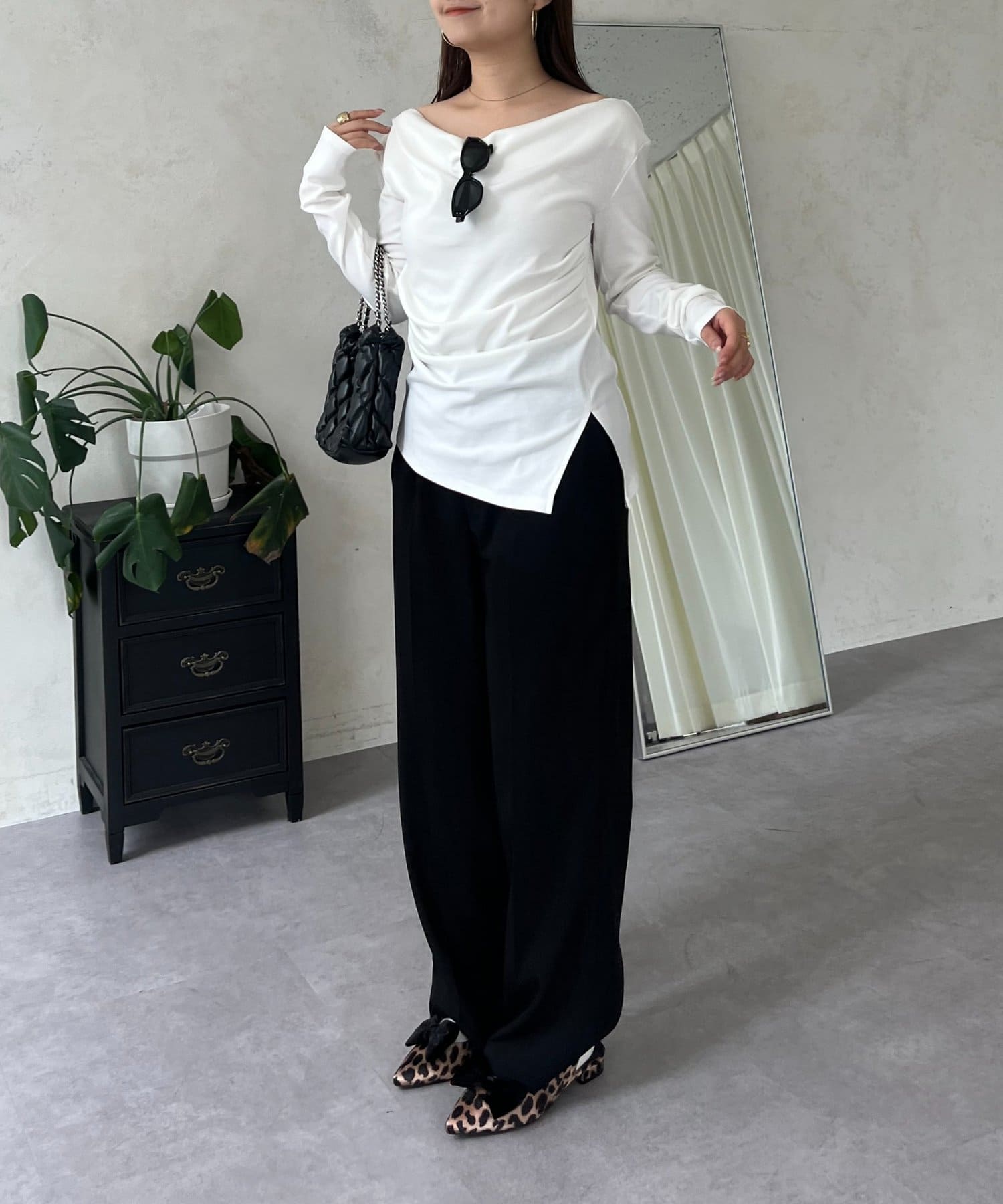 ●襟ぐりを落とせばオフショル風にも着こなせます