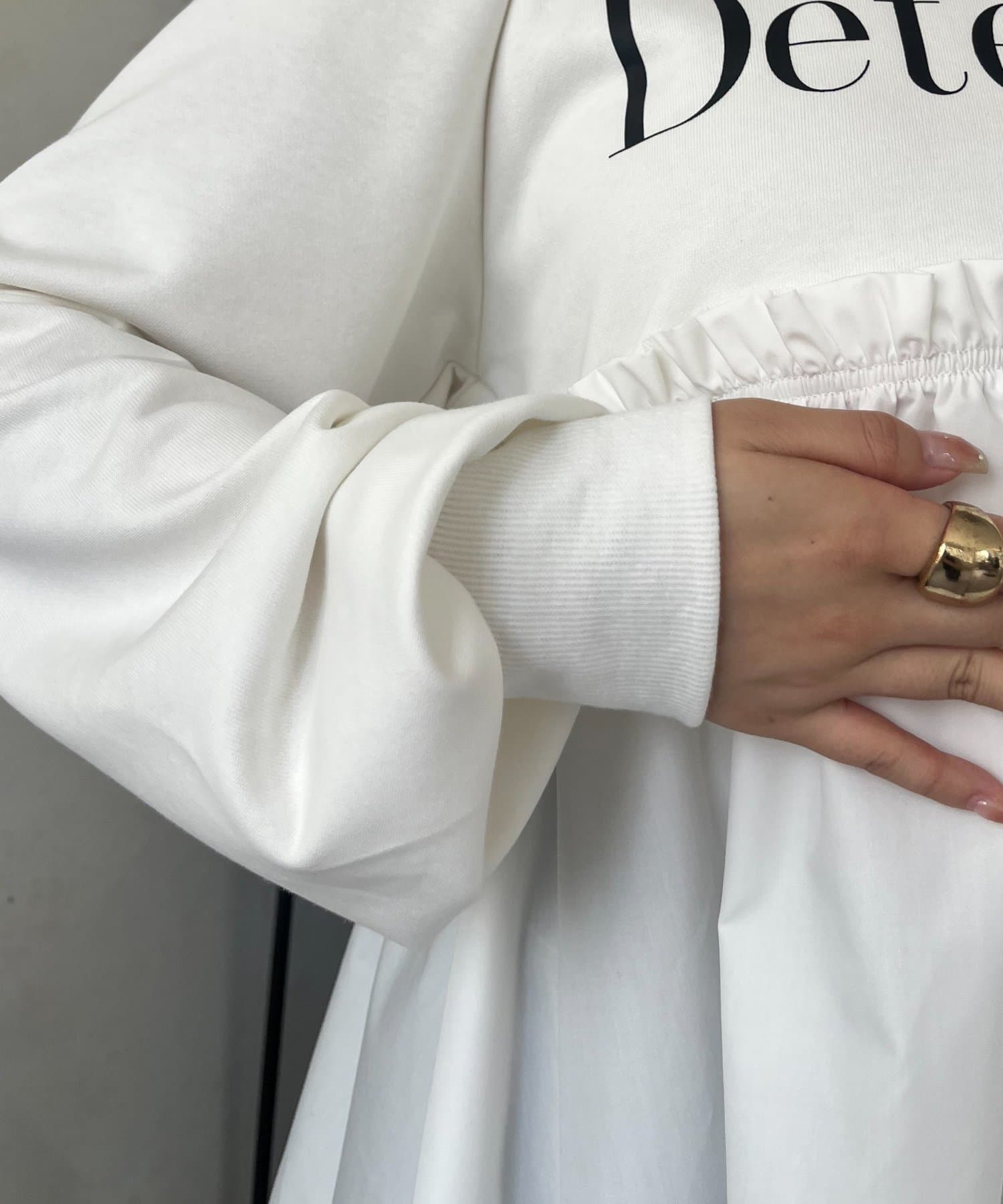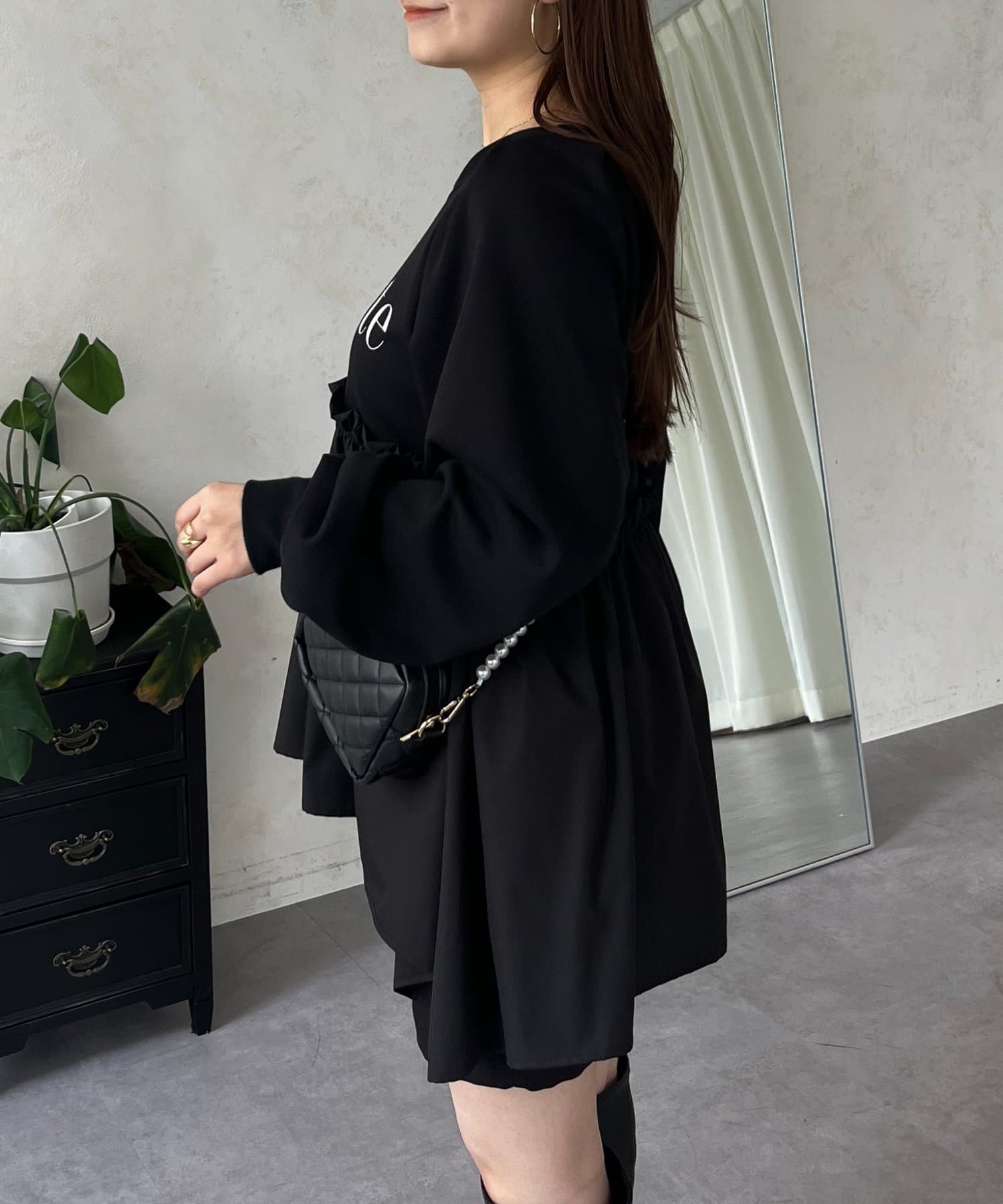 着るだけで体型カバーが叶うフリルスウェット