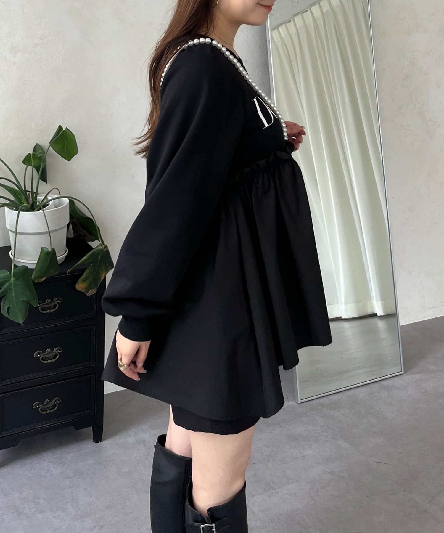 ●切替部分はフリルギャザーデザインで大人可愛く!