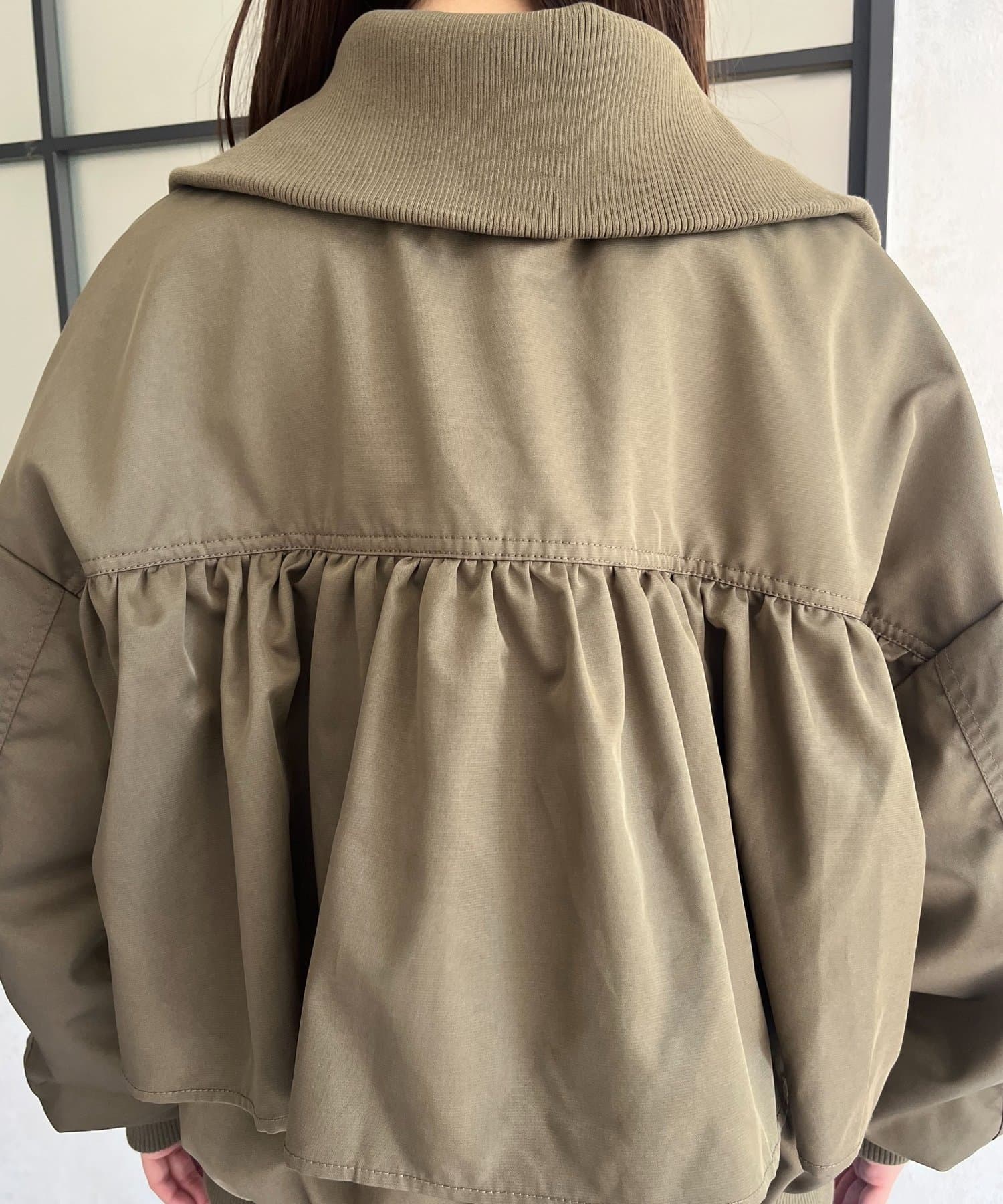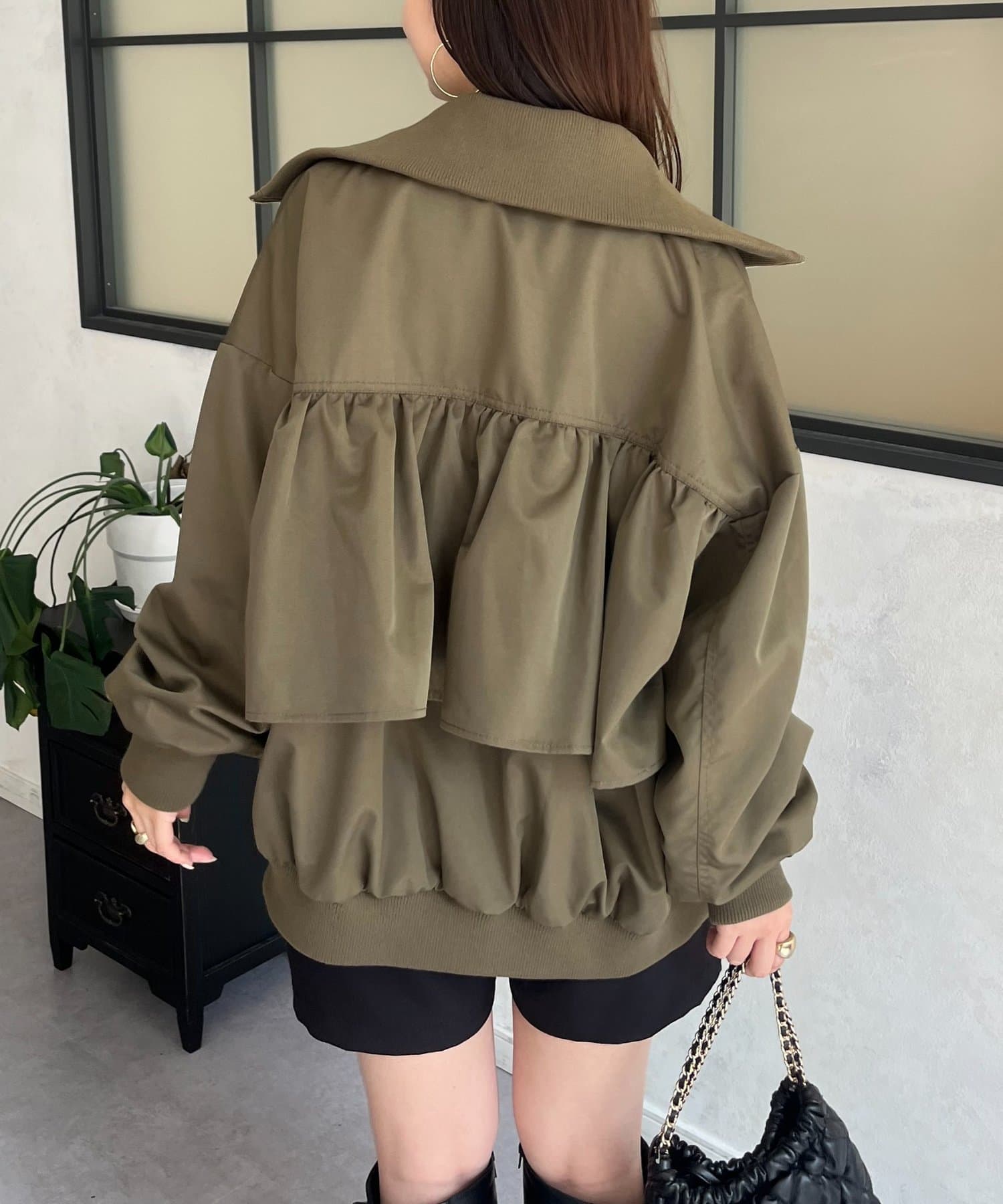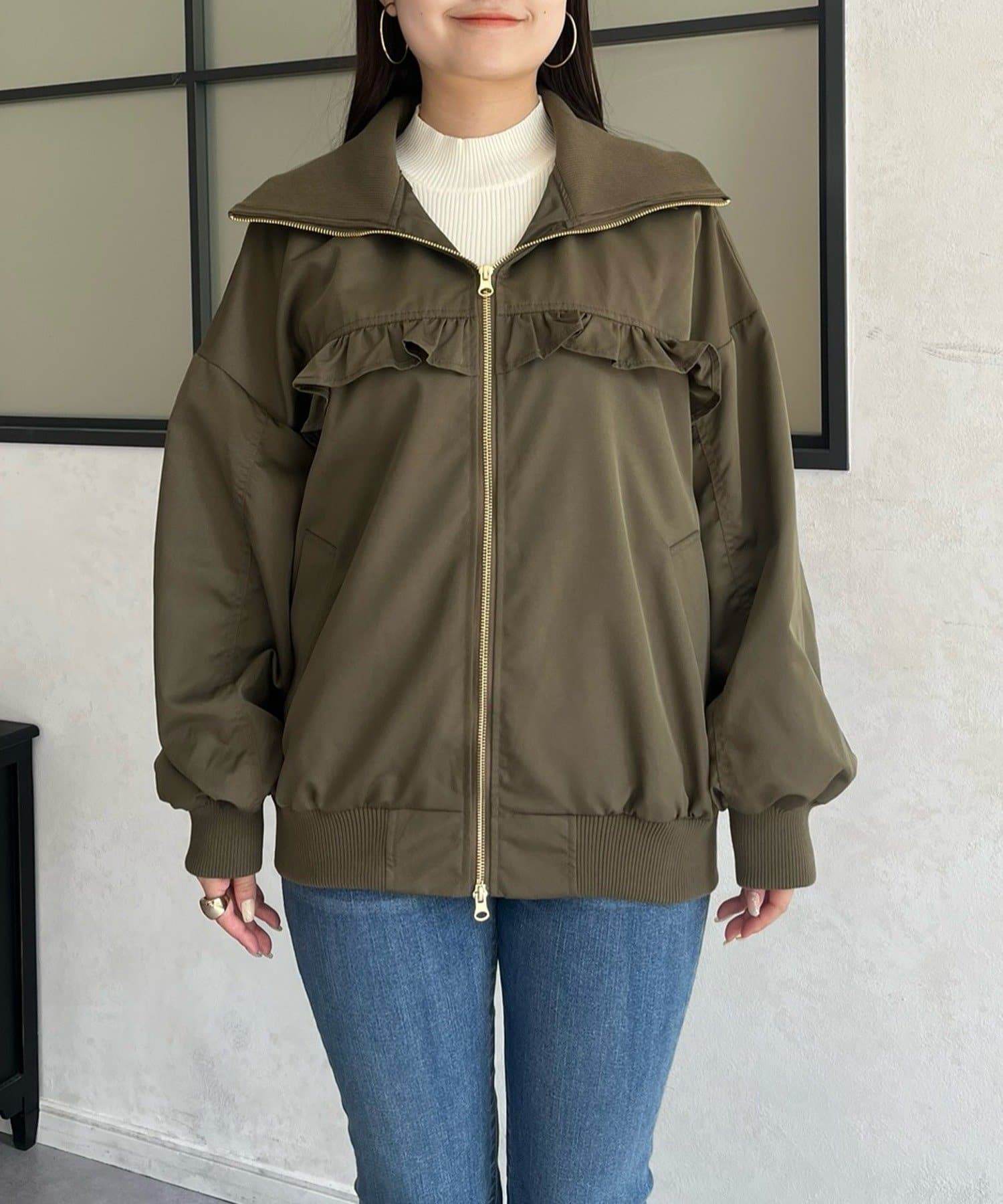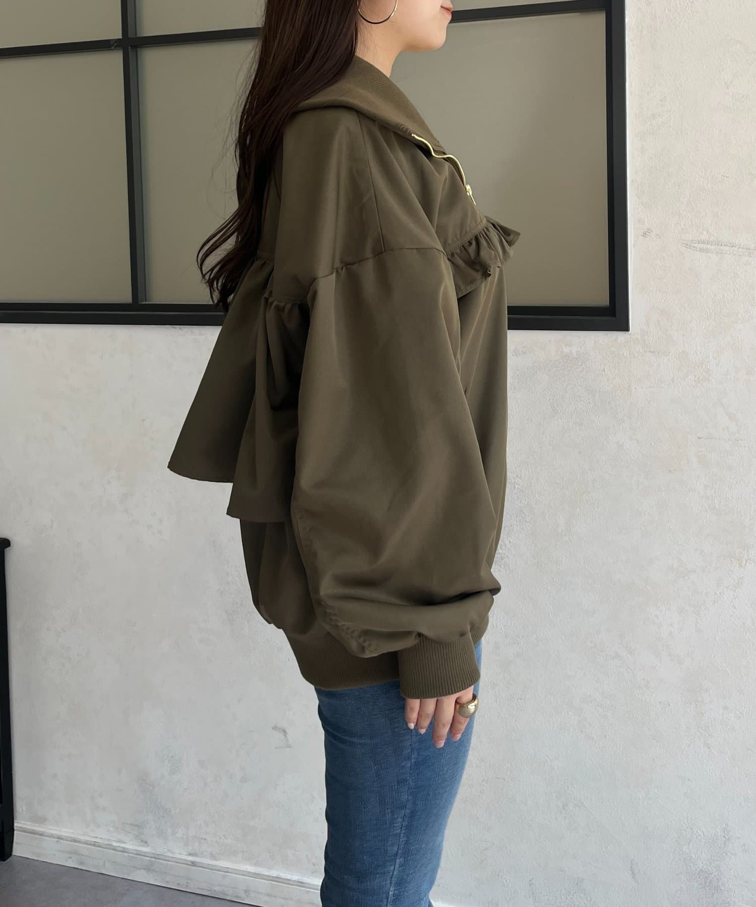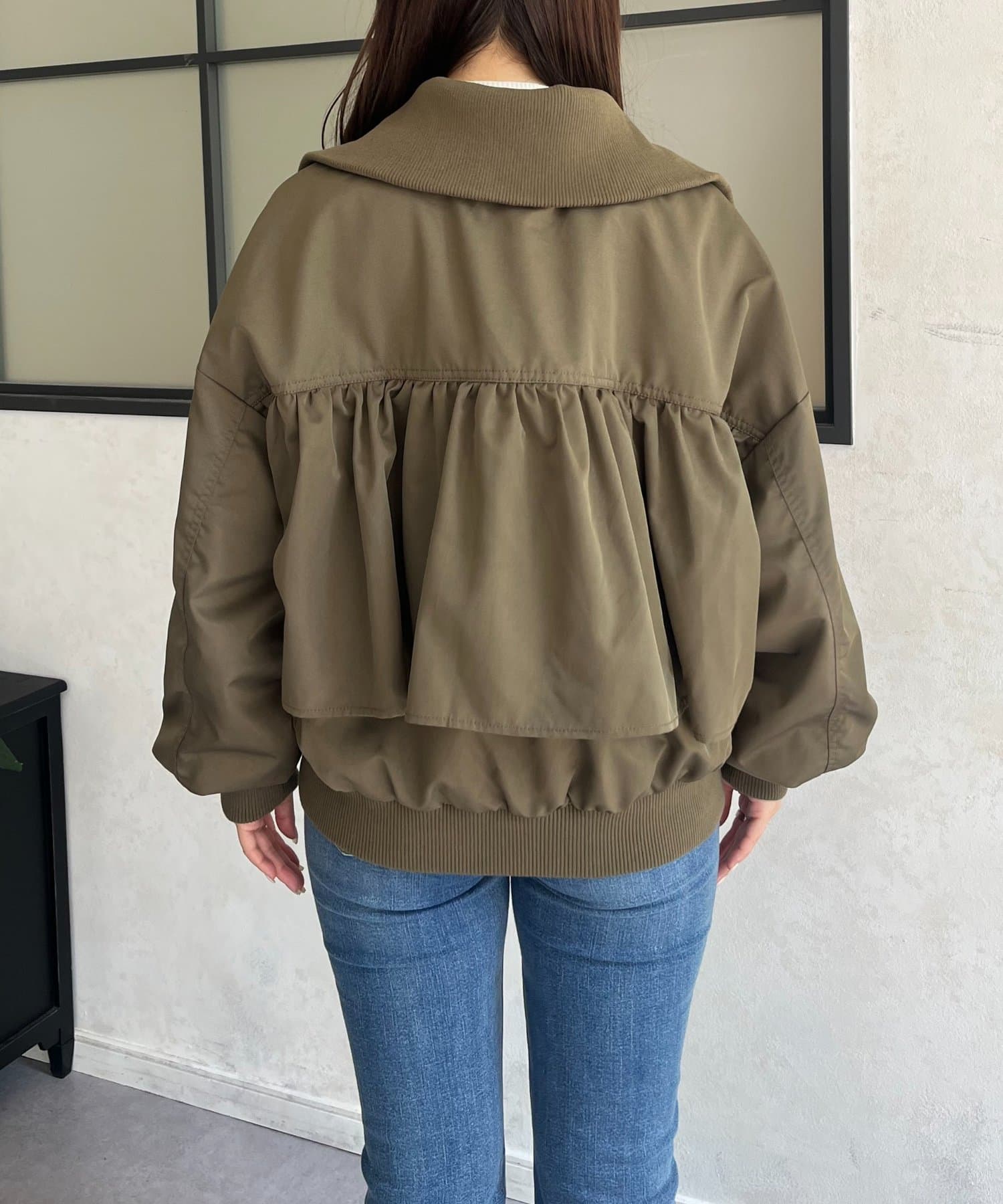 ●カジュアルなブルゾンにバックの大きいフリルが甘さをプラス
