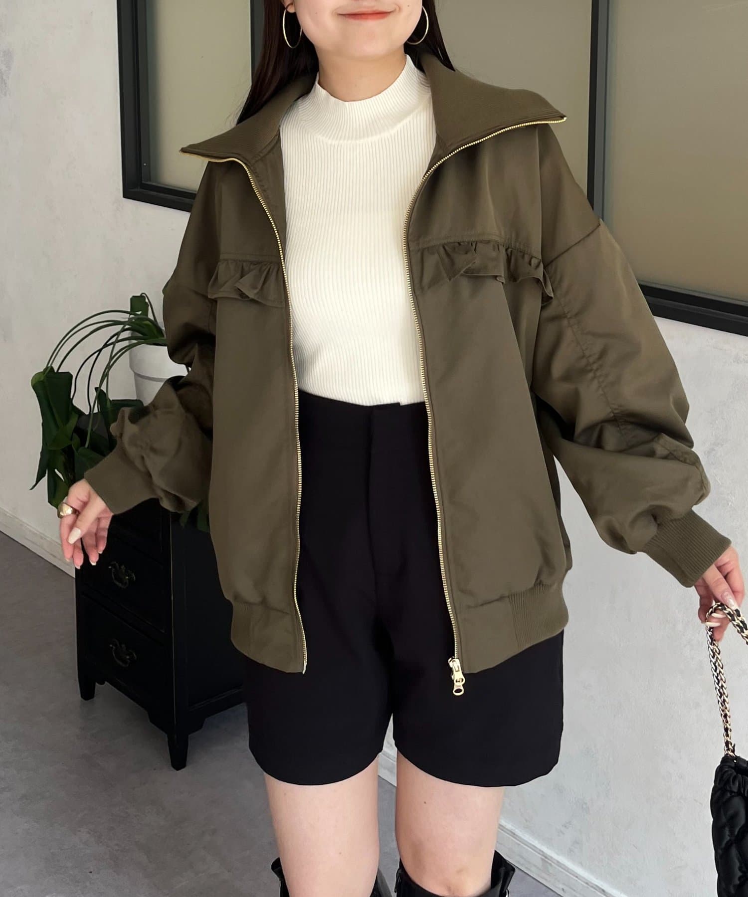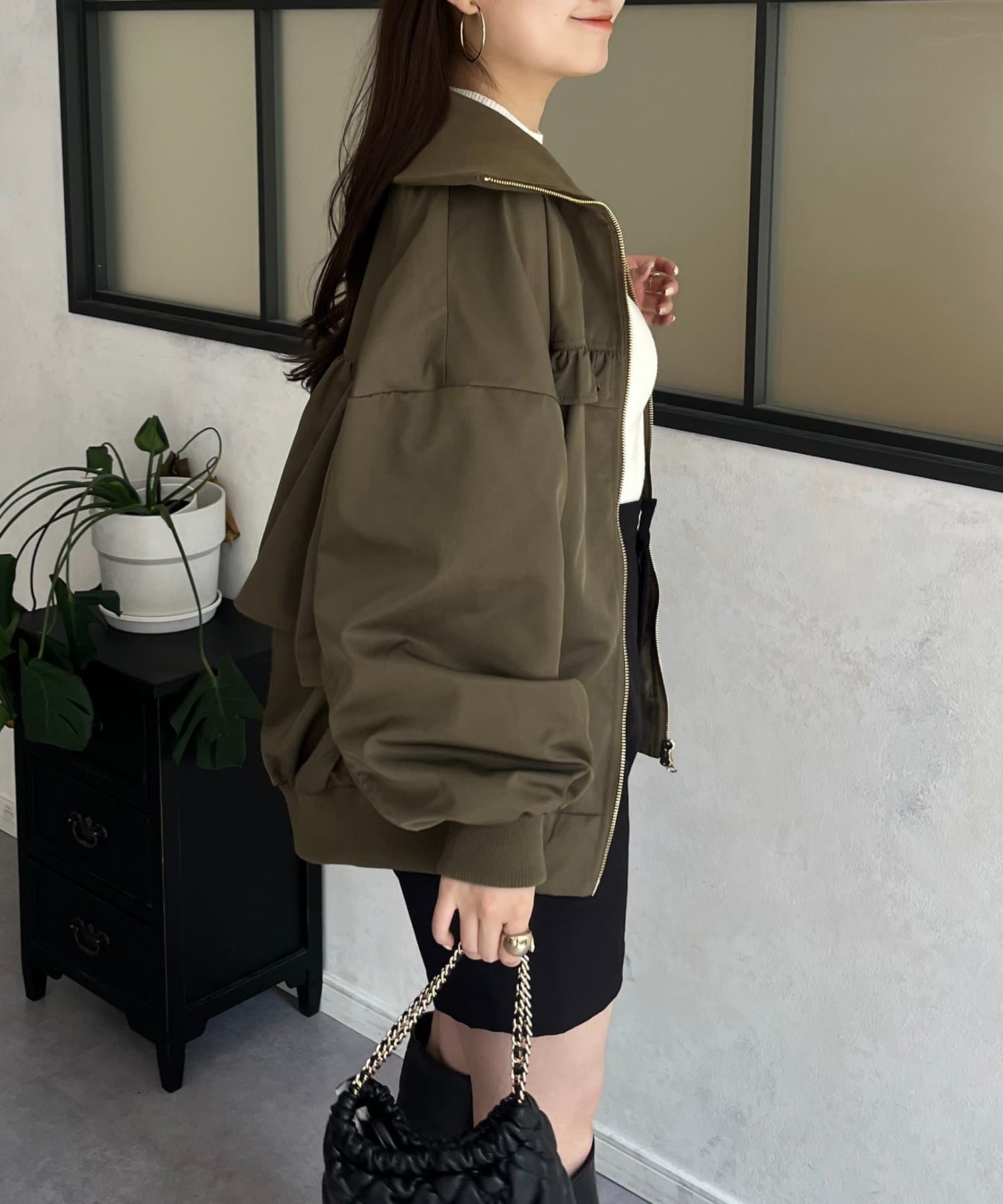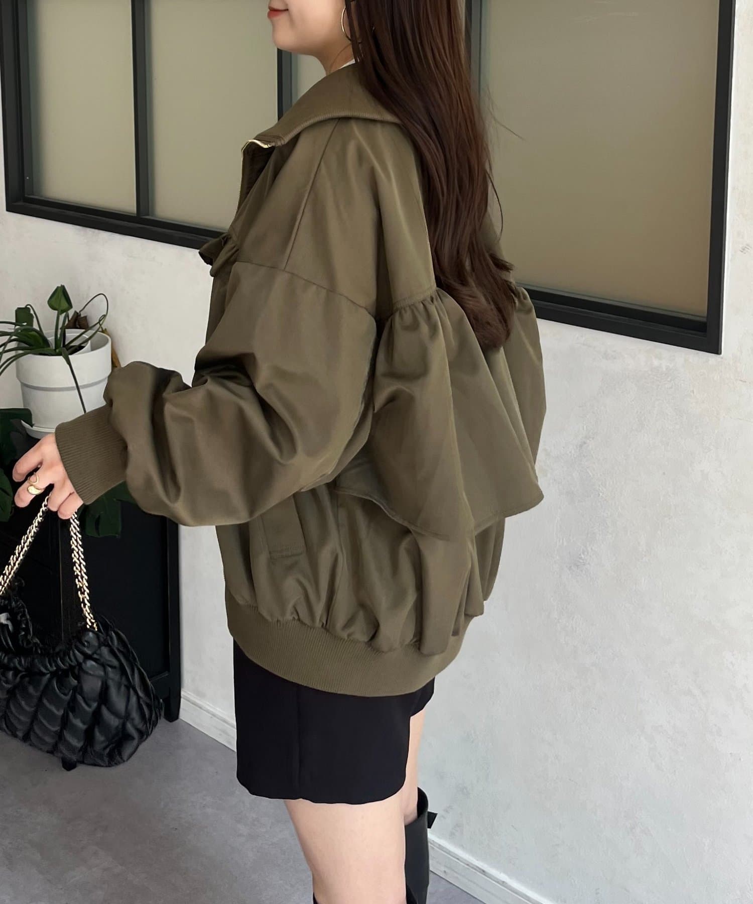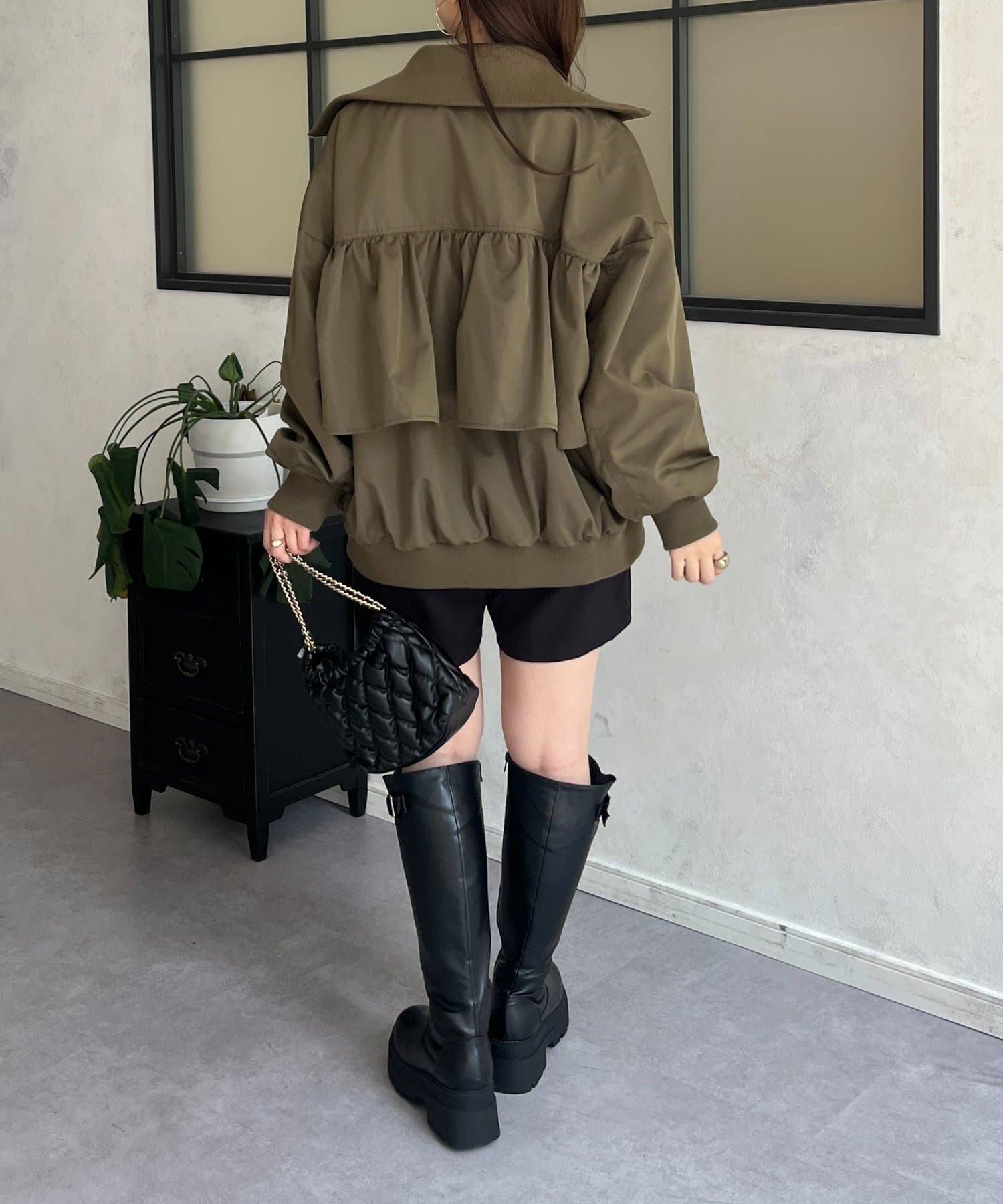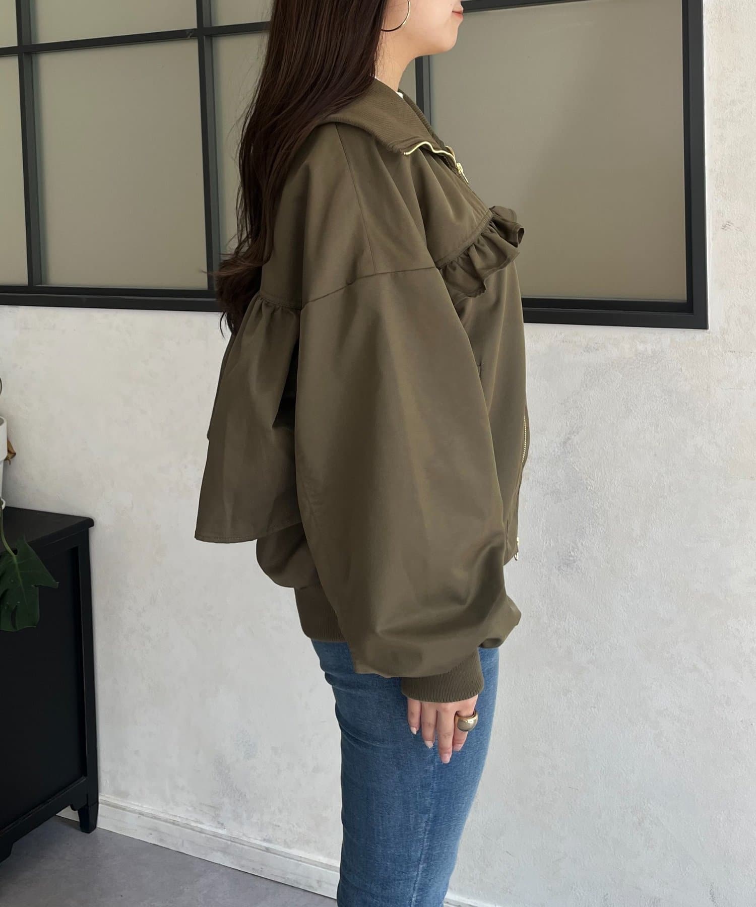 ●カジュアルなブルゾンにバックの大きいフリルが甘さをプラス
