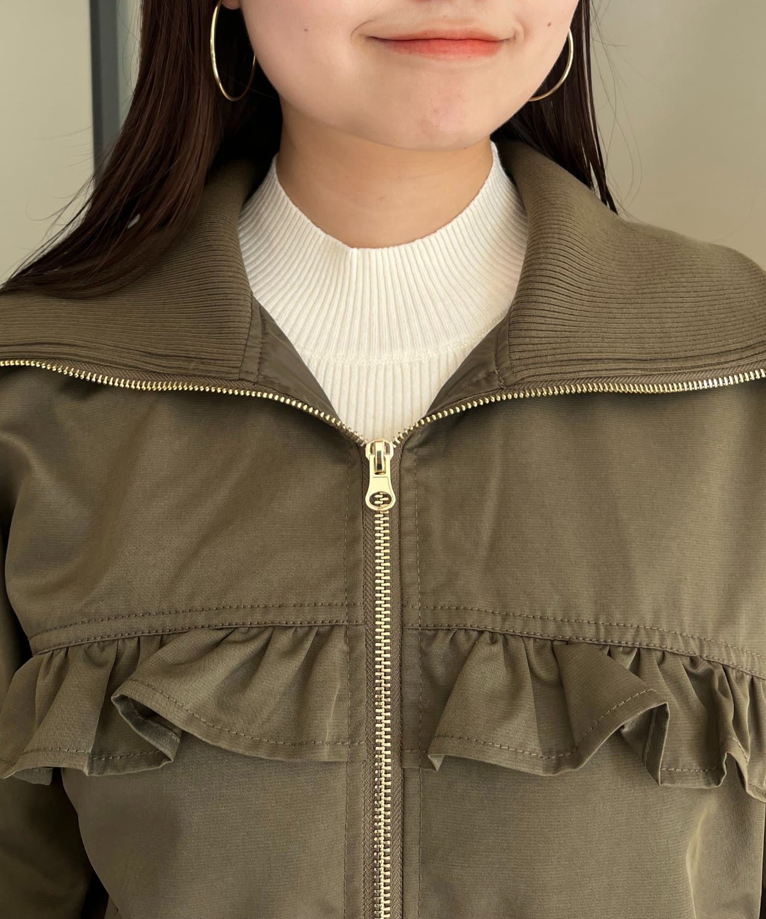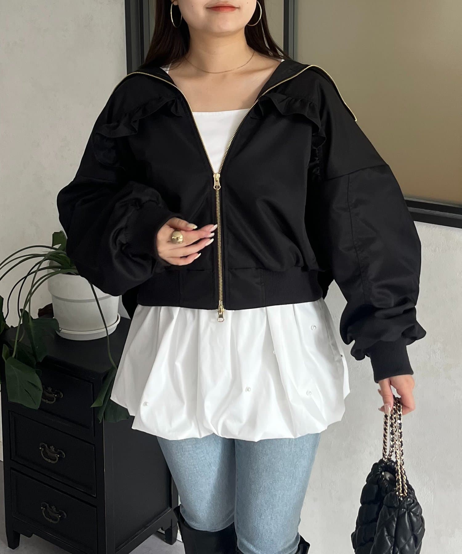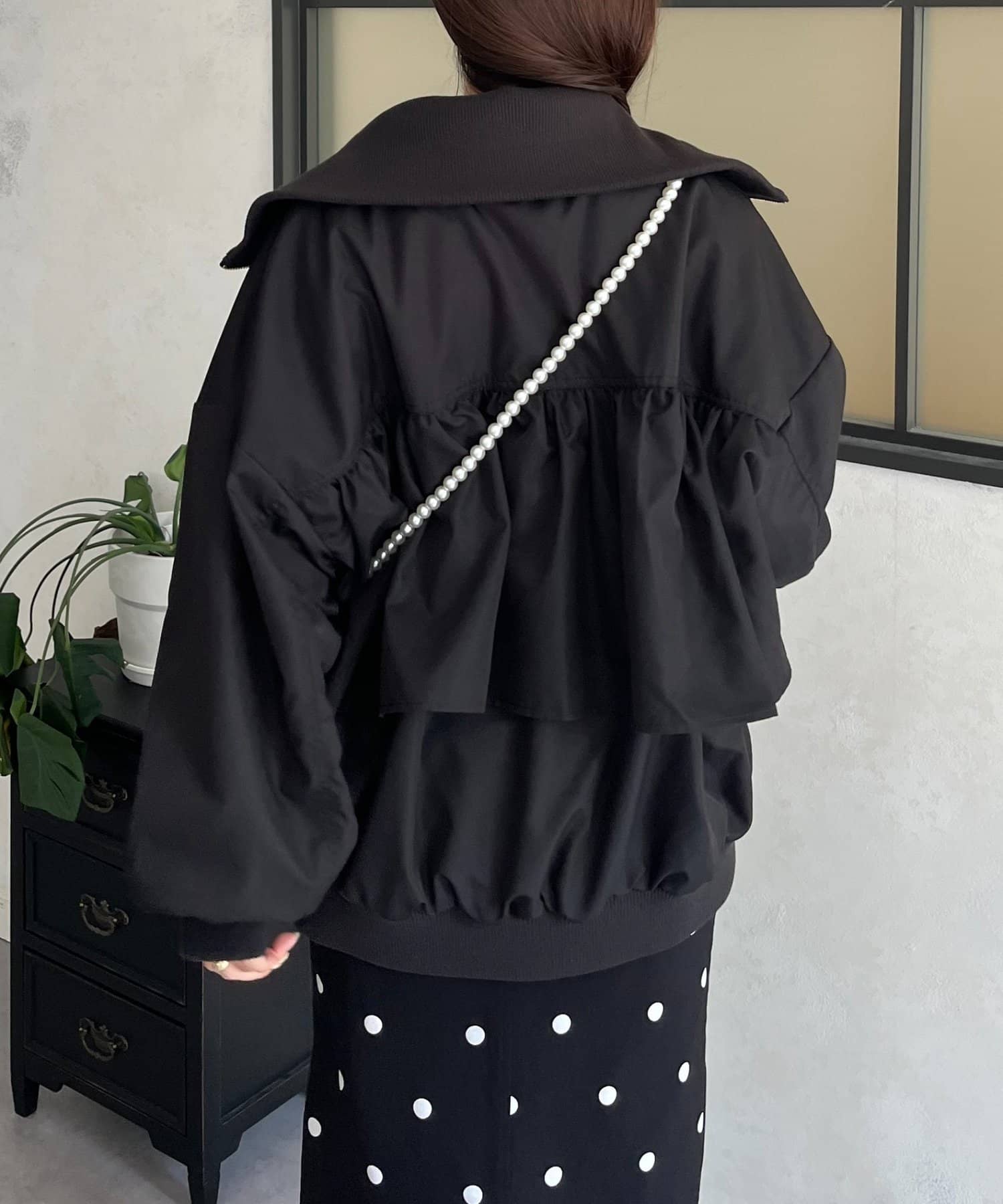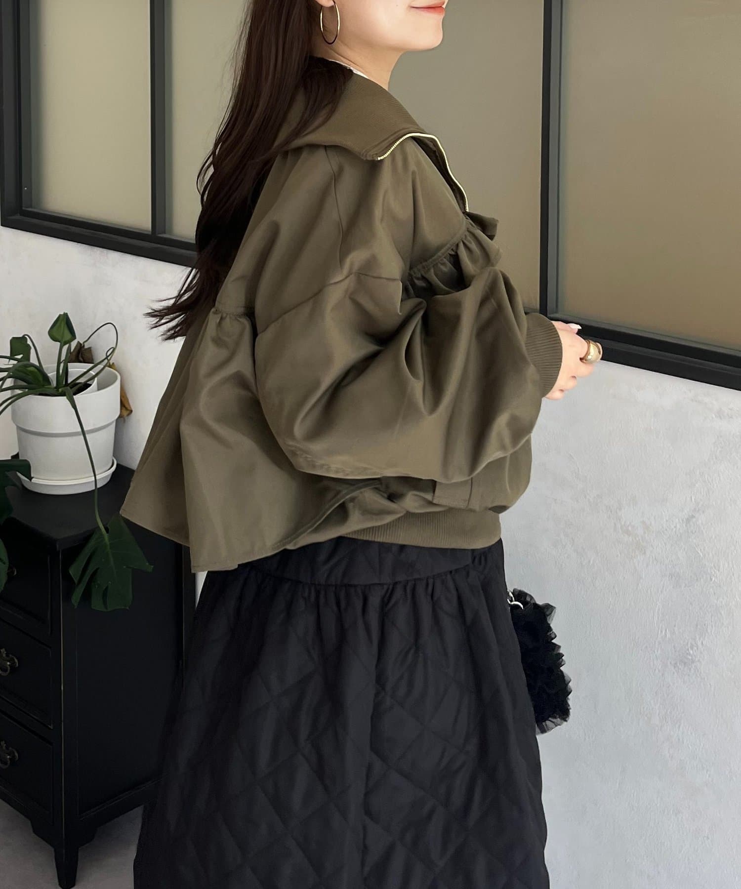 ●カジュアルなブルゾンにバックの大きいフリルが甘さをプラス