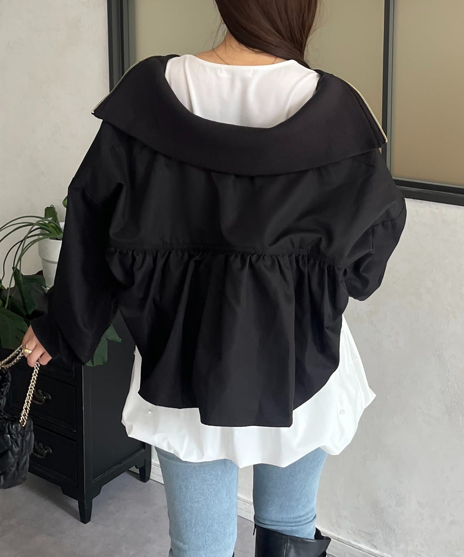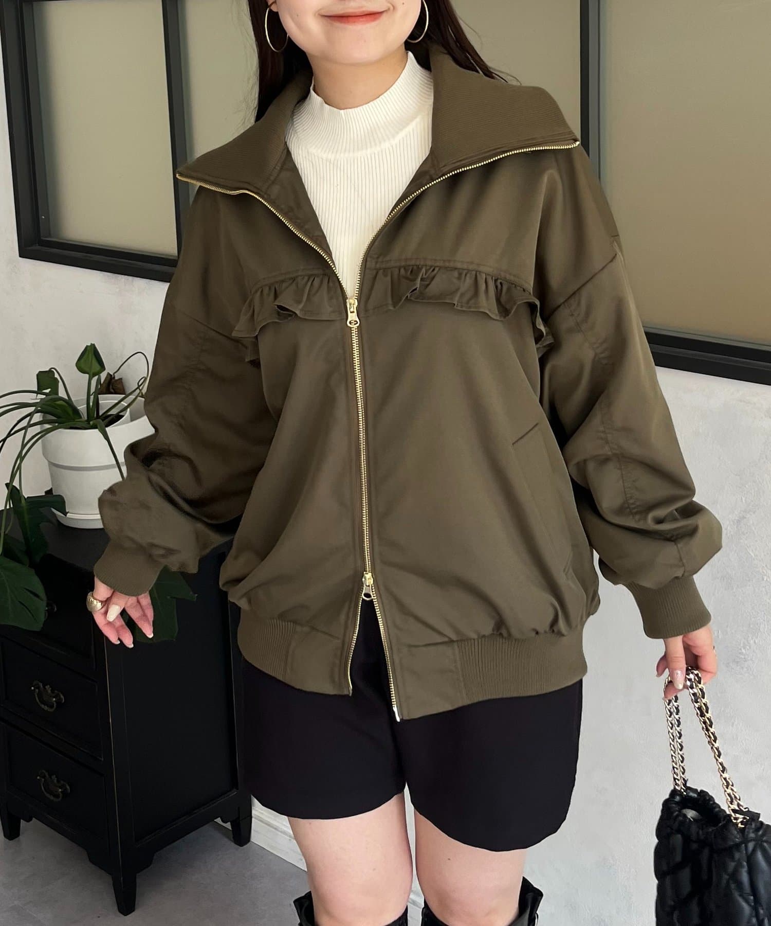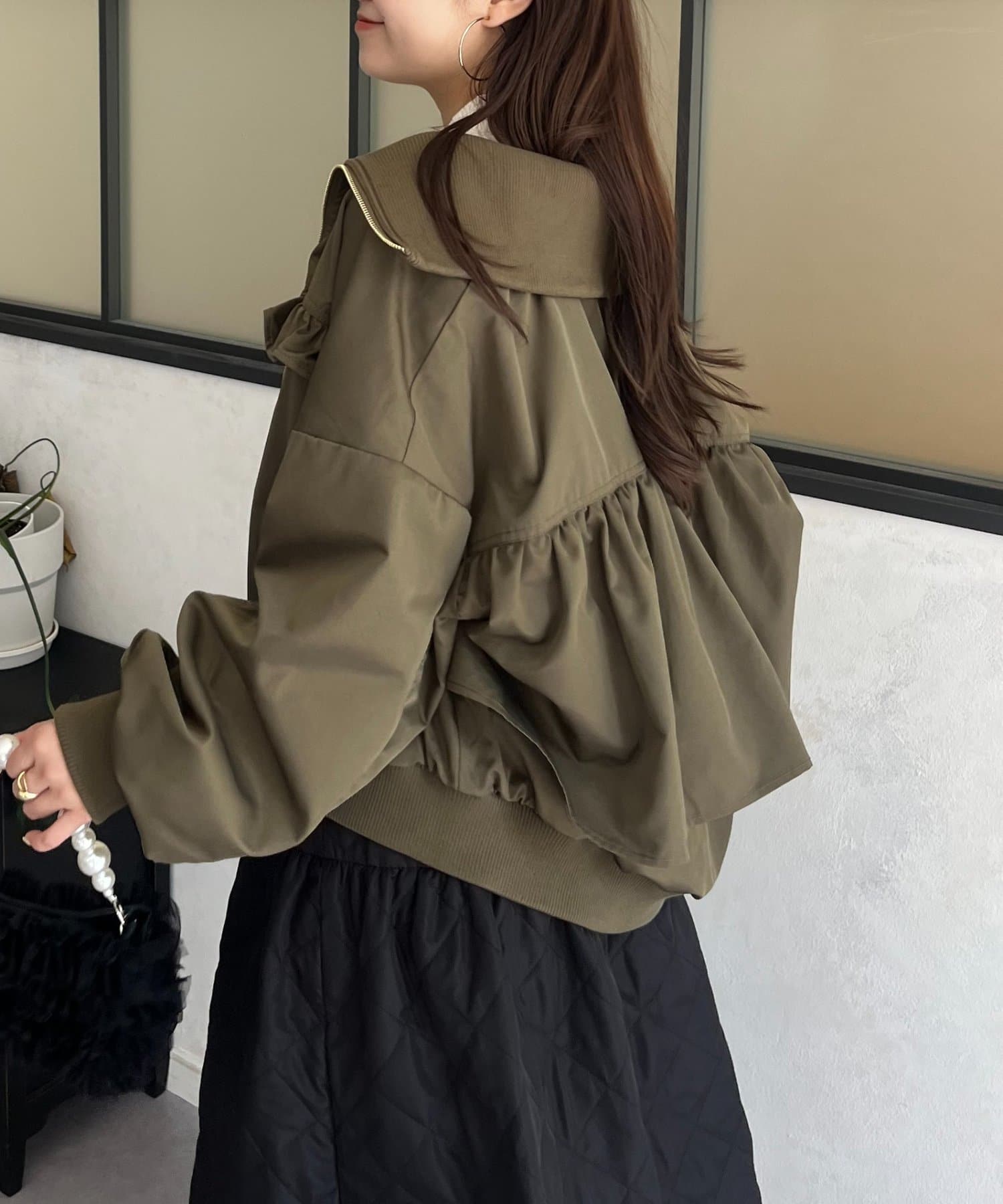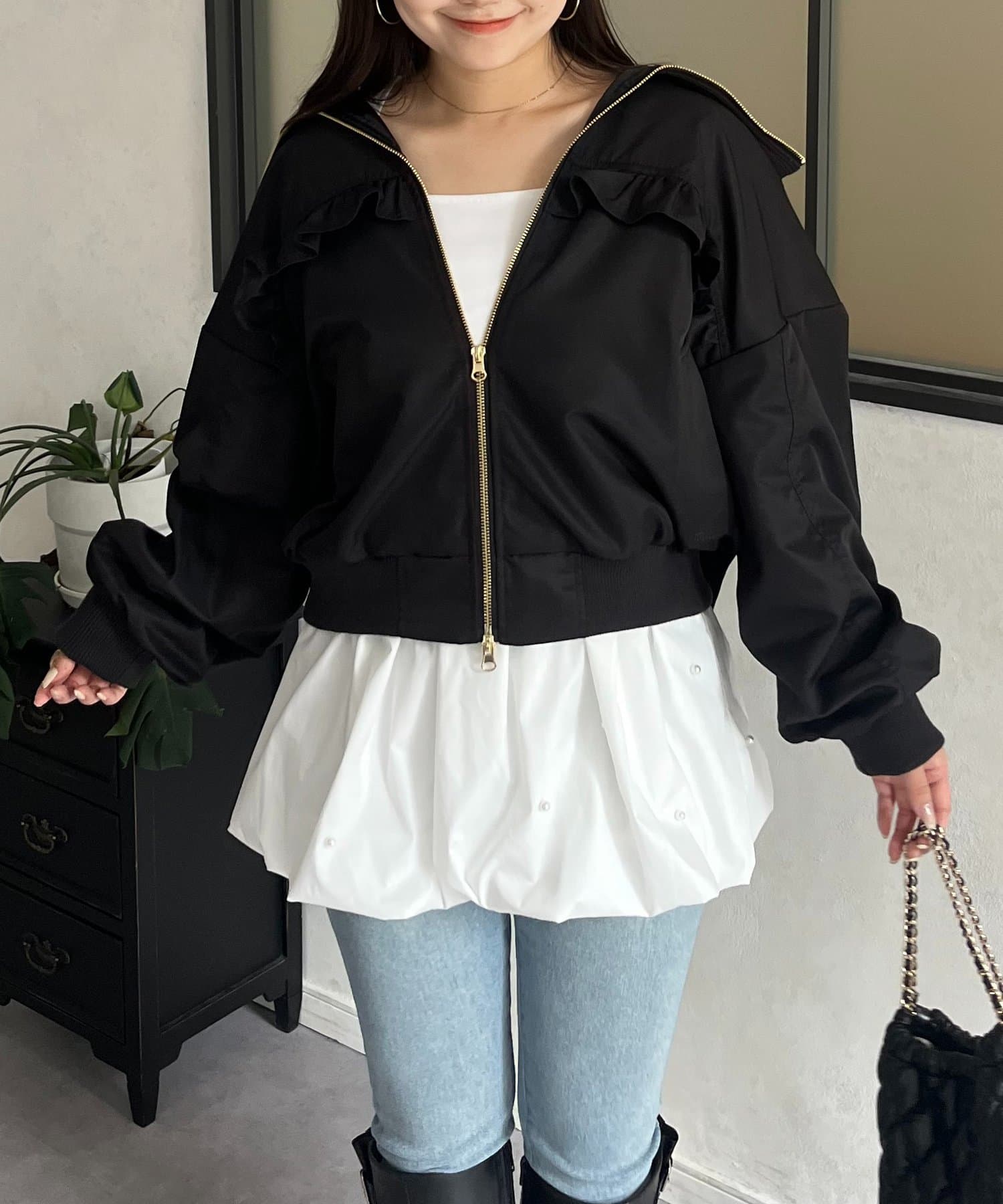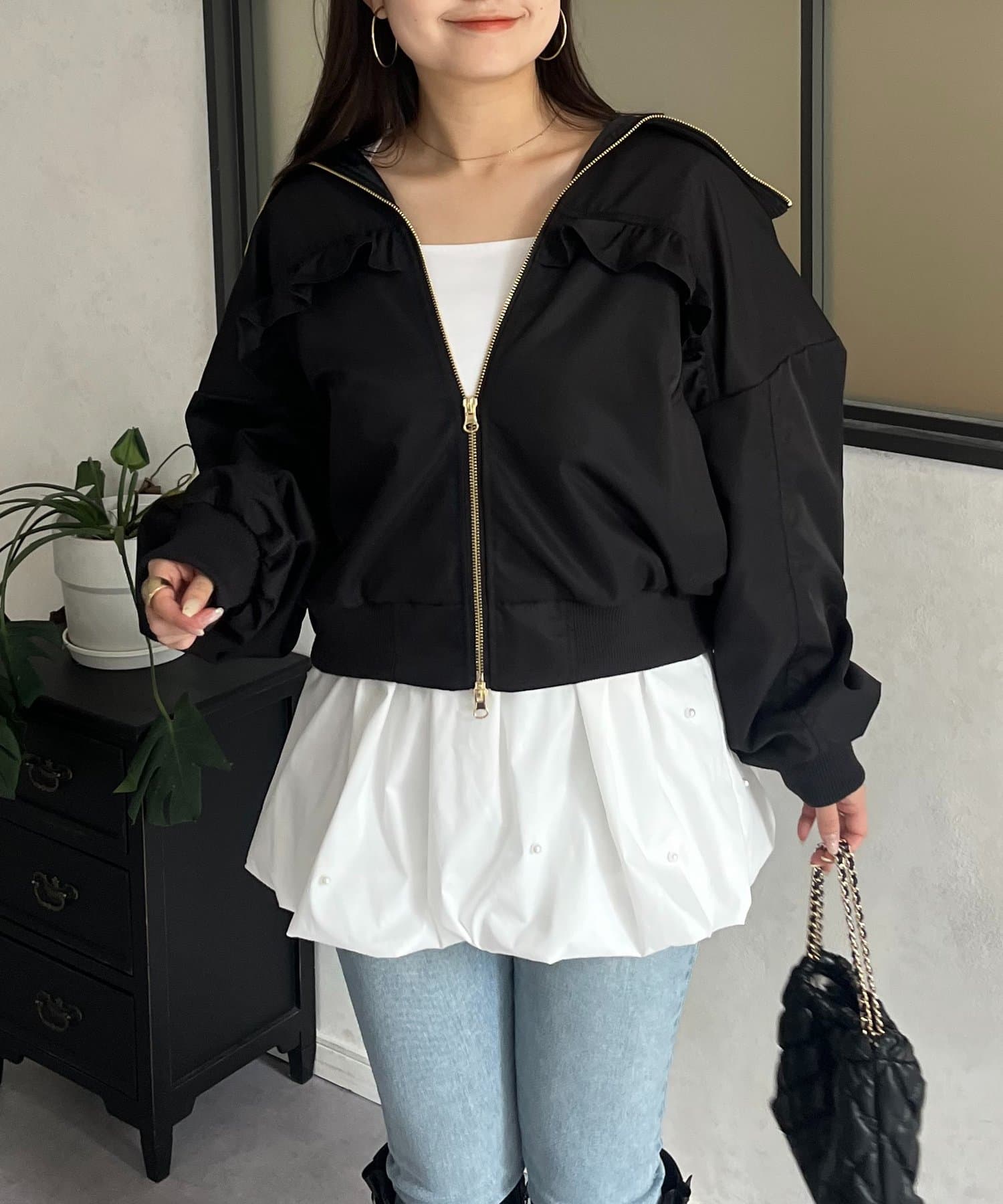●カジュアルなブルゾンにバックの大きいフリルが甘さをプラス
